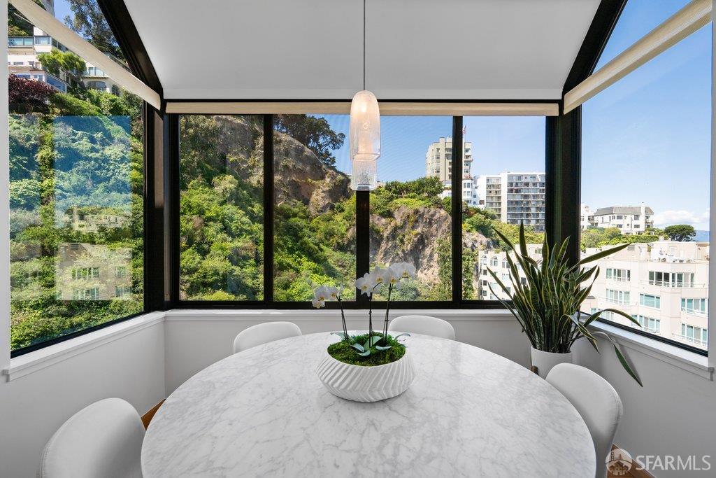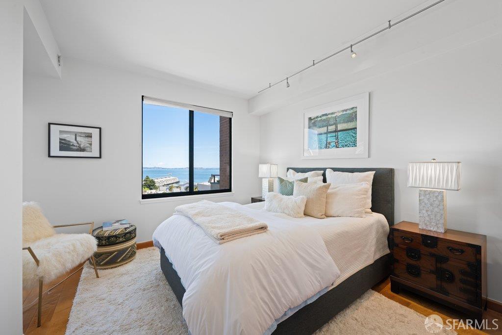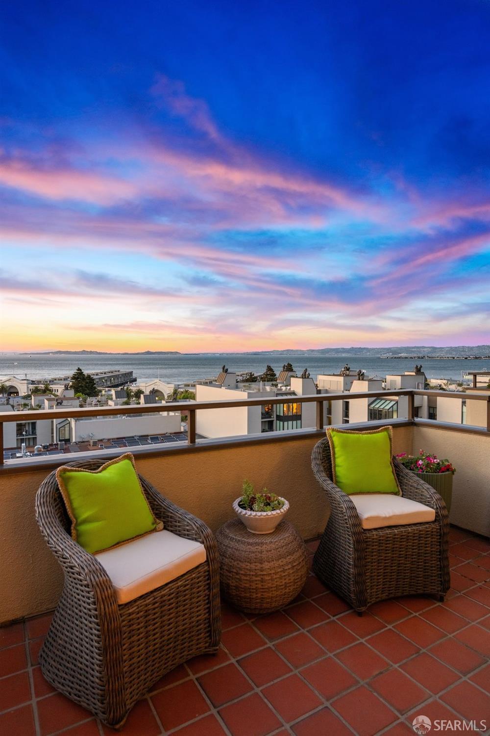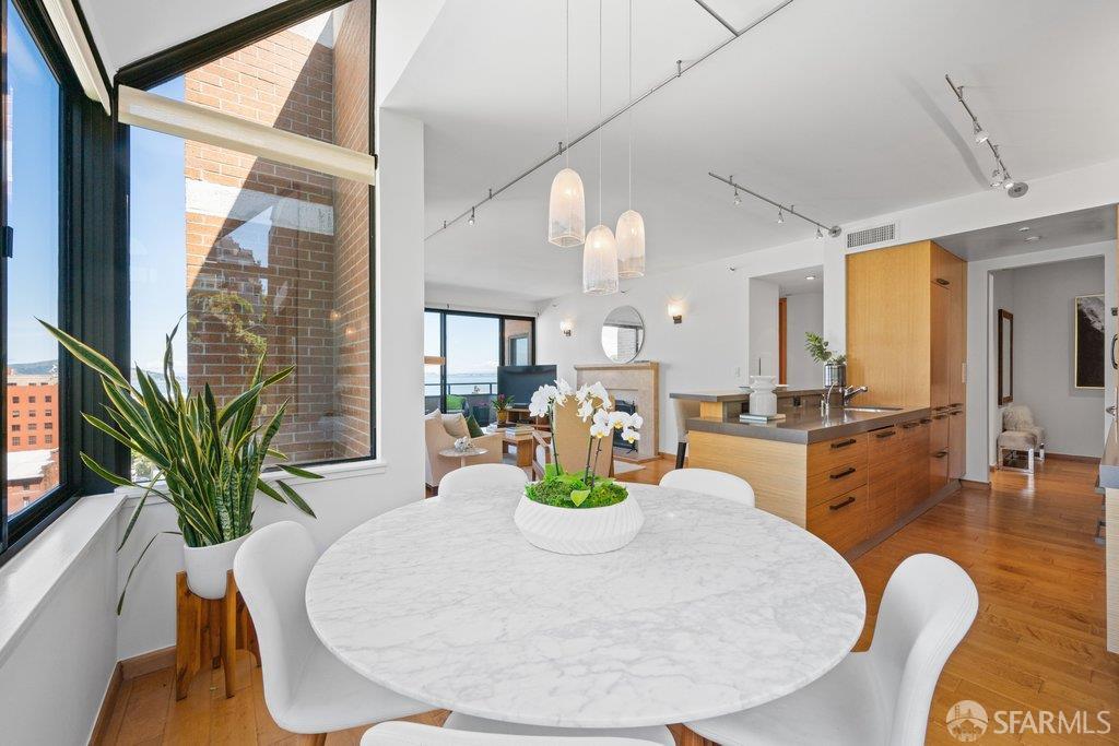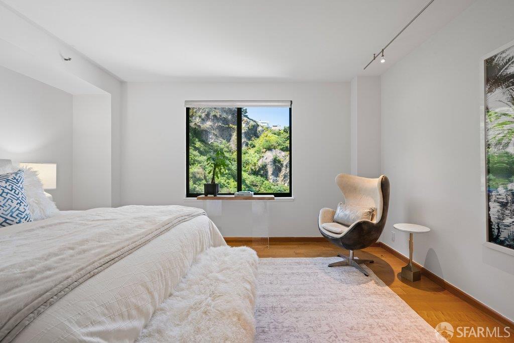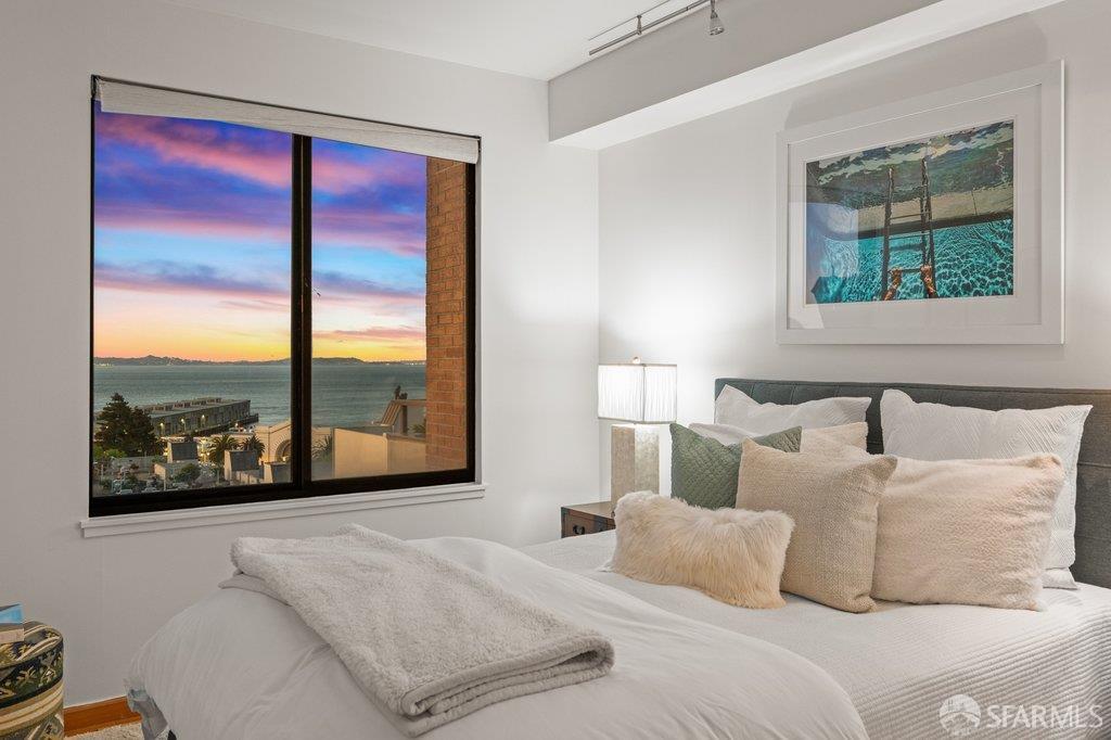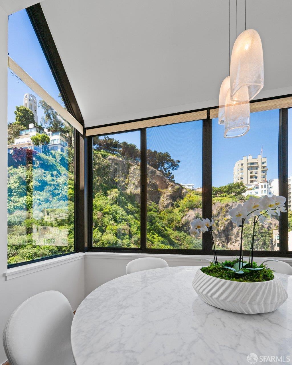 Perched under Telegraph Hill, right under Julius Castle in a beautifully renovated penthouse, this sophisticated residence offers truly spectacular views of the Bay, Alcatraz Island, and Telegraph Hill. Tucked into a hidden enclave along Lower Lombard, this light-filled corner condo combines privacy with iconic scenery. The open-concept kitchen, dining, and living areas are designed to showcase the sweeping vistas, featuring a cozy wood-burning fireplace and seamless access to a spacious deck, perfect for alfresco dining. A washer and dryer are also conveniently included, adding ease to everyday living. Upstairs, another large private roof deck delivers panoramic views that capture the essence of San Francisco living. Both bedrooms are thoughtfully positioned on opposite corners for maximum privacy, each with its own en-suite bath. Residents of 101 Lombard enjoy an exceptional collection of amenities, including a stunning heated pool, Chacuzzi, 24-hour doorman and security, onsite property management, a private library, and an inviting community room, all set amidst the lush, serene surroundings of Telegraph Hill. Life at 101 Lombard feels effortlessly luxurious. Imagine lounging poolside with a great book, soaking in the calm, spa-like atmosphere, or unwinding on your own private deck, an exclusive retreat where you can take in breathtaking views of the city skyline and the sparkling bay. Don’t miss the beautiful garden walk with beautiful Redwood trees that belongs to 101 Lombard hidden in the back of the property. This is elevated living at its finest. Ideally located in one of the city’s sunniest pockets, this home boasts a Walk Score of 99, placing the best of San Francisco right at your doorstep. Self managed by 101 Lombard Condo assoc Hoa Dues are 1750 a month they include Water, Cable, 24 hour front door Service, Janitorial, Window Washing twice a year, ON site management and staff, including janitorial and Chief building Engineer, upkeep of gardens, landscape, pool and spa