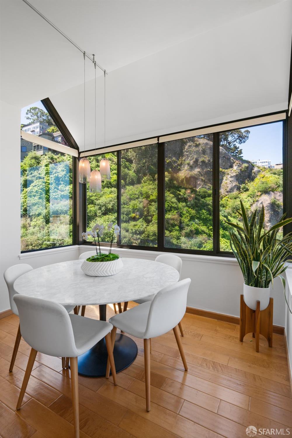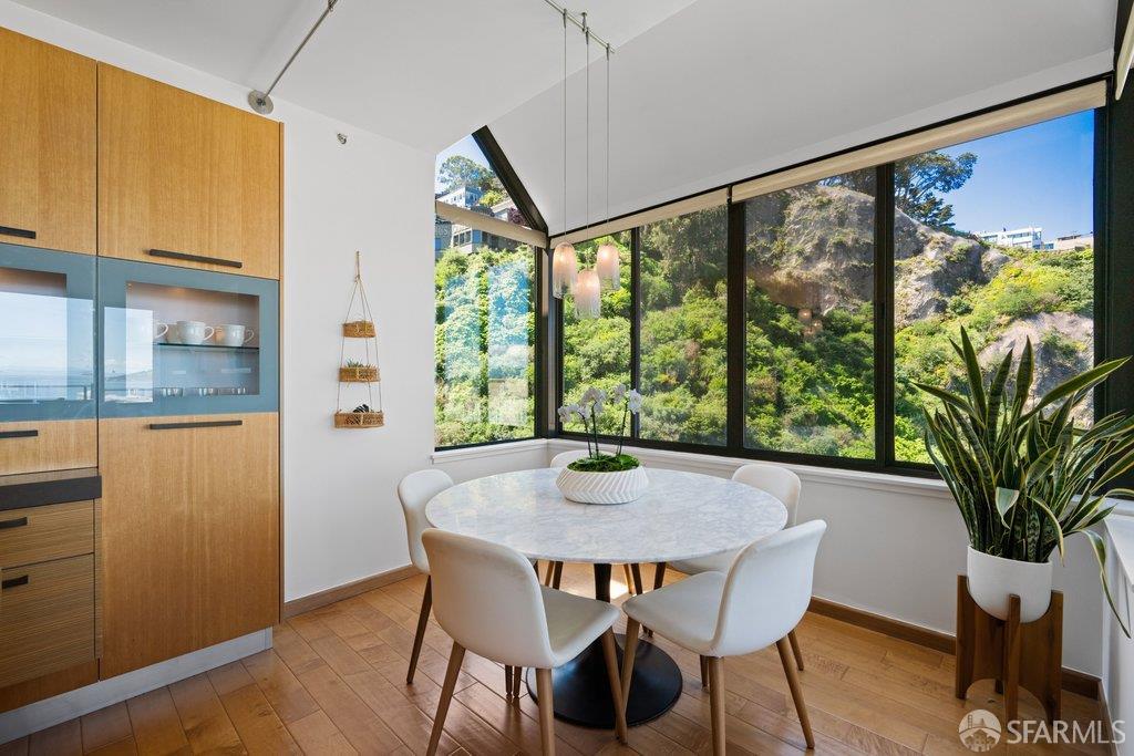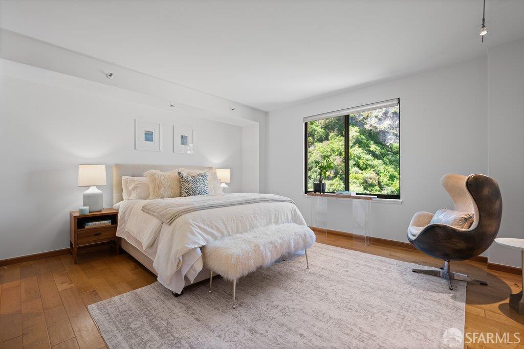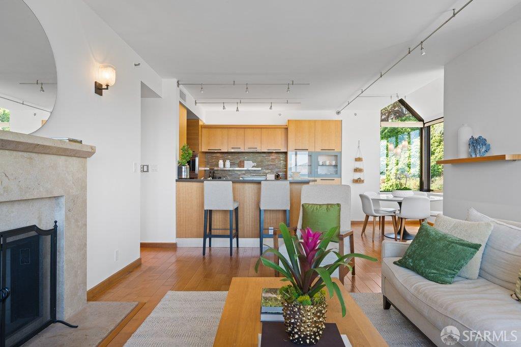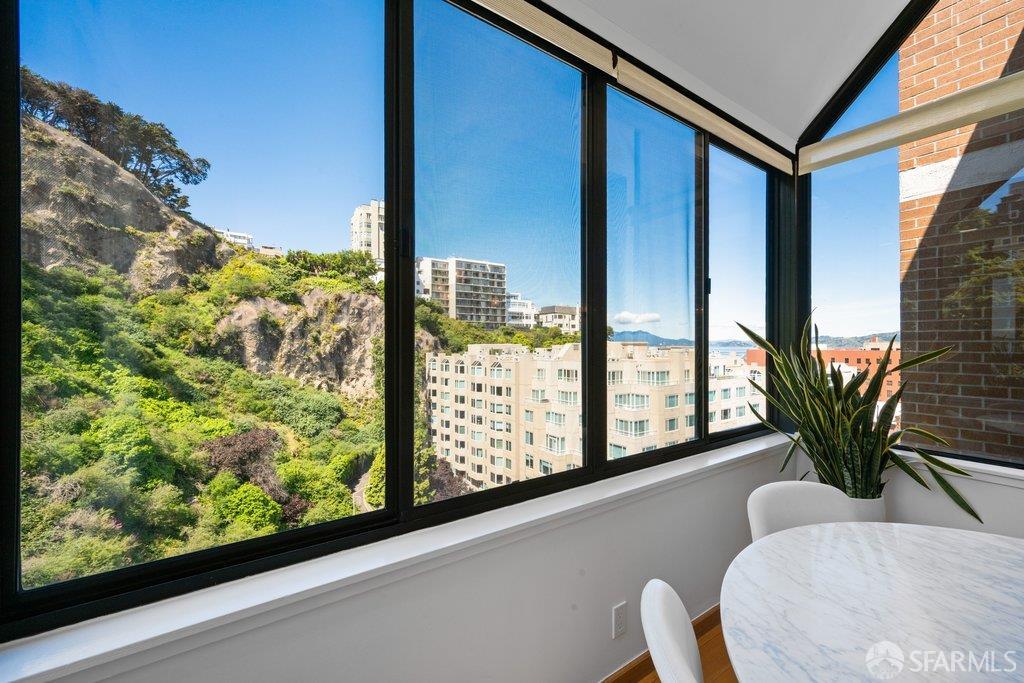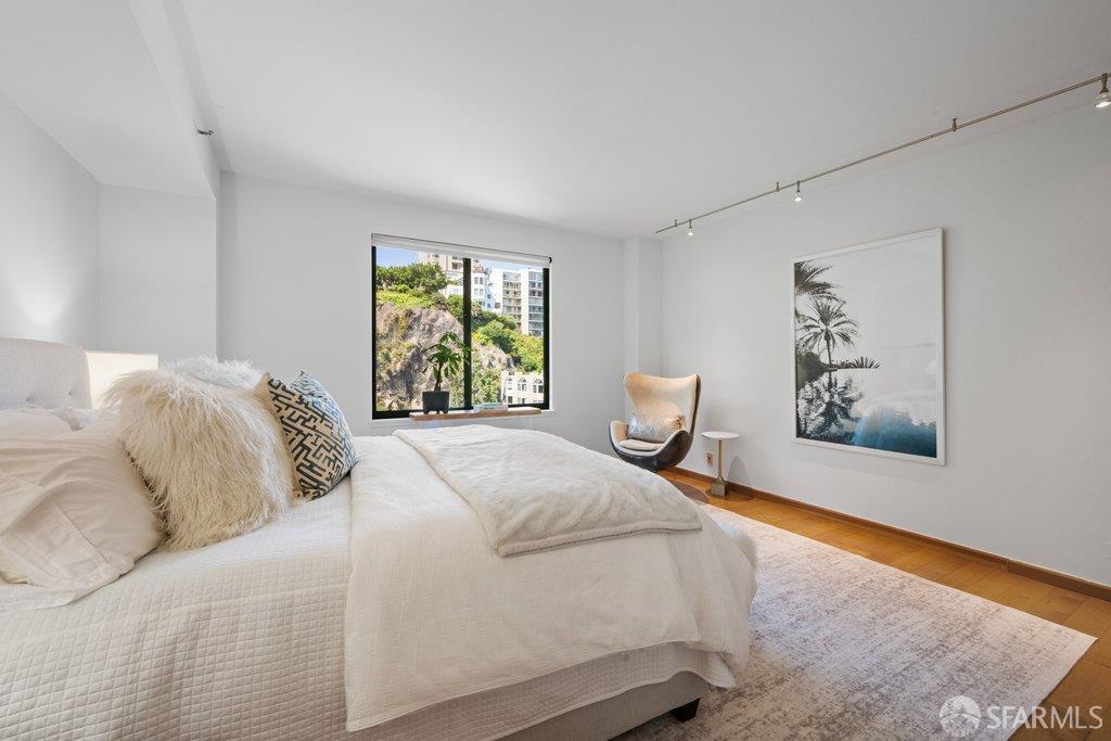 Perched under Telegraph Hill, right under Julius Castle in a beautifully renovated penthouse, this sophisticated residence offers truly spectacular views of the Bay, Alcatraz Island, and Telegraph Hill. Tucked into a hidden enclave along Lower Lombard, this light-filled corner condo combines privacy with iconic scenery. The open-concept kitchen, dining, and living areas are designed to showcase the sweeping vistas, featuring a cozy wood-burning fireplace and seamless access to a spacious deck, perfect for alfresco dining. A washer and dryer are also conveniently included, adding ease to everyday living. Upstairs, another large private roof deck delivers panoramic views that capture the essence of San Francisco living. Both bedrooms are thoughtfully positioned on opposite corners for maximum privacy, each with its own en-suite bath. Residents of 101 Lombard enjoy an exceptional collection of amenities, including a stunning heated pool, Chacuzzi, 24-hour doorman and security, onsite property management, a private library, and an inviting community room, all set amidst the lush, serene surroundings of Telegraph Hill. Life at 101 Lombard feels effortlessly luxurious. Imagine lounging poolside with a great book, soaking in the calm, spa-like atmosphere, or unwinding on your own private deck, an exclusive retreat where you can take in breathtaking views of the city skyline and the sparkling bay. Don’t miss the beautiful garden walk with beautiful Redwood trees that belongs to 101 Lombard hidden in the back of the property. This is elevated living at its finest. Ideally located in one of the city’s sunniest pockets, this home boasts a Walk Score of 99, placing the best of San Francisco right at your doorstep. Self managed by 101 Lombard Condo assoc Hoa Dues are 1750 a month they include Water, Cable, 24 hour front door Service, Janitorial, Window Washing twice a year, ON site management and staff, including janitorial and Chief building Engineer, upkeep of gardens, landscape, pool and spa