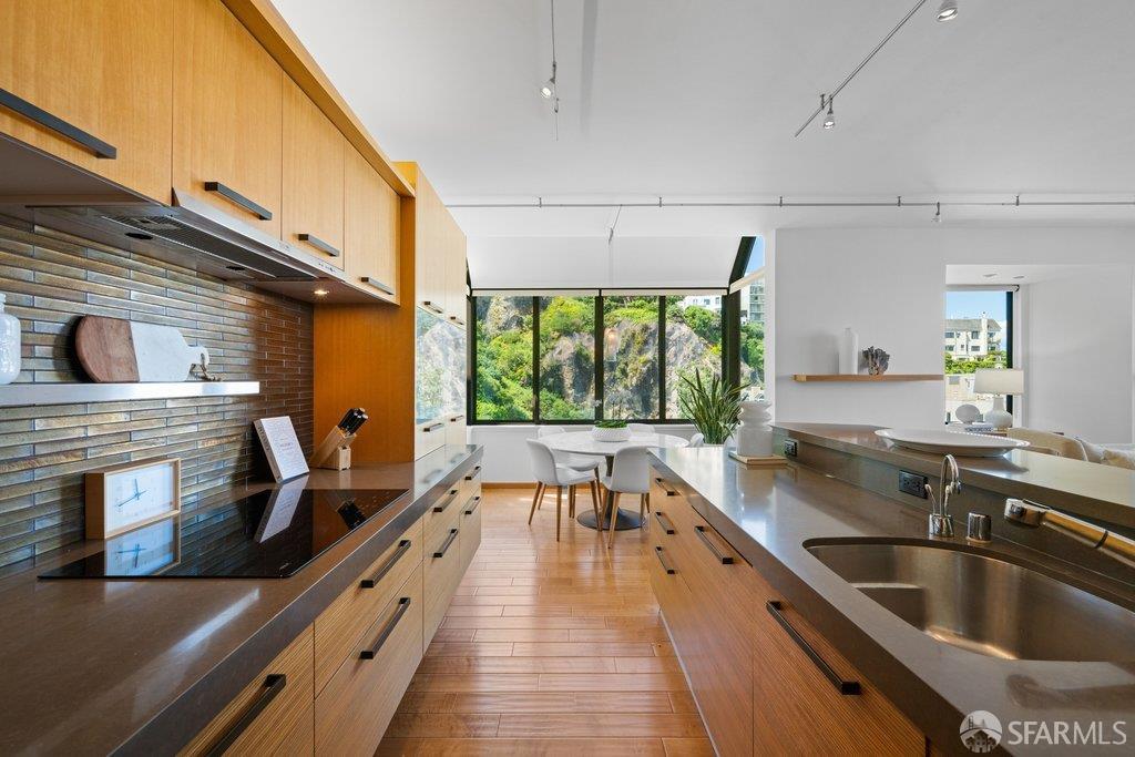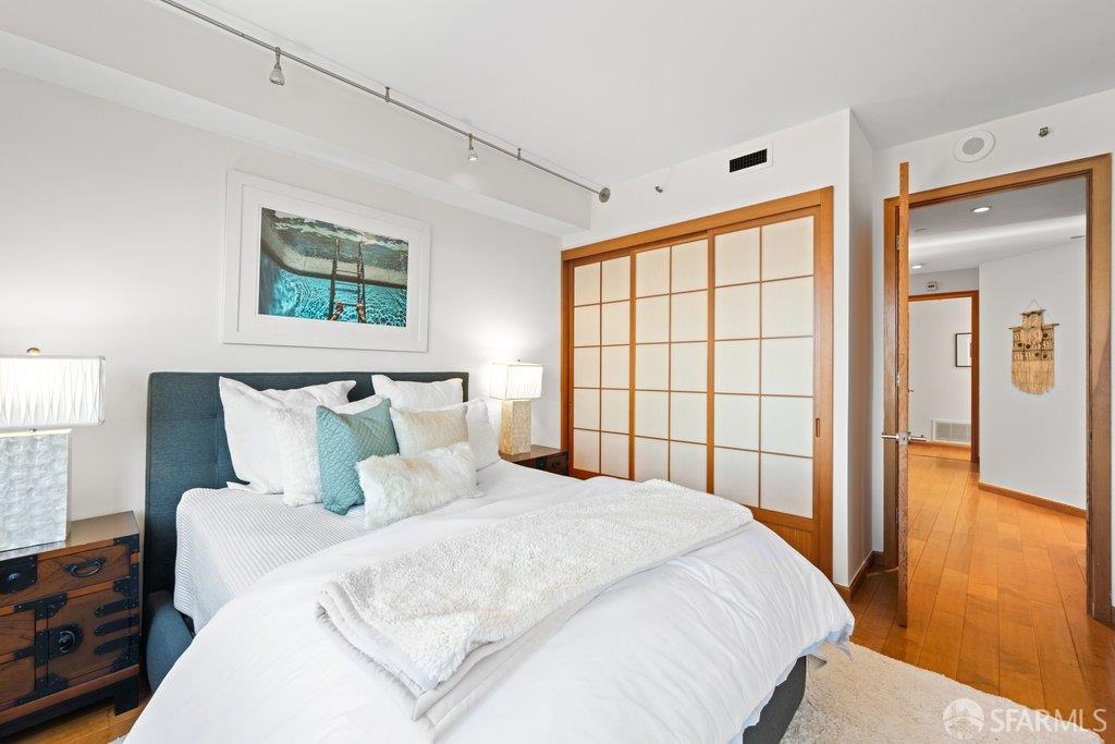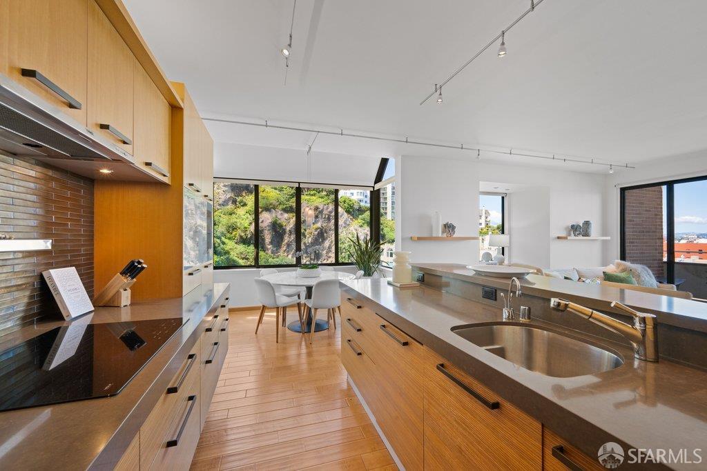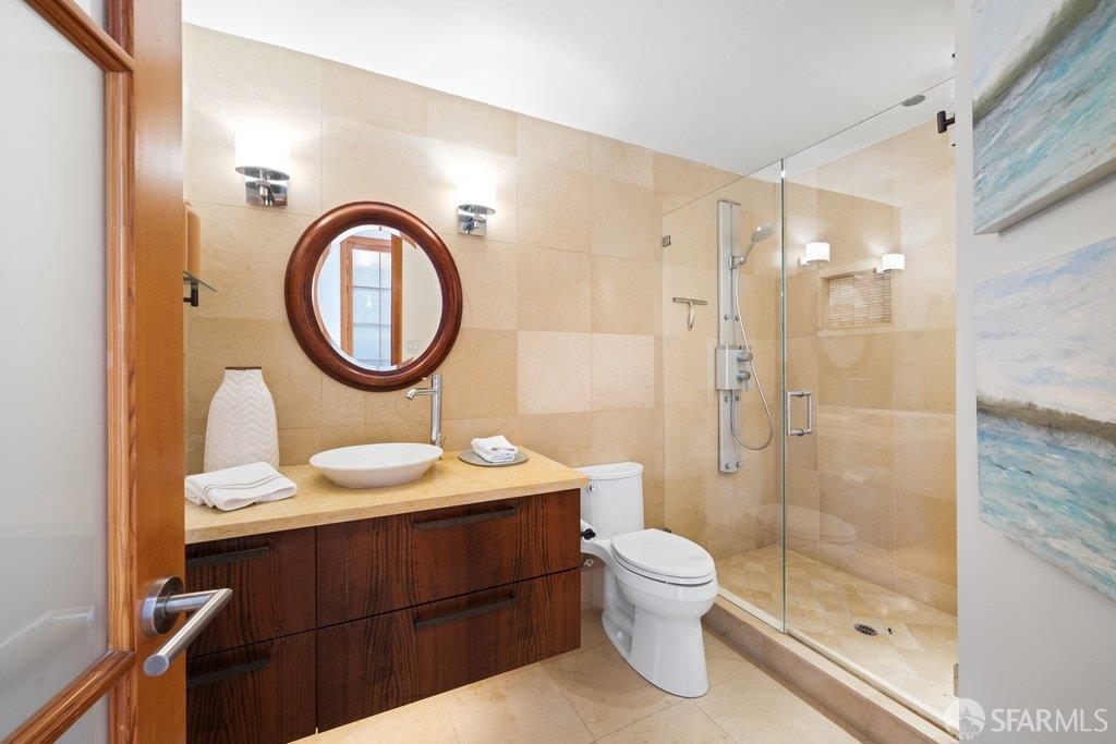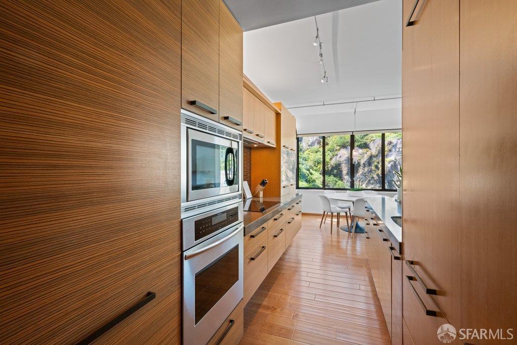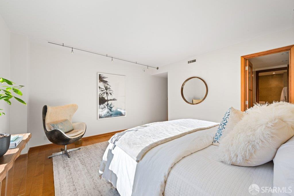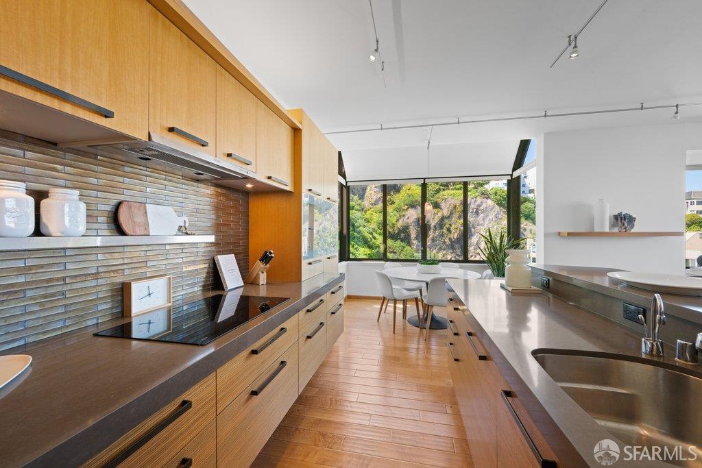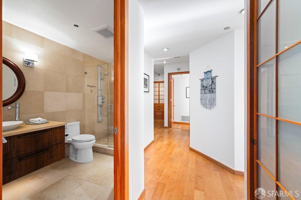 Perched under Telegraph Hill, right under Julius Castle in a beautifully renovated penthouse, this sophisticated residence offers truly spectacular views of the Bay, Alcatraz Island, and Telegraph Hill. Tucked into a hidden enclave along Lower Lombard, this light-filled corner condo combines privacy with iconic scenery. The open-concept kitchen, dining, and living areas are designed to showcase the sweeping vistas, featuring a cozy wood-burning fireplace and seamless access to a spacious deck, perfect for alfresco dining. A washer and dryer are also conveniently included, adding ease to everyday living. Upstairs, another large private roof deck delivers panoramic views that capture the essence of San Francisco living. Both bedrooms are thoughtfully positioned on opposite corners for maximum privacy, each with its own en-suite bath. Residents of 101 Lombard enjoy an exceptional collection of amenities, including a stunning heated pool, Chacuzzi, 24-hour doorman and security, onsite property management, a private library, and an inviting community room, all set amidst the lush, serene surroundings of Telegraph Hill. Life at 101 Lombard feels effortlessly luxurious. Imagine lounging poolside with a great book, soaking in the calm, spa-like atmosphere, or unwinding on your own private deck, an exclusive retreat where you can take in breathtaking views of the city skyline and the sparkling bay. Don’t miss the beautiful garden walk with beautiful Redwood trees that belongs to 101 Lombard hidden in the back of the property. This is elevated living at its finest. Ideally located in one of the city’s sunniest pockets, this home boasts a Walk Score of 99, placing the best of San Francisco right at your doorstep. Self managed by 101 Lombard Condo assoc Hoa Dues are 1750 a month they include Water, Cable, 24 hour front door Service, Janitorial, Window Washing twice a year, ON site management and staff, including janitorial and Chief building Engineer, upkeep of gardens, landscape, pool and spa