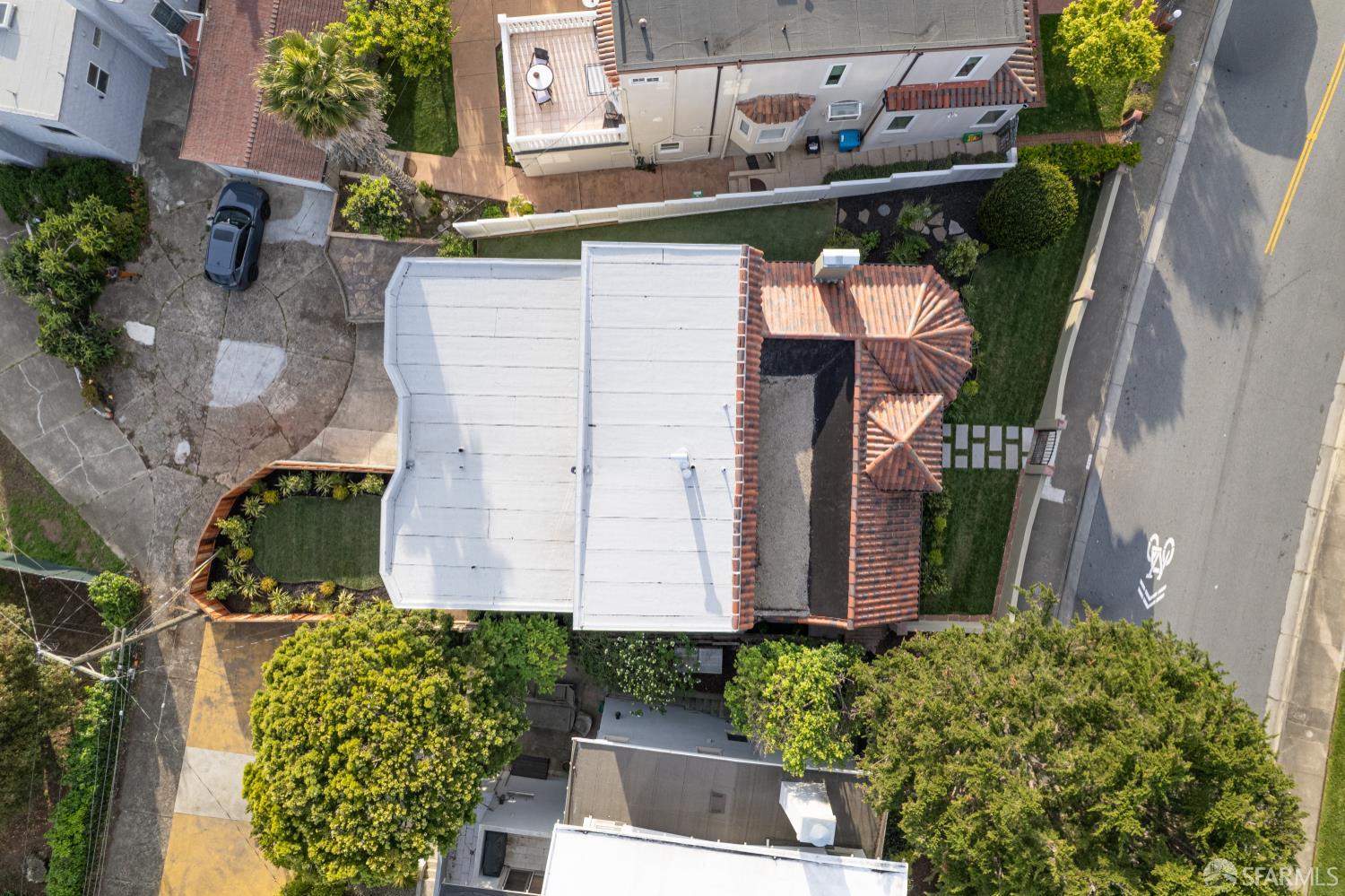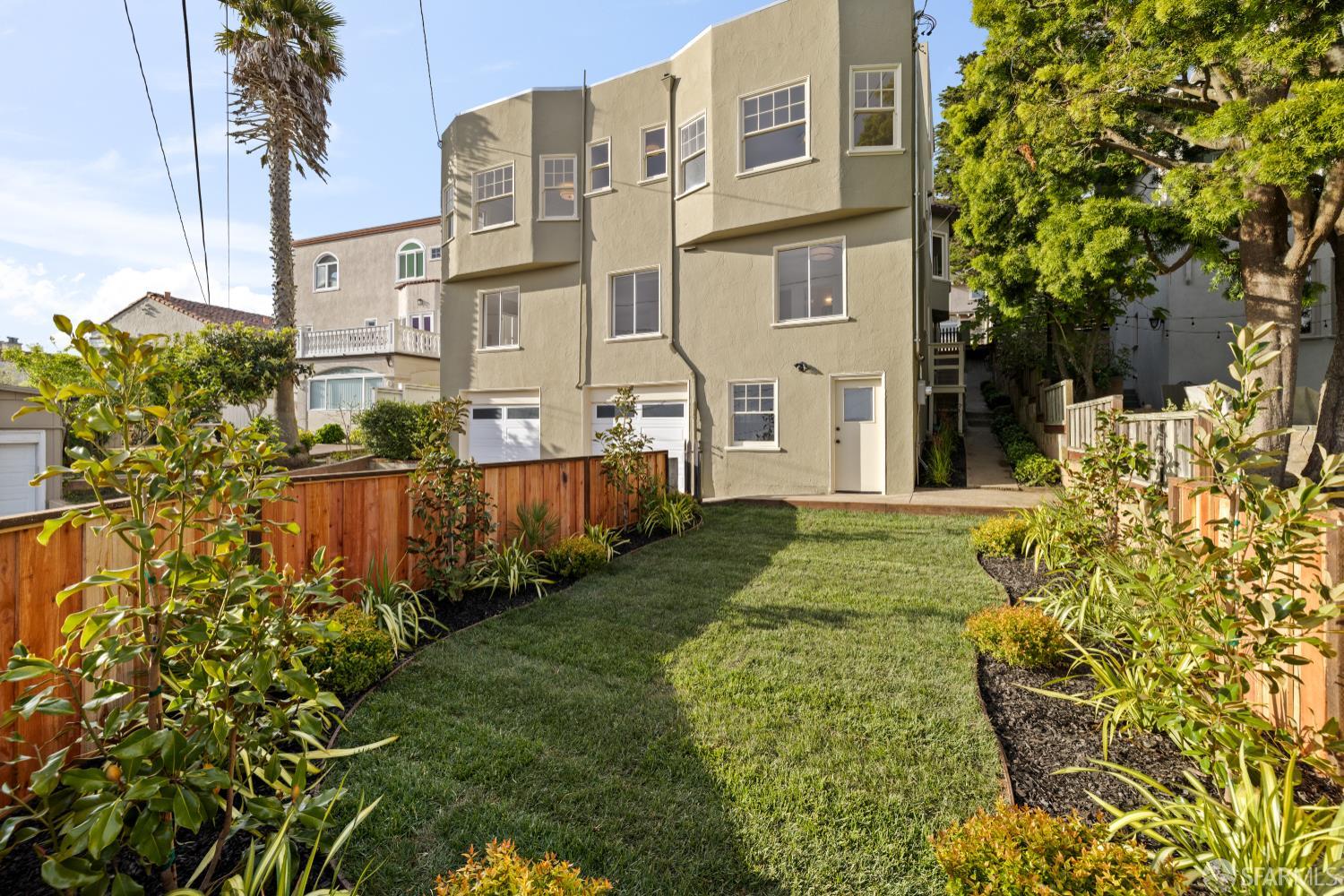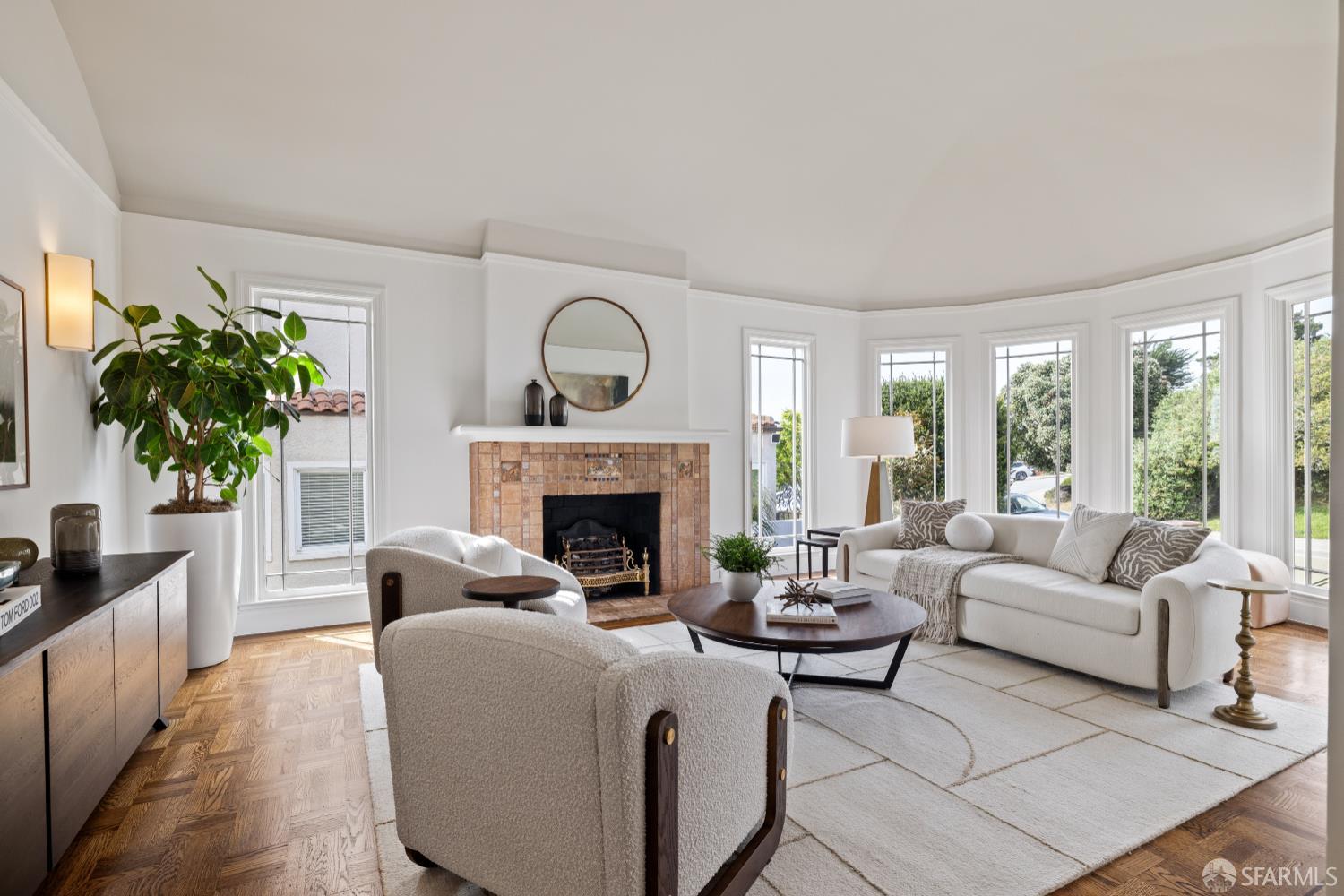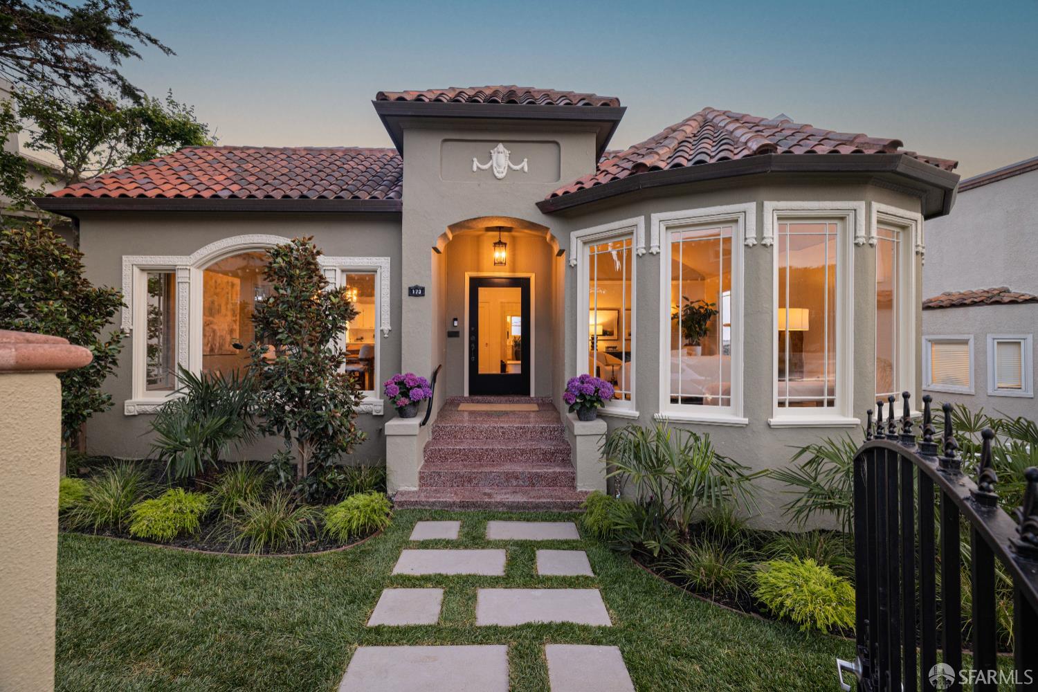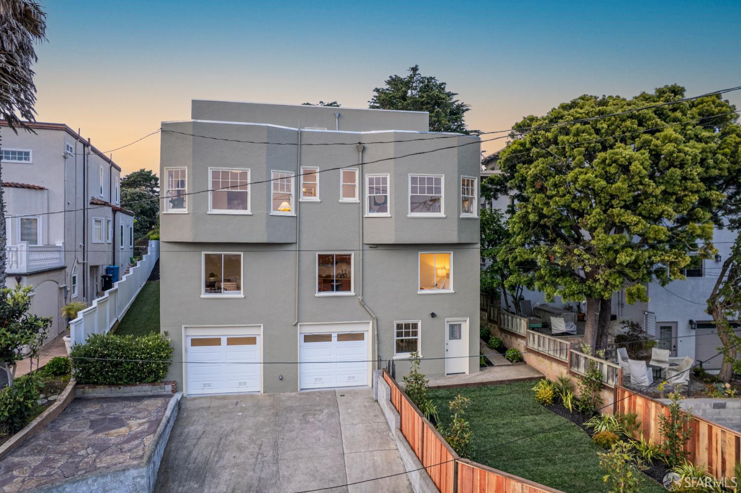 Remarkable Spanish Mediterranean view home proudly situated on a great block in the heart of the neighborhood, close to Stonestown Galleria and public transportation! An impressive, gated courtyard w/garden entrance & terrazzo staircase leads to a splendid portico w/notable front door & into a lobby-like foyer w/center-hall floor plan & convenient coat closet. Grand formal living rm w/high barrel ceiling & phenomenal half dome, five-sided bay window boasts an imposing fireplace w/classic mantel & original Batchelder tile surround, chic wall sconces, crown moldings & gorgeous parquet hardwood floors. Stunning, banquet-sized formal dining rm features recessed lighting, a striking chandelierand an arched picture window. The beautifully updated gourmet kitchen w/wonderful, adjacent breakfast rm, built-in buffet & recessed lighting showcases all stainless-steel appliances incl a four-burner gas range w/griddle, oven & hood, quartz counters, custom-painted wood cabinets w/snazzy hardware, nice pantry & enclosed laundry area. An expansive hallway with linen closet, three huge bedrooms – two w/views to the PacificOcean – & a handsome updated bath finish this floor. An attractive staircase ascends to the master suite level which enjoys a large bedroom, home office or sitting rm, a vintage tiled bath w/pedestal sink & shower over cast-iron tub & picturesque Pacific Ocean views. The lower level comprises a spectacular game rm w/fanciful theatrical stage, a terrific workout rm & a spacious guest quarters w/bedroom, en-suite full bath, walk-in closet & family rm w/gigantic wet bar. The lowest level includes a workroom/artist’s studio w/double cast-iron sink & a big two-car s/s parking garage w/built-in shelving. Fabulous landscaped backyard w/tradesman’s entrance, walkway, level lawn & lush garden w/colorful plants & trees!