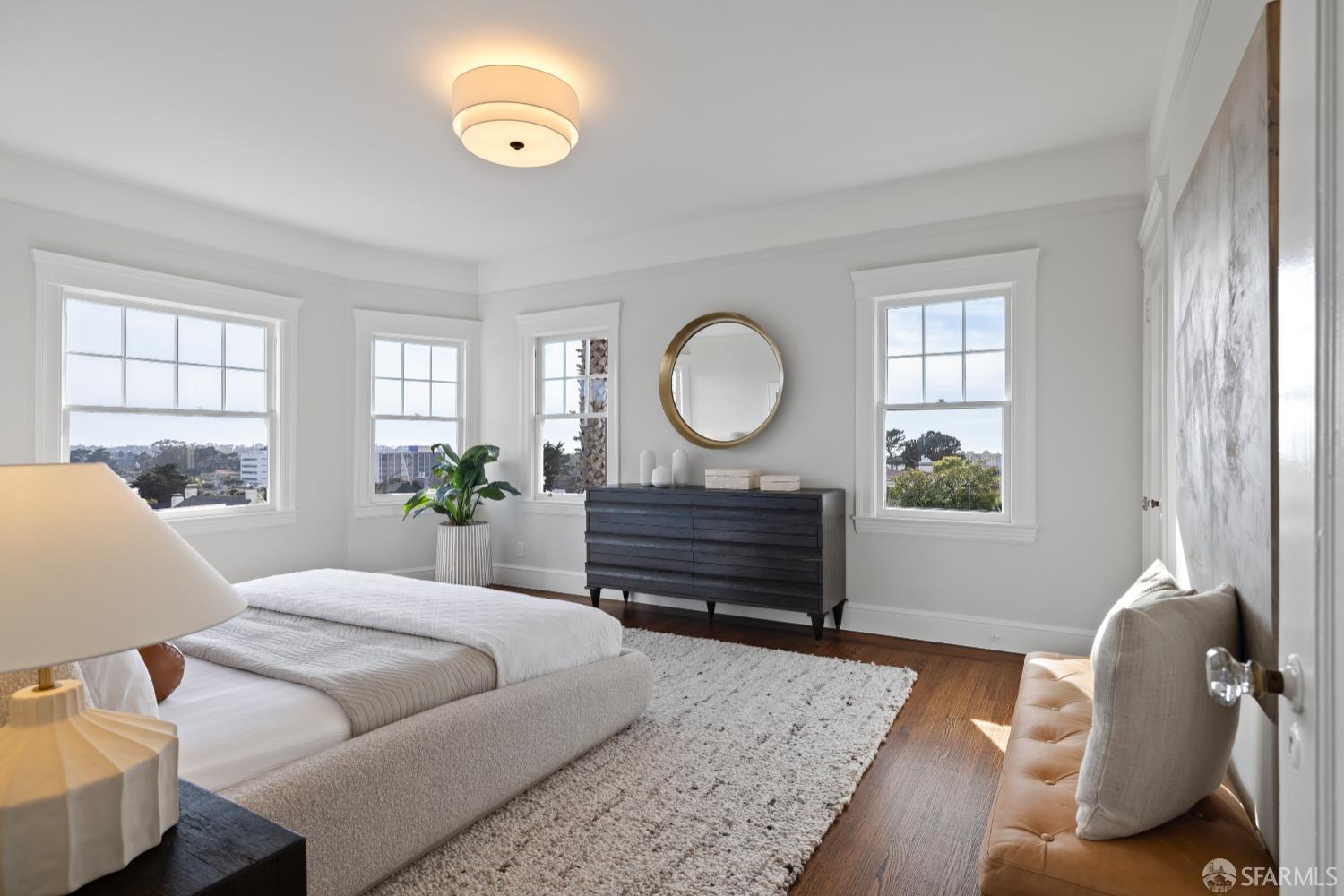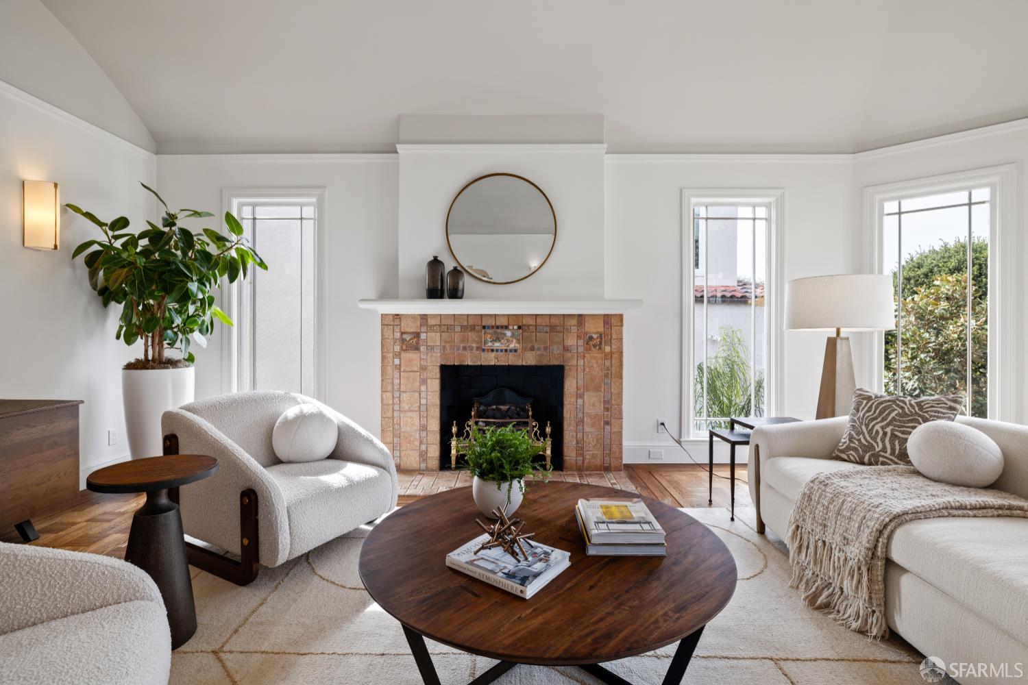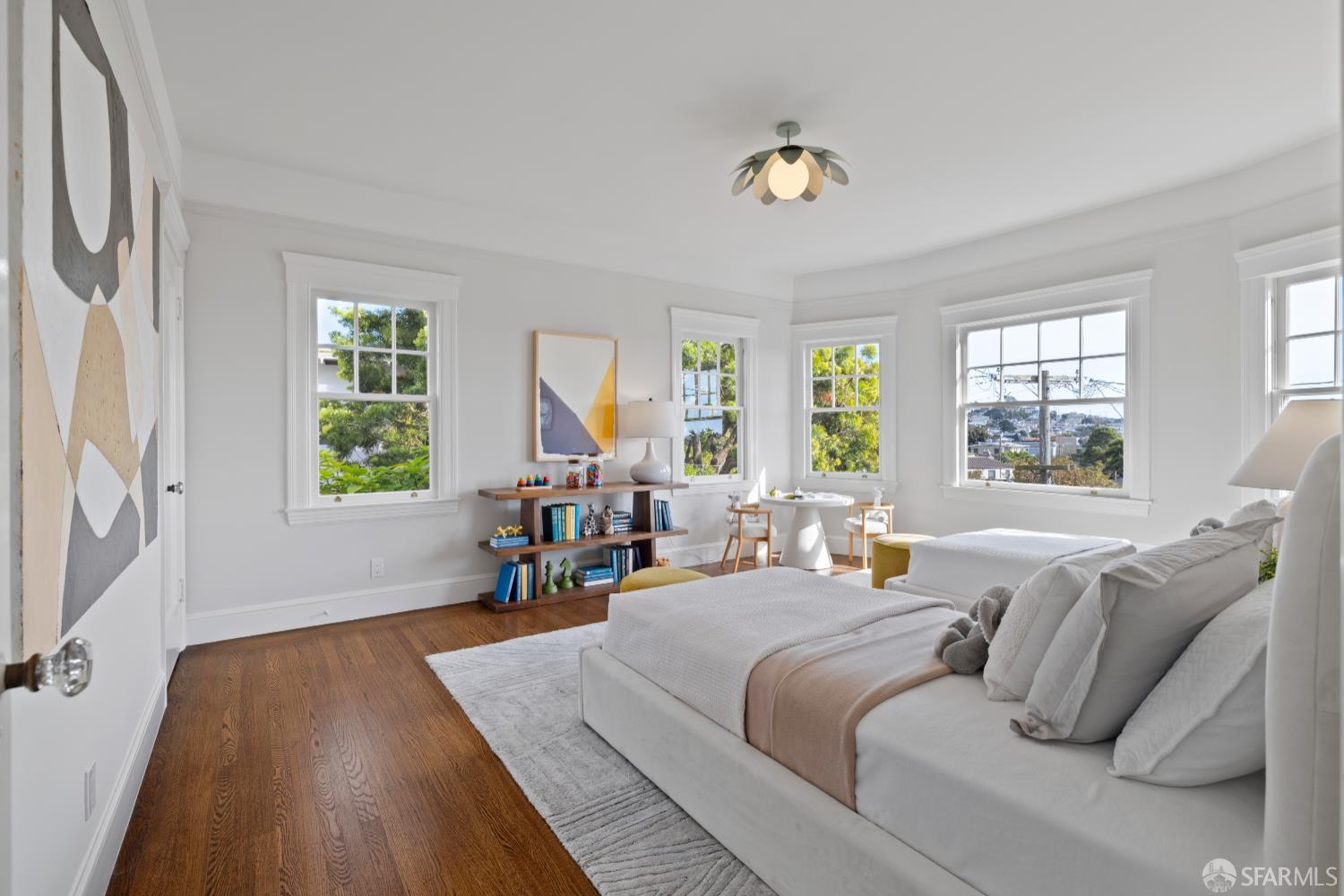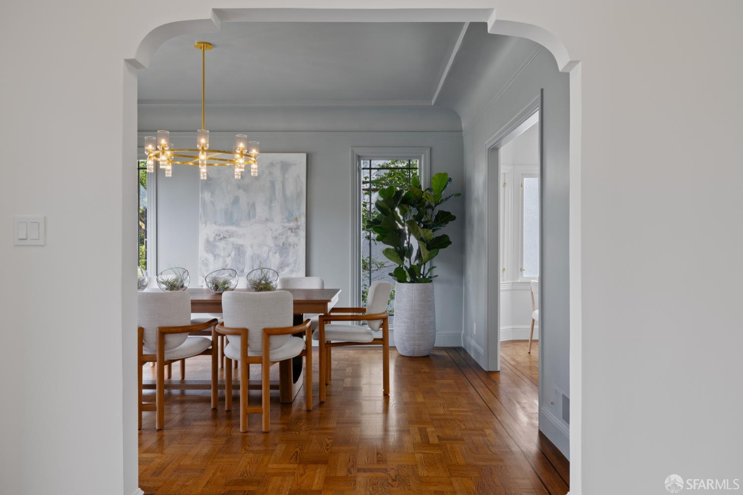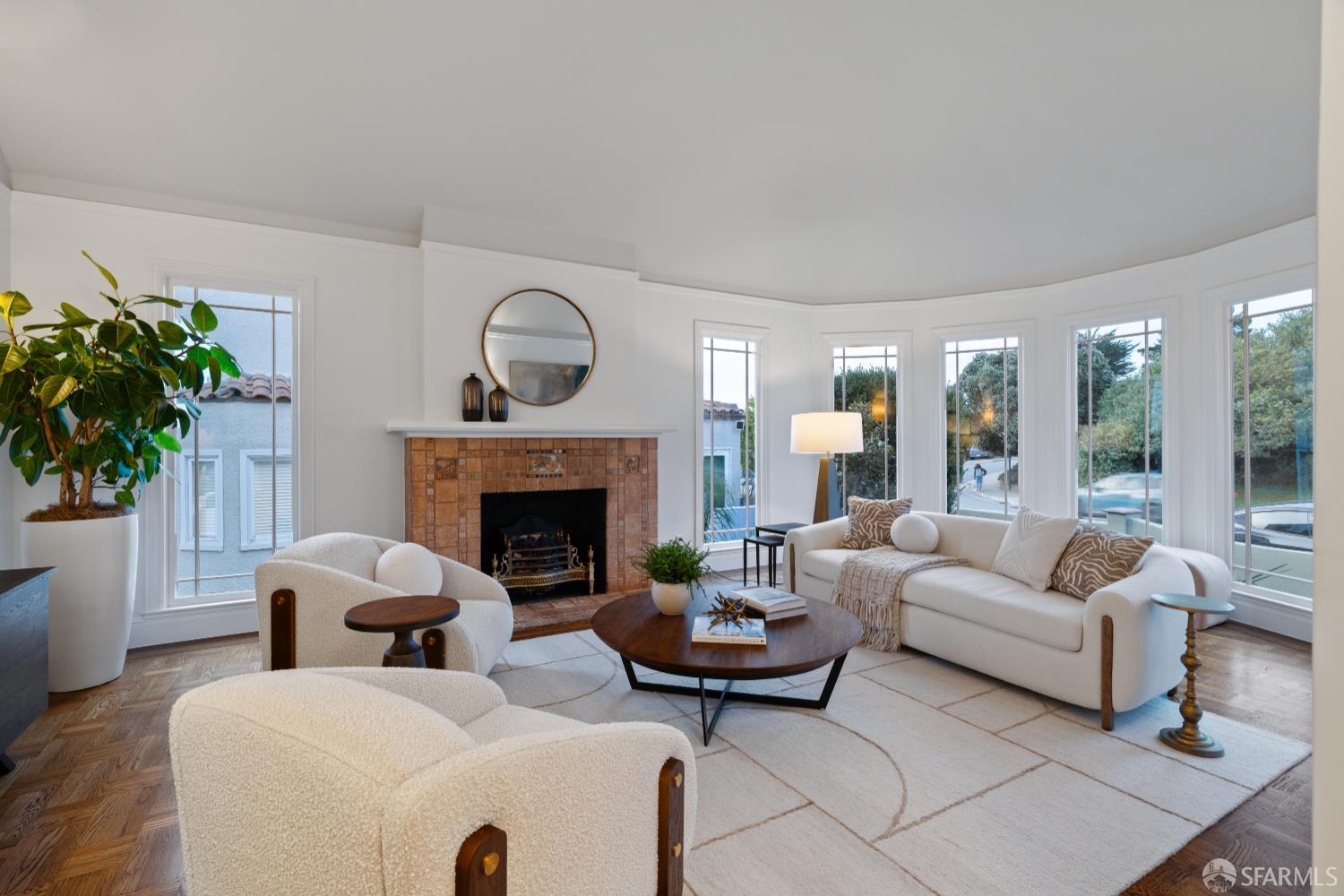 Remarkable Spanish Mediterranean view home proudly situated on a great block in the heart of the neighborhood, close to Stonestown Galleria and public transportation! An impressive, gated courtyard w/garden entrance & terrazzo staircase leads to a splendid portico w/notable front door & into a lobby-like foyer w/center-hall floor plan & convenient coat closet. Grand formal living rm w/high barrel ceiling & phenomenal half dome, five-sided bay window boasts an imposing fireplace w/classic mantel & original Batchelder tile surround, chic wall sconces, crown moldings & gorgeous parquet hardwood floors. Stunning, banquet-sized formal dining rm features recessed lighting, a striking chandelierand an arched picture window. The beautifully updated gourmet kitchen w/wonderful, adjacent breakfast rm, built-in buffet & recessed lighting showcases all stainless-steel appliances incl a four-burner gas range w/griddle, oven & hood, quartz counters, custom-painted wood cabinets w/snazzy hardware, nice pantry & enclosed laundry area. An expansive hallway with linen closet, three huge bedrooms – two w/views to the PacificOcean – & a handsome updated bath finish this floor. An attractive staircase ascends to the master suite level which enjoys a large bedroom, home office or sitting rm, a vintage tiled bath w/pedestal sink & shower over cast-iron tub & picturesque Pacific Ocean views. The lower level comprises a spectacular game rm w/fanciful theatrical stage, a terrific workout rm & a spacious guest quarters w/bedroom, en-suite full bath, walk-in closet & family rm w/gigantic wet bar. The lowest level includes a workroom/artist’s studio w/double cast-iron sink & a big two-car s/s parking garage w/built-in shelving. Fabulous landscaped backyard w/tradesman’s entrance, walkway, level lawn & lush garden w/colorful plants & trees!