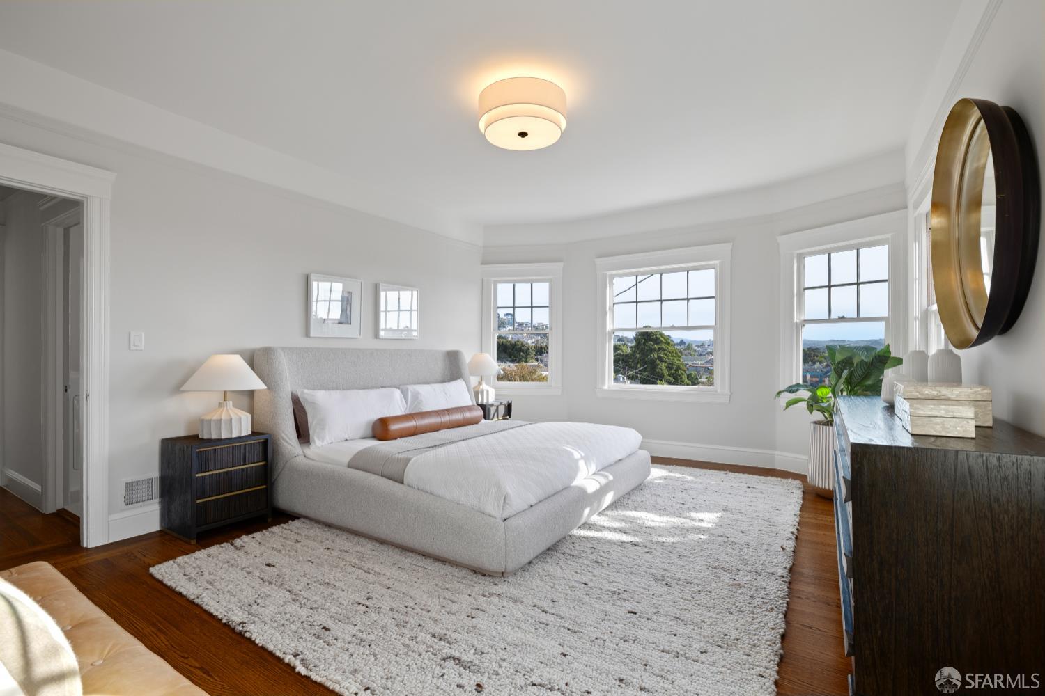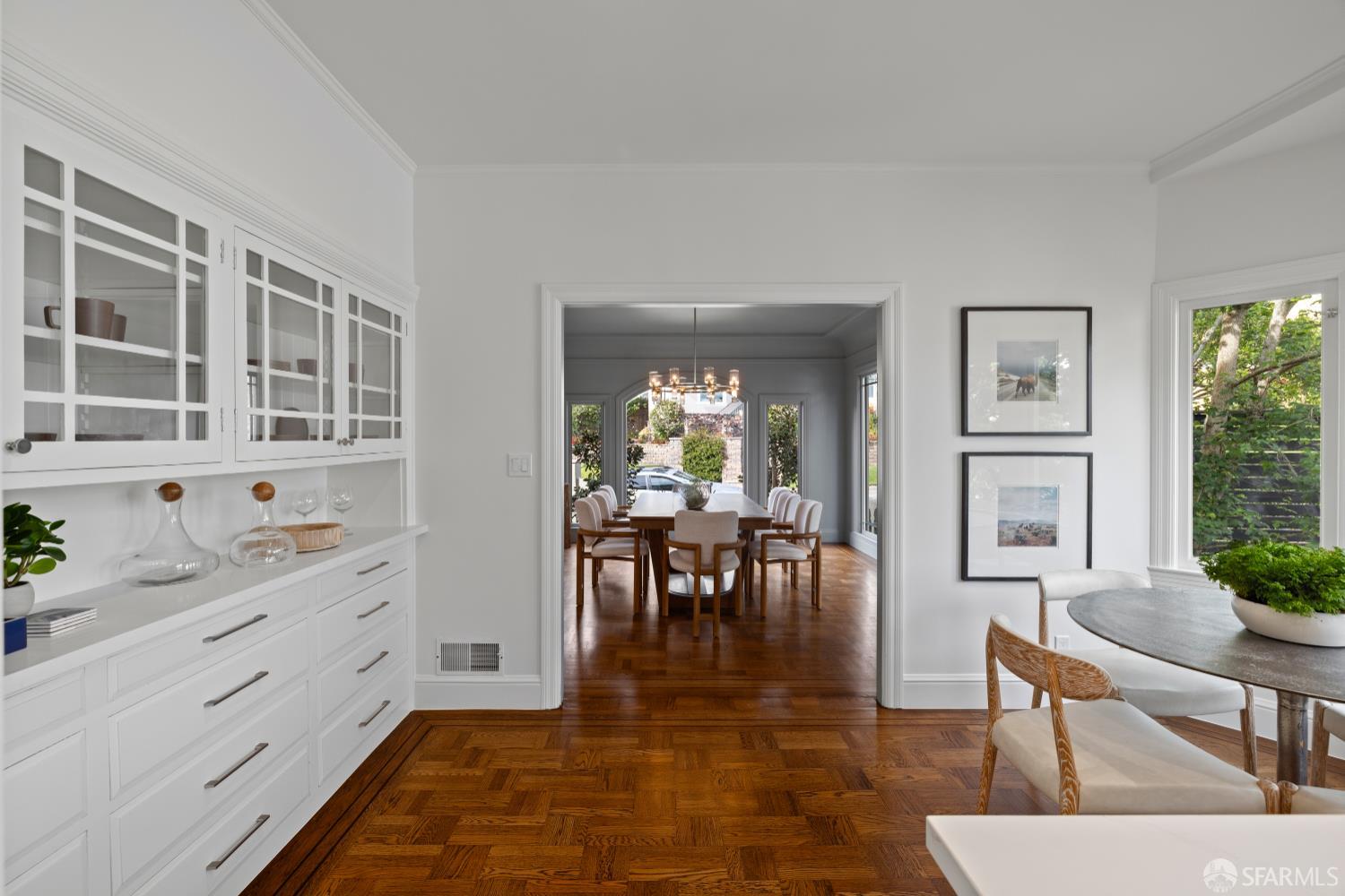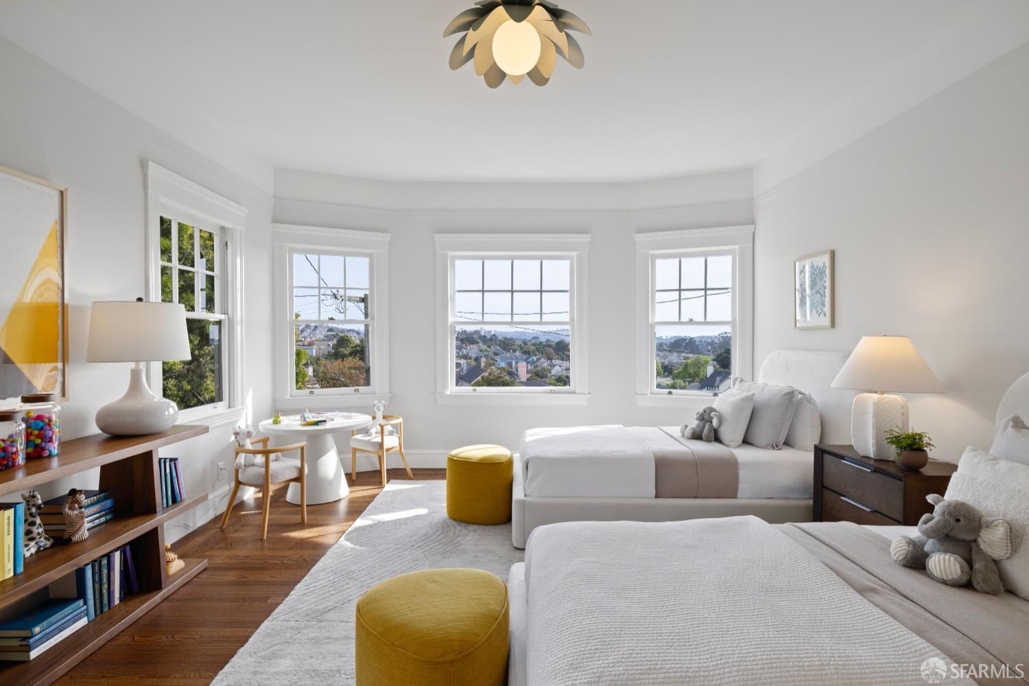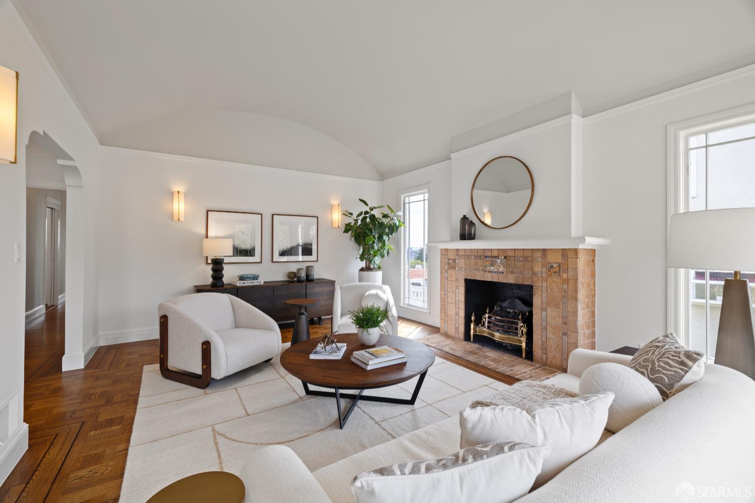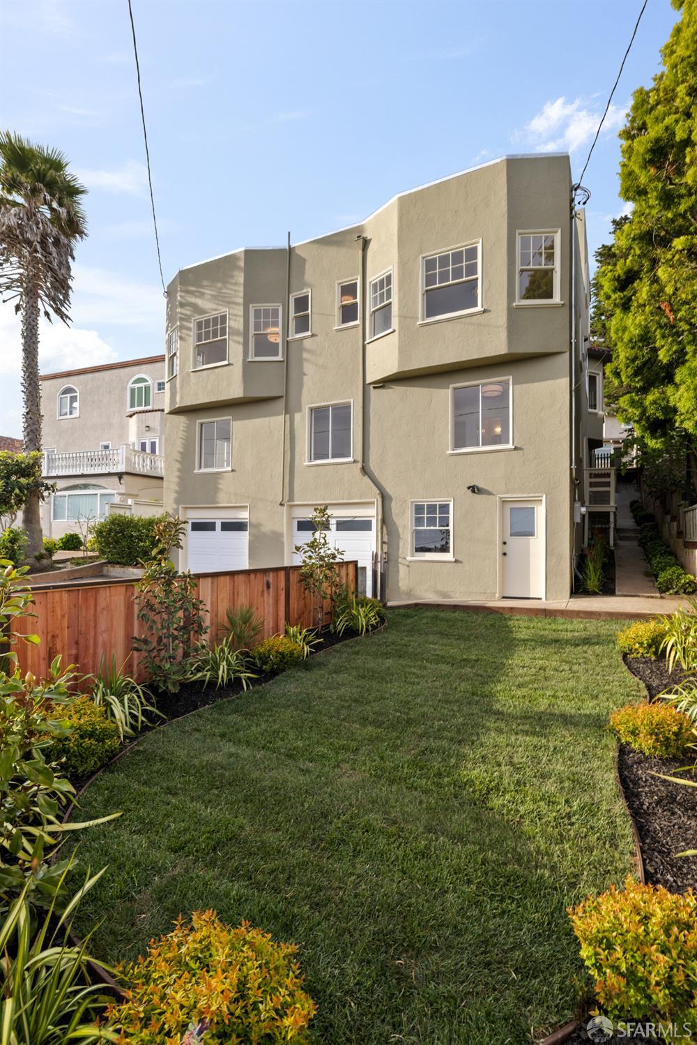 Remarkable Spanish Mediterranean view home proudly situated on a great block in the heart of the neighborhood, close to Stonestown Galleria and public transportation! An impressive, gated courtyard w/garden entrance & terrazzo staircase leads to a splendid portico w/notable front door & into a lobby-like foyer w/center-hall floor plan & convenient coat closet. Grand formal living rm w/high barrel ceiling & phenomenal half dome, five-sided bay window boasts an imposing fireplace w/classic mantel & original Batchelder tile surround, chic wall sconces, crown moldings & gorgeous parquet hardwood floors. Stunning, banquet-sized formal dining rm features recessed lighting, a striking chandelierand an arched picture window. The beautifully updated gourmet kitchen w/wonderful, adjacent breakfast rm, built-in buffet & recessed lighting showcases all stainless-steel appliances incl a four-burner gas range w/griddle, oven & hood, quartz counters, custom-painted wood cabinets w/snazzy hardware, nice pantry & enclosed laundry area. An expansive hallway with linen closet, three huge bedrooms – two w/views to the PacificOcean – & a handsome updated bath finish this floor. An attractive staircase ascends to the master suite level which enjoys a large bedroom, home office or sitting rm, a vintage tiled bath w/pedestal sink & shower over cast-iron tub & picturesque Pacific Ocean views. The lower level comprises a spectacular game rm w/fanciful theatrical stage, a terrific workout rm & a spacious guest quarters w/bedroom, en-suite full bath, walk-in closet & family rm w/gigantic wet bar. The lowest level includes a workroom/artist’s studio w/double cast-iron sink & a big two-car s/s parking garage w/built-in shelving. Fabulous landscaped backyard w/tradesman’s entrance, walkway, level lawn & lush garden w/colorful plants & trees!