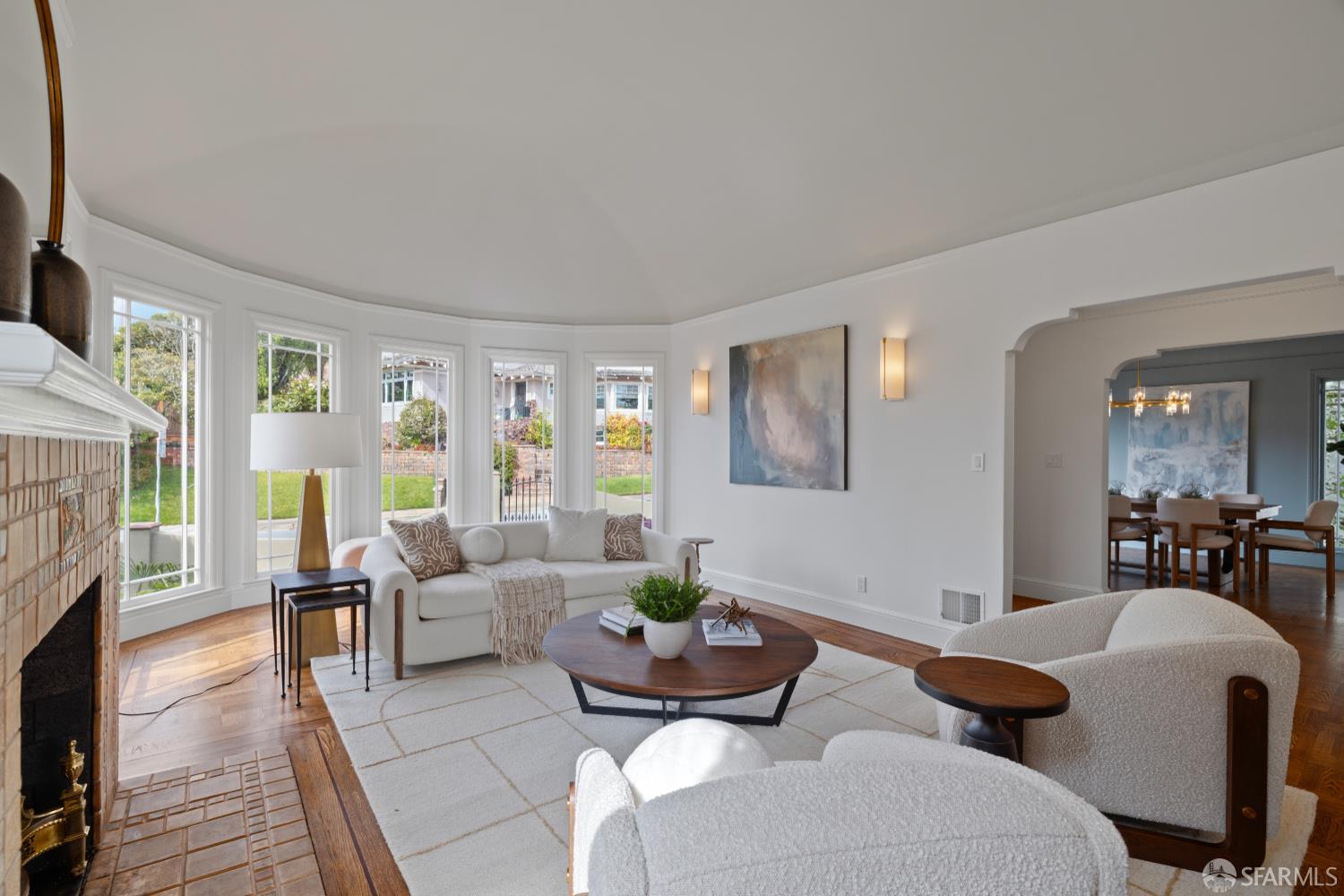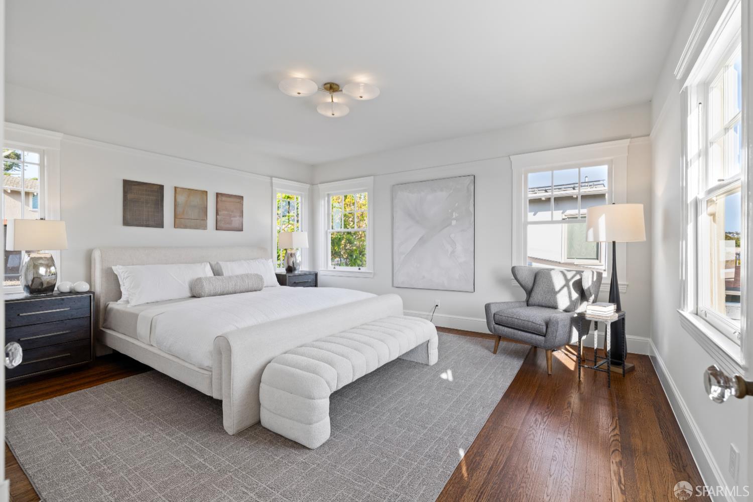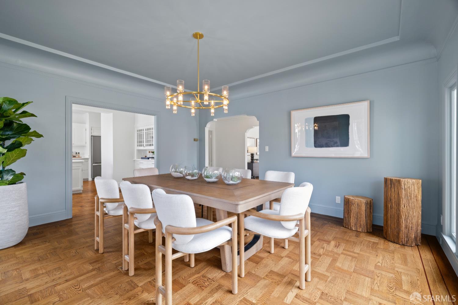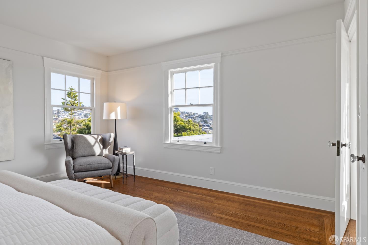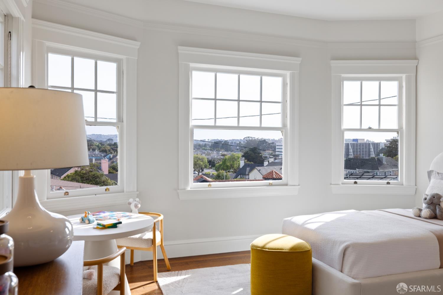 Remarkable Spanish Mediterranean view home proudly situated on a great block in the heart of the neighborhood, close to Stonestown Galleria and public transportation! An impressive, gated courtyard w/garden entrance & terrazzo staircase leads to a splendid portico w/notable front door & into a lobby-like foyer w/center-hall floor plan & convenient coat closet. Grand formal living rm w/high barrel ceiling & phenomenal half dome, five-sided bay window boasts an imposing fireplace w/classic mantel & original Batchelder tile surround, chic wall sconces, crown moldings & gorgeous parquet hardwood floors. Stunning, banquet-sized formal dining rm features recessed lighting, a striking chandelierand an arched picture window. The beautifully updated gourmet kitchen w/wonderful, adjacent breakfast rm, built-in buffet & recessed lighting showcases all stainless-steel appliances incl a four-burner gas range w/griddle, oven & hood, quartz counters, custom-painted wood cabinets w/snazzy hardware, nice pantry & enclosed laundry area. An expansive hallway with linen closet, three huge bedrooms – two w/views to the PacificOcean – & a handsome updated bath finish this floor. An attractive staircase ascends to the master suite level which enjoys a large bedroom, home office or sitting rm, a vintage tiled bath w/pedestal sink & shower over cast-iron tub & picturesque Pacific Ocean views. The lower level comprises a spectacular game rm w/fanciful theatrical stage, a terrific workout rm & a spacious guest quarters w/bedroom, en-suite full bath, walk-in closet & family rm w/gigantic wet bar. The lowest level includes a workroom/artist’s studio w/double cast-iron sink & a big two-car s/s parking garage w/built-in shelving. Fabulous landscaped backyard w/tradesman’s entrance, walkway, level lawn & lush garden w/colorful plants & trees!