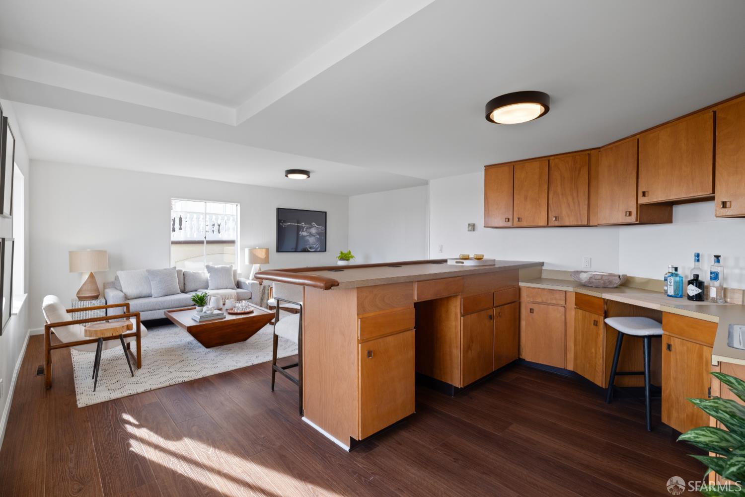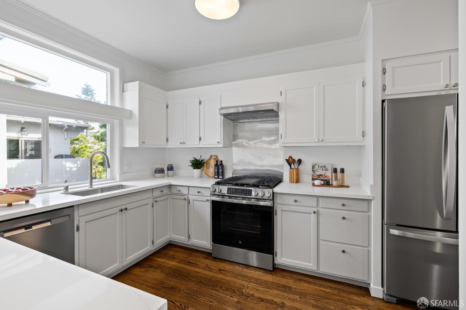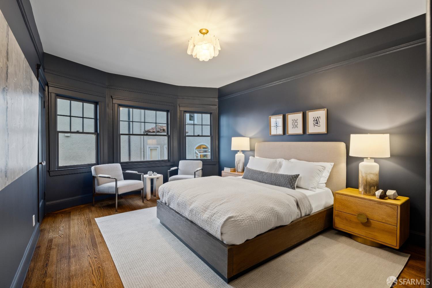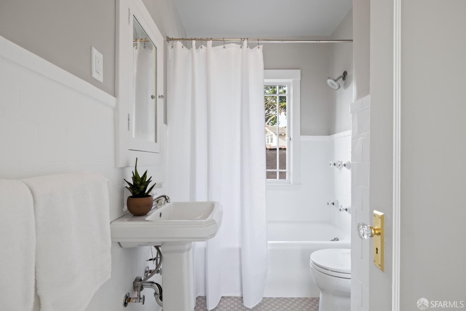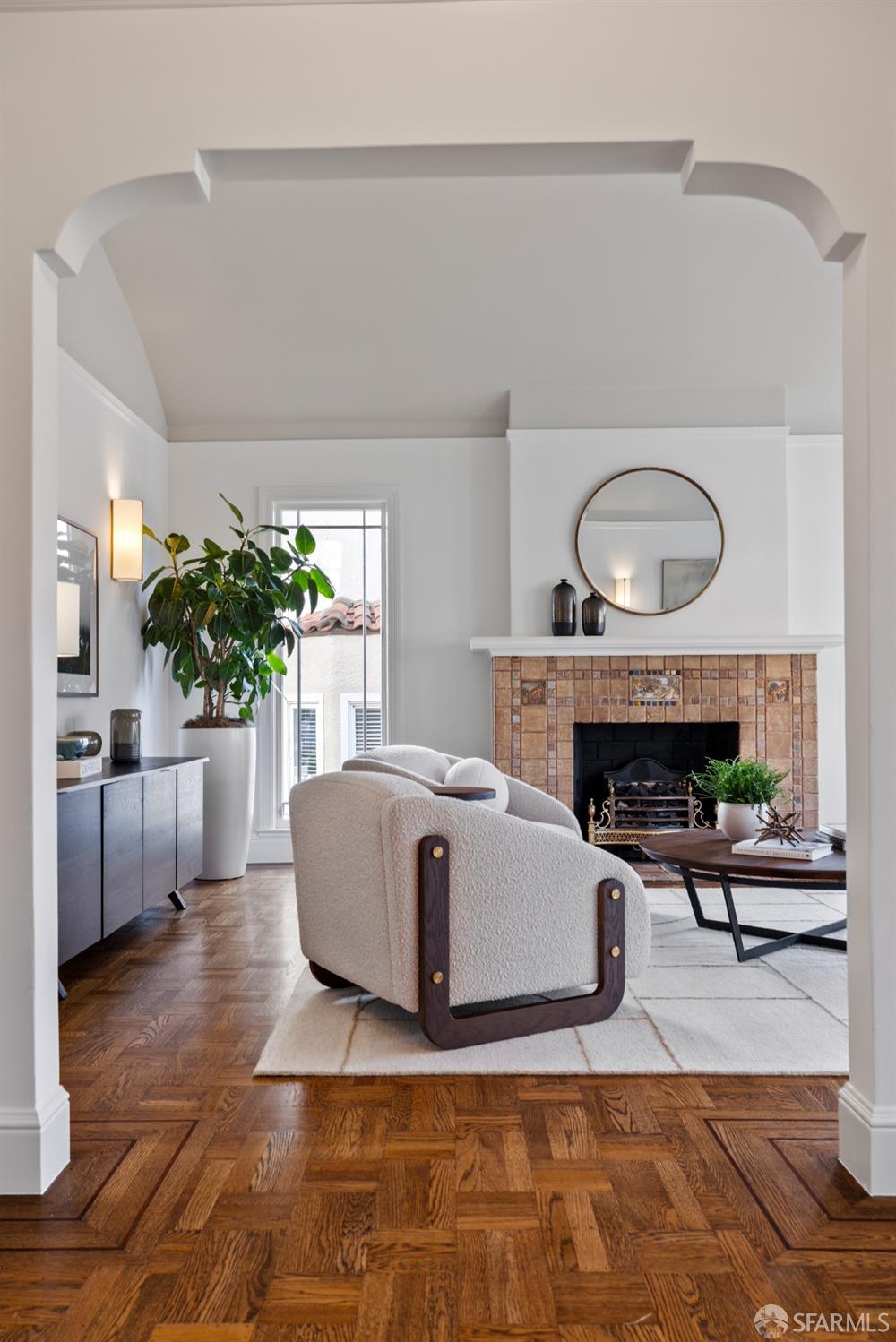 Remarkable Spanish Mediterranean view home proudly situated on a great block in the heart of the neighborhood, close to Stonestown Galleria and public transportation! An impressive, gated courtyard w/garden entrance & terrazzo staircase leads to a splendid portico w/notable front door & into a lobby-like foyer w/center-hall floor plan & convenient coat closet. Grand formal living rm w/high barrel ceiling & phenomenal half dome, five-sided bay window boasts an imposing fireplace w/classic mantel & original Batchelder tile surround, chic wall sconces, crown moldings & gorgeous parquet hardwood floors. Stunning, banquet-sized formal dining rm features recessed lighting, a striking chandelierand an arched picture window. The beautifully updated gourmet kitchen w/wonderful, adjacent breakfast rm, built-in buffet & recessed lighting showcases all stainless-steel appliances incl a four-burner gas range w/griddle, oven & hood, quartz counters, custom-painted wood cabinets w/snazzy hardware, nice pantry & enclosed laundry area. An expansive hallway with linen closet, three huge bedrooms – two w/views to the PacificOcean – & a handsome updated bath finish this floor. An attractive staircase ascends to the master suite level which enjoys a large bedroom, home office or sitting rm, a vintage tiled bath w/pedestal sink & shower over cast-iron tub & picturesque Pacific Ocean views. The lower level comprises a spectacular game rm w/fanciful theatrical stage, a terrific workout rm & a spacious guest quarters w/bedroom, en-suite full bath, walk-in closet & family rm w/gigantic wet bar. The lowest level includes a workroom/artist’s studio w/double cast-iron sink & a big two-car s/s parking garage w/built-in shelving. Fabulous landscaped backyard w/tradesman’s entrance, walkway, level lawn & lush garden w/colorful plants & trees!