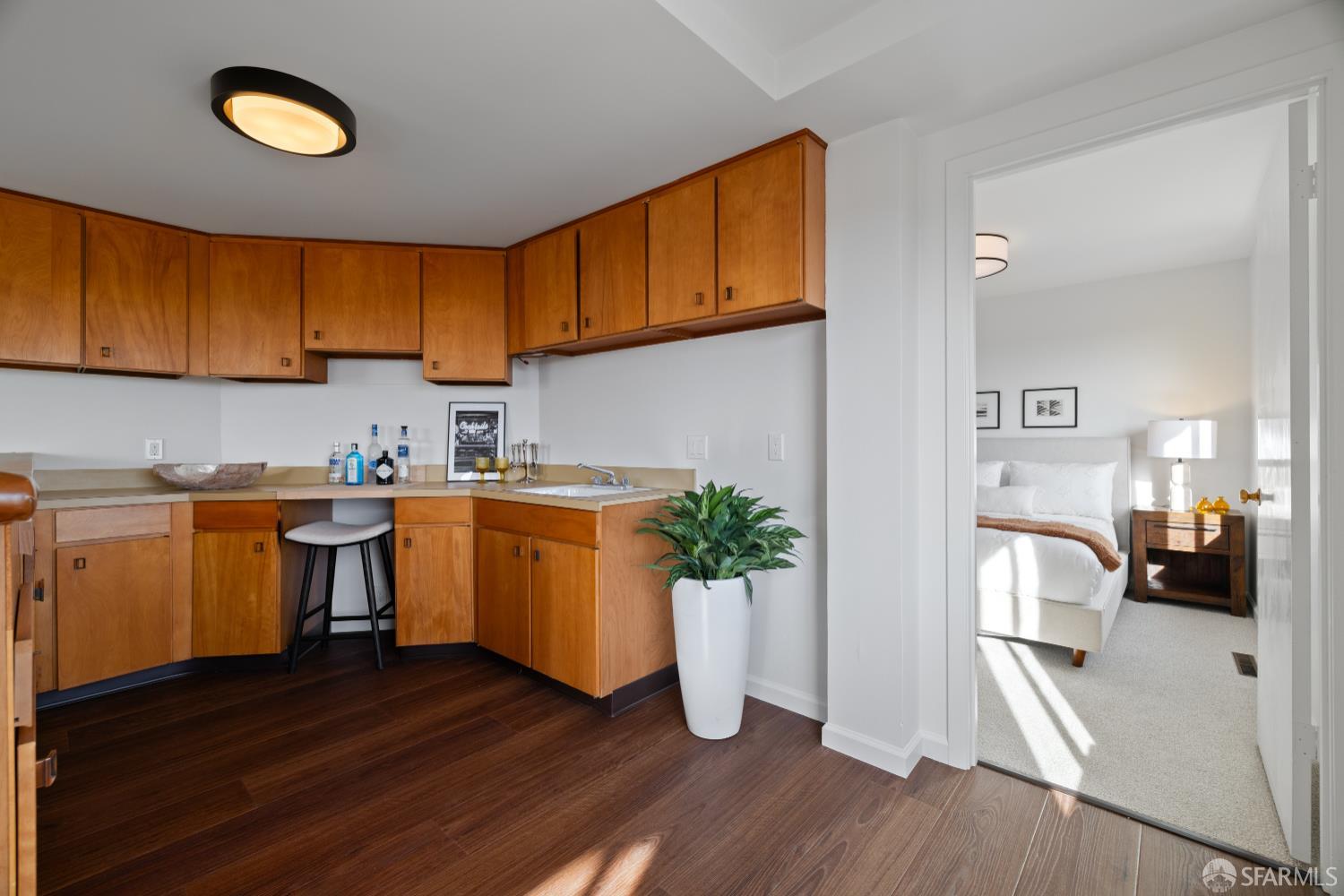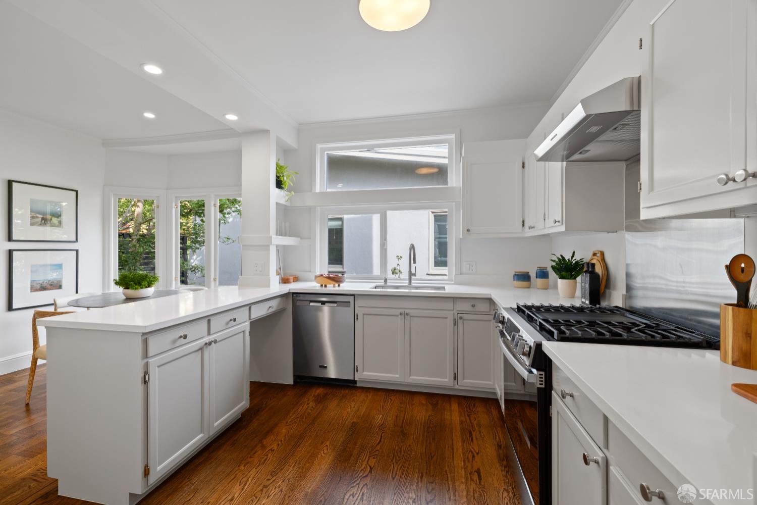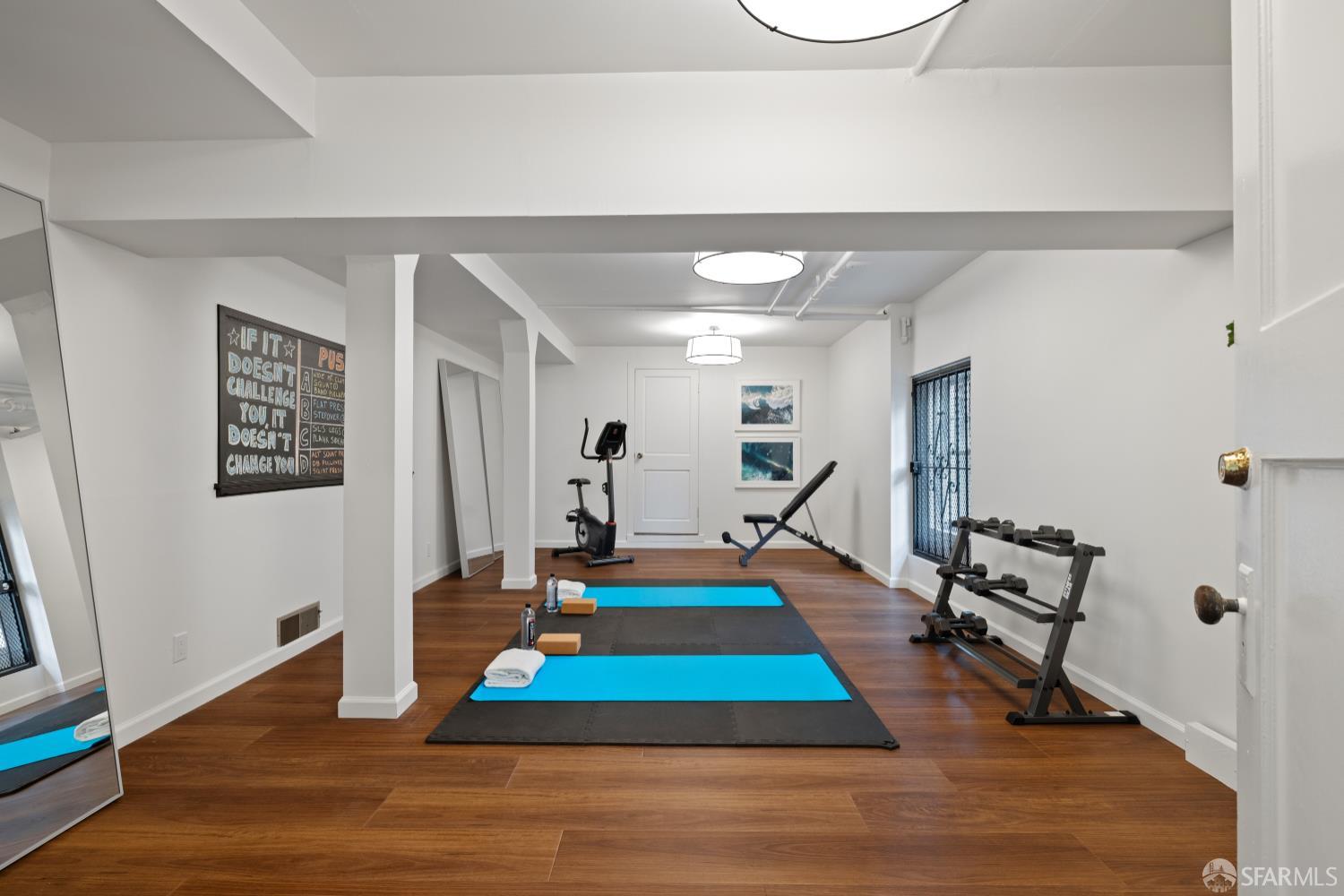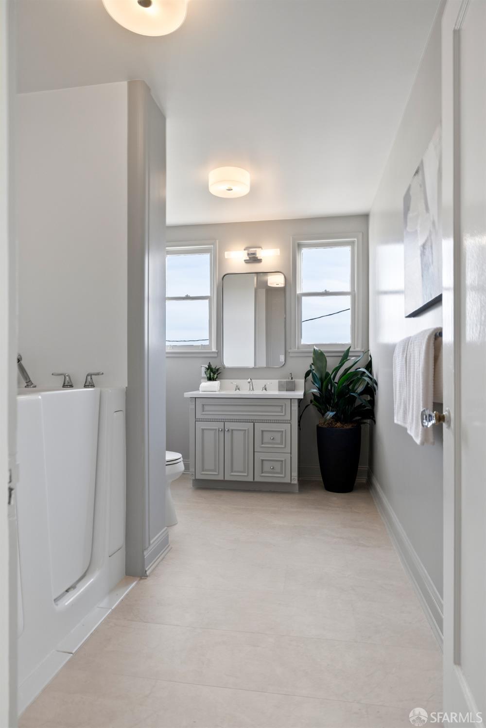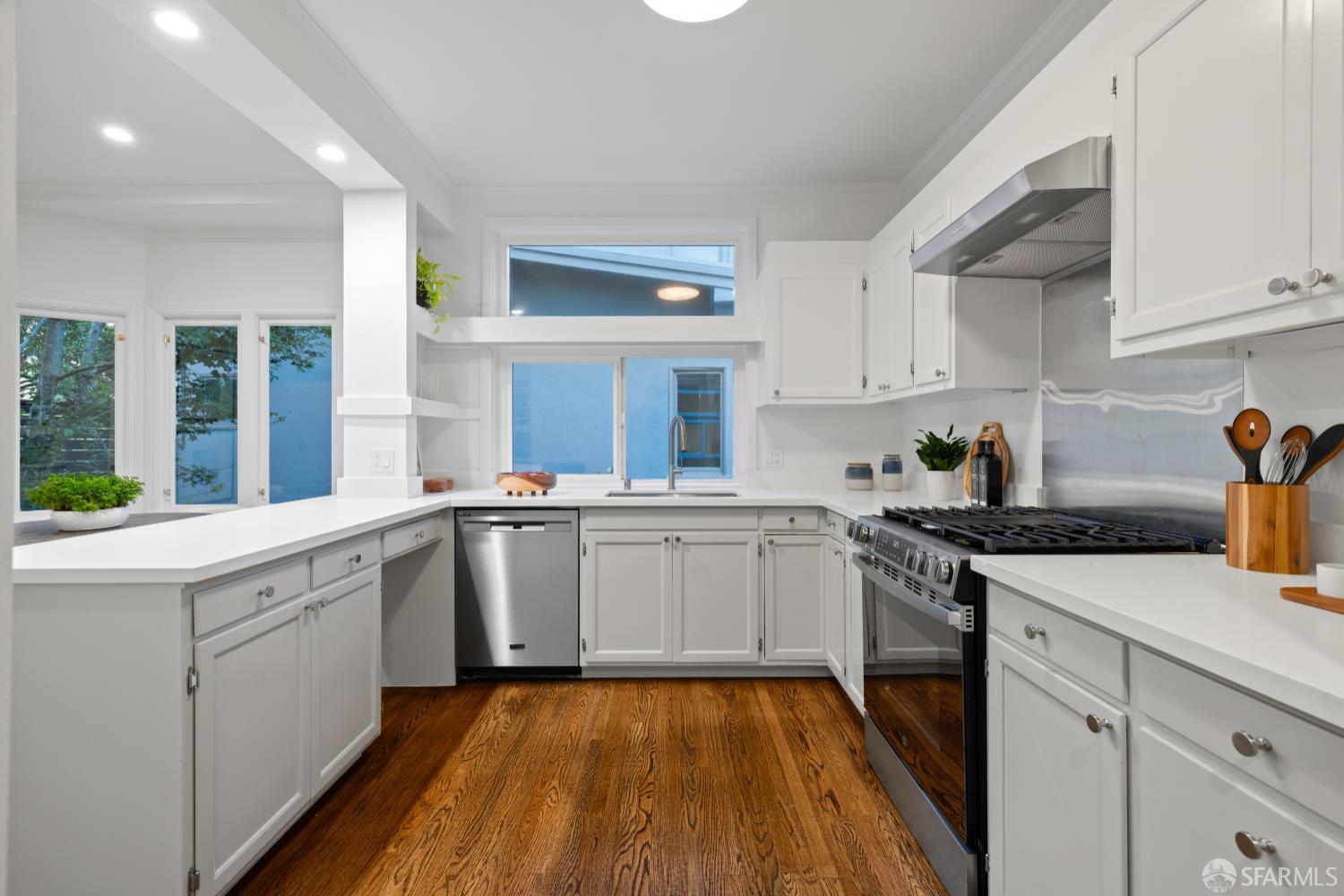 Remarkable Spanish Mediterranean view home proudly situated on a great block in the heart of the neighborhood, close to Stonestown Galleria and public transportation! An impressive, gated courtyard w/garden entrance & terrazzo staircase leads to a splendid portico w/notable front door & into a lobby-like foyer w/center-hall floor plan & convenient coat closet. Grand formal living rm w/high barrel ceiling & phenomenal half dome, five-sided bay window boasts an imposing fireplace w/classic mantel & original Batchelder tile surround, chic wall sconces, crown moldings & gorgeous parquet hardwood floors. Stunning, banquet-sized formal dining rm features recessed lighting, a striking chandelierand an arched picture window. The beautifully updated gourmet kitchen w/wonderful, adjacent breakfast rm, built-in buffet & recessed lighting showcases all stainless-steel appliances incl a four-burner gas range w/griddle, oven & hood, quartz counters, custom-painted wood cabinets w/snazzy hardware, nice pantry & enclosed laundry area. An expansive hallway with linen closet, three huge bedrooms – two w/views to the PacificOcean – & a handsome updated bath finish this floor. An attractive staircase ascends to the master suite level which enjoys a large bedroom, home office or sitting rm, a vintage tiled bath w/pedestal sink & shower over cast-iron tub & picturesque Pacific Ocean views. The lower level comprises a spectacular game rm w/fanciful theatrical stage, a terrific workout rm & a spacious guest quarters w/bedroom, en-suite full bath, walk-in closet & family rm w/gigantic wet bar. The lowest level includes a workroom/artist’s studio w/double cast-iron sink & a big two-car s/s parking garage w/built-in shelving. Fabulous landscaped backyard w/tradesman’s entrance, walkway, level lawn & lush garden w/colorful plants & trees!