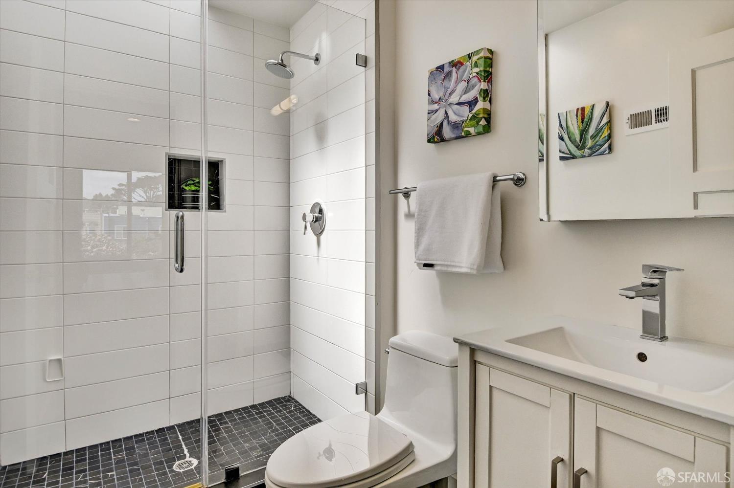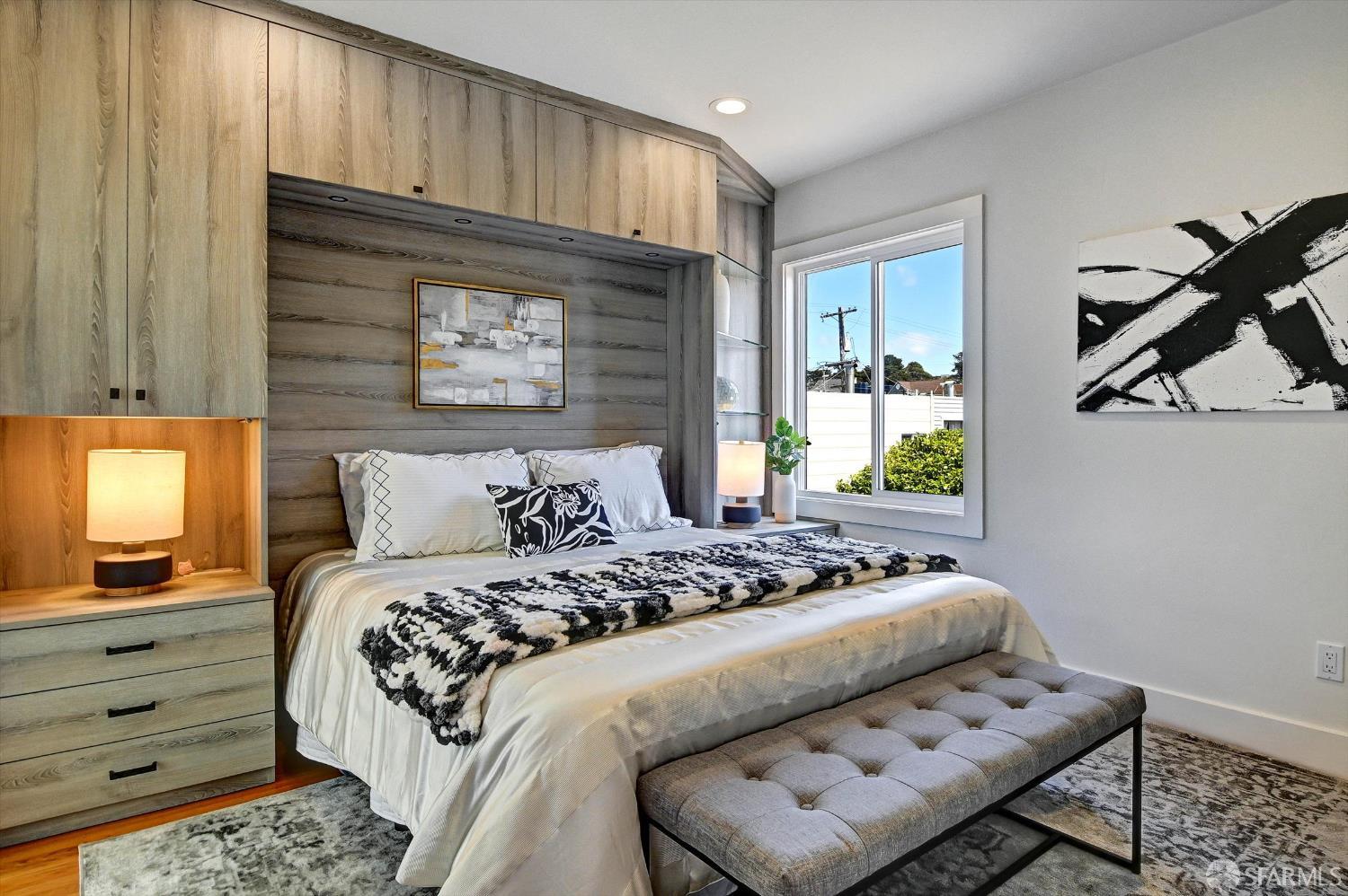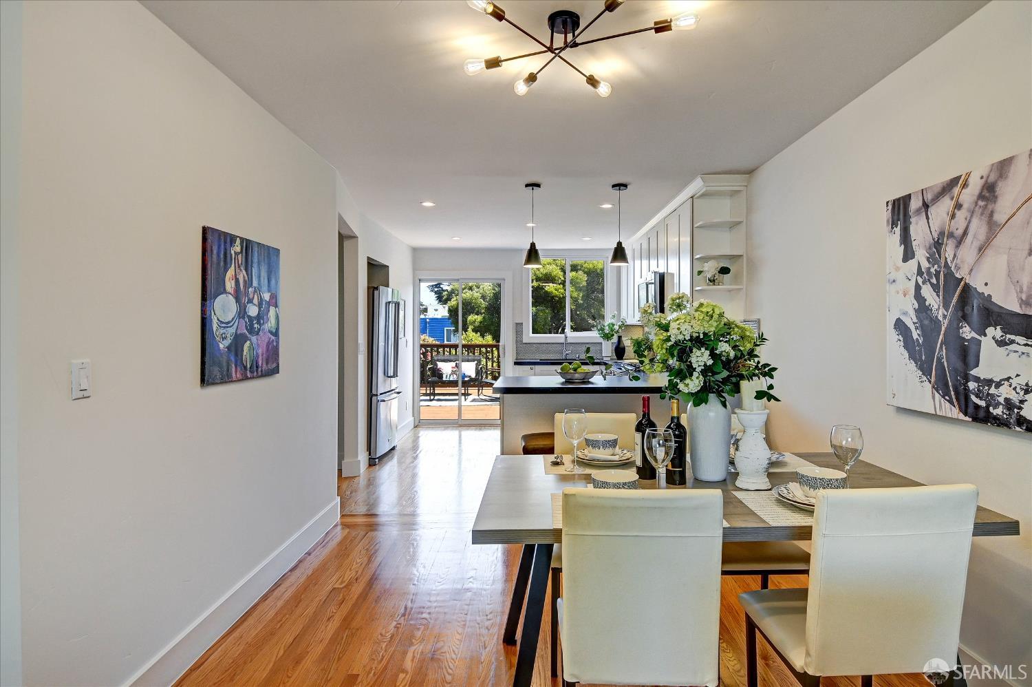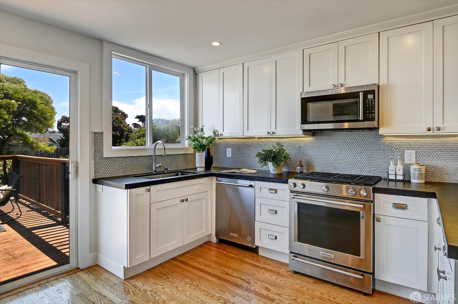 Ideally situated in the desirable Outer Parkside neighborhood, this beautifully updated home offers exceptional convenience just a few blocks from Taraval Street MUNI lines, Sunset Boulevard transit, the San Francisco Zoo, Lakeshore Shopping Center, Sunset Supermarket, Ocean Beach, South Sunset Playground, and scenic Lake Merced, with easy access to major freeways for a seamless commute. The top level showcases a thoughtfully remodeled open-concept layout featuring a modern kitchen, dining area, and inviting living room enhanced by custom built-in shelving. This level also includes a spacious primary suite with an en-suite bath, a second bedroom, and an additional full bathroom. The kitchen flows effortlessly onto an expansive deck – perfect for outdoor dining, entertaining, or simply enjoying fresh coastal air. The ground floor provides versatile living space with a second primary suite complete with a full bath, along with a generous family room featuring more custom built-ins, ideal for relaxation or multi-generational living. A one-car garage with interior access completes this functional and well-designed home.
