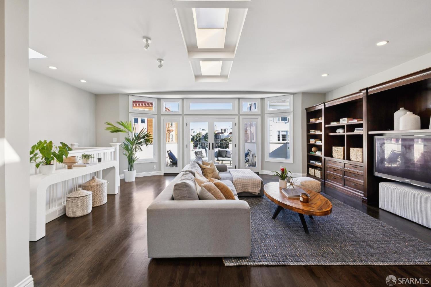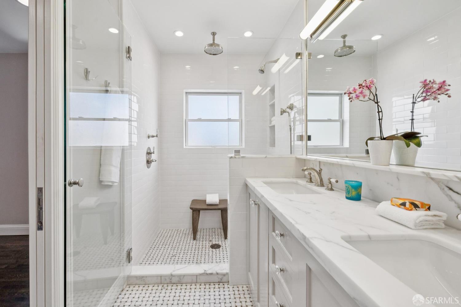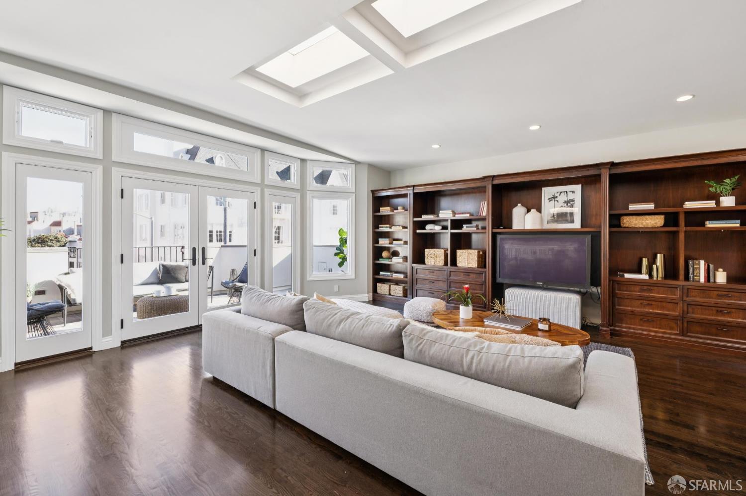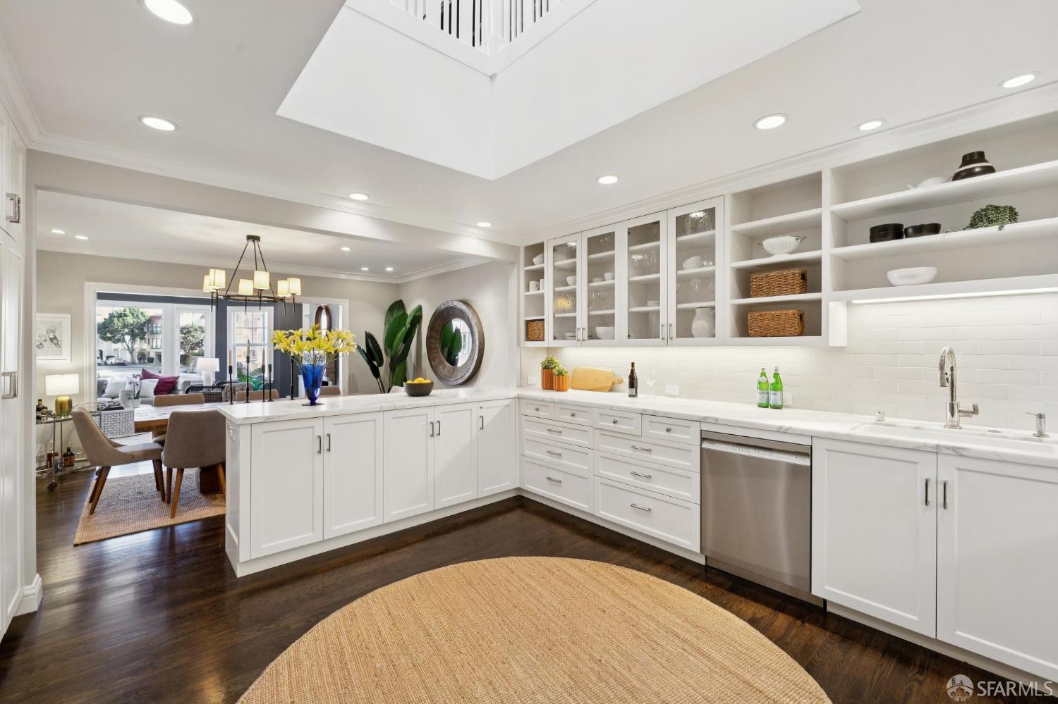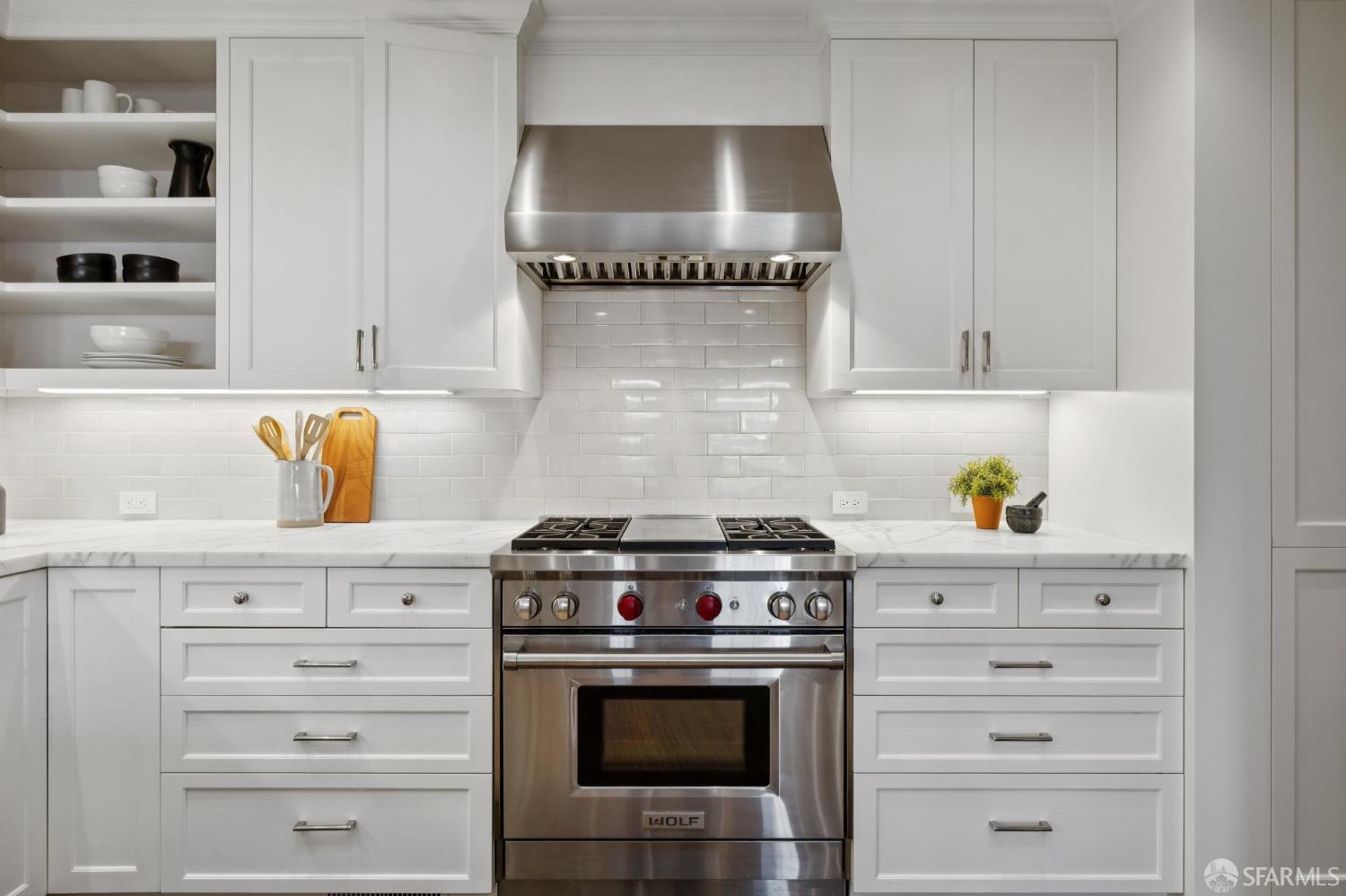 Don’t miss this opportunity to own a rare remodeled 4 bedroom Marina home on 3 levels — just steps to the cafes, boutiques & fine dining on vibrant Chestnut St & the natural beauty of the Marina Green, Crissy Field & The Presidio. The gracious entry welcomes you up to the large formal living room w/stately stone mantle fireplace & built-in shelving, elegant dining room & state-of-the-art sky-lit kitchen boasting professional grade appliances, abundant custom cabinetry, breakfast bar & gorgeous marble counters. The luxurious primary suite features custom closets, a separate office/nursery & spa-like en-suite bathroom w/dual marble vanity & heated floors. An elegant 1/2 bath and coat closet complete this level. Stairs lead up to the massive family room w/entertainment area & 2nd bedroom suite w/full bathroom. 2 walk-out patios offer city & bridge views. The lower level offers 2 large bedrooms opening to the serene landscaped garden w/fountain & fireplace (perfect for al-fresco dining), a full bathroom, laundry room and closet. Beautiful wood floors, numerous skylights, dual-zone heating, 500 wine bottle cooler, dual-paned windows, period details, recessed lighting, 2+ parking, abundant storage, alarm and much more…!
