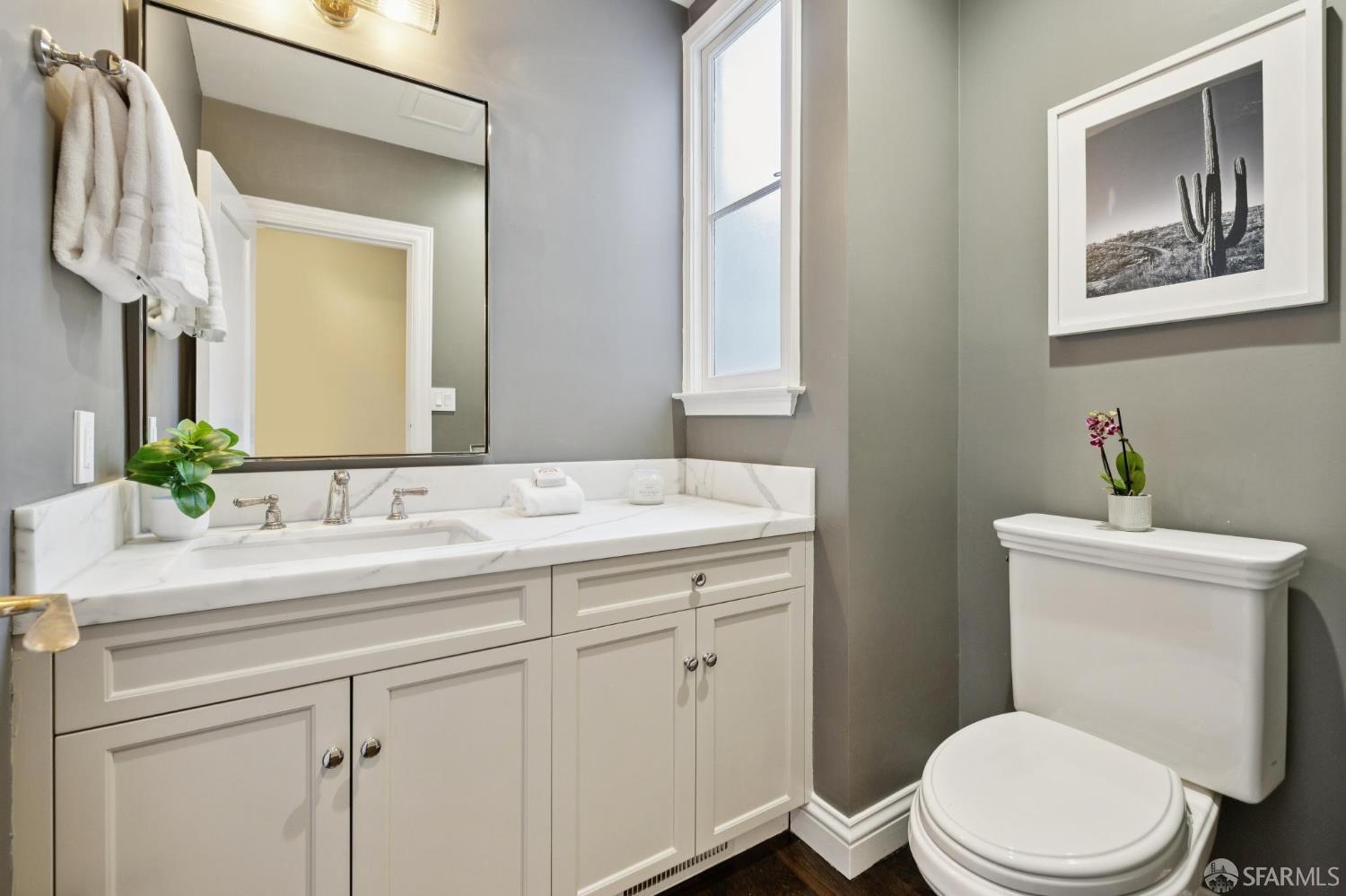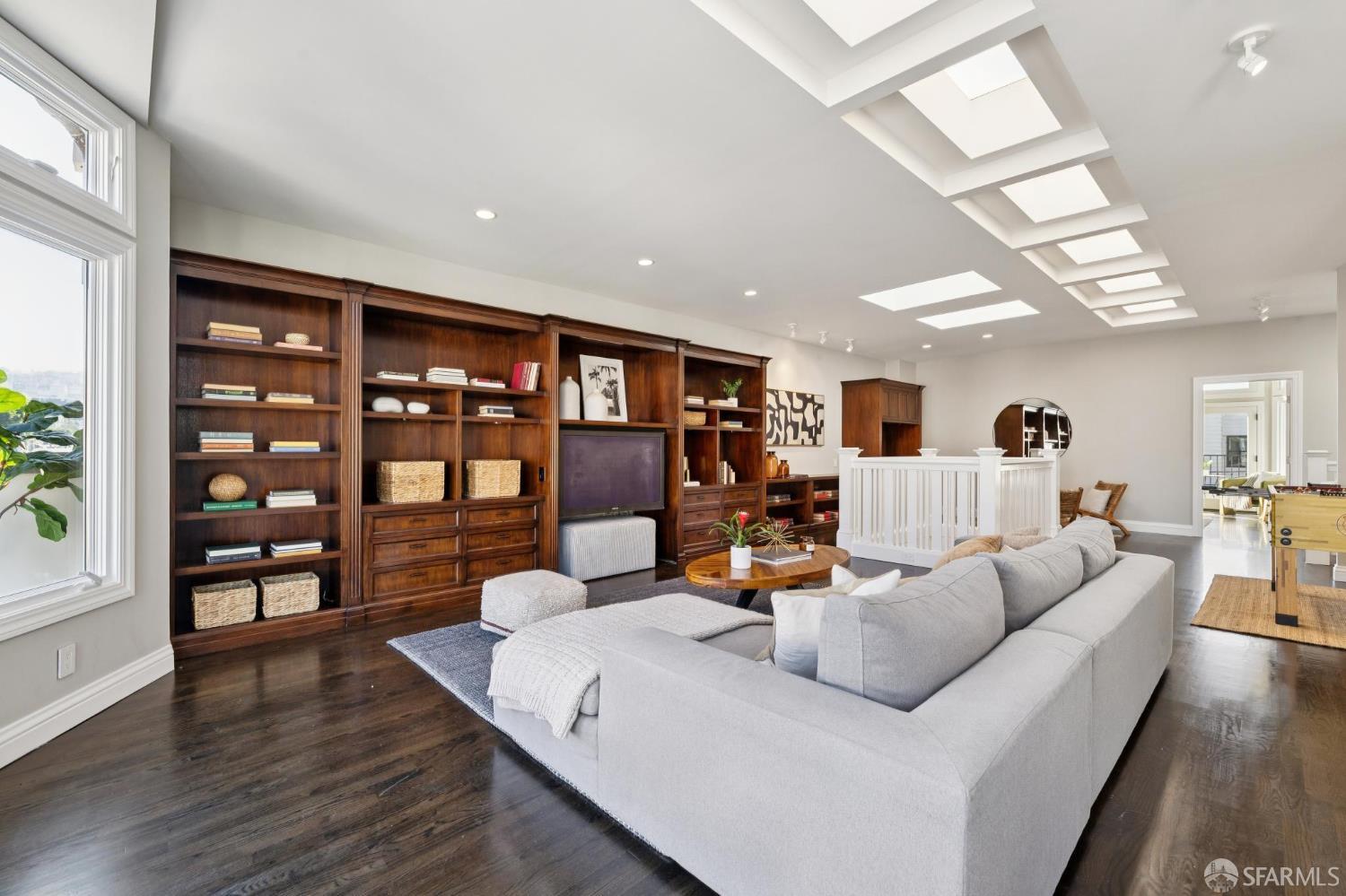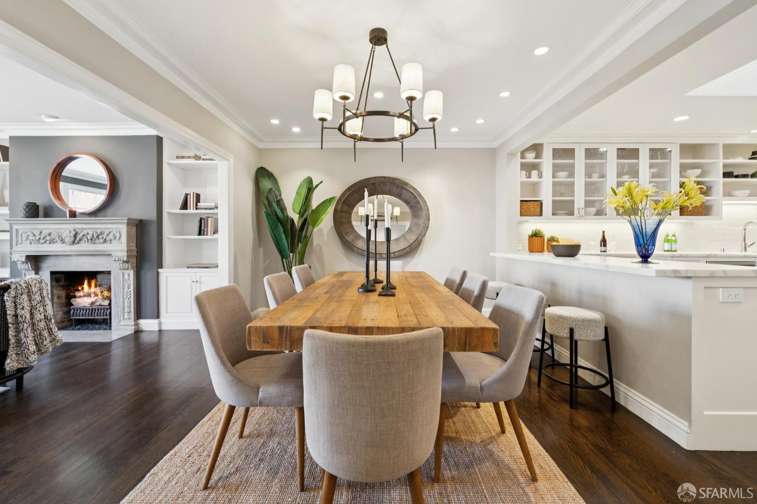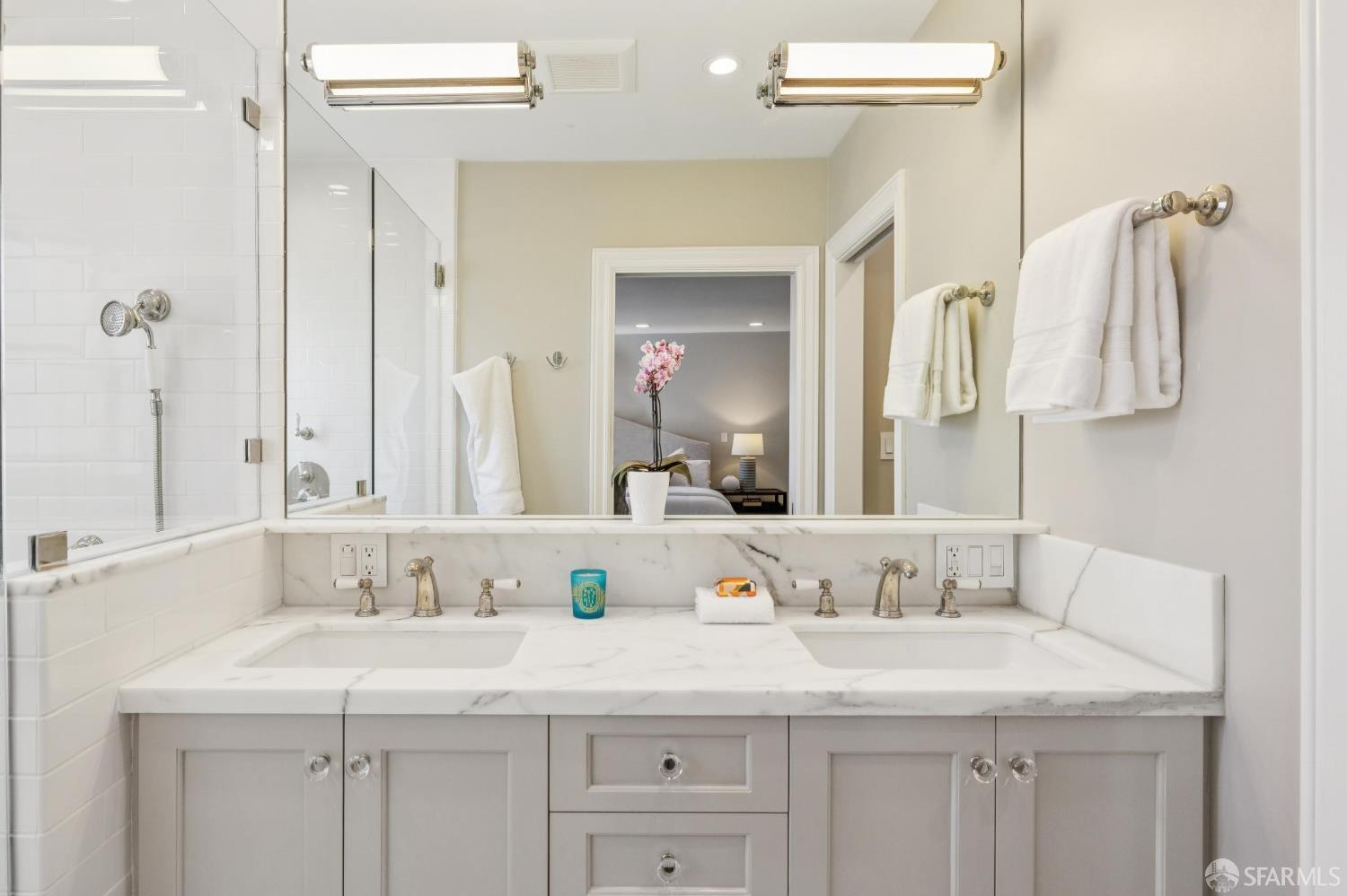 Don’t miss this opportunity to own a rare remodeled 4 bedroom Marina home on 3 levels — just steps to the cafes, boutiques & fine dining on vibrant Chestnut St & the natural beauty of the Marina Green, Crissy Field & The Presidio. The gracious entry welcomes you up to the large formal living room w/stately stone mantle fireplace & built-in shelving, elegant dining room & state-of-the-art sky-lit kitchen boasting professional grade appliances, abundant custom cabinetry, breakfast bar & gorgeous marble counters. The luxurious primary suite features custom closets, a separate office/nursery & spa-like en-suite bathroom w/dual marble vanity & heated floors. An elegant 1/2 bath and coat closet complete this level. Stairs lead up to the massive family room w/entertainment area & 2nd bedroom suite w/full bathroom. 2 walk-out patios offer city & bridge views. The lower level offers 2 large bedrooms opening to the serene landscaped garden w/fountain & fireplace (perfect for al-fresco dining), a full bathroom, laundry room and closet. Beautiful wood floors, numerous skylights, dual-zone heating, 500 wine bottle cooler, dual-paned windows, period details, recessed lighting, 2+ parking, abundant storage, alarm and much more…!