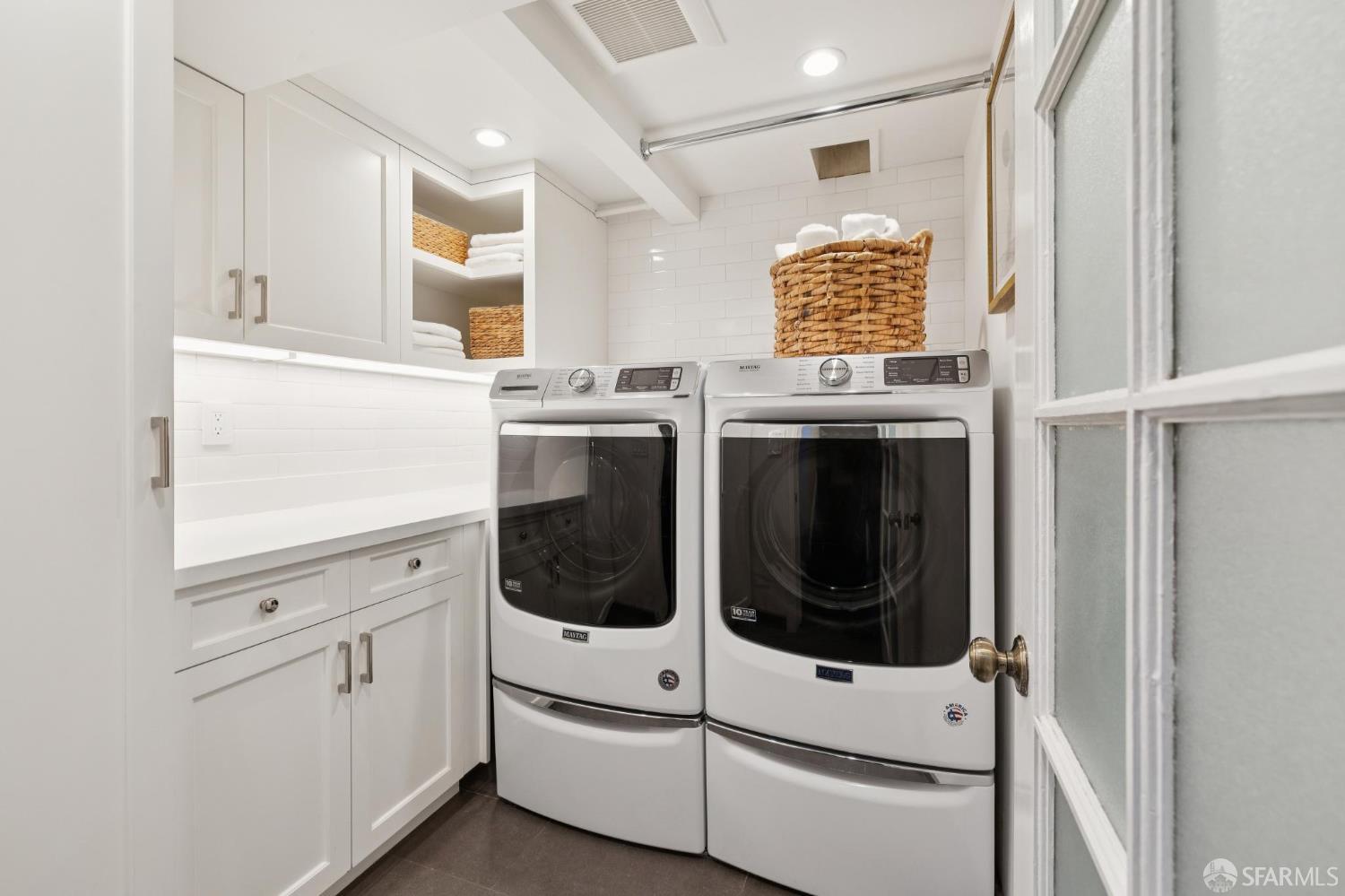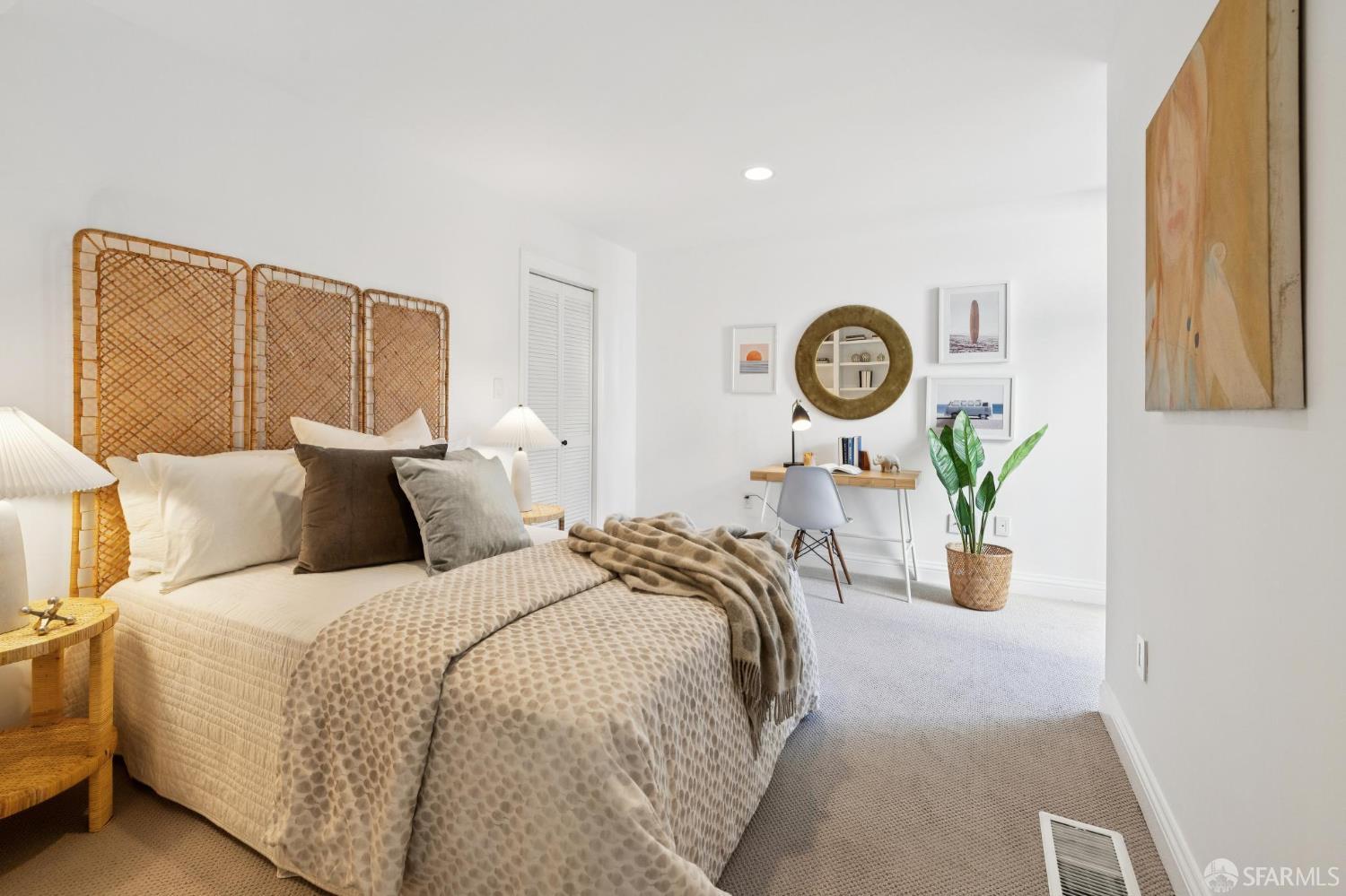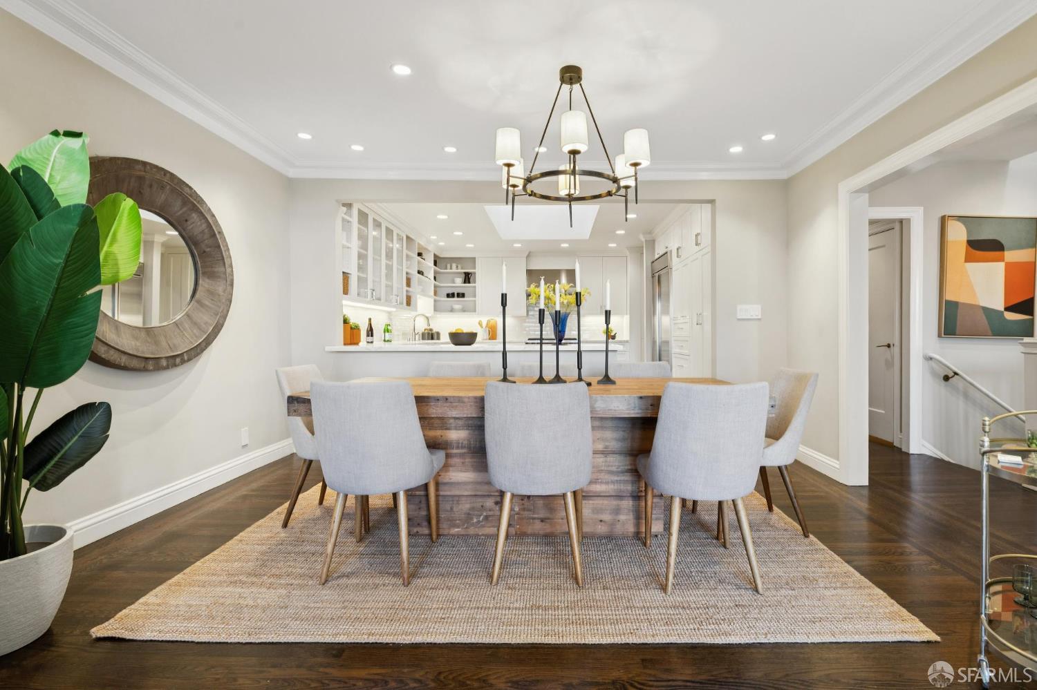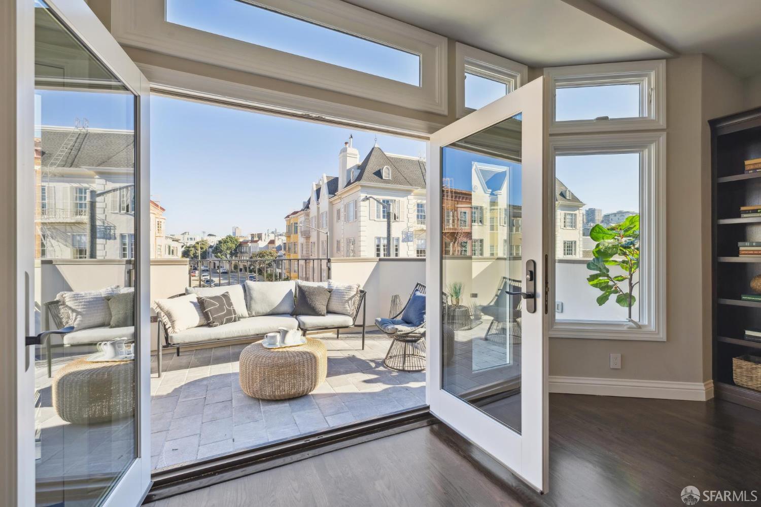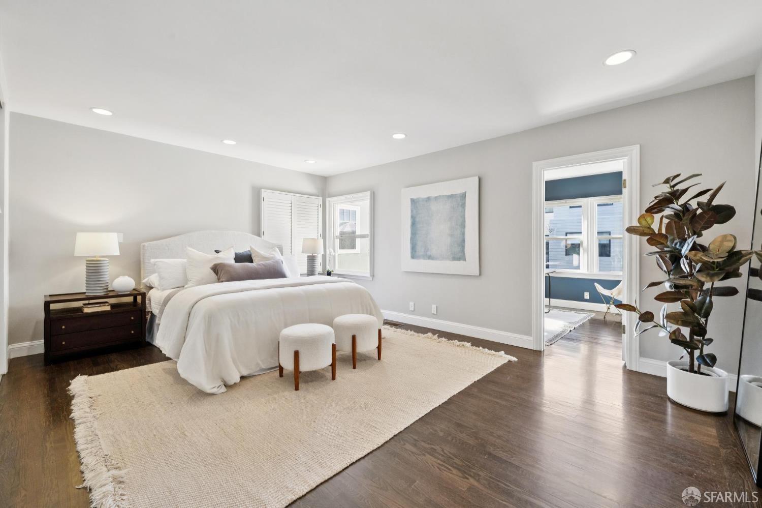 Don’t miss this opportunity to own a rare remodeled 4 bedroom Marina home on 3 levels — just steps to the cafes, boutiques & fine dining on vibrant Chestnut St & the natural beauty of the Marina Green, Crissy Field & The Presidio. The gracious entry welcomes you up to the large formal living room w/stately stone mantle fireplace & built-in shelving, elegant dining room & state-of-the-art sky-lit kitchen boasting professional grade appliances, abundant custom cabinetry, breakfast bar & gorgeous marble counters. The luxurious primary suite features custom closets, a separate office/nursery & spa-like en-suite bathroom w/dual marble vanity & heated floors. An elegant 1/2 bath and coat closet complete this level. Stairs lead up to the massive family room w/entertainment area & 2nd bedroom suite w/full bathroom. 2 walk-out patios offer city & bridge views. The lower level offers 2 large bedrooms opening to the serene landscaped garden w/fountain & fireplace (perfect for al-fresco dining), a full bathroom, laundry room and closet. Beautiful wood floors, numerous skylights, dual-zone heating, 500 wine bottle cooler, dual-paned windows, period details, recessed lighting, 2+ parking, abundant storage, alarm and much more…!