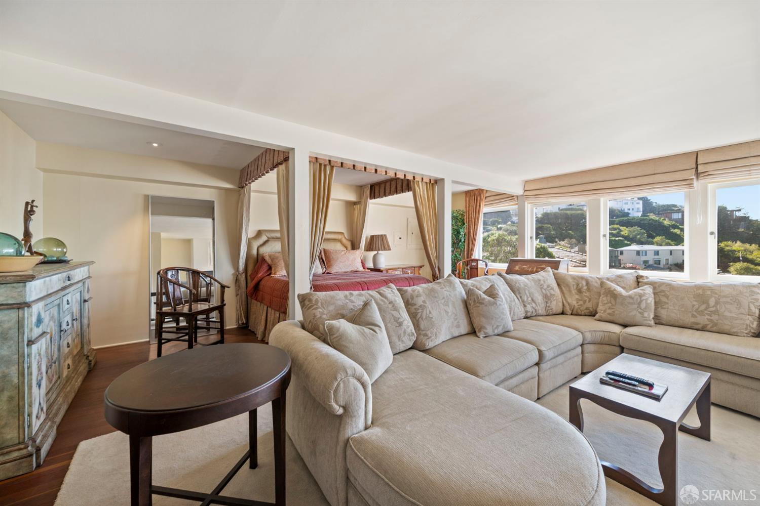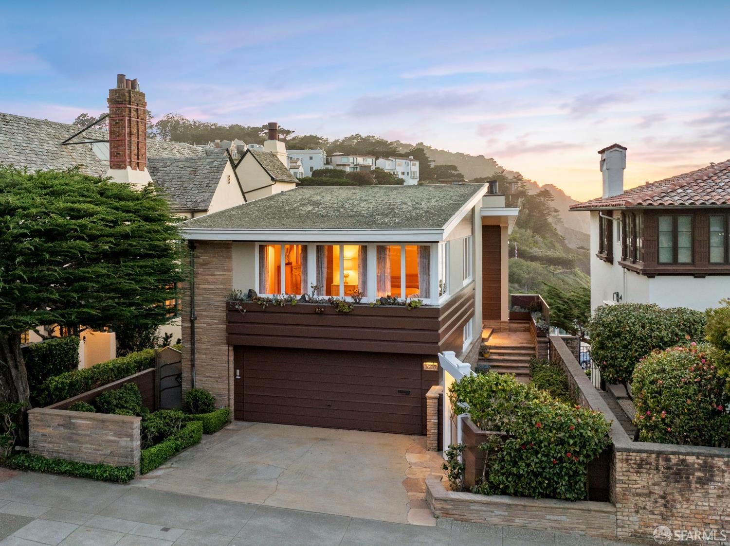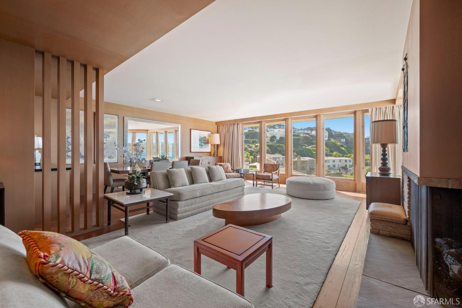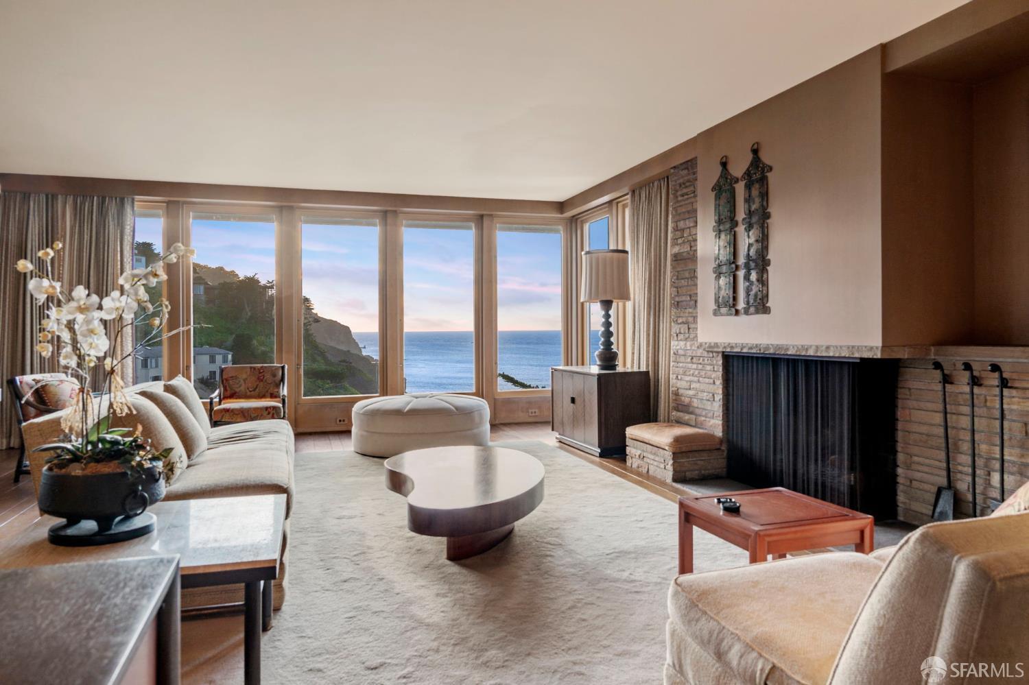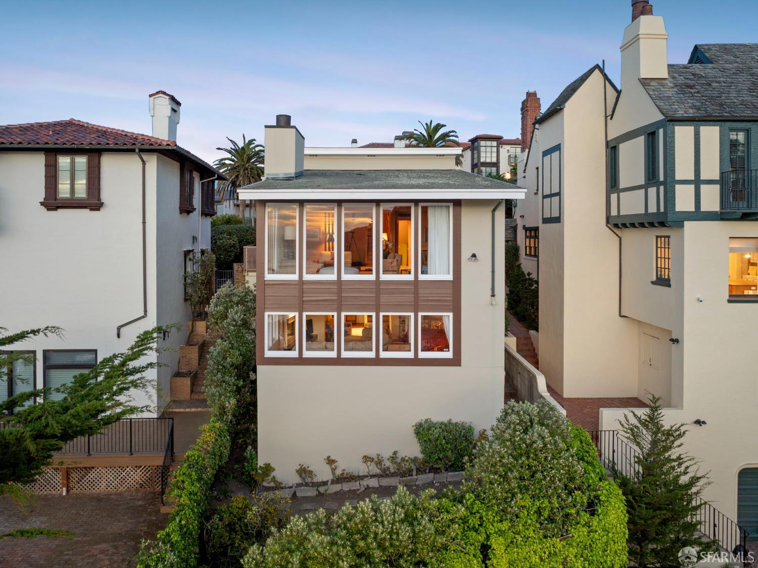 Perched above the Pacific Ocean in the prestigious Sea Cliff neighborhood, this architectural gem is a rare offering for connoisseurs of Mid-Century Modern design. Originally crafted in 1949 by prominent mid-century architect Clarence Peterson as his personal residence, this home is a triumph of timeless elegance, blending iconic design and engineering elements with unparalleled views of the ocean, Marin Headlands, and Golden Gate Bridge. The home welcomes you with a formal flagstone path and broad stone porch, offering a sense of exclusivity from the very first step. Inside, the main level is a showcase of sophisticated living and entertaining spaces. The elegant living room, bathed in natural light, features a striking flagstone fireplace, wood paneling, and expansive windows that frame breathtaking ocean vistas. This main living space includes the formal dining room so you and your guests can admire the views while you dine, this level is as functional as it is visually inspiring. Spanning three meticulously designed levels, the home’s split-level layout highlights its modernist pedigree while optimizing every inch of space. The upper level hosts an inviting office/library which is open to the lower living level and a serene and private primary suite, where you can enjoy views of the Golden Gate Bridge. On the lower level, is a versatile space, currently used as a second bedroom, complete with ocean views, a gas fireplace, and a full bathoffering endless possibilities, whether used as a private guest retreat, media room, or fitness space. Beyond its architectural pedigree, this property has been exquisitely preserved, with original details intact, including bespoke furniture designed by Peterson himself. The home’s design captures the essence of mid-century modernity while accommodating contemporary lifestyles with ease. An attached two-car garage provides additional convenience. The location is simply unmatched, enjoy tranquil walks to China Beach, or take advantage of easy access to San Francisco’s vibrant cultural and culinary sceneall while savoring the privacy and serenity that only Sea Cliff can offer. This is more than a home; it’s a statement. A rare opportunity to own a piece of architectural history in one of San Francisco’s most coveted enclaves.