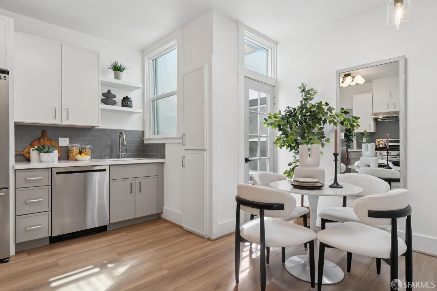 Step into this beautifully renovated single-family home in the heart of the Central Richmond! Upstairs on the main level, you’ll find two bright and spacious bedrooms, a stylishly updated full bathroom, and a warm sunroom off both bedrooms, perfect for an office. This room opens onto a deck, and leads to the sweet backyard. The living and dining rooms are bathed in natural light, with the living room featuring a cozy fireplace. The newly remodeled kitchen is a chef’s dream, showcasing a suite of premium appliances that elevate both style and functionality. The brand-new LG gas stove, the LG dishwasher, and the sleek Forno double door fridge all add to the modern, clean look. The first level offers even more versatility, with a renovated bathroom and an additional room. An expansive garage, with generous storage space, and a laundry area outfitted with brand-new LG washer and dryer units complete this floor. Step outside to a sun-kissed backyard that is accessible from both the office and the garage level, this serene outdoor space is truly an extension of the home. With its thoughtful updates, abundant storage, and sophisticated style, this very comfortable home is a rare gem in one of the City’s most desirable neighborhoods.