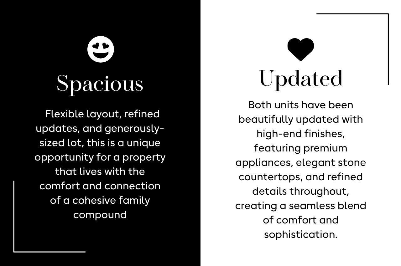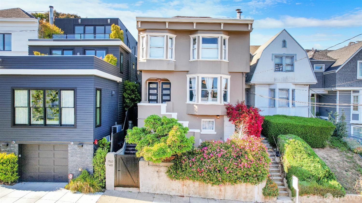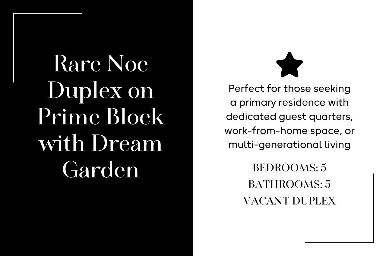 Located on prized Elizabeth Street in the heart of Noe Valley, this exceptional two-unit property offers a rare opportunity to live like a single-family home while enjoying the flexibility of a thoughtfully designed compound. Set on an expansive, wide lot, the home immediately stands out for its scale, light, and versatility-perfect for those seeking a primary residence with dedicated guest quarters, work-from-home space, or multi-generational living. Both units have been beautifully updated with high-end finishes, featuring premium appliances, elegant stone countertops, and refined details throughout, creating a seamless blend of comfort and sophistication. The upper residence serves as the natural hub of the home, offering a spacious 3-bedroom, 2-bath layout with bright, airy living spaces and a private deck just off the open kitchen, living and dining area-perfect for everyday living and effortless entertaining. This level lives beautifully as the primary residence, with an easy indoor-outdoor connection and an elevated sense of openness. Downstairs, the 2-bedroom, 2-bath residence provides exceptional flexibility-ideal for guest accommodations, extended family, or a dedicated work-from-home retreat. The kitchen and dining area open directly to a lush, magical garden, creating a private outdoor sanctuary and a seamless extension of the living space. With its flexible layout, refined updates, and generously-sized lot, this is a unique opportunity for a property that lives with the comfort and connection of a cohesive family compound while offering the adaptability of a two-unit design in one of Noe Valley’s most desirable locations.