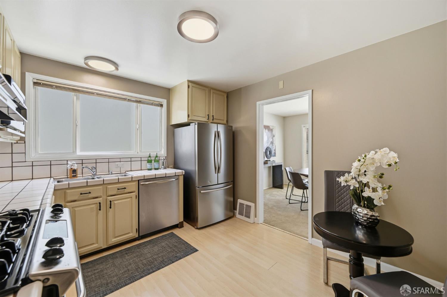 Beautiful Midtown Terrace 3br 2ba Pride of ownership home. Bedrooms and Baths are all located on the main level with approximately 1,300 square feet of well-maintained living space, complemented by peek-a-boo views set on a 2,800-square-foot lot between Twin Peeks and Sutro Tower. Inside, you’ll find a bright dining area and a spacious living room anchored by a wood-burning stove. The well-kept eat-in kitchen features stainless steel appliances. Additional highlights include primary bedroom/bath, bonus room located behind the two-car, side-by-side garage and a backyard patio perfect for relaxing or entertaining. Enjoy a central location just moments from midtown terrace Playground, Twin Peaks, shopping, dining, and easy access to parks and outdoor recreation. Conveniently situated across from a bus stop and close to Clarendon Elementary School and major transit routes.