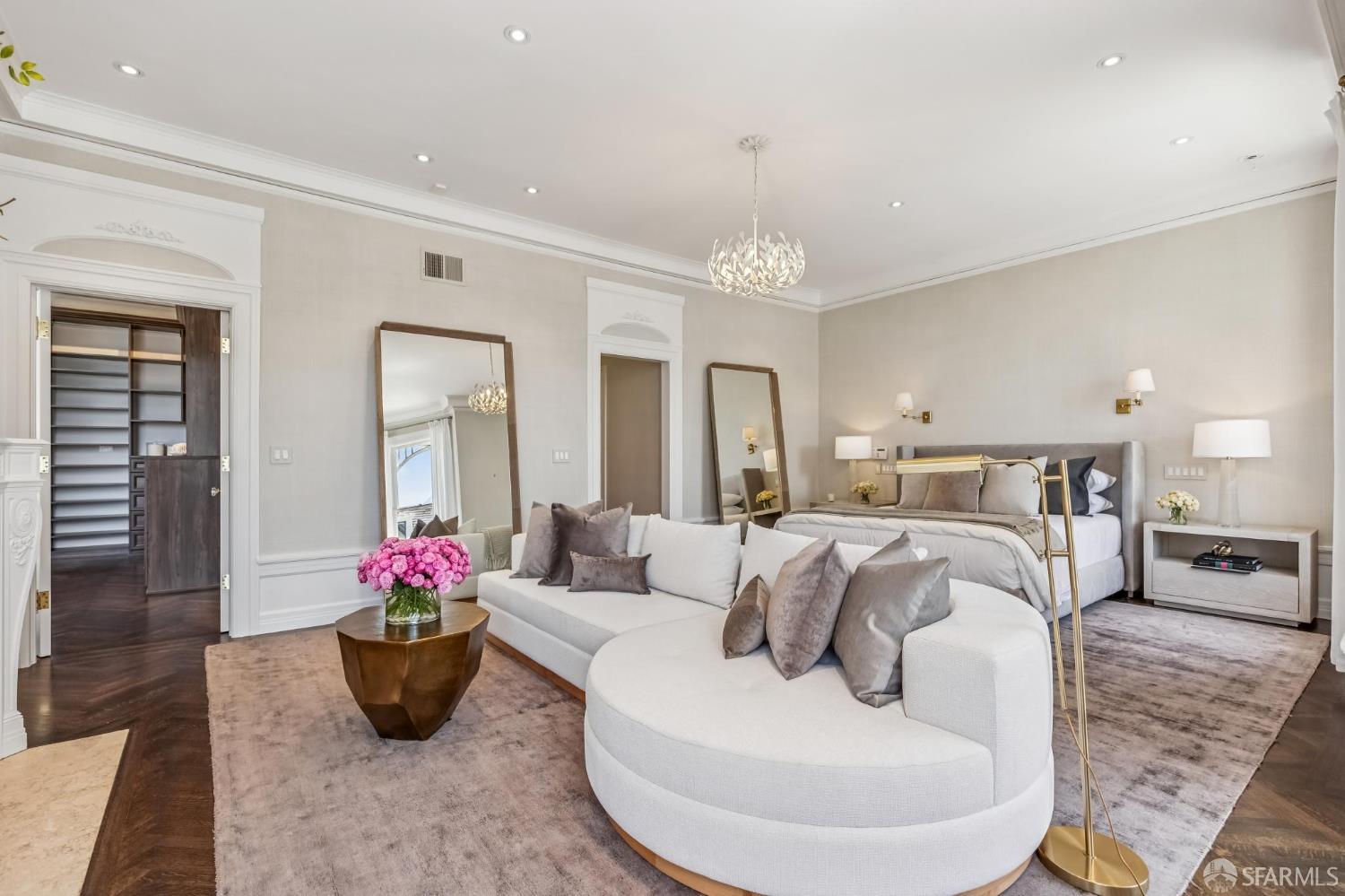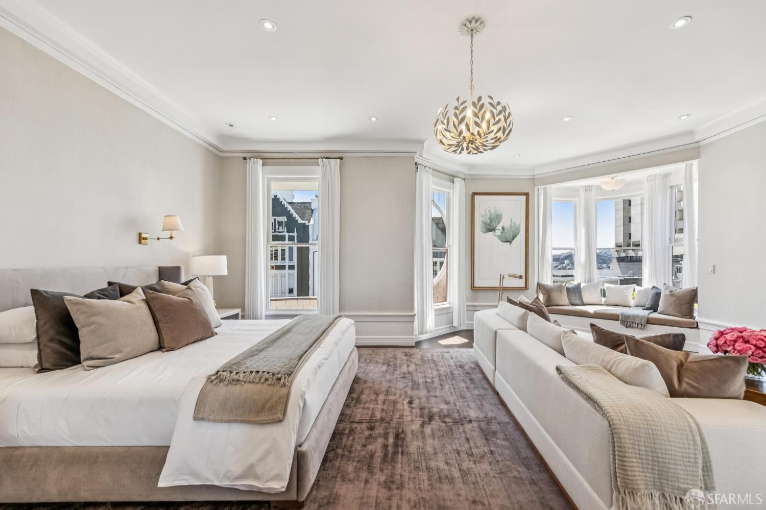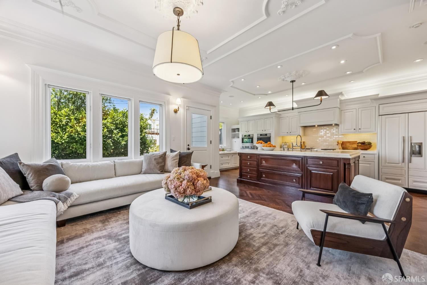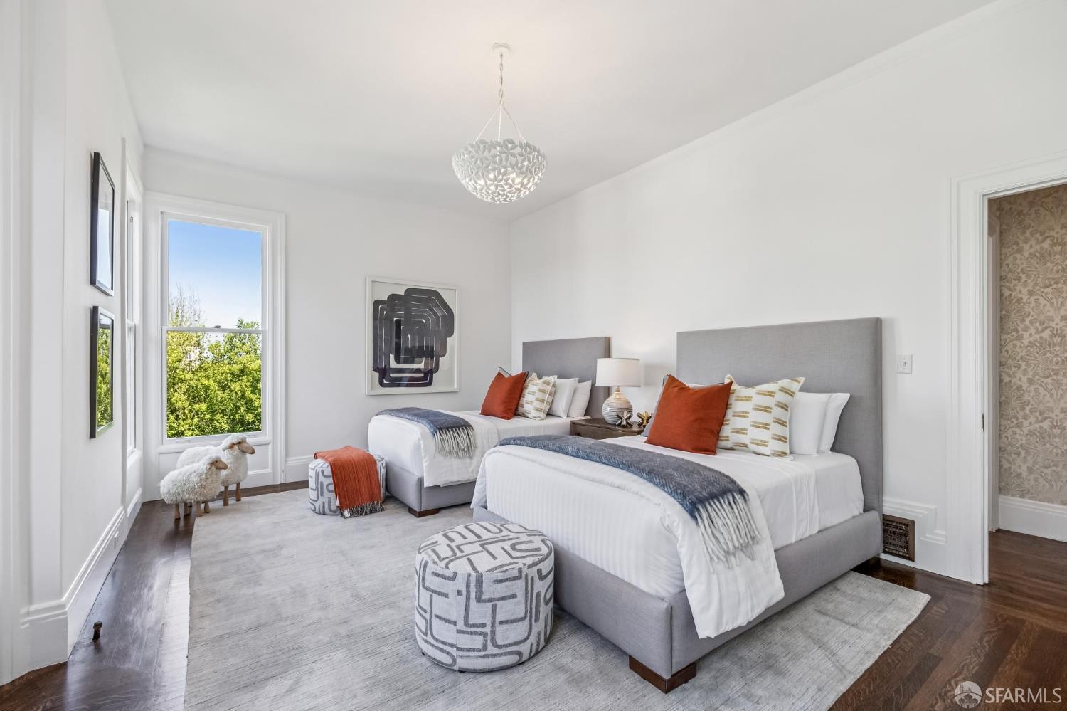 Set in the heart of Pacific Heights, this extraordinary fully detached Queen Anne Victorian offers a rare blend of historic grandeur, modern livability, and iconic San Francisco outlooks. Encompassing six bedrooms, five and a half baths, and positioned on an unusually expansive 34 by 127 lot, this exceptional residence is a true legacy property, rich in character, meticulously maintained, and thoughtfully updated for contemporary living.Built in 1891 by Newsom and Newsom, their vision is displayed today with a home filled with natural light on all sides. Its whimsical fade features a turret with porthole windows, a keyhole arch, and a fabulous ornate glass and iron entry door.Inside, a grand foyer opens to a rare triple parlor layout with formal living, sitting, and dining rooms, showcasing high ceilings, intricate moldings, and marble fireplaces. The renovated kitchen features Calacatta d’Oro marble, premium appliances, and a large island, flowing seamlessly into a breakfast area and family room with direct access to a landscaped garden. A powder room completes the level. The home perfectly balances San Francisco Victorian charm with modern the conveniences and floorplan of today. Upstairs, the full-width primary suite offers a turreted sitting area with city views, a massive dressing room+closet, and a bathroom with a stall shower and clawfoot soaking tub. The 3 additional bedrooms on this level are bright and spacious with the northern bedrooms offering views of theGolden Gate Bridge. The topfloor, which is a legal 2nd unit, includes a large family room with a walkout view deck, huge bedroom suite with bathroom, a 2nd bedroom used as an office, a full bath in the hall, and a second kitchen/ laundry room.The home’s lower level is the perfect place for family, adult or children hangouts. The Media/lounge area is great for social gatherings of all ages. This level also includes a bathroom and tons of storage. Interior access from the garage and a landscaped garden complete this grand residence. When you combine this wonderful home with it’s incredible location, steps to Lafayette Park, North Side schools and a short walk to Fillmore St and all its shops and restaurants you truly have a one of a kind home.