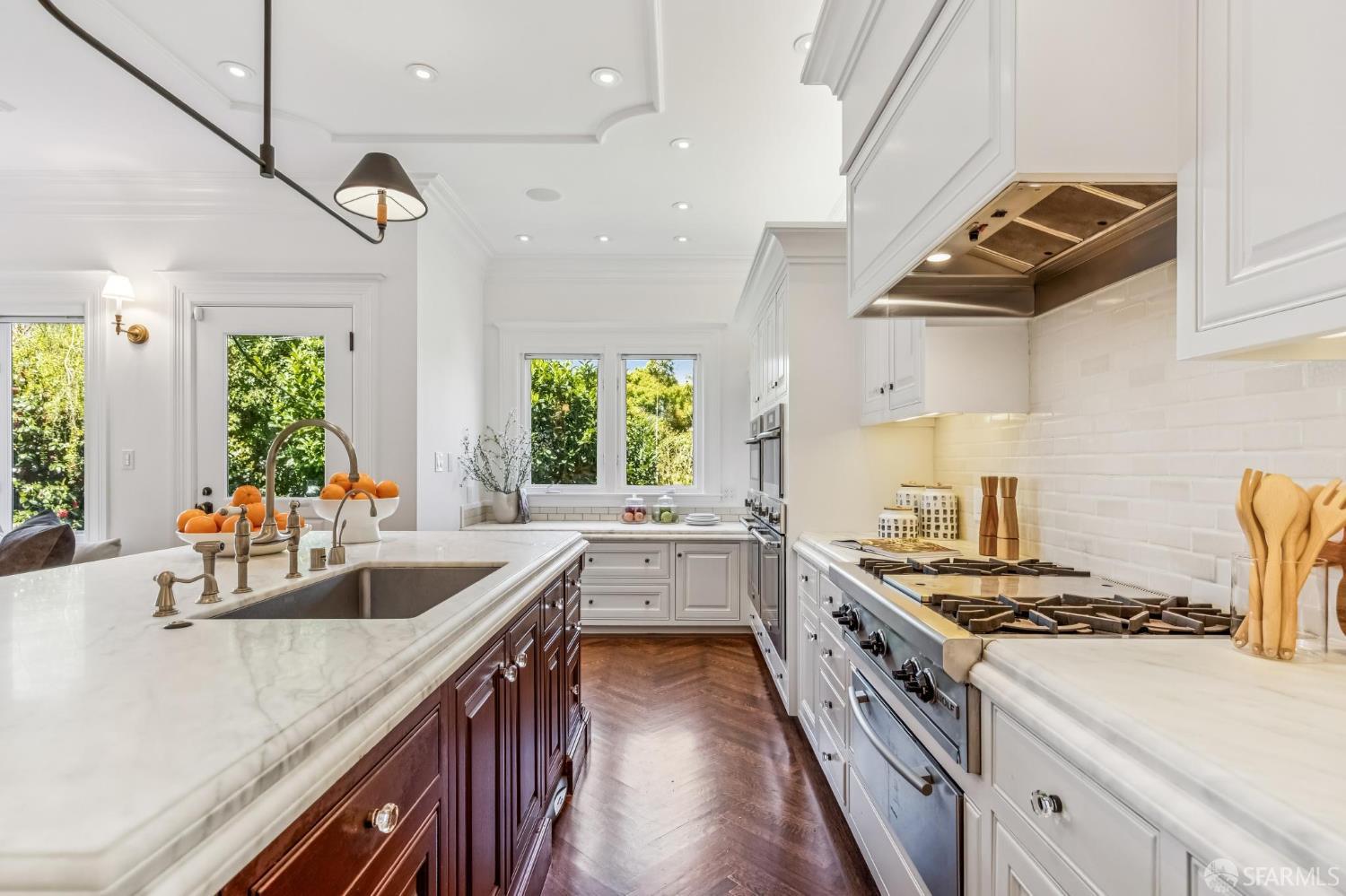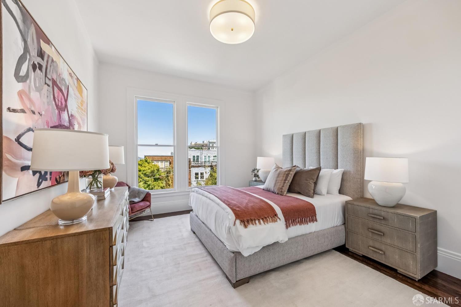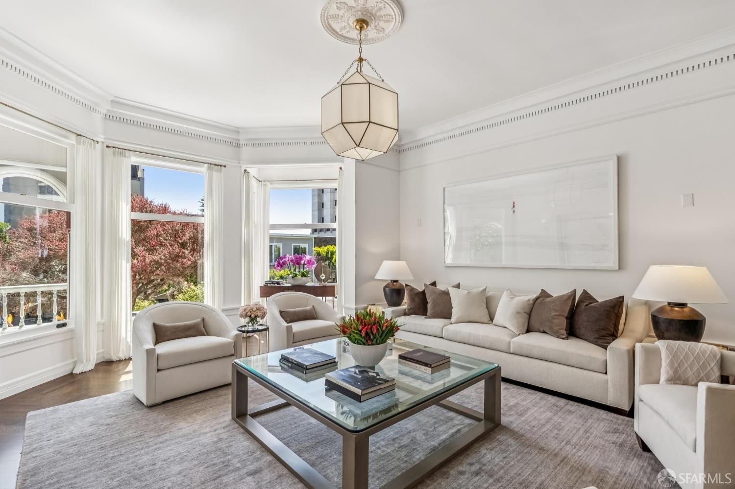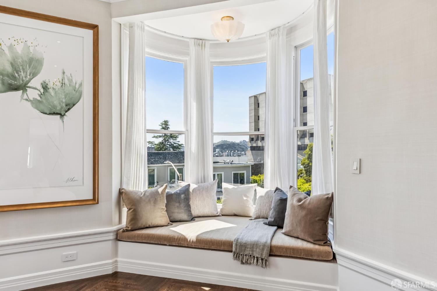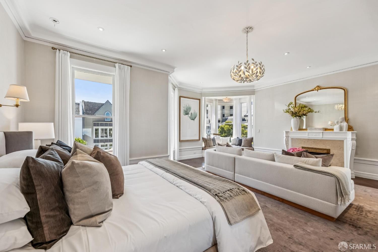 Set in the heart of Pacific Heights, this extraordinary fully detached Queen Anne Victorian offers a rare blend of historic grandeur, modern livability, and iconic San Francisco outlooks. Encompassing six bedrooms, five and a half baths, and positioned on an unusually expansive 34 by 127 lot, this exceptional residence is a true legacy property, rich in character, meticulously maintained, and thoughtfully updated for contemporary living.Built in 1891 by Newsom and Newsom, their vision is displayed today with a home filled with natural light on all sides. Its whimsical fade features a turret with porthole windows, a keyhole arch, and a fabulous ornate glass and iron entry door.Inside, a grand foyer opens to a rare triple parlor layout with formal living, sitting, and dining rooms, showcasing high ceilings, intricate moldings, and marble fireplaces. The renovated kitchen features Calacatta d’Oro marble, premium appliances, and a large island, flowing seamlessly into a breakfast area and family room with direct access to a landscaped garden. A powder room completes the level. The home perfectly balances San Francisco Victorian charm with modern the conveniences and floorplan of today. Upstairs, the full-width primary suite offers a turreted sitting area with city views, a massive dressing room+closet, and a bathroom with a stall shower and clawfoot soaking tub. The 3 additional bedrooms on this level are bright and spacious with the northern bedrooms offering views of theGolden Gate Bridge. The topfloor, which is a legal 2nd unit, includes a large family room with a walkout view deck, huge bedroom suite with bathroom, a 2nd bedroom used as an office, a full bath in the hall, and a second kitchen/ laundry room.The home’s lower level is the perfect place for family, adult or children hangouts. The Media/lounge area is great for social gatherings of all ages. This level also includes a bathroom and tons of storage. Interior access from the garage and a landscaped garden complete this grand residence. When you combine this wonderful home with it’s incredible location, steps to Lafayette Park, North Side schools and a short walk to Fillmore St and all its shops and restaurants you truly have a one of a kind home.