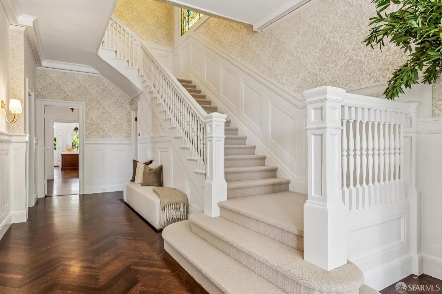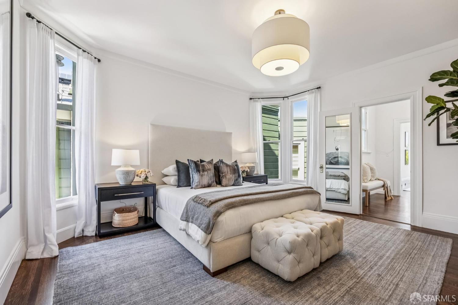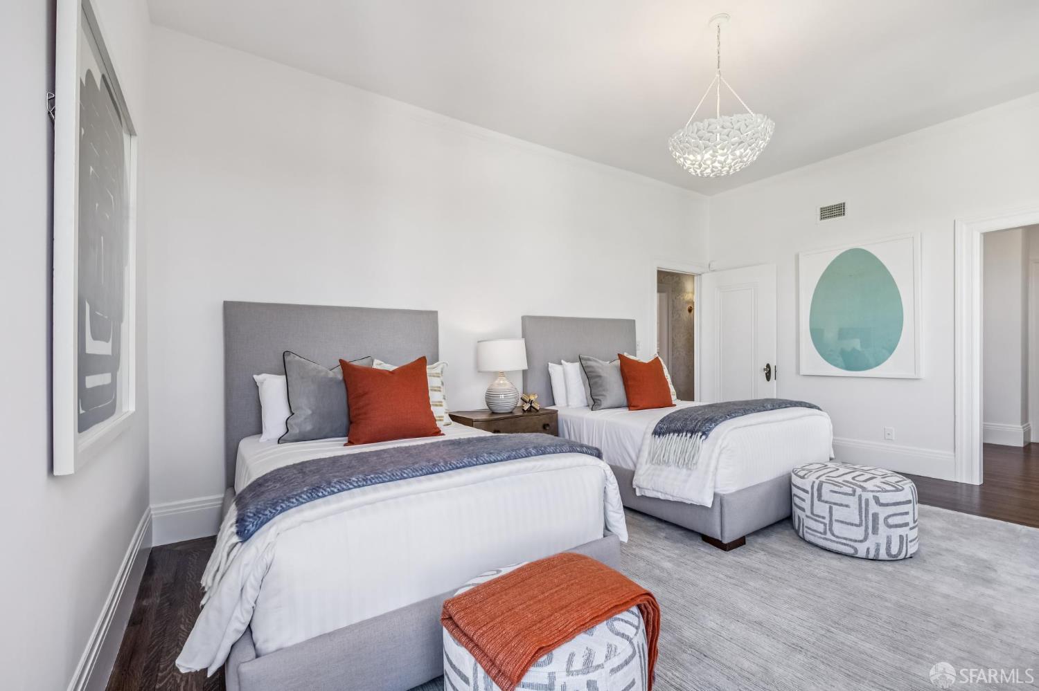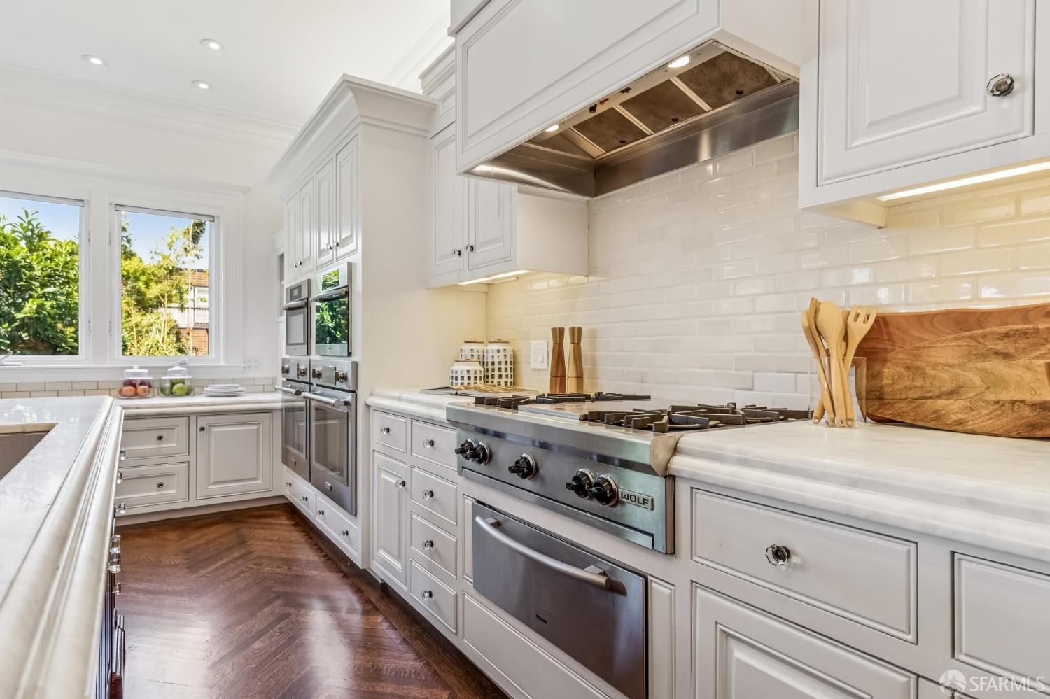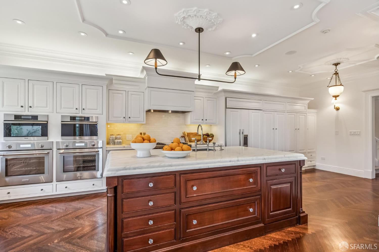 Set in the heart of Pacific Heights, this extraordinary fully detached Queen Anne Victorian offers a rare blend of historic grandeur, modern livability, and iconic San Francisco outlooks. Encompassing six bedrooms, five and a half baths, and positioned on an unusually expansive 34 by 127 lot, this exceptional residence is a true legacy property, rich in character, meticulously maintained, and thoughtfully updated for contemporary living.Built in 1891 by Newsom and Newsom, their vision is displayed today with a home filled with natural light on all sides. Its whimsical fade features a turret with porthole windows, a keyhole arch, and a fabulous ornate glass and iron entry door.Inside, a grand foyer opens to a rare triple parlor layout with formal living, sitting, and dining rooms, showcasing high ceilings, intricate moldings, and marble fireplaces. The renovated kitchen features Calacatta d’Oro marble, premium appliances, and a large island, flowing seamlessly into a breakfast area and family room with direct access to a landscaped garden. A powder room completes the level. The home perfectly balances San Francisco Victorian charm with modern the conveniences and floorplan of today. Upstairs, the full-width primary suite offers a turreted sitting area with city views, a massive dressing room+closet, and a bathroom with a stall shower and clawfoot soaking tub. The 3 additional bedrooms on this level are bright and spacious with the northern bedrooms offering views of theGolden Gate Bridge. The topfloor, which is a legal 2nd unit, includes a large family room with a walkout view deck, huge bedroom suite with bathroom, a 2nd bedroom used as an office, a full bath in the hall, and a second kitchen/ laundry room.The home’s lower level is the perfect place for family, adult or children hangouts. The Media/lounge area is great for social gatherings of all ages. This level also includes a bathroom and tons of storage. Interior access from the garage and a landscaped garden complete this grand residence. When you combine this wonderful home with it’s incredible location, steps to Lafayette Park, North Side schools and a short walk to Fillmore St and all its shops and restaurants you truly have a one of a kind home.
