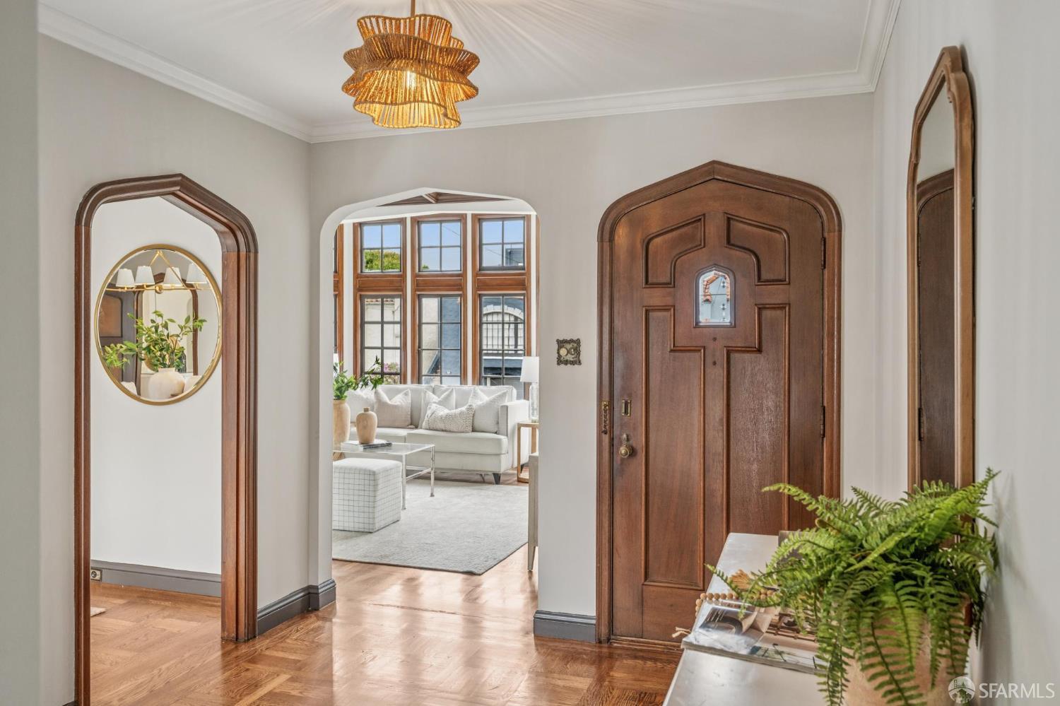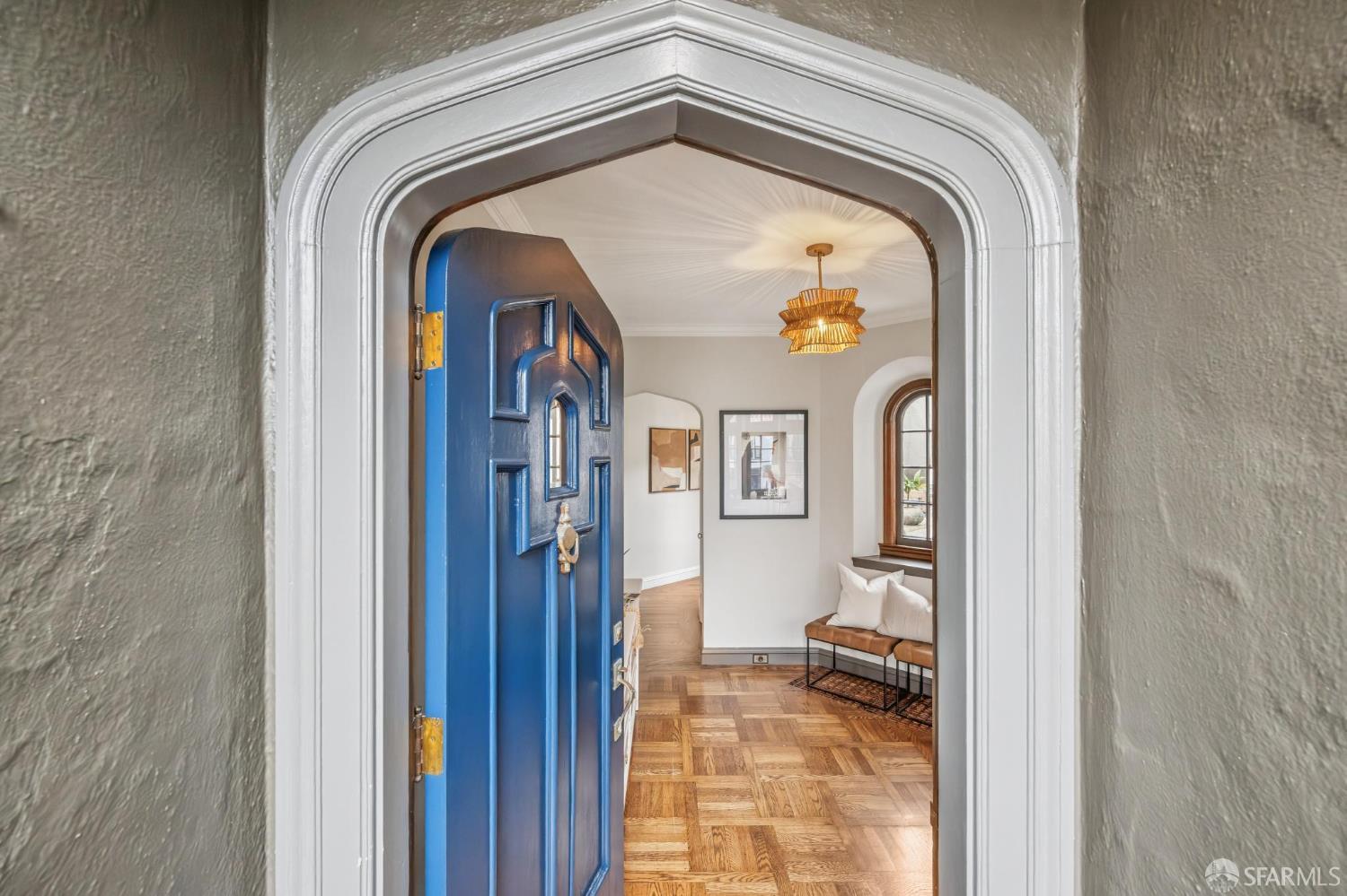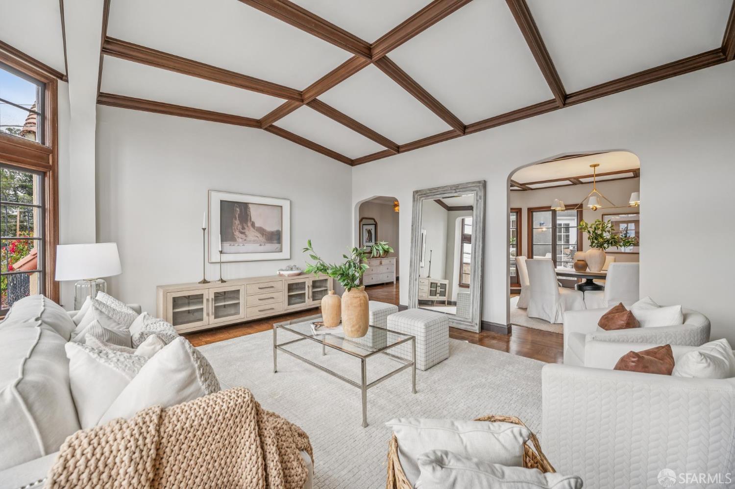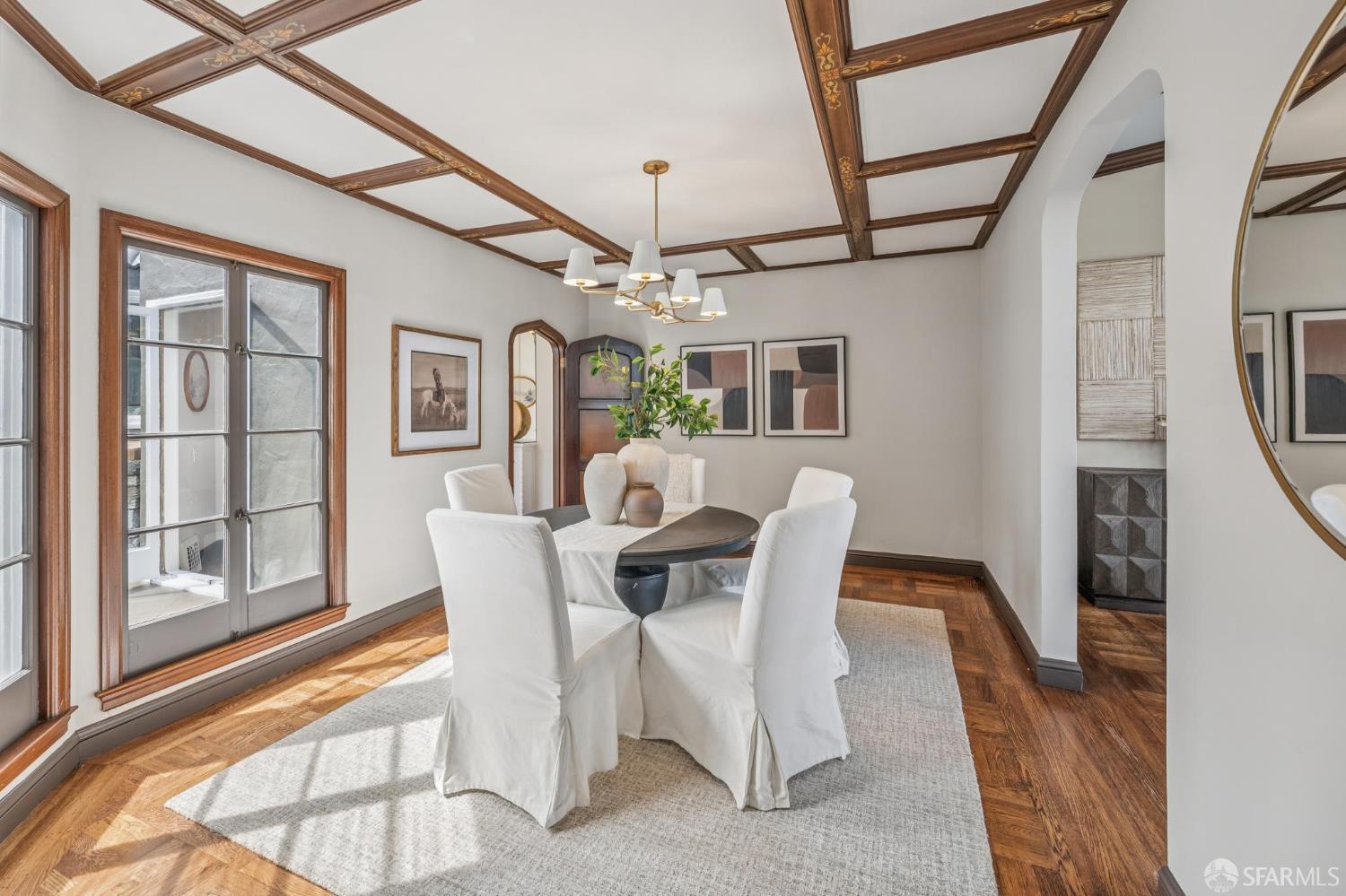 Classic 1930s Tudor in the heart of Inner Parkside, just moments from the shops, cafs, and charm of West Portal. Set on an expansive lot, this beautifully maintained semi-attached home blends timeless architecture with comfortable living. Rich in period detail, the home features a grand living room with vaulted ceilings, a wood-burning fireplace, and classic wood accents, alongside a formal dining room with a coffered ceiling. The adjoining kitchen and breakfast nook offer a warm, inviting space for everyday living. Upstairs, two spacious bedrooms and a full bath are complemented by hardwood floors and abundant natural light. Architectural details like exposed beams and high ceilings create an airy, storybook feel throughout. The lower level offers a generous family room with half bath, an enclosed sunroom, providing flexible space for relaxing or entertaining, and easy access to the landscaped backyard with patio, mature plantings, and a fully fenced setting. A rare West Portal opportunityfull of character, space, and potential in one of San Francisco’s most desirable neighborhoods.
