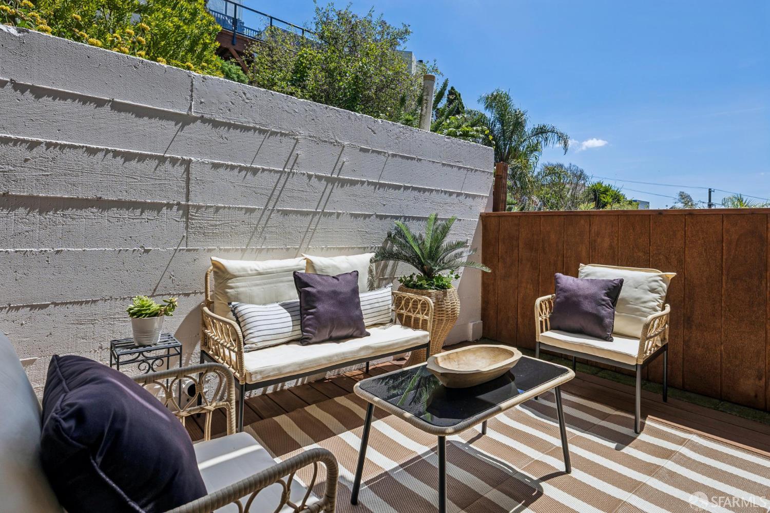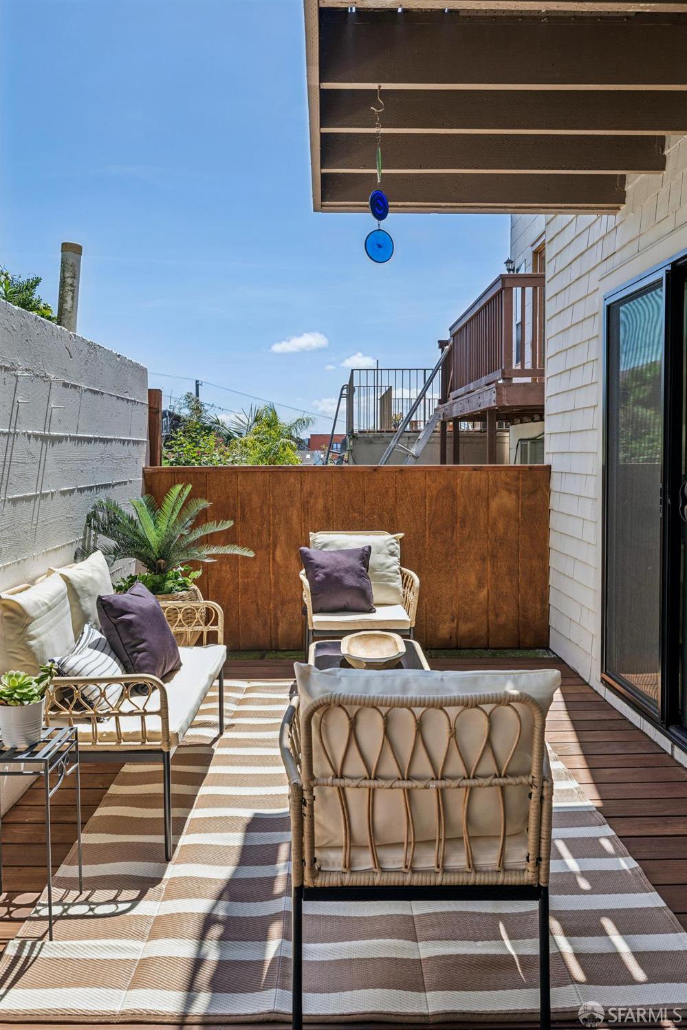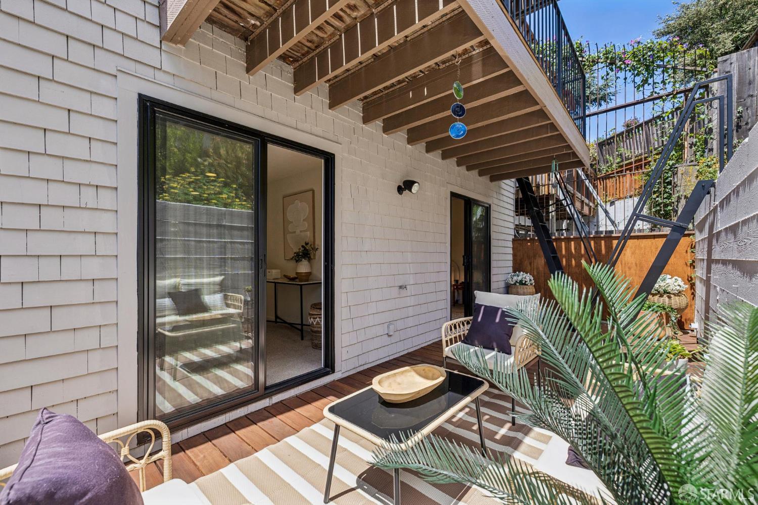 Welcome home to 1063 Carolina Street, a meticulously maintained, 2 Bedroom + Office/2 Bathroom VIEW condo in Potrero Hill- one of San Francisco’s most desirable neighborhoods. Celebrated for its warm microclimate, charming streets, and relaxed atmosphere, Potrero Hill offers a unique blend of tranquility and accessibility. This home reflects that balance, combining thoughtful updates, comfortable living spaces, and inviting indoor-outdoor flow. Set within a boutique 2-unit building, the residence provides a rare sense of privacy and exclusivity. Natural light fills the home throughout the day from oversized glass sliding doors while select vantage points offer views toward the City and Twin Peaks. The interiors have been refreshed and thoughtfully upgraded, beginning with refinished oak hardwood floors and fresh interior paint throughout. The living area is anchored by a wood burning fireplace featuring Italian ceramic surrounds. Additional improvements include new lighting fixtures throughout, updated plumbing fixtures in the bathrooms and fresh interior/exterior paint. The kitchen is well-appointed with ample storage, gas range and a practical design suited for both everyday use and entertaining. Both bedrooms are generously sized with ample closets and storage. The primary en-suite bedroom offers a comfortable retreat with dual vanities and stall shower. The second bedroom provides flexibility for guests, a home office, or additional living space. A standout feature of the property are the 2 exclusive-use outdoor spaces which include the front facing, view balcony and rear patio with redwood decking, ideal for enjoying Potrero Hill’s signature sunshine. Whether relaxing, dining, or entertaining, these private outdoor areas extend the living space and enhance everyday comfort. A recently installed roof, 1 full-size deeded parking in garage, side-by-side laundry and low HOA monthly dues round out the HOA’s amenity package. A commuter’s dream, enjoy easy access to 280/101, Cal Train and Downtown San Francisco. Neighborhood amenities on 18th and 20th St commercial corridors include locally owned dining, retail, cafes and grocery.