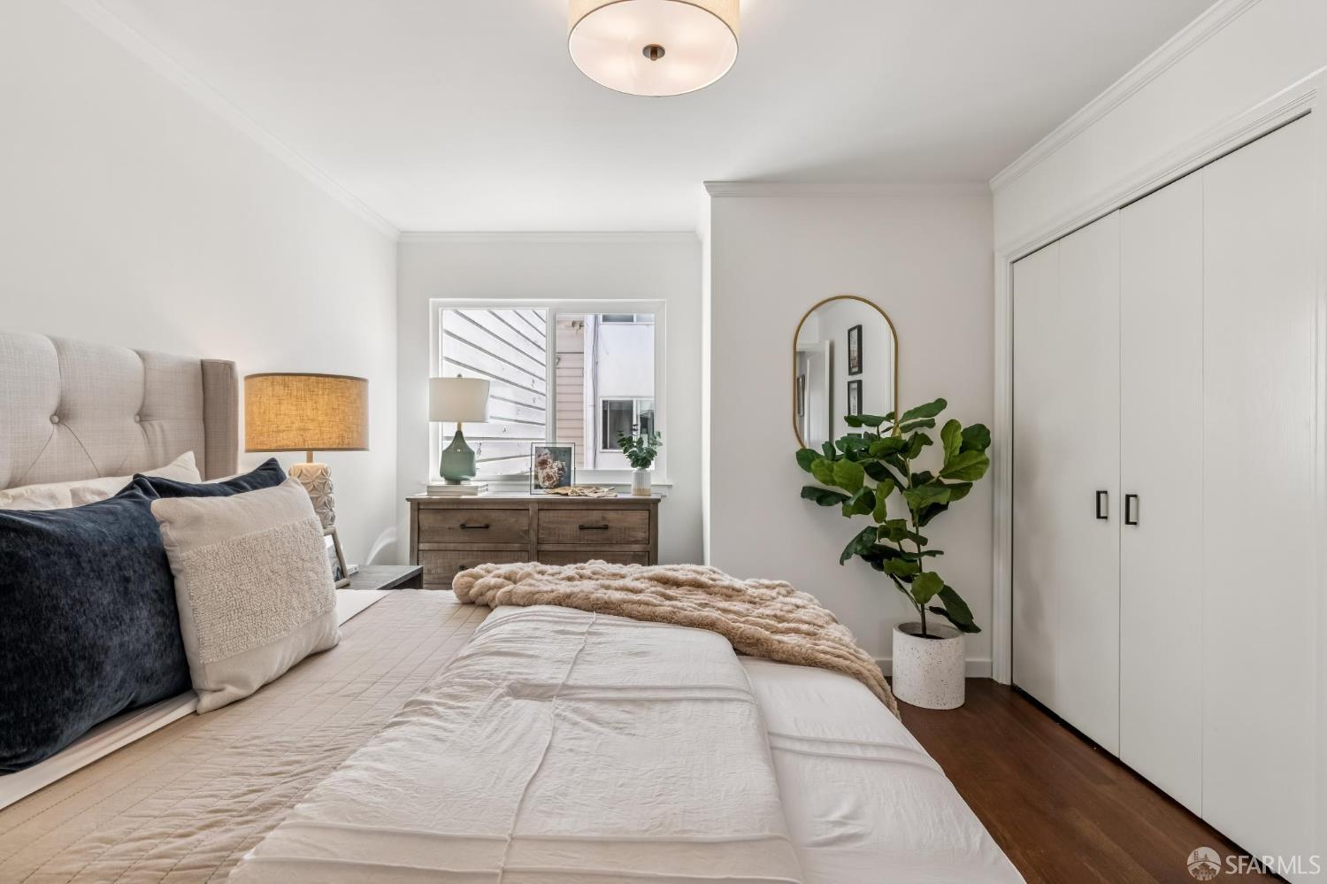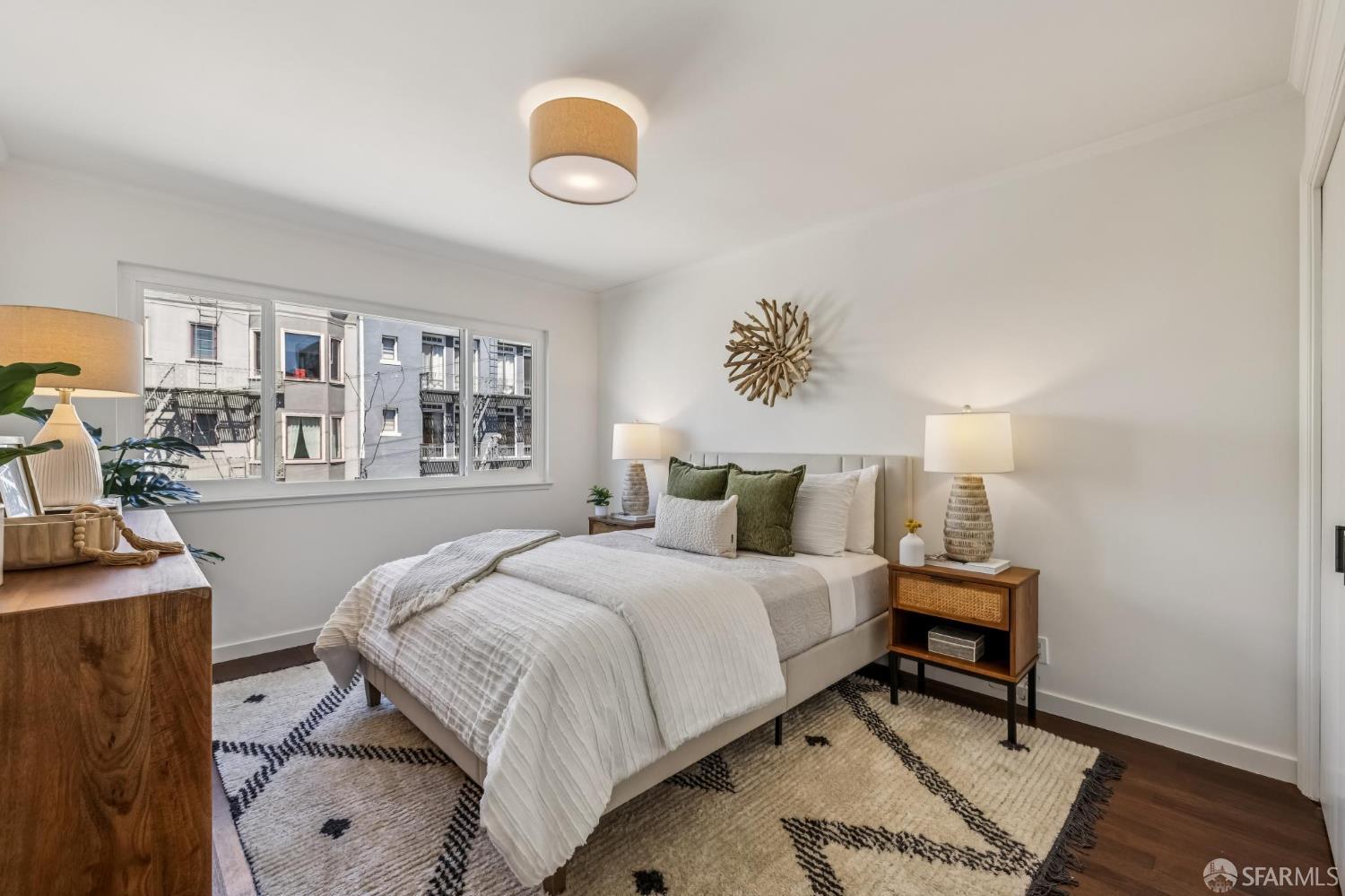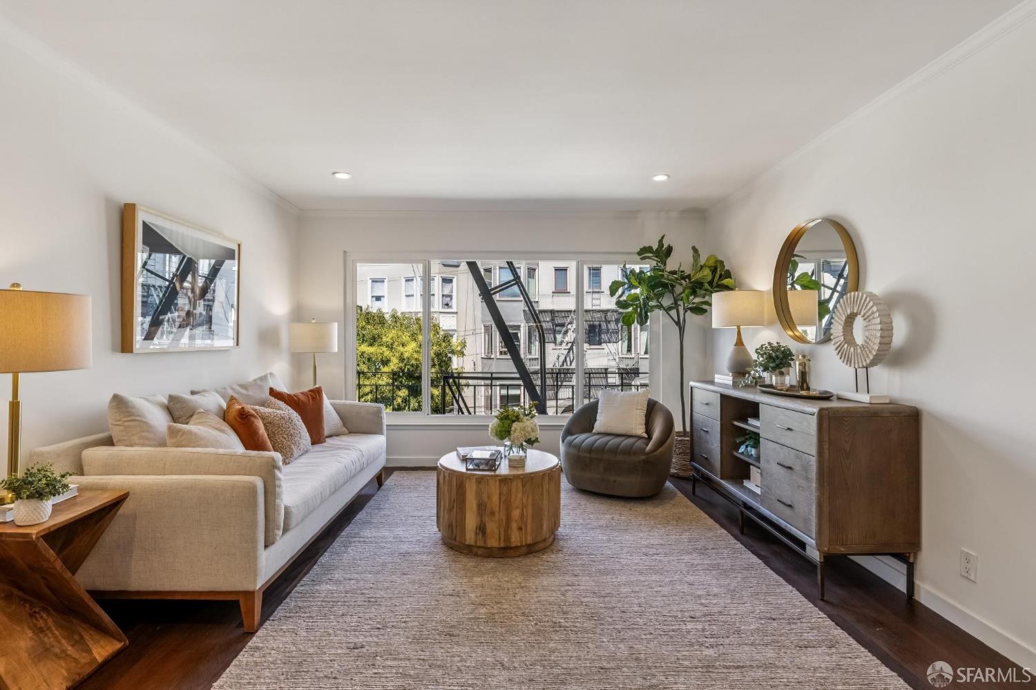 On Filbert Street, this thoughtfully renovated residence offers a calm, comfortable retreat right in the center of it all. Perfectly positioned between the Marina, Cow Hollow, and Russian Hill neighborhoods, the home places you just moments from Fort Mason, Lafayette Park, and the vibrant shops and cafs along Union, Polk, and Chestnut Streets. With a near-perfect Walk Score and easy access to corporate shuttles and Highway 101, daily life here feels both effortless and connected. Inside, the home offers a clean, open layout that balances modern updates with everyday livability. The spacious two-bedroom floor plan is anchored by warm hardwood floors and an inviting kitchen designed for both cooking and gatheringfeaturing a generous island, quartz countertops, stainless steel appliances, and ample cabinetry. A beautifully remodeled bath completes the space. Highlight: Free common laundry and additional storage. The boutique mid-century building has recently undergone an extensive renovation, reflecting a shared pride of ownership among its residents. With thoughtful upgrades including structural improvements, new systems, and refreshed common areas, the building feels both solid and well cared for. Amenities such as an elevator, a panoramic roof deck with sweeping city and Golden Gate Bridge views, a spacious garage with deeded parking, and low HOA dues further enhance the appeal. Offered for the first time in nearly two decades, this is an opportunity to settle into a well-loved space in one of San Francisco’s most enduring and walkable neighborhoods.