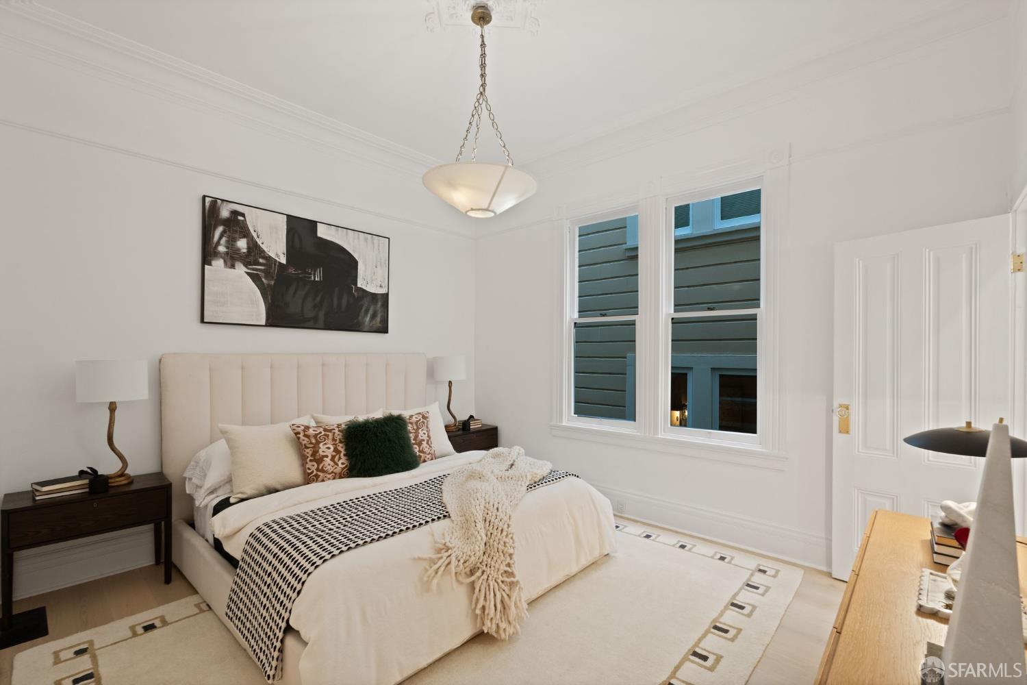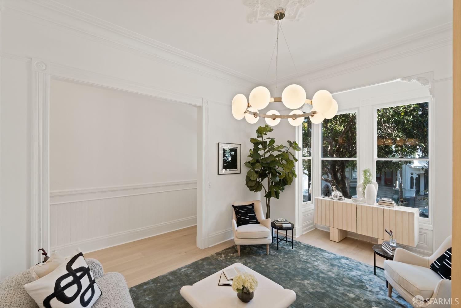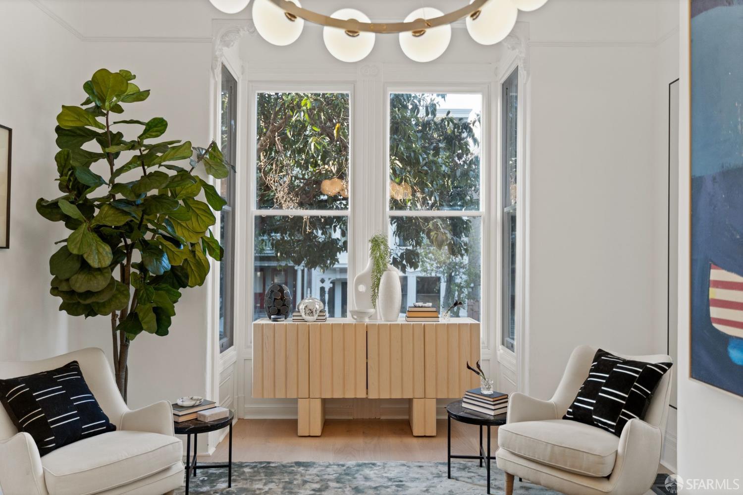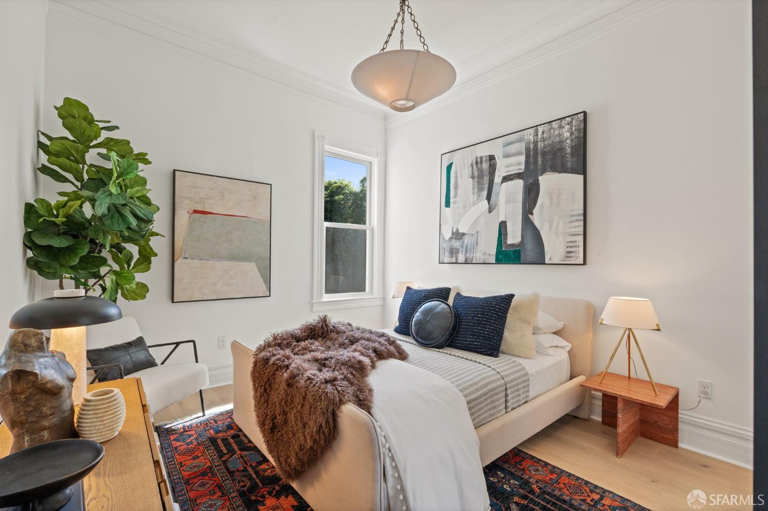 This beautifully detailed NOPA condominium is a rare blend of classic Victorian beauty, rich period craftsmanship, thoughtful updates, and one of SF’s most desirable locations.Beautiful new wood floors throughout. Intricate plaster moldings, high ceilings, elegant wainscoting. Graciously scaled rooms create an inviting flow throughout the residence. The spacious, flexible floor plan includes two generous bedrooms, a stately living room, a versatile bonus space for a home office and a formal dining room ideal for entertaining. The thoughtfully updated marble bathroom blends classic style with modern comfort. The bright, spacious eat-in kitchen is a chef’s dream. A wall of windows floods the space with natural light and opens directly onto a private deck overlooking the lush garden below. Step outside to enjoy morning coffee or evening gatherings. The exceptionally deep lot creates a surprisingly expansive outdoor retreat-an uncommon find in the city. Additional amenities include parking and storage in the garage. Ideally located in the heart of NOPA, this home places you just blocks from neighborhood favorites along Divisadero Street, everyday shopping at Bi-Rite and Whole Foods, and the green expanse of the Panhandle for walking, biking, or relaxing outdoors. With nearby access to public transit, tech shuttles, freeways, and close proximity to UCSF and USF, the location offers both convenience and vibrant city living.A wonderful opportunity to own a home that pairs historic San Francisco charm with an exceptional NOPA lifestyle and neighborhood setting.