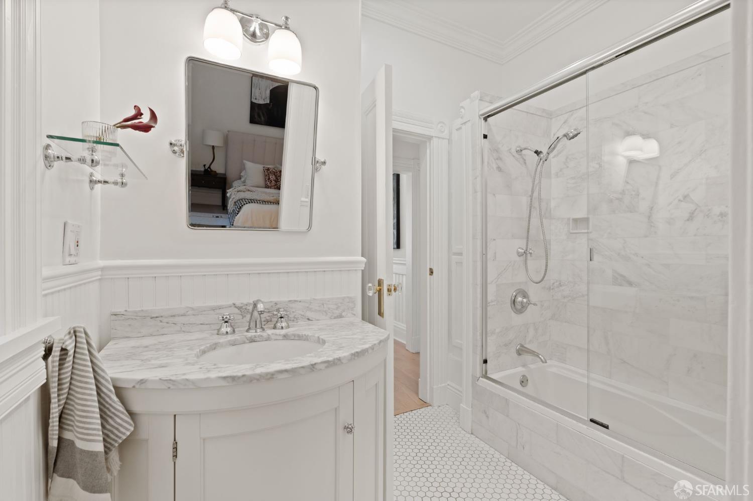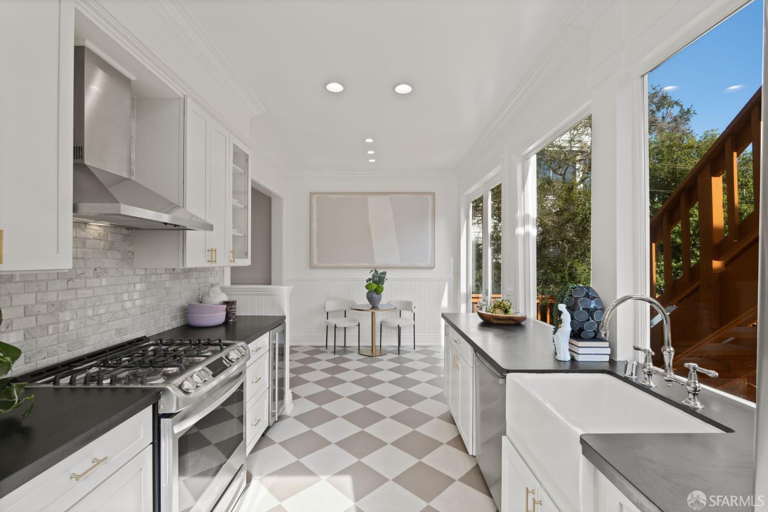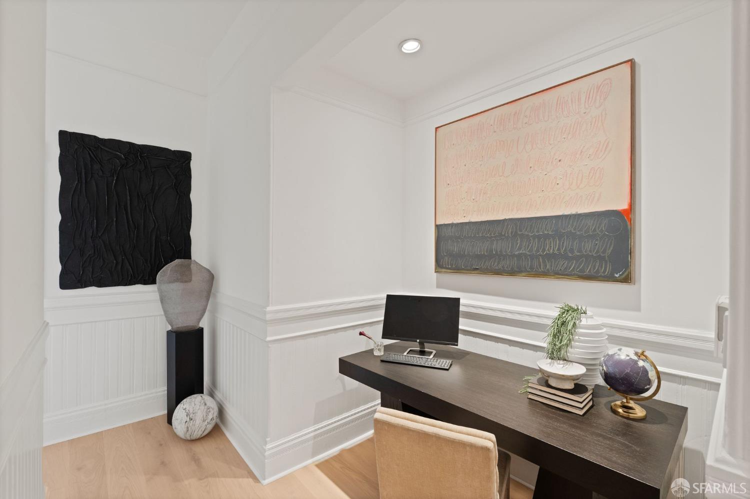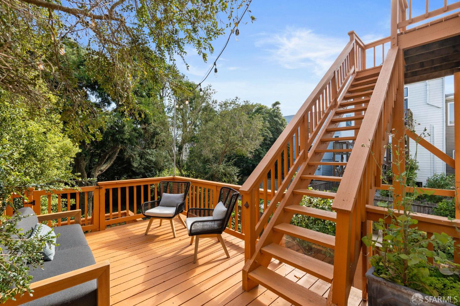 This beautifully detailed NOPA condominium is a rare blend of classic Victorian beauty, rich period craftsmanship, thoughtful updates, and one of SF’s most desirable locations.Beautiful new wood floors throughout. Intricate plaster moldings, high ceilings, elegant wainscoting. Graciously scaled rooms create an inviting flow throughout the residence. The spacious, flexible floor plan includes two generous bedrooms, a stately living room, a versatile bonus space for a home office and a formal dining room ideal for entertaining. The thoughtfully updated marble bathroom blends classic style with modern comfort. The bright, spacious eat-in kitchen is a chef’s dream. A wall of windows floods the space with natural light and opens directly onto a private deck overlooking the lush garden below. Step outside to enjoy morning coffee or evening gatherings. The exceptionally deep lot creates a surprisingly expansive outdoor retreat-an uncommon find in the city. Additional amenities include parking and storage in the garage. Ideally located in the heart of NOPA, this home places you just blocks from neighborhood favorites along Divisadero Street, everyday shopping at Bi-Rite and Whole Foods, and the green expanse of the Panhandle for walking, biking, or relaxing outdoors. With nearby access to public transit, tech shuttles, freeways, and close proximity to UCSF and USF, the location offers both convenience and vibrant city living.A wonderful opportunity to own a home that pairs historic San Francisco charm with an exceptional NOPA lifestyle and neighborhood setting.
