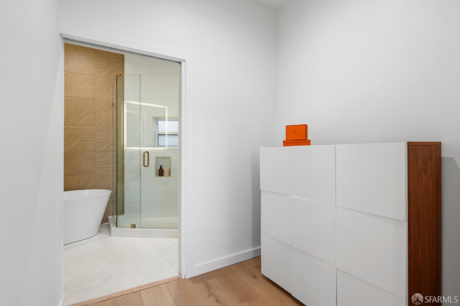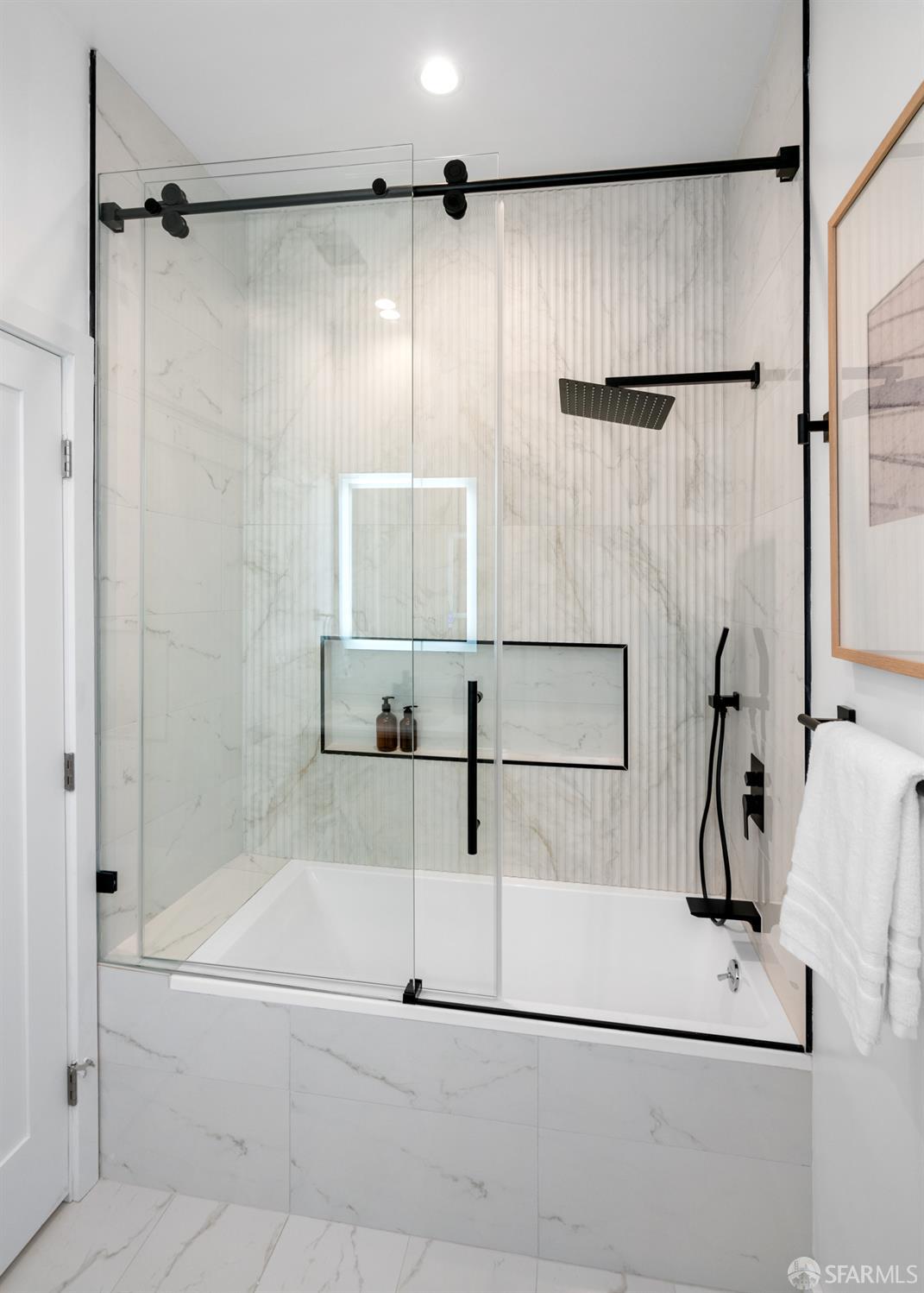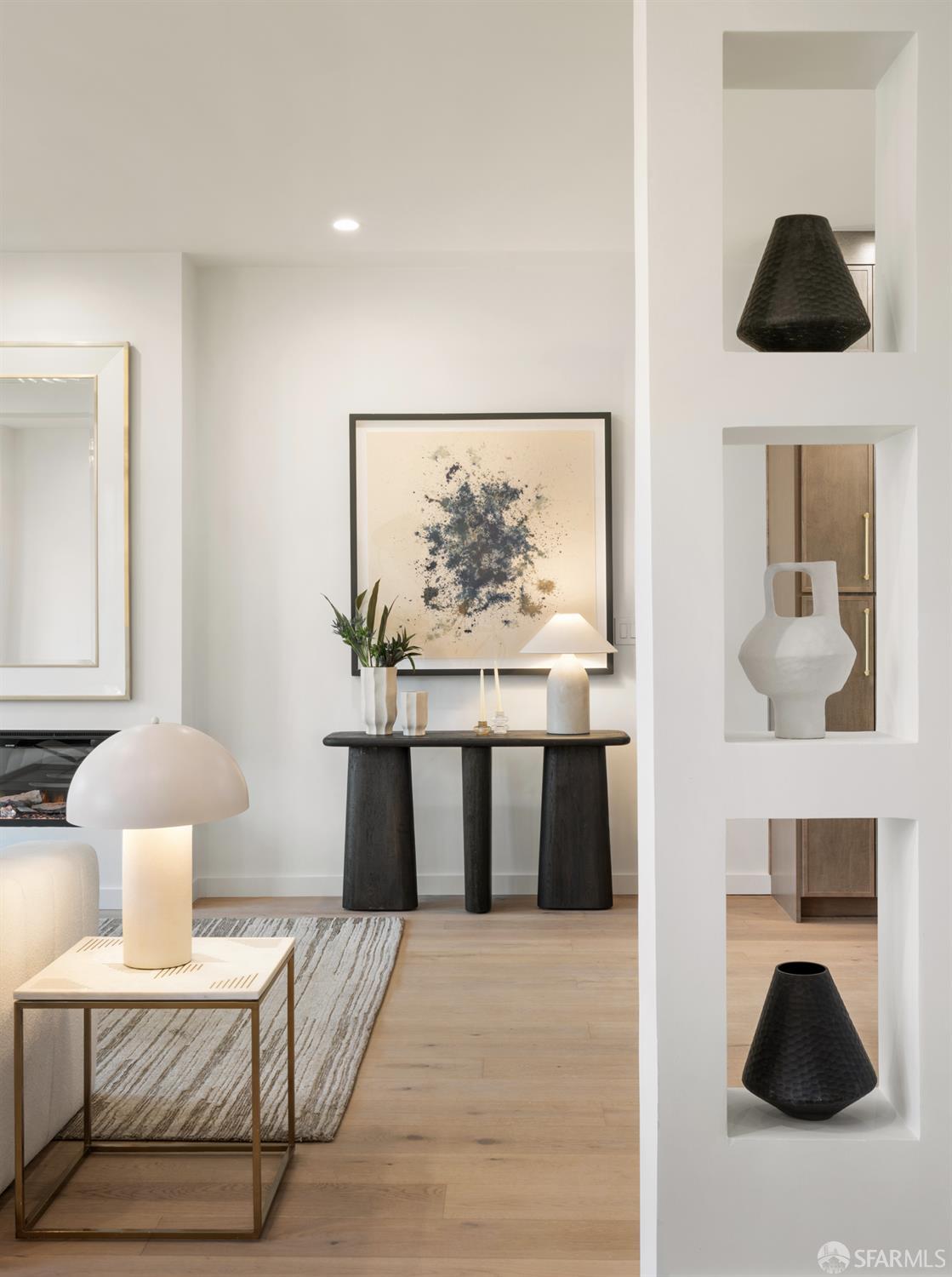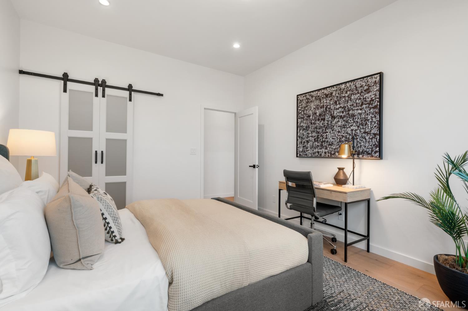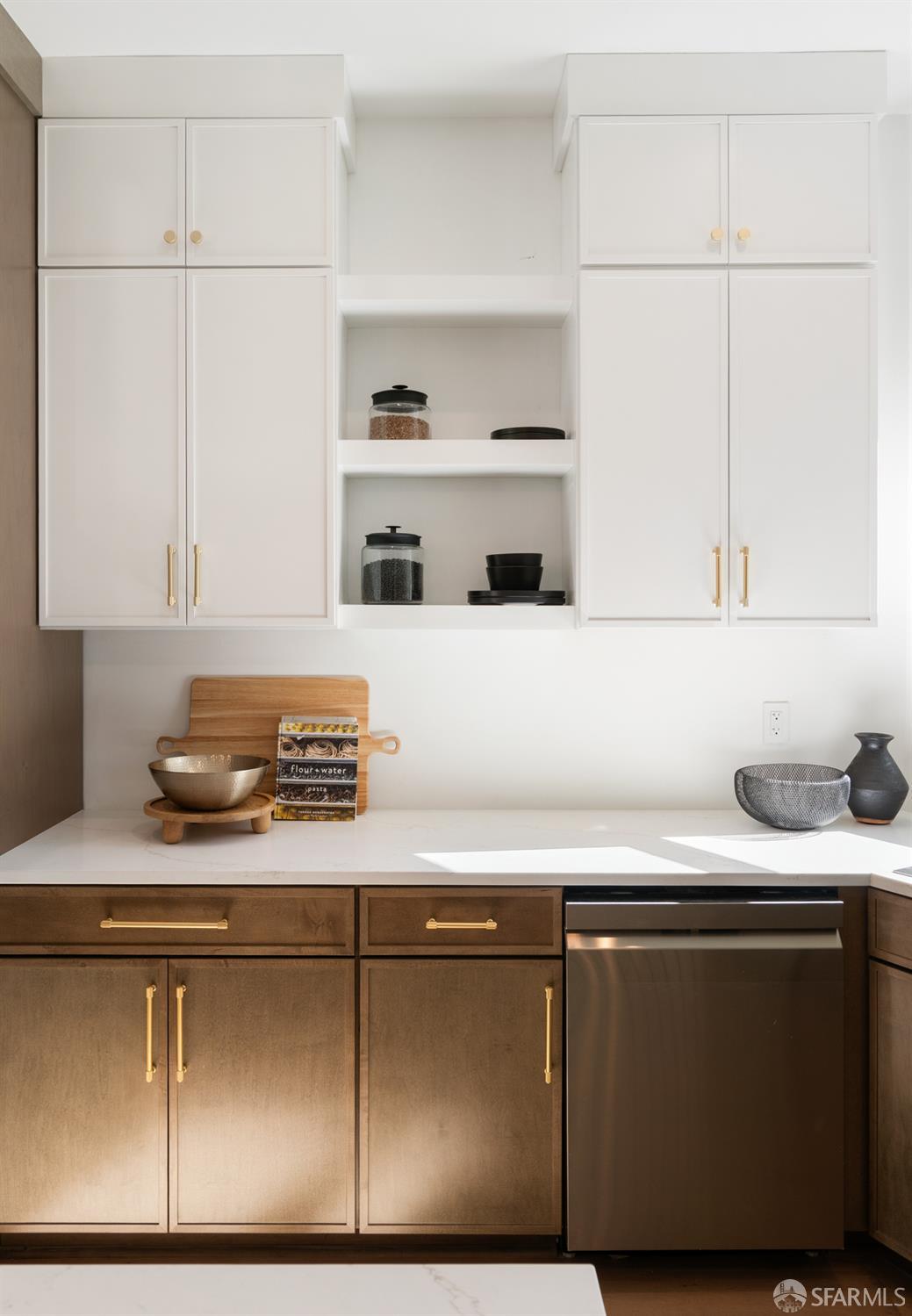 Sophisticated and bright top-floor, luxe living in a prime location reworked with thoughtfully designed floorplan, and windows on all four sides, ready to shine following it’s just-finished extensive remodeling. Voluminous open-concept living/dining with soaring ceilings just under ten feet, and large operable bay windows provide abundant natural light, city outlooks, often rendering the new modern ceiling lights unnecessary. Sleek enclosed 60” fireplace giving warmth on foggy days and modern focal point. Clean, contemporary flooring throughout. Spacious dining area presents ideal entertainment space for large gatherings. Thoughtful gourmet kitchen anchored by large eat-in island wrapped in beautiful quartz with storage and built-in microwave drawer. Warm, tall cabinets, and custom pullouts enable a plethora of storage options. Warm accents, stainless appliances, and commercial grade 33” oversized stainless-steel workstation sink add to the special conveniences. Hallway with operable windows separates entertaining and private spaces. Primary suite at rear of home offers personal retreat. Large bay windows with Golden Gate Bridge peek-a-boo views fill the room with natural light. Room for a king bed, and walk-in/walk-through closet. Ensuite extends luxury spa-like sanctuary with modern touches, and stylish fixtures. Separate deep soaking tub from stall shower with rain shower and hand-held wand. Smart faucet with temp display, LED lit mirror, and elongated bidet toilet. This striking bathroom with warm color palette brings the primary suite full circle. Second bedroom with large bay windows also with Golden Gate Bridge peek-a-boo views, and abundant natural light. Second modern bathroom delivers well-designed environment with soaking tub and rain shower and separate hand-held wand, LED lit mirror, smart faucet with temp display, and elongated bidet toilet. Third bedroom presents modern lighting, multiple windows, and options for plethora of uses from home office to home gym. Laundry closet with new large capacity stacking machines, room for supplies, and window with blue-sky outlooks. Basement storage. Completely remodeled, bright top-floor with windows on all four sides, soaring ceilings, voluminous entertaining areas, modern conveniences, contemporary touches, fantastic location, neighborhood amenities, leased parking nearby-ideal San Francisco with quintessential SF architecture, combined with modern updating, and classic desirable location.