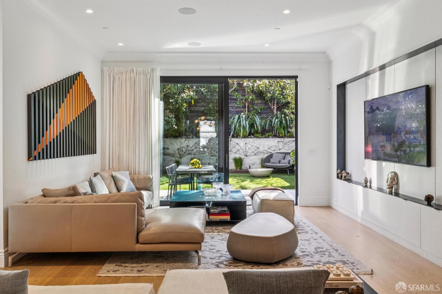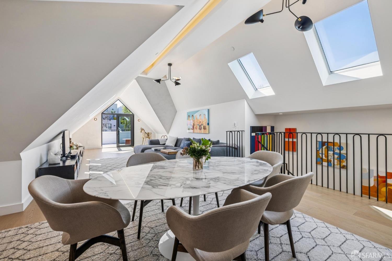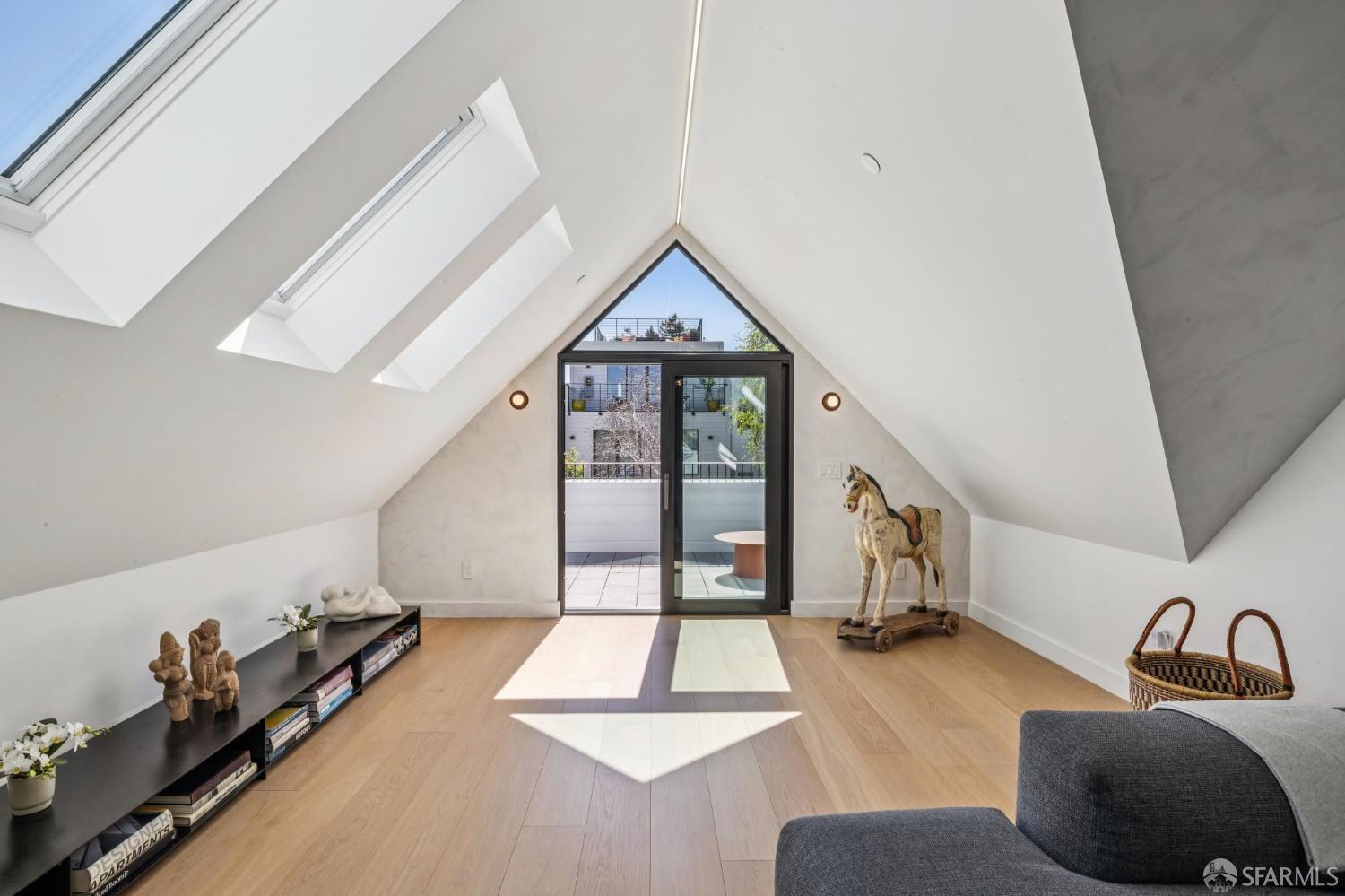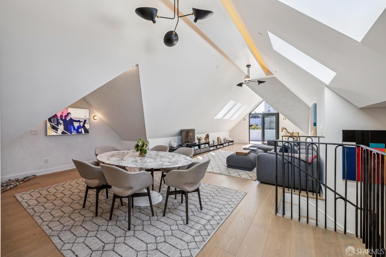 Ideally located just off Valencia Street and only a short stroll from Dolores Park, this exceptional residence completed by NOA Design and Construction in 2019, offers an extraordinary combination of space, comfort, and vibrant city living. Spanning approximately 5,000 square feet across four thoughtfully designed levels, the home features five bedrooms and four and a half bathrooms, providing generous room for everyday living, entertaining, and hosting guests. The main level centers around a dramatic open great room, creating a seamless gathering space for living, dining, and entertaining and immediate access to a mature garden retreat. Flooded with natural light and designed for modern lifestyles, this expansive area provides an ideal backdrop for everything from relaxed evenings at home to lively gatherings with friends and family. The second level features three bedrooms and two bathrooms including an expansive primary suite with walk through closet and a luxurious primary bathroom. The upper level of the home holds a sun drenched “pent room” with attached terrace, an additional bedroom suite with full bath as well as a galley style kitchen area. Throughout the home, well-proportioned rooms and flexible living areas offer the versatility to accommodate work-from-home needs, guest suites, or private retreats. With four levels of living space, the layout provides both openness for entertaining and privacy when desired.