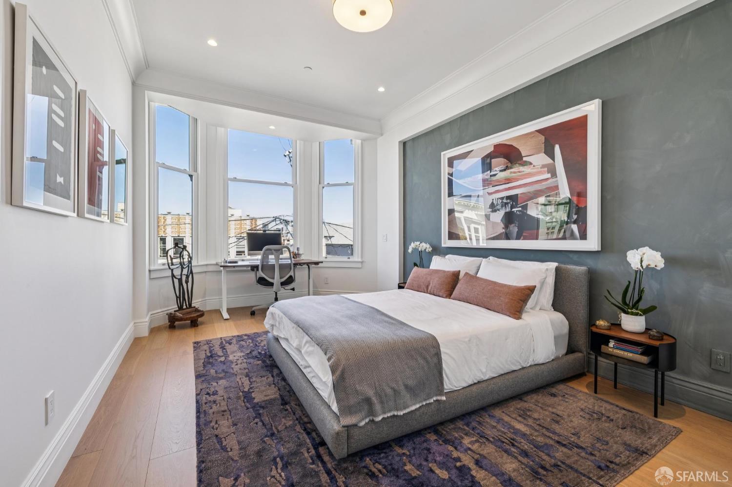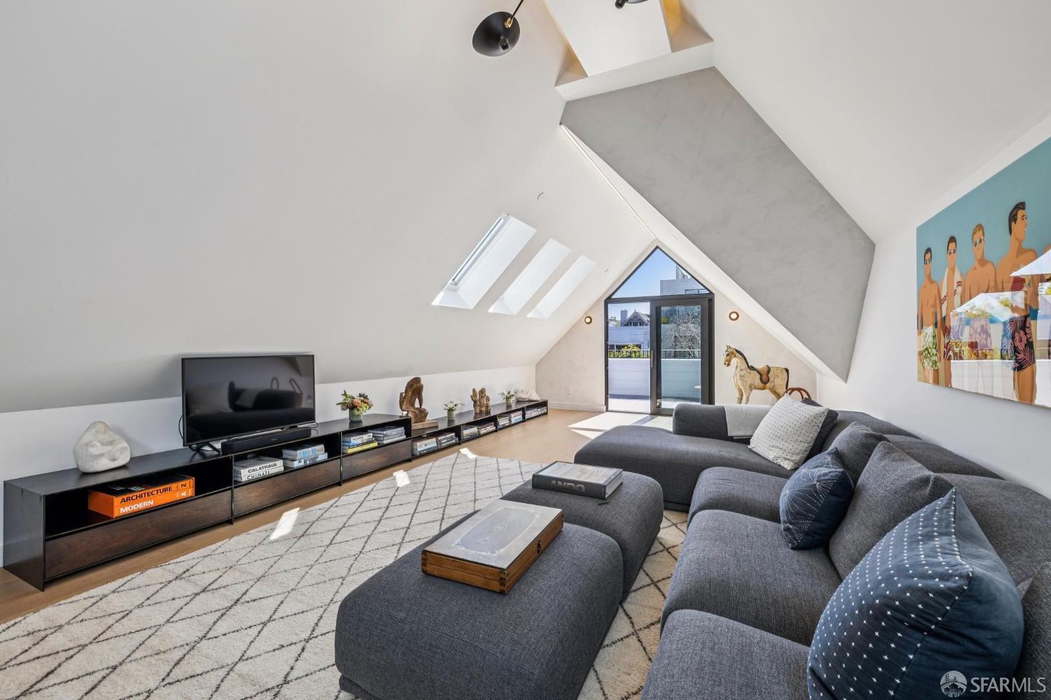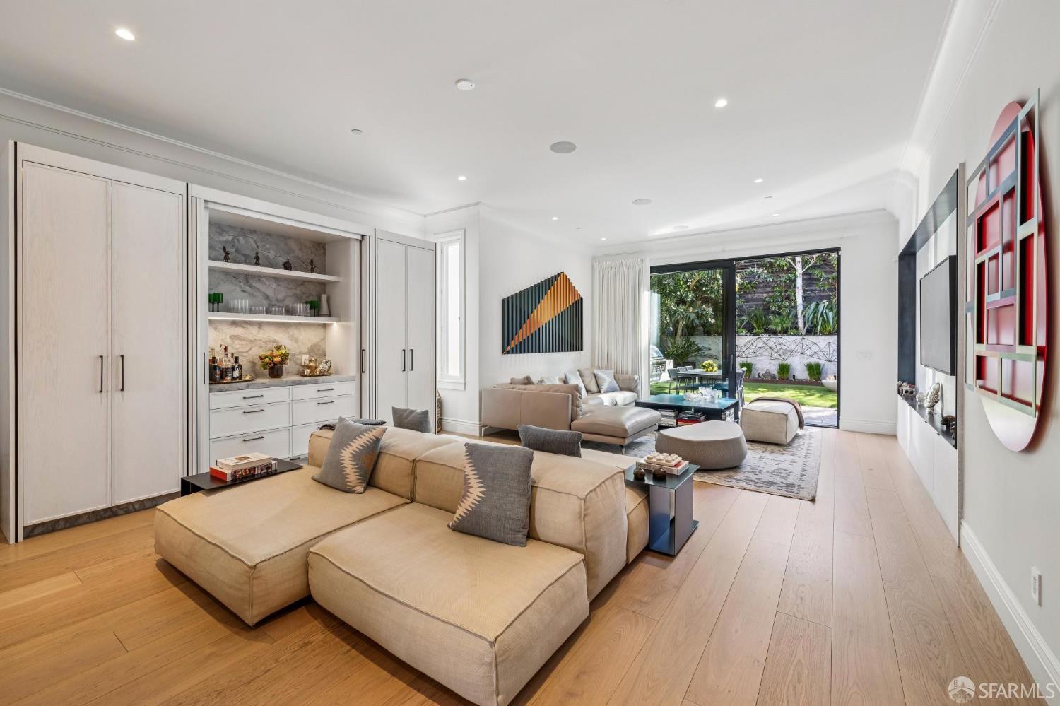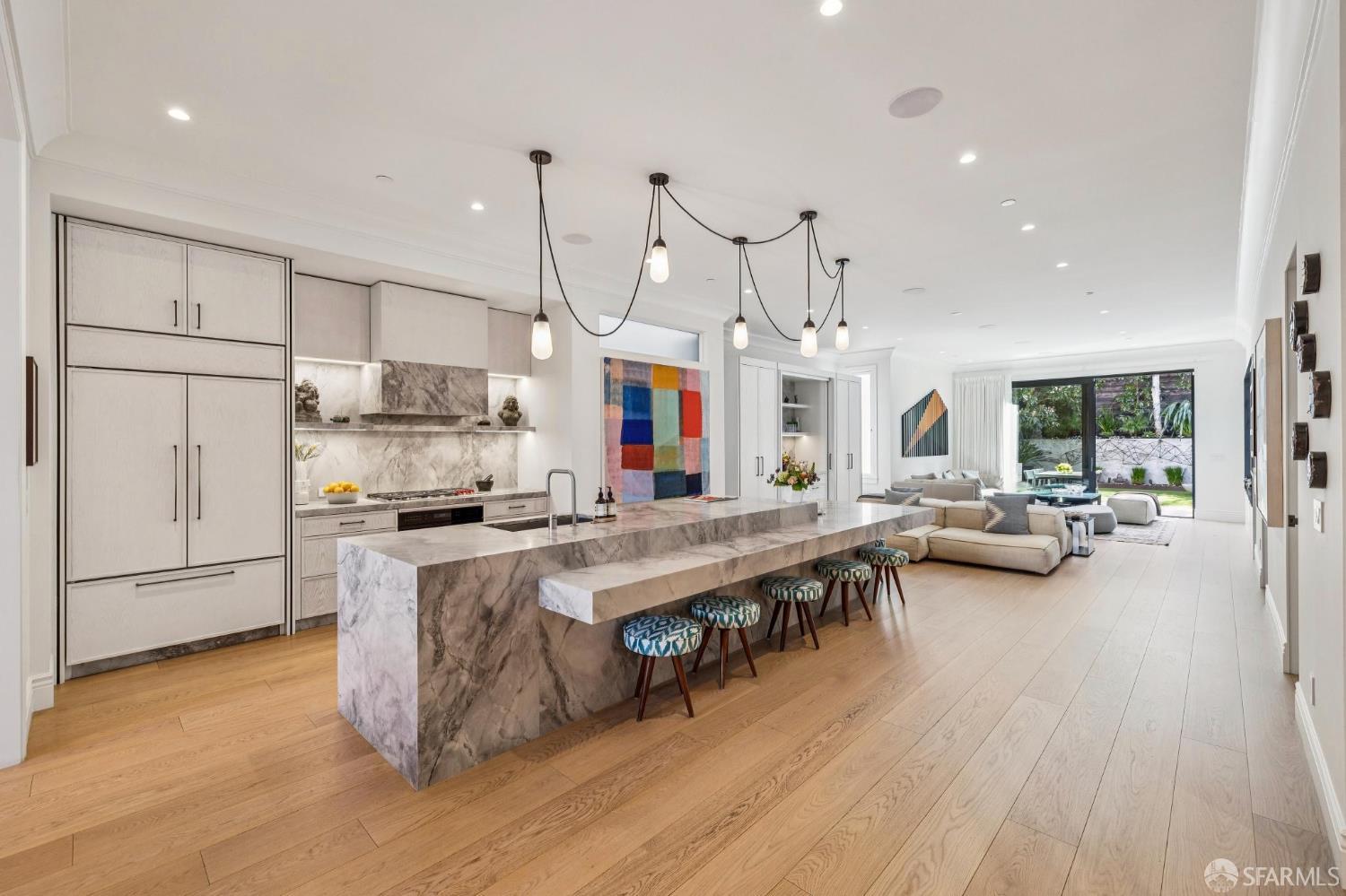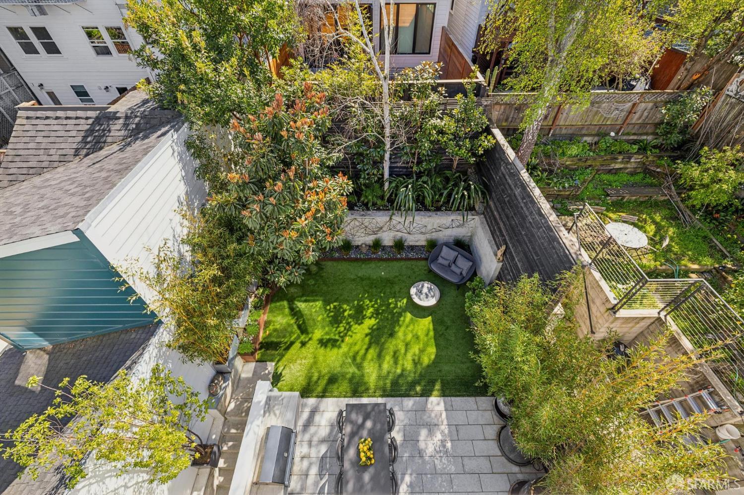 Ideally located just off Valencia Street and only a short stroll from Dolores Park, this exceptional residence completed by NOA Design and Construction in 2019, offers an extraordinary combination of space, comfort, and vibrant city living. Spanning approximately 5,000 square feet across four thoughtfully designed levels, the home features five bedrooms and four and a half bathrooms, providing generous room for everyday living, entertaining, and hosting guests. The main level centers around a dramatic open great room, creating a seamless gathering space for living, dining, and entertaining and immediate access to a mature garden retreat. Flooded with natural light and designed for modern lifestyles, this expansive area provides an ideal backdrop for everything from relaxed evenings at home to lively gatherings with friends and family. The second level features three bedrooms and two bathrooms including an expansive primary suite with walk through closet and a luxurious primary bathroom. The upper level of the home holds a sun drenched “pent room” with attached terrace, an additional bedroom suite with full bath as well as a galley style kitchen area. Throughout the home, well-proportioned rooms and flexible living areas offer the versatility to accommodate work-from-home needs, guest suites, or private retreats. With four levels of living space, the layout provides both openness for entertaining and privacy when desired.