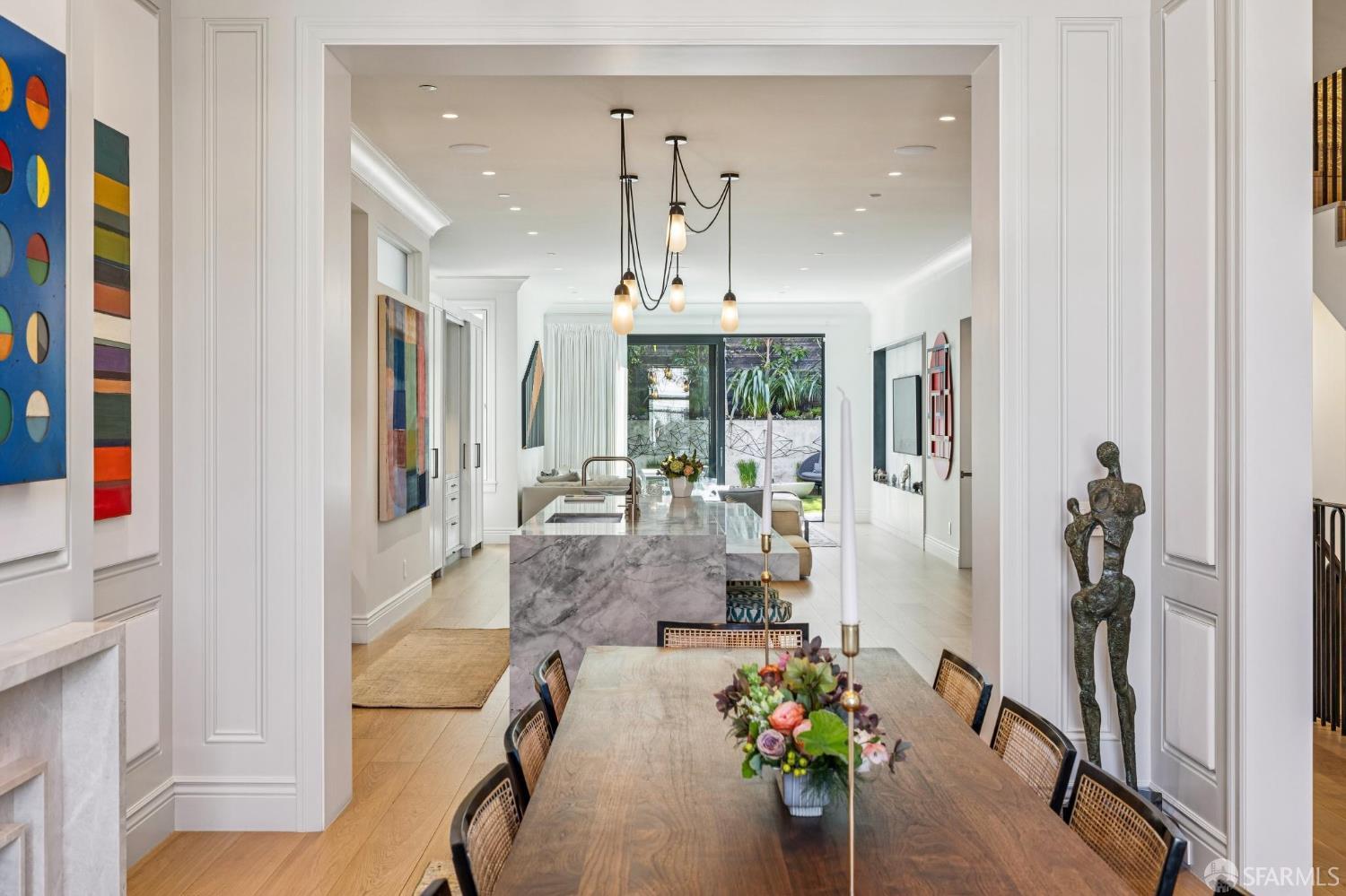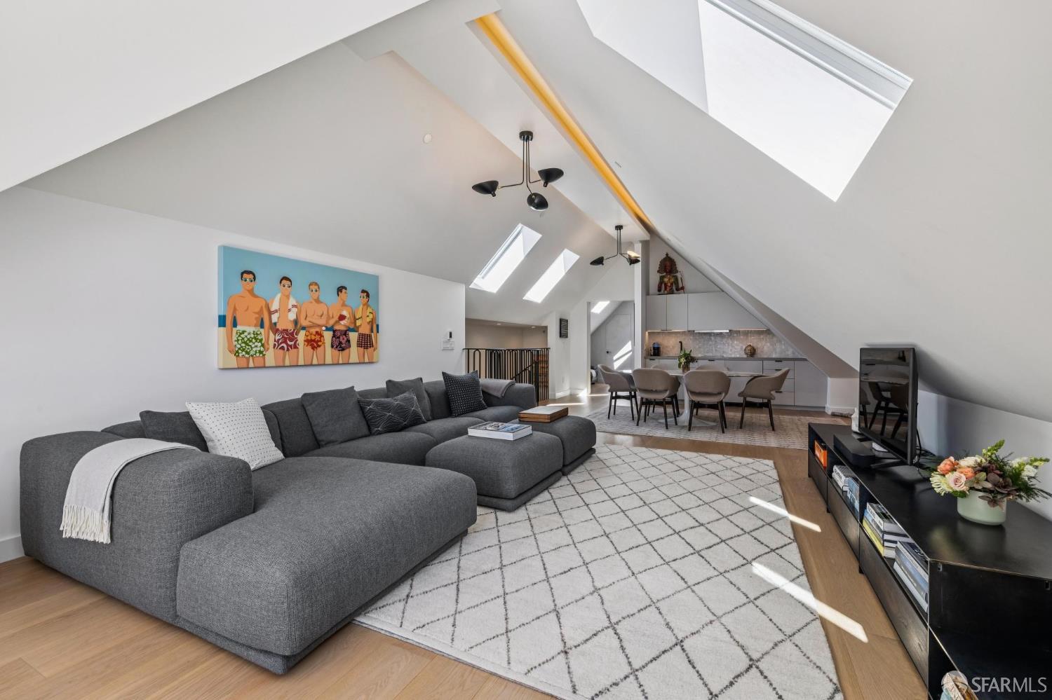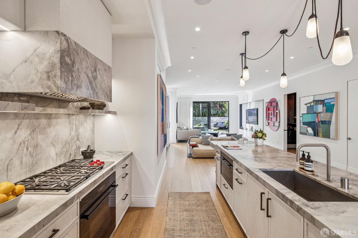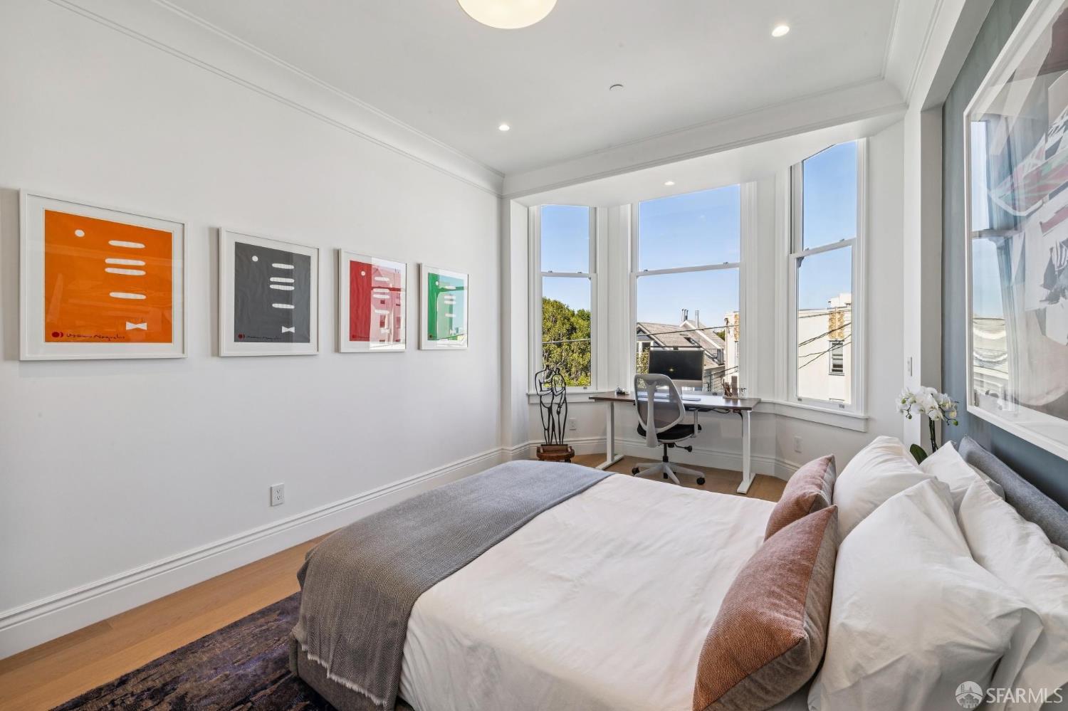 Ideally located just off Valencia Street and only a short stroll from Dolores Park, this exceptional residence completed by NOA Design and Construction in 2019, offers an extraordinary combination of space, comfort, and vibrant city living. Spanning approximately 5,000 square feet across four thoughtfully designed levels, the home features five bedrooms and four and a half bathrooms, providing generous room for everyday living, entertaining, and hosting guests. The main level centers around a dramatic open great room, creating a seamless gathering space for living, dining, and entertaining and immediate access to a mature garden retreat. Flooded with natural light and designed for modern lifestyles, this expansive area provides an ideal backdrop for everything from relaxed evenings at home to lively gatherings with friends and family. The second level features three bedrooms and two bathrooms including an expansive primary suite with walk through closet and a luxurious primary bathroom. The upper level of the home holds a sun drenched “pent room” with attached terrace, an additional bedroom suite with full bath as well as a galley style kitchen area. Throughout the home, well-proportioned rooms and flexible living areas offer the versatility to accommodate work-from-home needs, guest suites, or private retreats. With four levels of living space, the layout provides both openness for entertaining and privacy when desired.