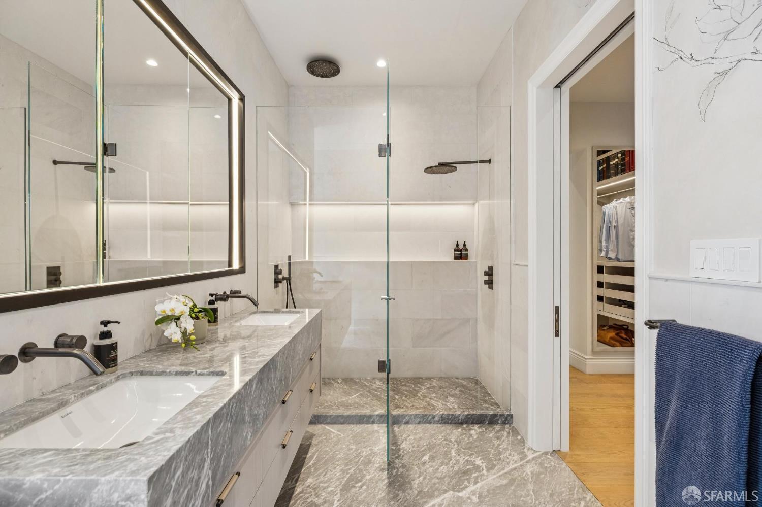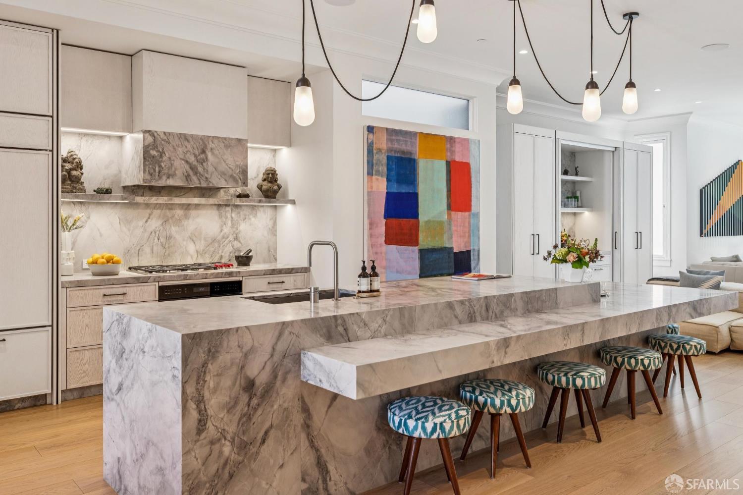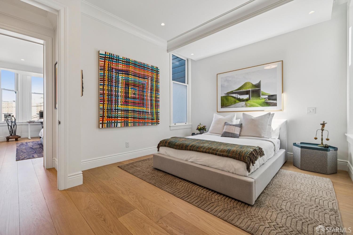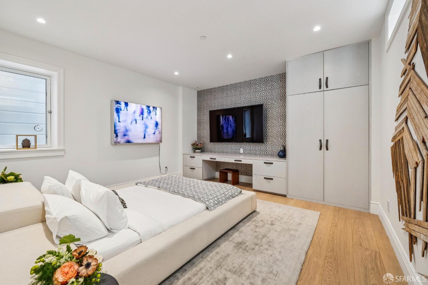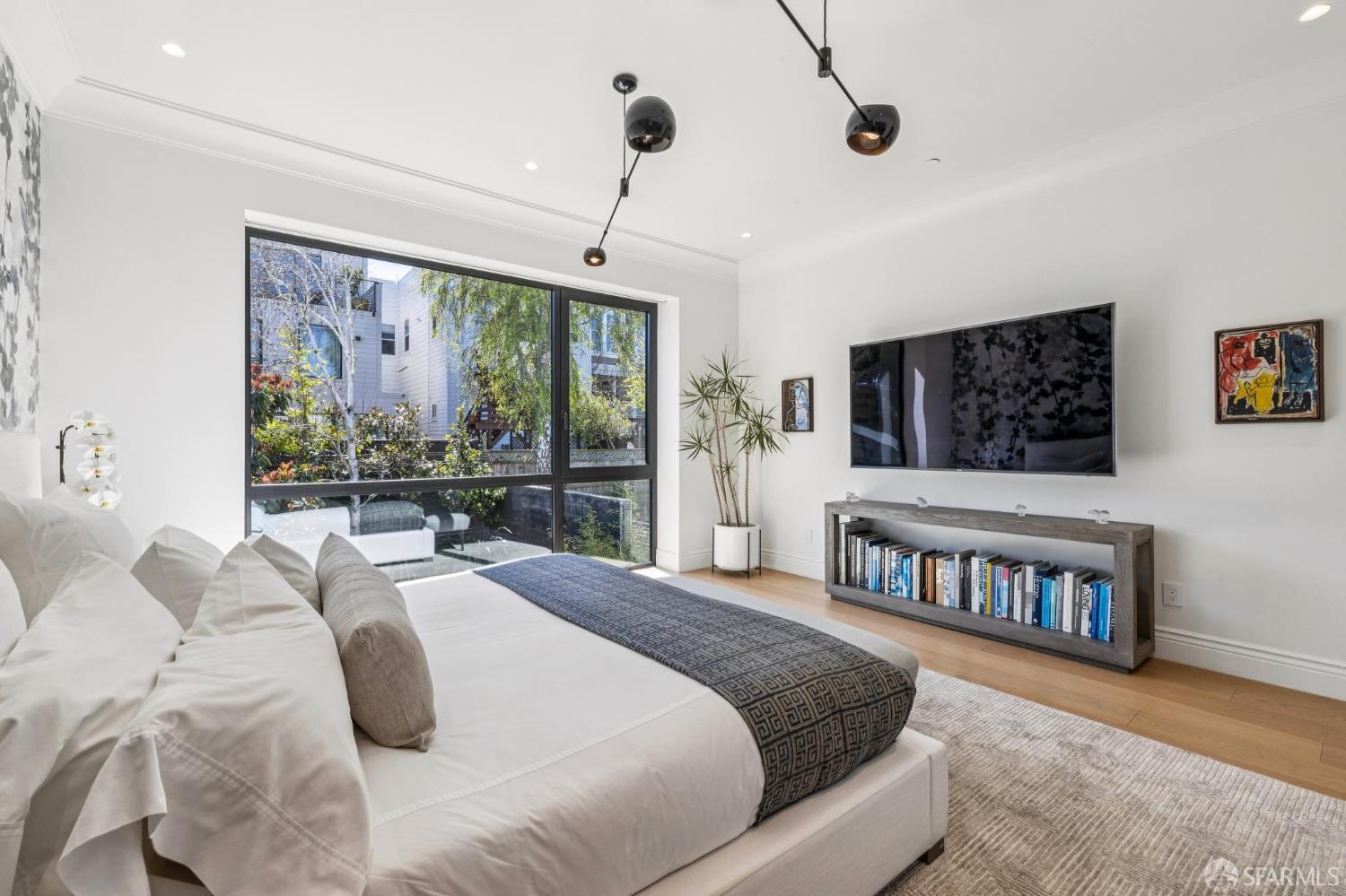 Ideally located just off Valencia Street and only a short stroll from Dolores Park, this exceptional residence completed by NOA Design and Construction in 2019, offers an extraordinary combination of space, comfort, and vibrant city living. Spanning approximately 5,000 square feet across four thoughtfully designed levels, the home features five bedrooms and four and a half bathrooms, providing generous room for everyday living, entertaining, and hosting guests. The main level centers around a dramatic open great room, creating a seamless gathering space for living, dining, and entertaining and immediate access to a mature garden retreat. Flooded with natural light and designed for modern lifestyles, this expansive area provides an ideal backdrop for everything from relaxed evenings at home to lively gatherings with friends and family. The second level features three bedrooms and two bathrooms including an expansive primary suite with walk through closet and a luxurious primary bathroom. The upper level of the home holds a sun drenched “pent room” with attached terrace, an additional bedroom suite with full bath as well as a galley style kitchen area. Throughout the home, well-proportioned rooms and flexible living areas offer the versatility to accommodate work-from-home needs, guest suites, or private retreats. With four levels of living space, the layout provides both openness for entertaining and privacy when desired.