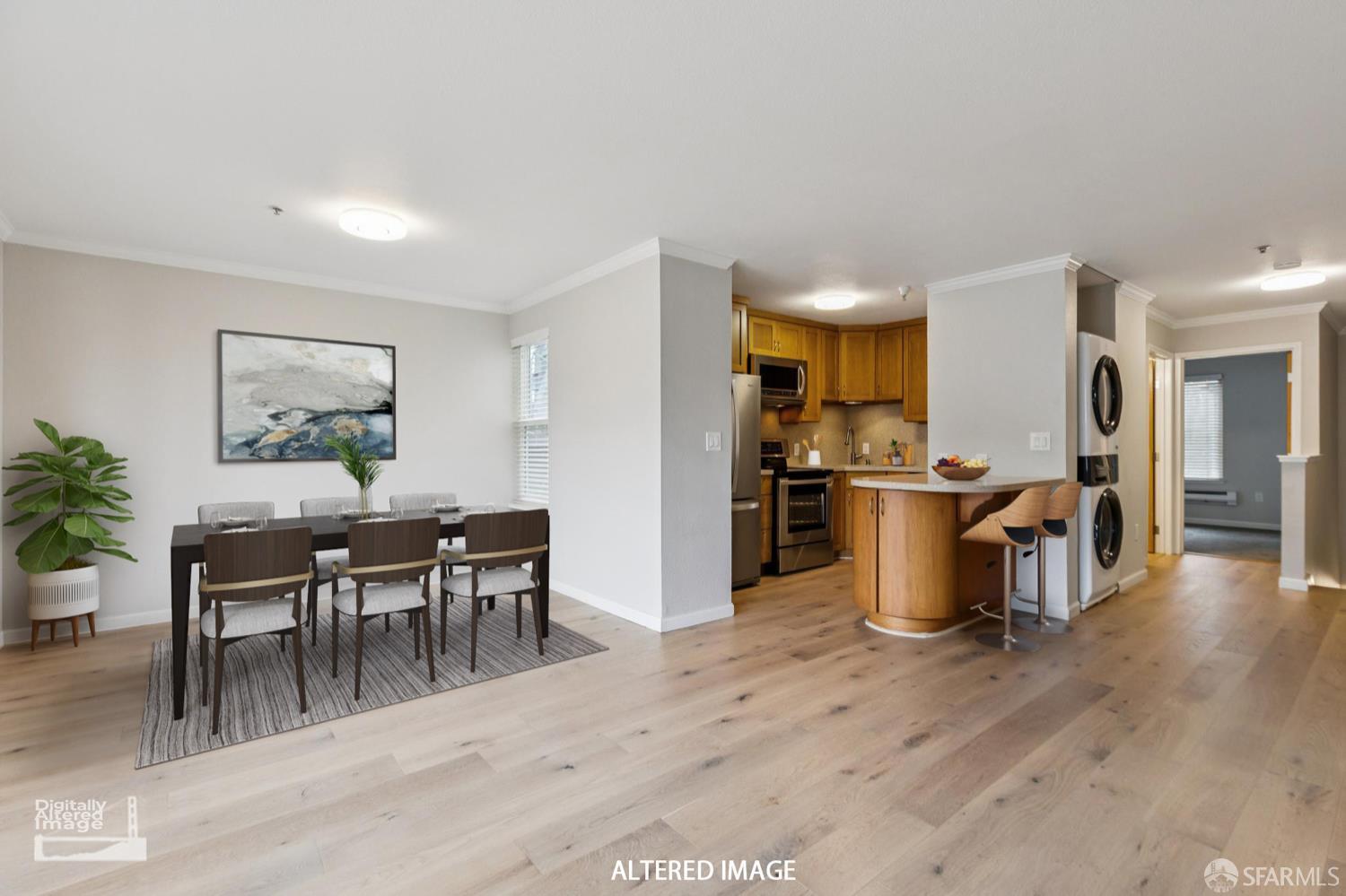Welcome to #311 a 2 level corner unit offers 2 Bedrooms, 2 Bathrooms & deeded parking. The first level features a Bedroom w/upgraded closet & Bathroom. The upper level includes a living room (with Fireplace) that opens to the customized kitchen which includes under cabinet sliding shelves, stainless fixtures, Cesar stone countertops/full backsplash & kitchen island/breakfast bar. Stainless steel appliances feature French door refrigerator & a full size dishwasher. Full size Washer & Dryer is also on the same level as the Primary Bedroom.