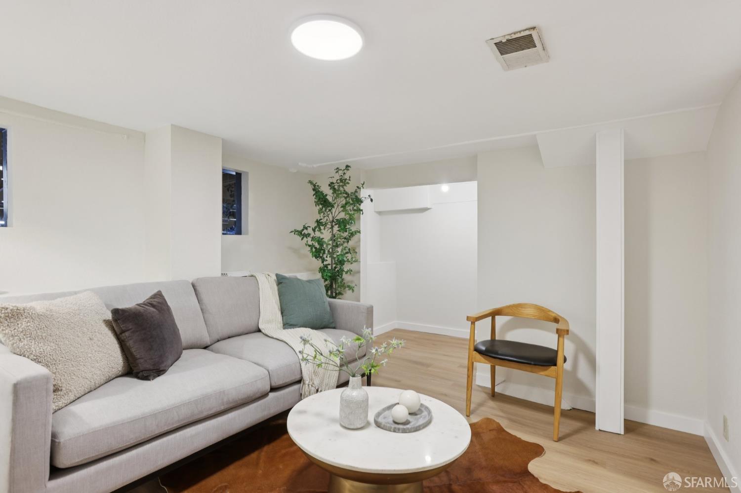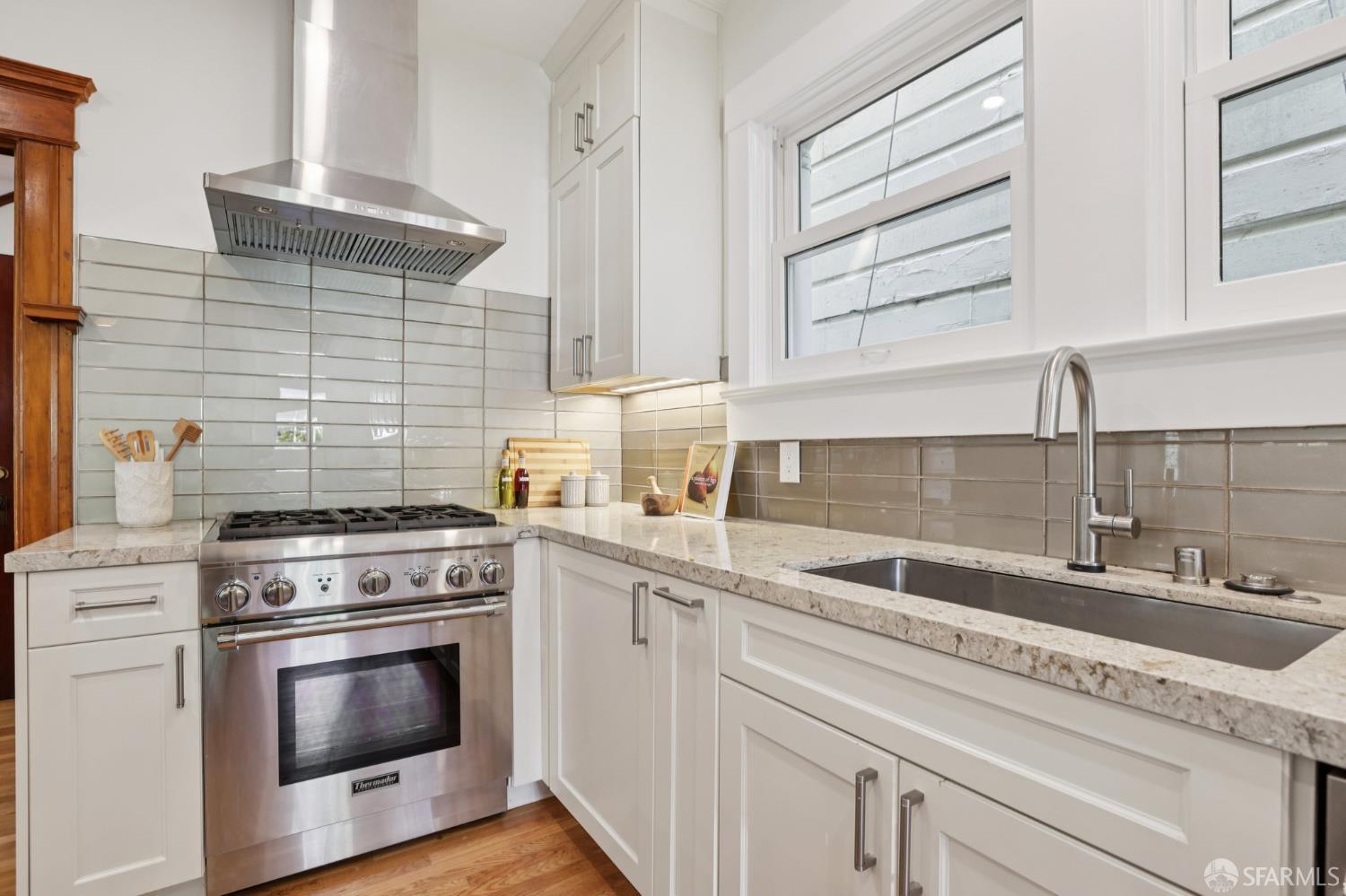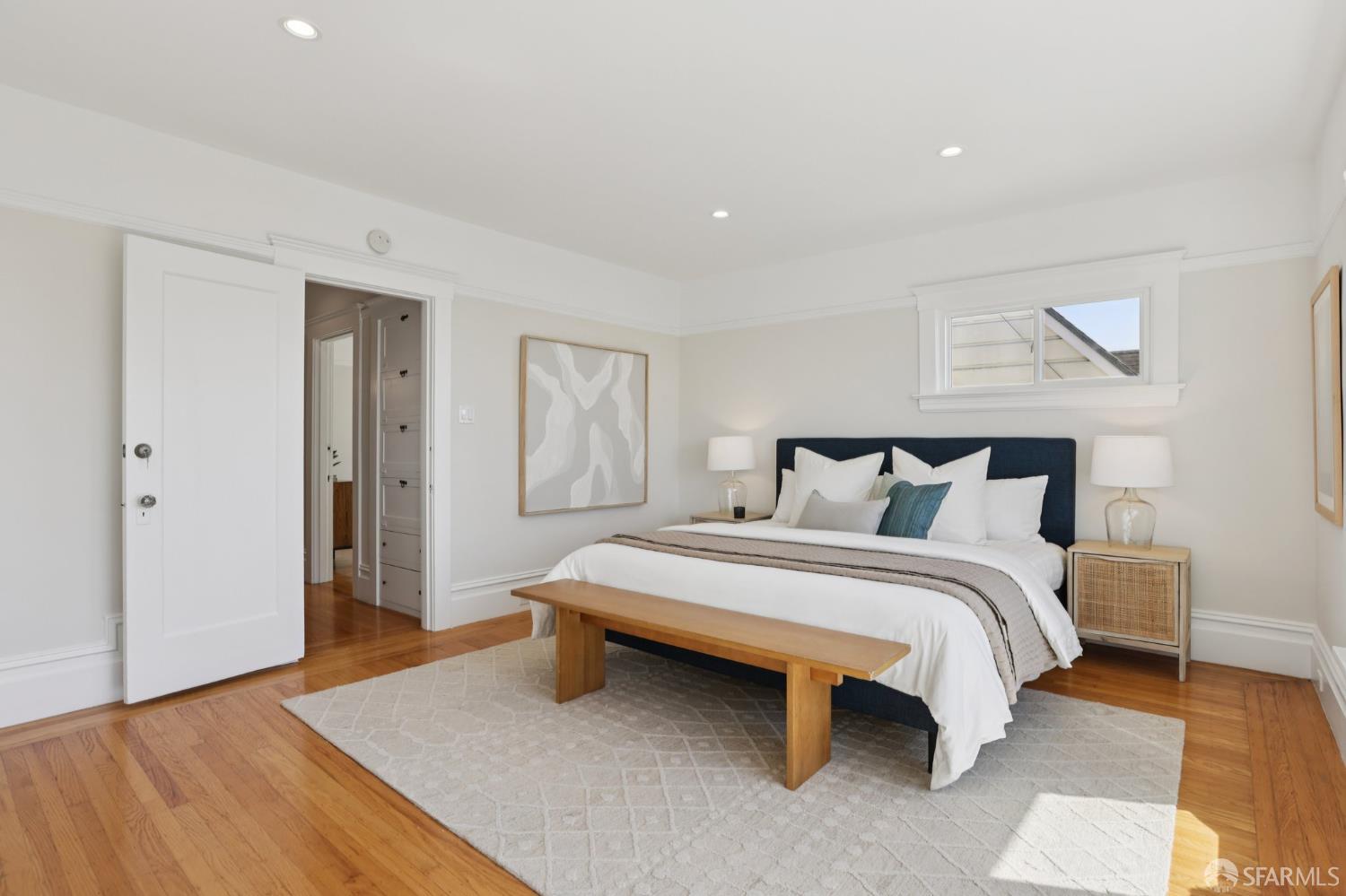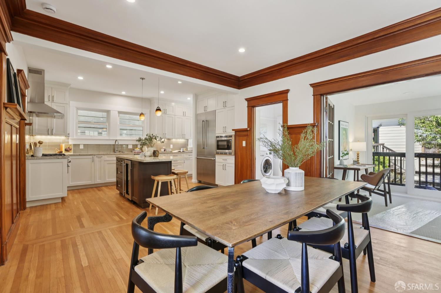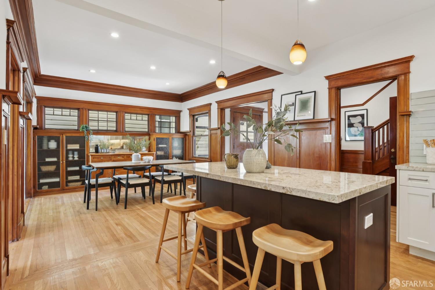 Stand alone single family home perched in Golden Gate Heights with detached two car garage, sweeping Pacific Ocean views, and three finished levels of flexible living space. This well maintained residence offers 4 bedrooms, 4.5 baths, plus 2 bonus rooms ideal for multigenerational living, guests, caretakers, or office use. Original gumwood finishes, handcrafted built ins, and period details are preserved throughout, paired with a remodeled kitchen, updated baths, and completed electrical and plumbing improvements. The top floor includes four bedrooms and two baths. The west facing front bedroom captures ocean views. The rear primary suite overlooks the garden and includes a renovated ensuite bath. The main level opens with a classic central staircase. The living room features a refinished fireplace mantel, water outlooks, and original built in cabinetry. A finished sunroom provides added space for an office, playroom, or den. The kitchen and dining areas were opened to create a modern open concept layout. This level also includes a half bath, a newly installed laundry room, and direct access to the rear deck, landscaped backyard, and firepit. The lower level, recently updated, offers a media room, wet bar, two baths, and two bonus rooms. Separate side and rear entrances, along with interior access, create strong flexibility for guests, extended family, or work from home needs. The detached rear garage faces a small alley and offers side by side parking for two cars. Additional laundry hookups are also located there. Located near West Portal, transit, shopping, and commuter routes.