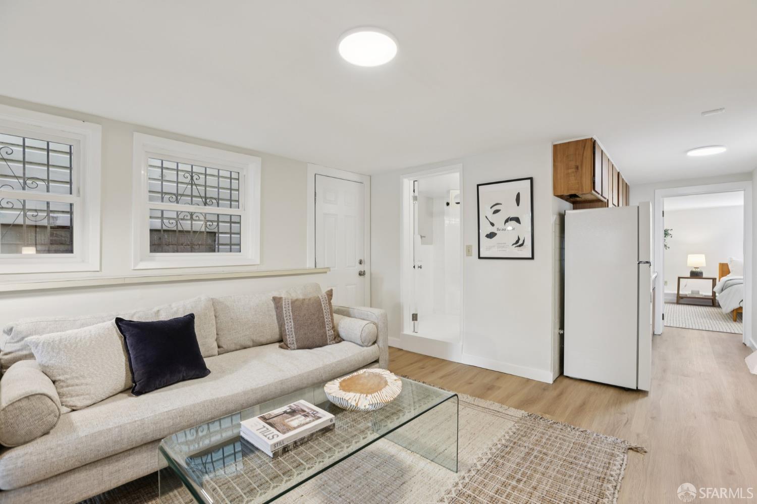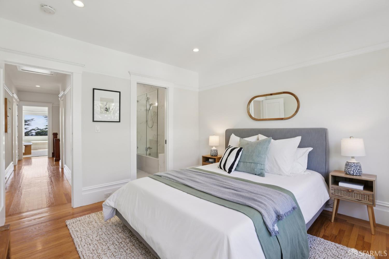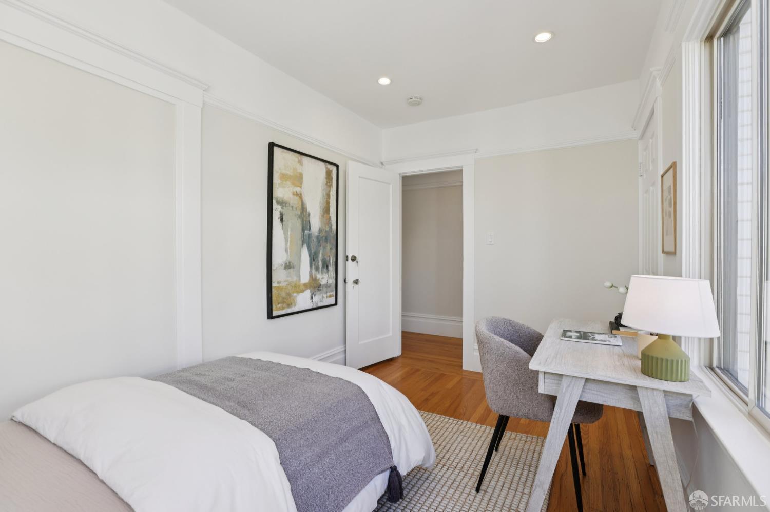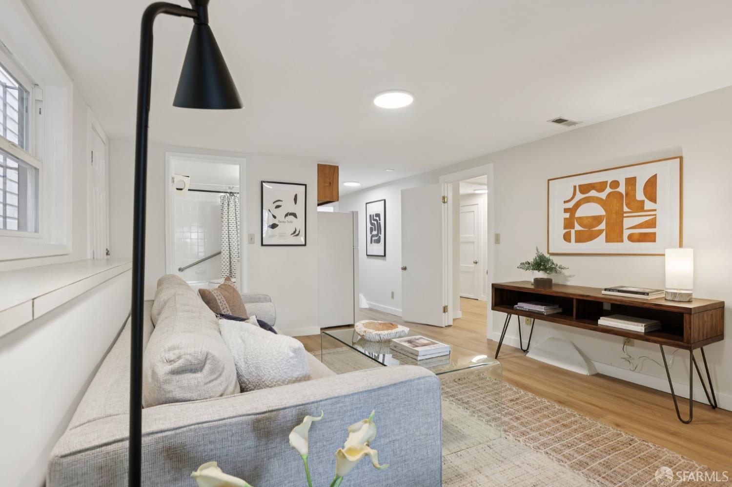 Stand alone single family home perched in Golden Gate Heights with detached two car garage, sweeping Pacific Ocean views, and three finished levels of flexible living space. This well maintained residence offers 4 bedrooms, 4.5 baths, plus 2 bonus rooms ideal for multigenerational living, guests, caretakers, or office use. Original gumwood finishes, handcrafted built ins, and period details are preserved throughout, paired with a remodeled kitchen, updated baths, and completed electrical and plumbing improvements. The top floor includes four bedrooms and two baths. The west facing front bedroom captures ocean views. The rear primary suite overlooks the garden and includes a renovated ensuite bath. The main level opens with a classic central staircase. The living room features a refinished fireplace mantel, water outlooks, and original built in cabinetry. A finished sunroom provides added space for an office, playroom, or den. The kitchen and dining areas were opened to create a modern open concept layout. This level also includes a half bath, a newly installed laundry room, and direct access to the rear deck, landscaped backyard, and firepit. The lower level, recently updated, offers a media room, wet bar, two baths, and two bonus rooms. Separate side and rear entrances, along with interior access, create strong flexibility for guests, extended family, or work from home needs. The detached rear garage faces a small alley and offers side by side parking for two cars. Additional laundry hookups are also located there. Located near West Portal, transit, shopping, and commuter routes.