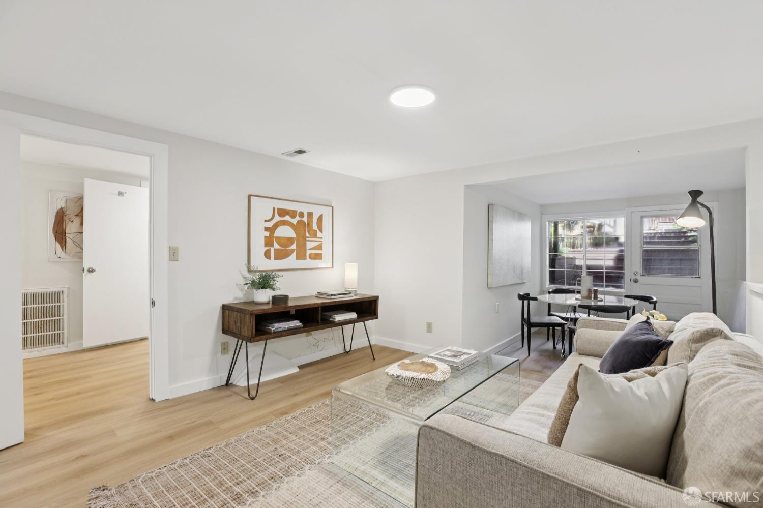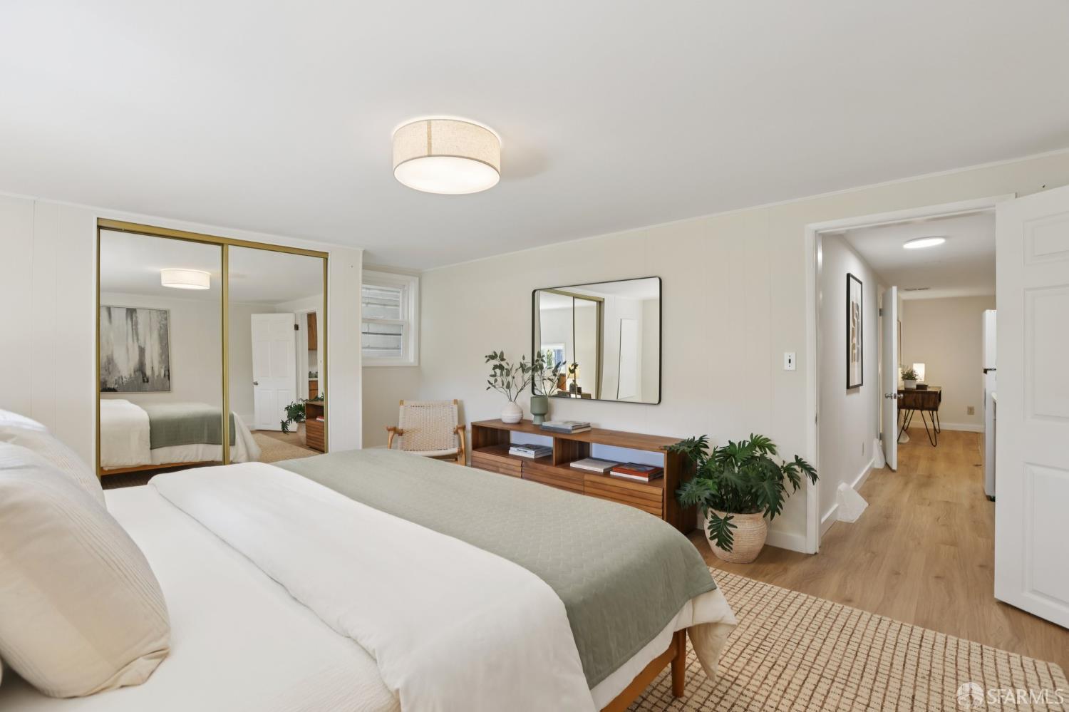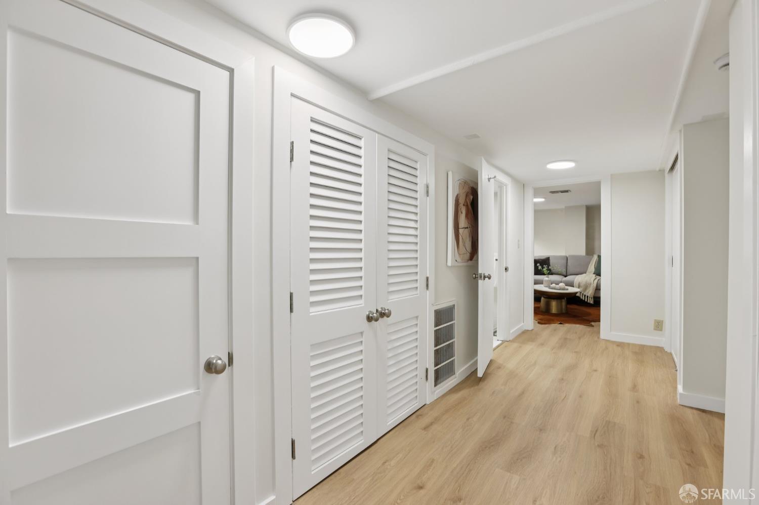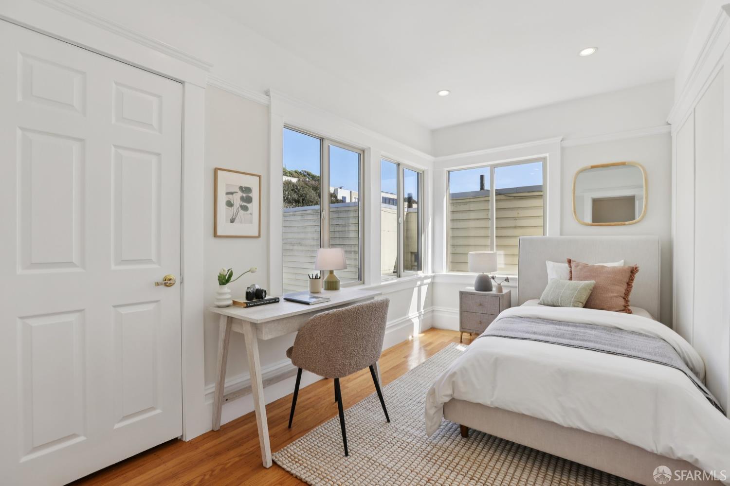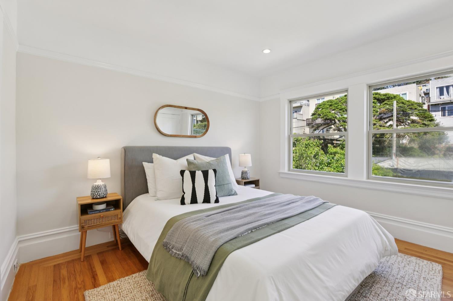 Stand alone single family home perched in Golden Gate Heights with detached two car garage, sweeping Pacific Ocean views, and three finished levels of flexible living space. This well maintained residence offers 4 bedrooms, 4.5 baths, plus 2 bonus rooms ideal for multigenerational living, guests, caretakers, or office use. Original gumwood finishes, handcrafted built ins, and period details are preserved throughout, paired with a remodeled kitchen, updated baths, and completed electrical and plumbing improvements. The top floor includes four bedrooms and two baths. The west facing front bedroom captures ocean views. The rear primary suite overlooks the garden and includes a renovated ensuite bath. The main level opens with a classic central staircase. The living room features a refinished fireplace mantel, water outlooks, and original built in cabinetry. A finished sunroom provides added space for an office, playroom, or den. The kitchen and dining areas were opened to create a modern open concept layout. This level also includes a half bath, a newly installed laundry room, and direct access to the rear deck, landscaped backyard, and firepit. The lower level, recently updated, offers a media room, wet bar, two baths, and two bonus rooms. Separate side and rear entrances, along with interior access, create strong flexibility for guests, extended family, or work from home needs. The detached rear garage faces a small alley and offers side by side parking for two cars. Additional laundry hookups are also located there. Located near West Portal, transit, shopping, and commuter routes.