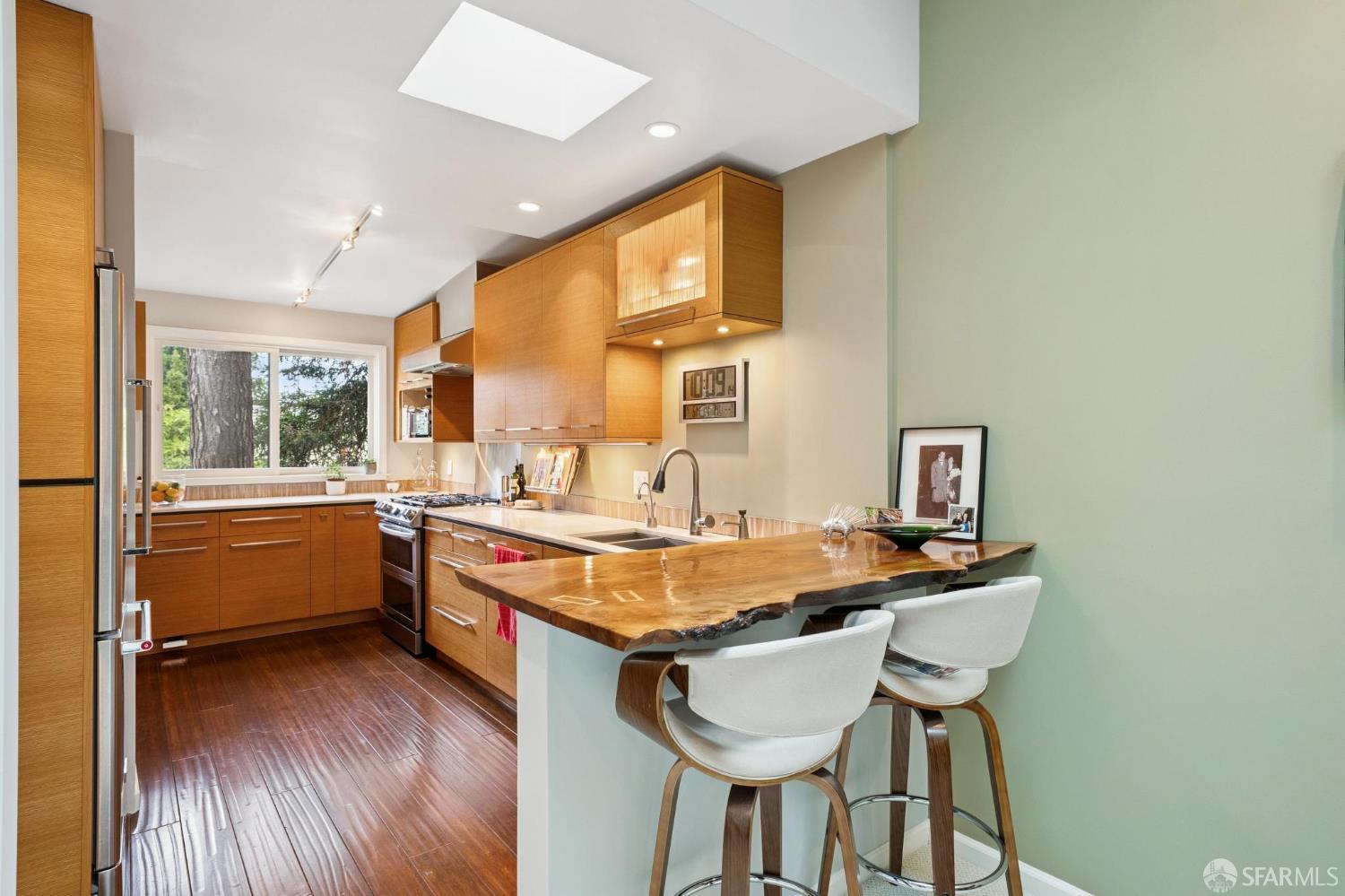 Tucked behind an unassuming facade, 2576 Post Street delights with an unexpected retreat in the heart of San Francisco’s coveted Lower Pacific Heights neighborhood. A lush, landscaped courtyard of over 200 square feet crafted of bamboo and teak with mature plantings welcomes you home. It’s a serene and calming arrival that feels worlds away from the city just beyond the door. This thoughtfully updated two-bedroom, two-bath residence offers approximately 1,300 square feet of thoughtful, bright and open living space where every square inch has been intentionally maximized. Smart design and meticulous updates ensure the home lives larger than its footprint, with custom built-out closets and storage throughout so every space functions beautifully. The upstairs living area is designed for seamless indoor-outdoor living and entertaining. Large doors open directly to the courtyard, creating a natural extension of the living space and an ideal setting for hosting friends, dinner parties, or relaxed evenings at home. Vaulted ceilings and numerous skylights throughout enhance the living space with light and volume. The spacious primary suite occupies the rear of the lower level, offering a truly private retreat. The luxurious primary bathroom features an oversized walk-in shower with dual shower heads and wooden bench for a spa-like experience. Additional amenities include surround sound throughout the home, secured entry, and one-car garage parking with direct interior access and abundant storage space. Close to the shops of Masonic and Geary, the Divisadero corridor, California St. in Presidio Heights and so much more! This central location offers the ideal blend of neighborhood charm, convenience, and classic San Francisco lifestyle. Elegant, private, and beautifully updated, 2576 Post Street is a rare opportunity to own a hidden gem in one of the city’s most desirable neighborhoods.
