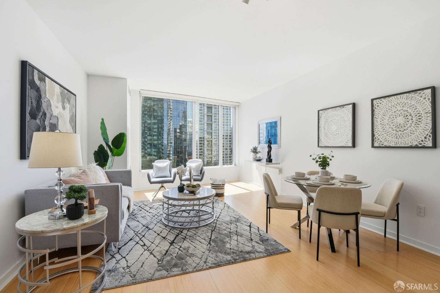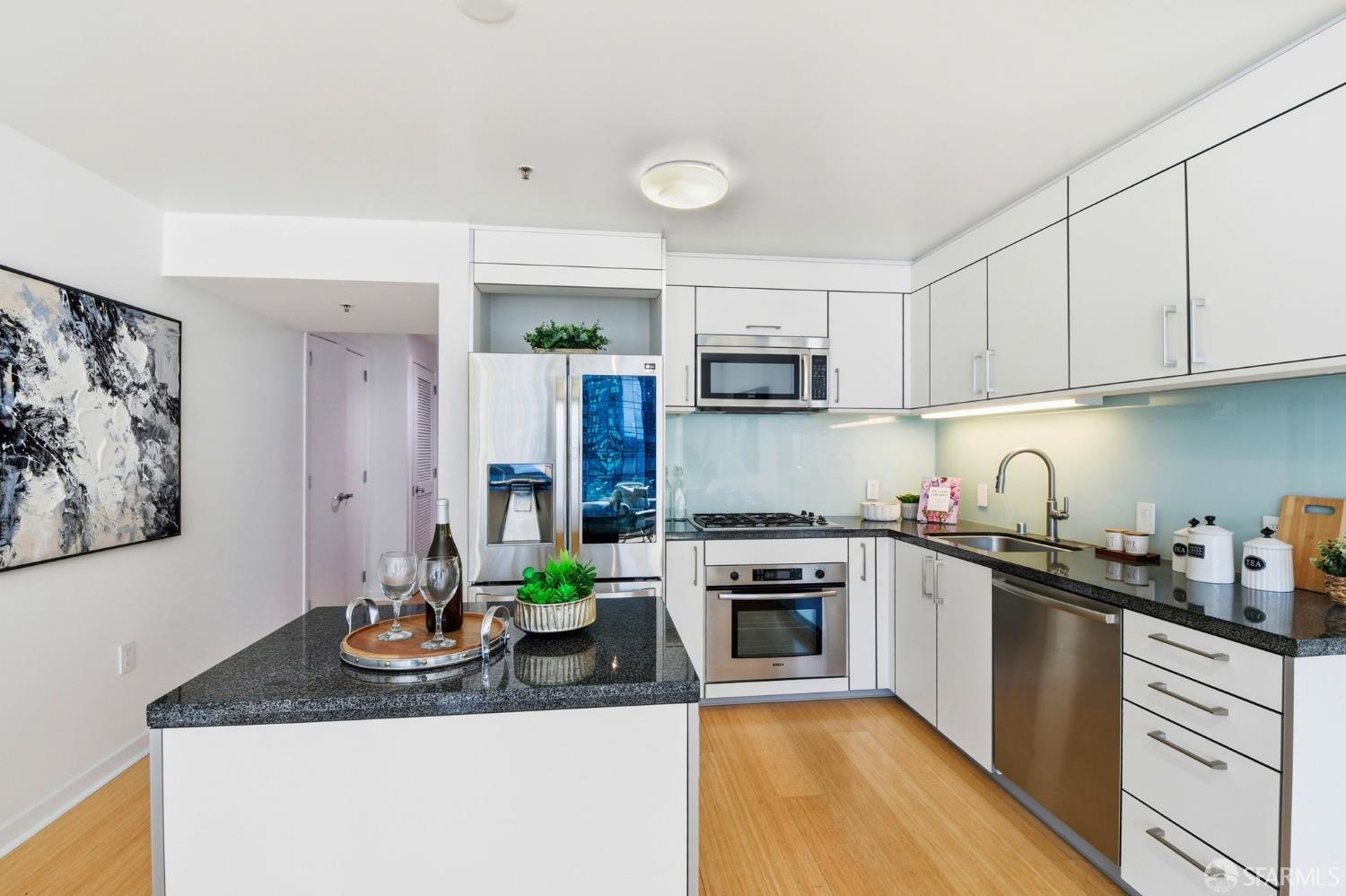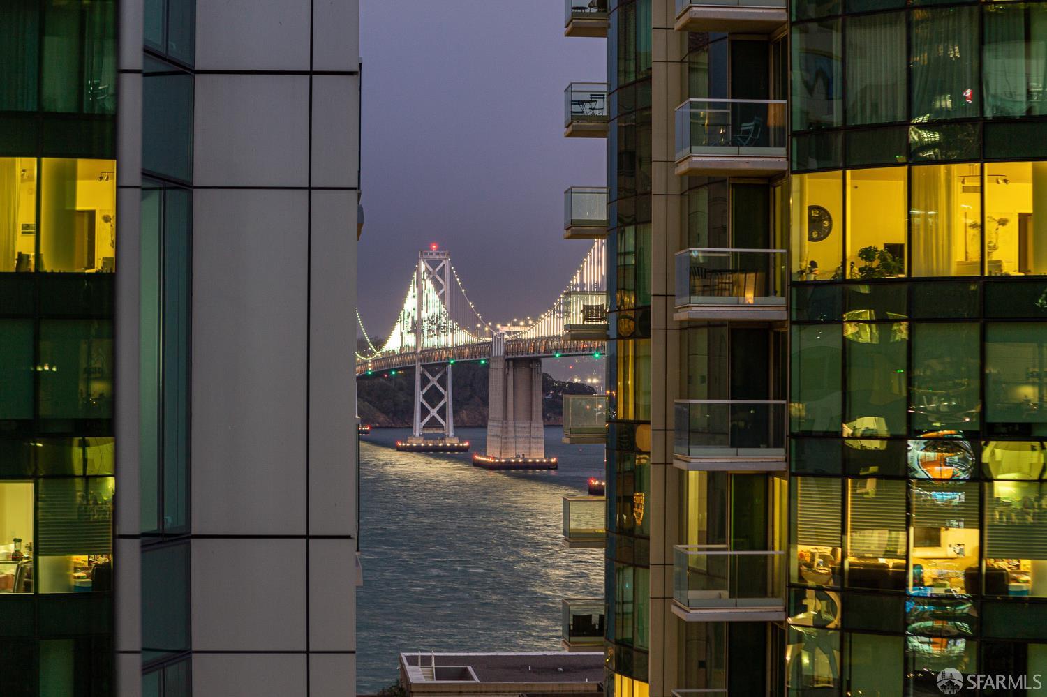 Sky High ! The Infinity Nothing Less – A few homes define the true Infinity lifestyle and this is one of them!!! Well maintained with wooden floors and all the high quality finishes The Infinity is known for. Engaging views that are changing and becoming more dynamic over time : even featuring greenery. One of the best 1 bedroom floor plans in all of South Beach. Generous bedroom size and well portioned SPA like bathroom too. Walk in closetis a dream and XXL. Entertaining is always effortless and makes a statement! Step inside and you are fully immersed in the city views that captivate and mesmerize by night! All details are truly bespoke! The HUB of AI is HERE ! Upon entry the open and bright spaces immerse you. The kitchen has a suite of Bosch appliances and a signature XXL refrigerator. The Bosch gas cooktop with an oven is integrated into the stone countertops. Glass backsplash is one of a kind and reflects the underneath cabinet lights creating a modern sleek look. Studio Becker cabinets speaks volumes for the high quality throughout. Cooking and entertaining become one as the living room flows seamlessly from here. XXL floor to ceiling windows are throughout the home with a slight curve inviting the city views and bright sun into the home. Escape to a well portioned bedroom with views, large walk in closet and many options to add cozy seating areas. A hallway separating the bedroom and bathroom can accommodate a lovely home office set up. Bathroom has XXL shower over tub. Limestone tiles throughout with well organized vanity and modern lighting evokes the opportunity for a SPA experience. In unit washer and dryer, independent deeded parking, community staff and all the 5 Star Infinity amenities: 5K sq ft GYM, Pool, Luxe Club Lounge, Business Center, Theater Room & more that have set the standard for San Francisco luxury living completes the home. Waterfront access with iconic restaurants, cafes, shopping and the BallPark. Chase center is within reach and easy transportation options. Waterbar, The Ferry Building, Saint Frank Coffee all here. Highway 80, 101, 280 and MUNI, BART, & CALTRAIN.