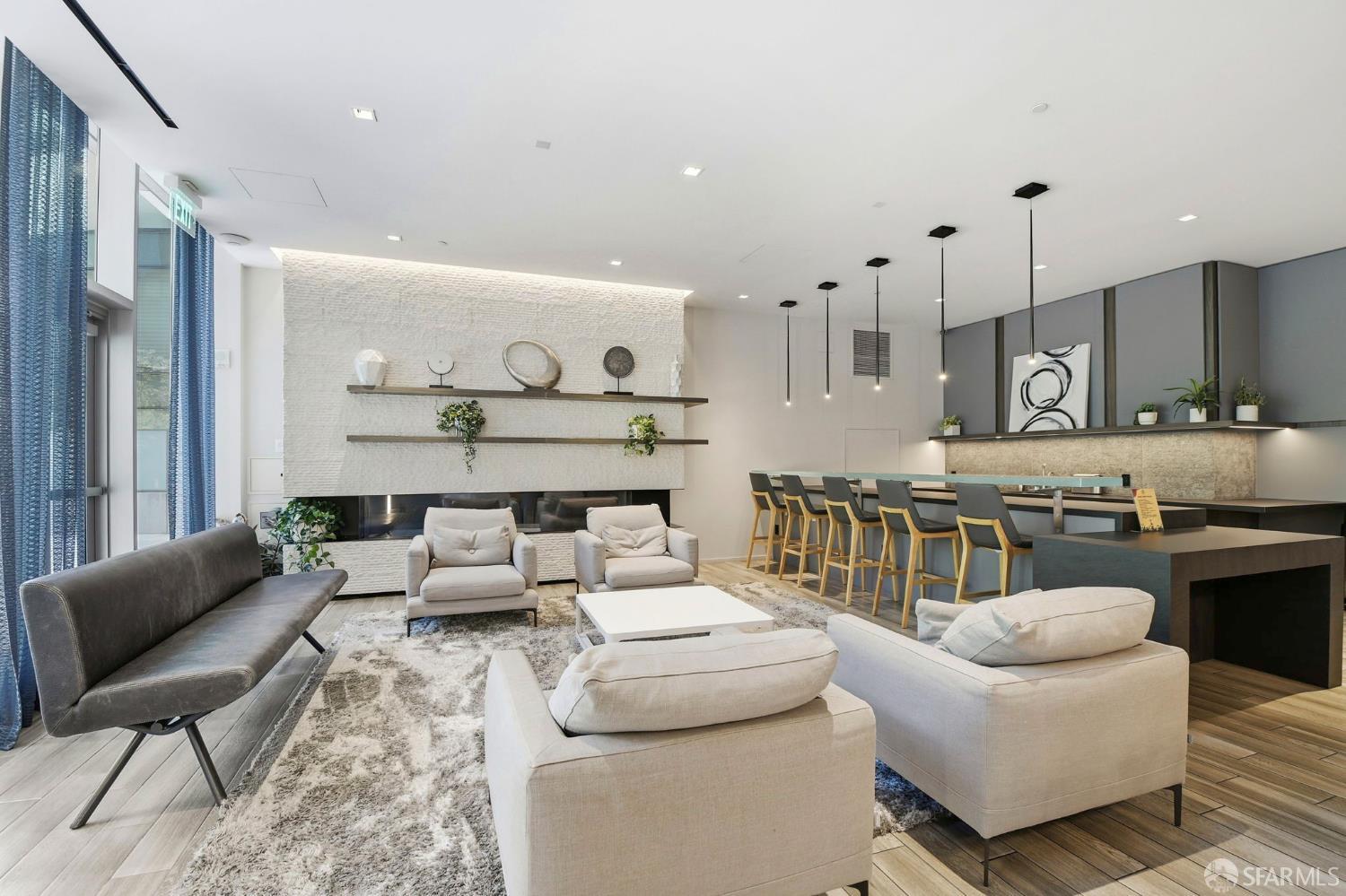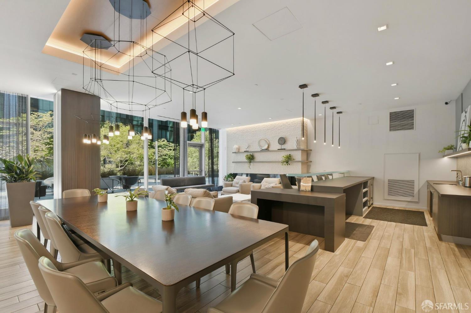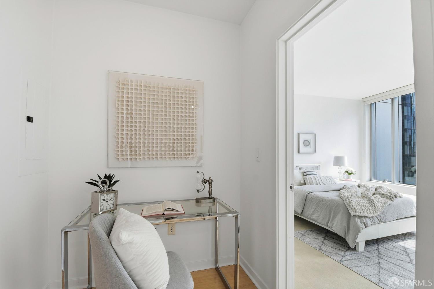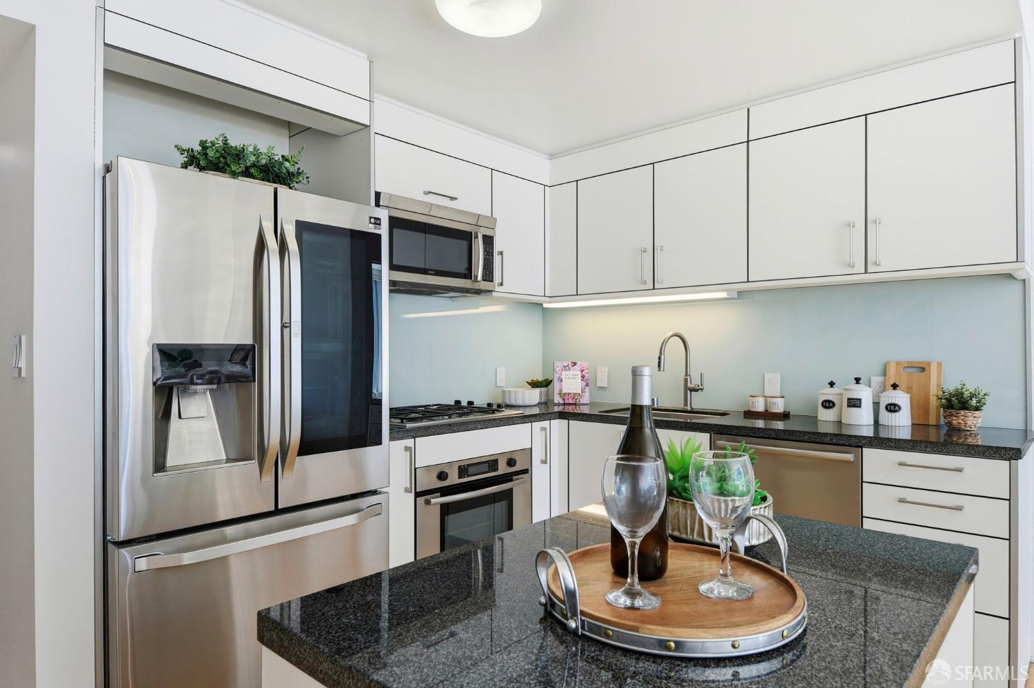 Sky High ! The Infinity Nothing Less – A few homes define the true Infinity lifestyle and this is one of them!!! Well maintained with wooden floors and all the high quality finishes The Infinity is known for. Engaging views that are changing and becoming more dynamic over time : even featuring greenery. One of the best 1 bedroom floor plans in all of South Beach. Generous bedroom size and well portioned SPA like bathroom too. Walk in closetis a dream and XXL. Entertaining is always effortless and makes a statement! Step inside and you are fully immersed in the city views that captivate and mesmerize by night! All details are truly bespoke! The HUB of AI is HERE ! Upon entry the open and bright spaces immerse you. The kitchen has a suite of Bosch appliances and a signature XXL refrigerator. The Bosch gas cooktop with an oven is integrated into the stone countertops. Glass backsplash is one of a kind and reflects the underneath cabinet lights creating a modern sleek look. Studio Becker cabinets speaks volumes for the high quality throughout. Cooking and entertaining become one as the living room flows seamlessly from here. XXL floor to ceiling windows are throughout the home with a slight curve inviting the city views and bright sun into the home. Escape to a well portioned bedroom with views, large walk in closet and many options to add cozy seating areas. A hallway separating the bedroom and bathroom can accommodate a lovely home office set up. Bathroom has XXL shower over tub. Limestone tiles throughout with well organized vanity and modern lighting evokes the opportunity for a SPA experience. In unit washer and dryer, independent deeded parking, community staff and all the 5 Star Infinity amenities: 5K sq ft GYM, Pool, Luxe Club Lounge, Business Center, Theater Room & more that have set the standard for San Francisco luxury living completes the home. Waterfront access with iconic restaurants, cafes, shopping and the BallPark. Chase center is within reach and easy transportation options. Waterbar, The Ferry Building, Saint Frank Coffee all here. Highway 80, 101, 280 and MUNI, BART, & CALTRAIN.