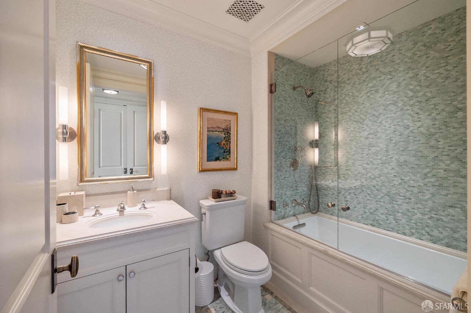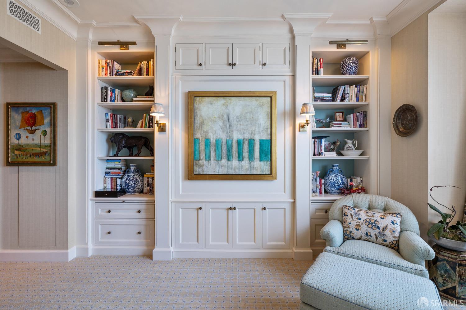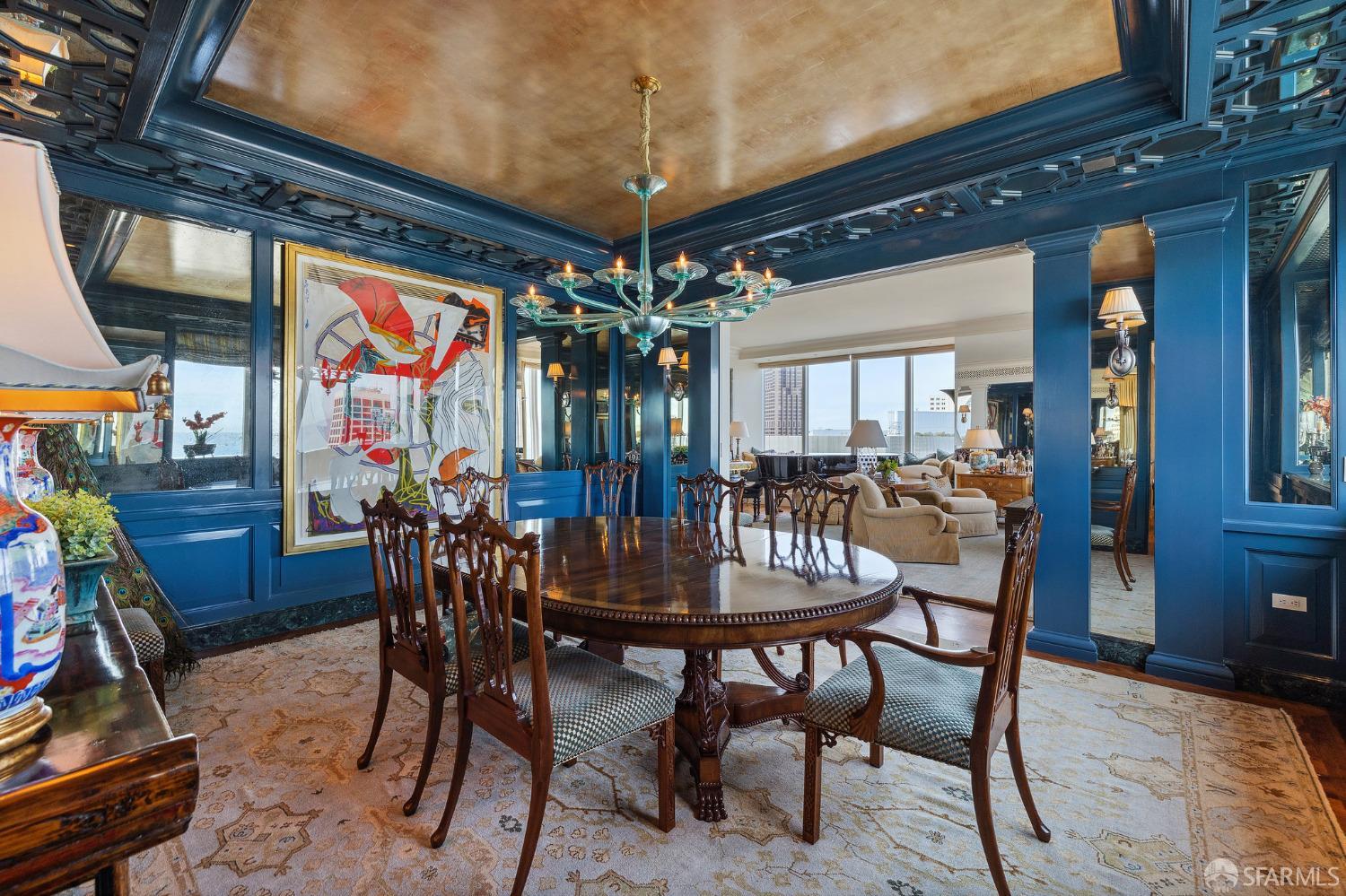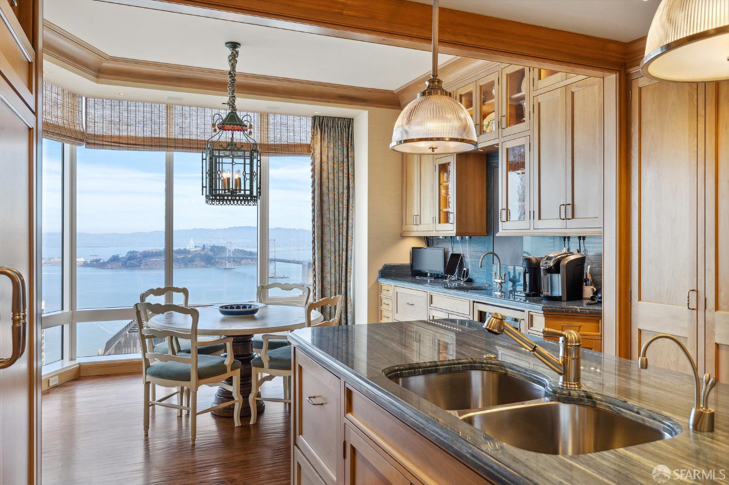 Glamorous high floor Grand Residence on coveted northeast corner, largest floor plan except penthouse. Enjoy stunning, sweeping City, Bridge and Bay views! Down to the studs 2 year renovation by globally renowned team of designers, architects, contractors. Hand laid floors, top-grade mill work, custom wall treatment, artful stonework. Two bedroom suites + rich walnut paneled library. Spacious foyer and living room with surround windows, elegant formal dining room enjoys exciting Bay Bridge lights close-up. Elegant primary bedroom suite with 2nd bath, steam shower, double walk-in closets. Guest bedroom suite with full bath. Spacious eat-in gourmet kitchen with bay and bridge views. Bejeweled powder room, large laundry room. Custom integrated, app-controlled A/V, motorized shades, lighting & HVAC. New acoustic insulation throughout. Updated systems. 2-car dedicated garage parking- self park OR valet. Reserved wine locker & extra storage. Separate Grand Residences lobby. Unmatched services with luxury amenities: club lounges, private dining room, screening room, concierge, catering kitchen, saline swimming pool, fitness center, children’s center, pilates, massage & yoga studios, outdoor patios. 24-7-365 attended lobby + security. Luxe living at its best, ideal and convenient location near the waterfront Embarcadero.