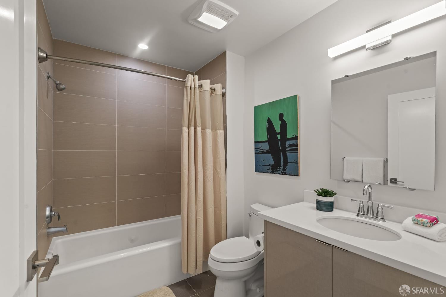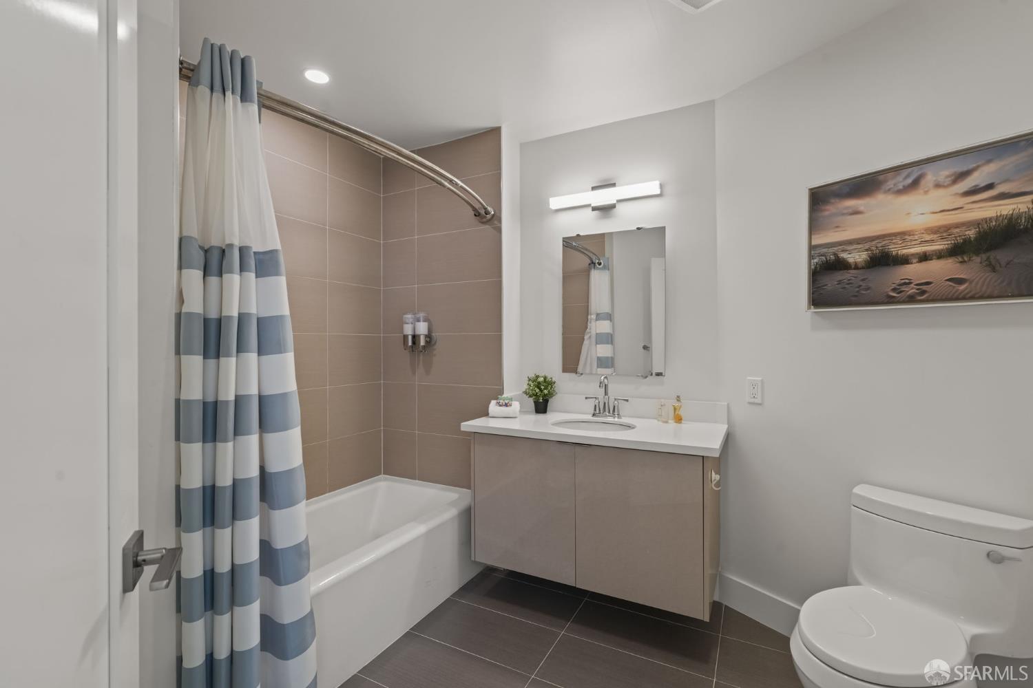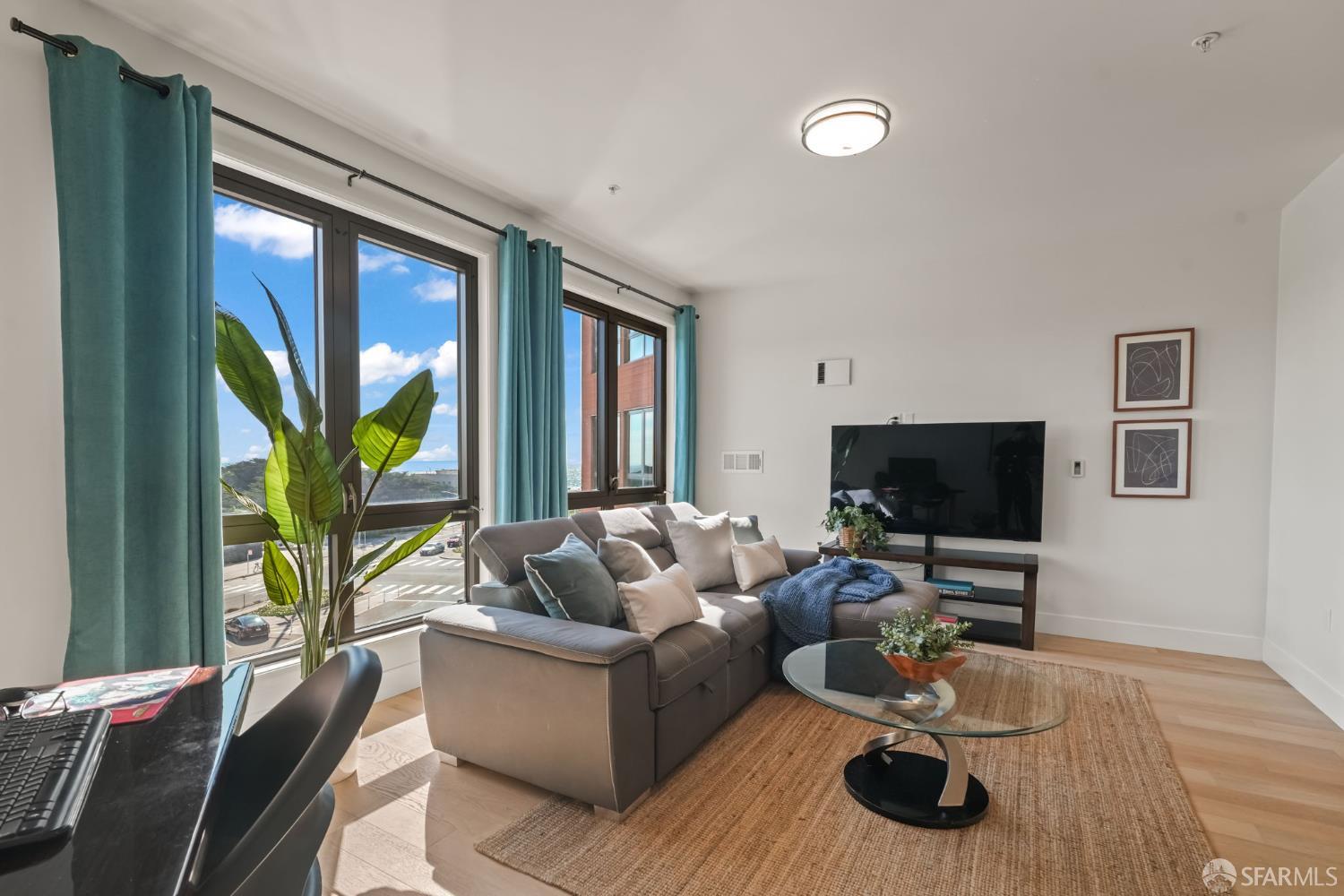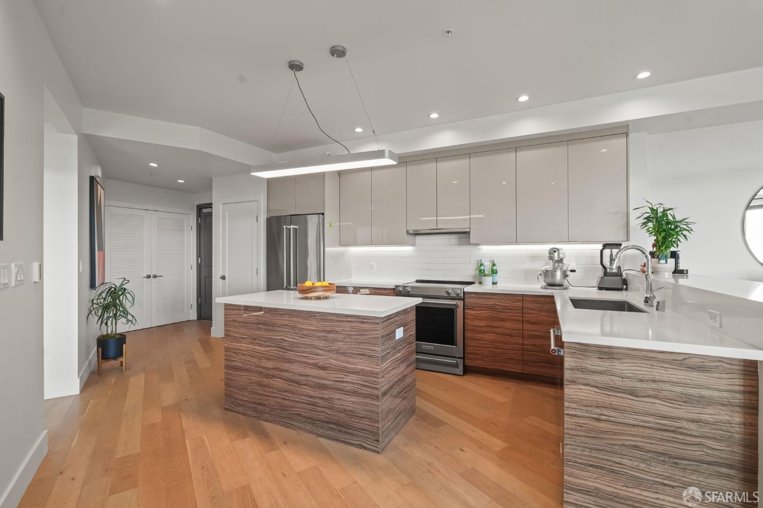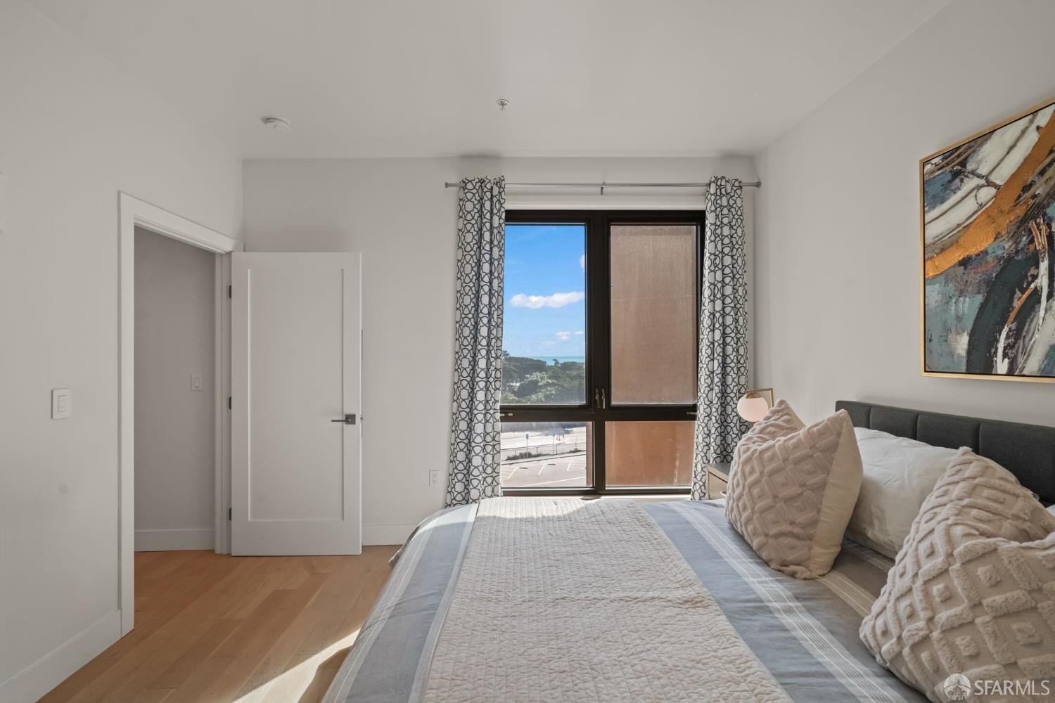Perched on the fourth floor of a contemporary mixed-use building in San Francisco’s sought-after Parkside District, this stunning condominium delivers the ultimate beachside lifestyle without compromise. With over 1,100 square feet of thoughtfully designed living space, two bedrooms, and two bathrooms, this residence offers an effortless blend of elegance, comfort, and unmatched natural beauty. From the moment you wake, the Pacific Ocean becomes your backdrop. Expansive windows flood the open-concept living and kitchen area with natural light, framing mesmerizing, uninterrupted ocean views that shift with every hour from the soft glow of morning surf to the vivid brilliance of golden sunsets. The chef’s kitchen is as beautiful as it is functional, featuring elegant cabinetry, pristine quartzite countertops, and Bertazzoni stainless steel appliances. Entertain friends in the spacious living area or gather in the residents’ clubhouse for a weekend get-together with a view. The primary suite is a true sanctuary, offering sweeping ocean vistas, generous space, and an abundance of natural light, while its thoughtful separation from the second bedroom ensures privacy and tranquility for all. One parking space is available in the building’s garage. This is more than a home it’s a front-row seat to one of the city’s most breathtaking coastlines. Don’t miss your opportunity to own this piece of San Francisco paradise.