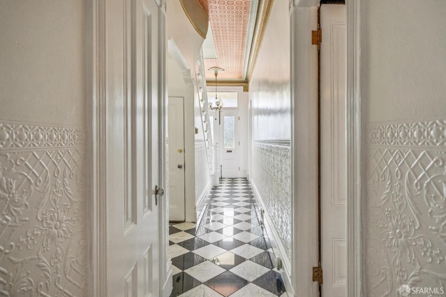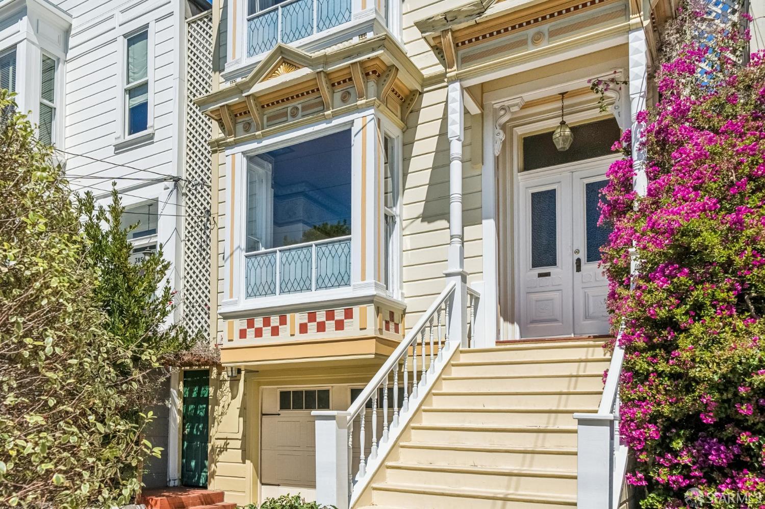 Located on a tree-lined, level block in the heart of Noe Valley, this south-facing 1885 Victorian stands proudly, ready for its next chapter. Rich period details remain beautifully intact, and the generous floor plan offers exceptional potential for those seeking classic San Francisco charm, scale, and an unbeatable location. The main level welcomes you with a charming checkerboard entry, leading into a spacious formal living room and an impressive parlor beyond. A formal dining room flows seamlessly into the massive eat-in kitchen, where direct access to a deck and garden creates easy indoor-outdoor living. A full bath and powder room complete this level. Upstairs, three bedrooms and one and a half baths provide comfortable living, with the front-facing rooms enjoying expansive outlooks. A large attic, accessed via ladder, offers excellent storage and intriguing potential. On the ground level, behind the one-car garage, a one-bedroom bonus suite with wet bar and full bath provides flexible space for guests, work, or extended living. A substantial storage room adds further utility. Offering over 2,700 square feet in a sunny, welcoming setting, this is a rare opportunity to restore and reimagine a timeless Noe Valley home.