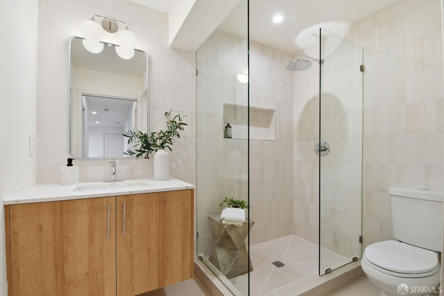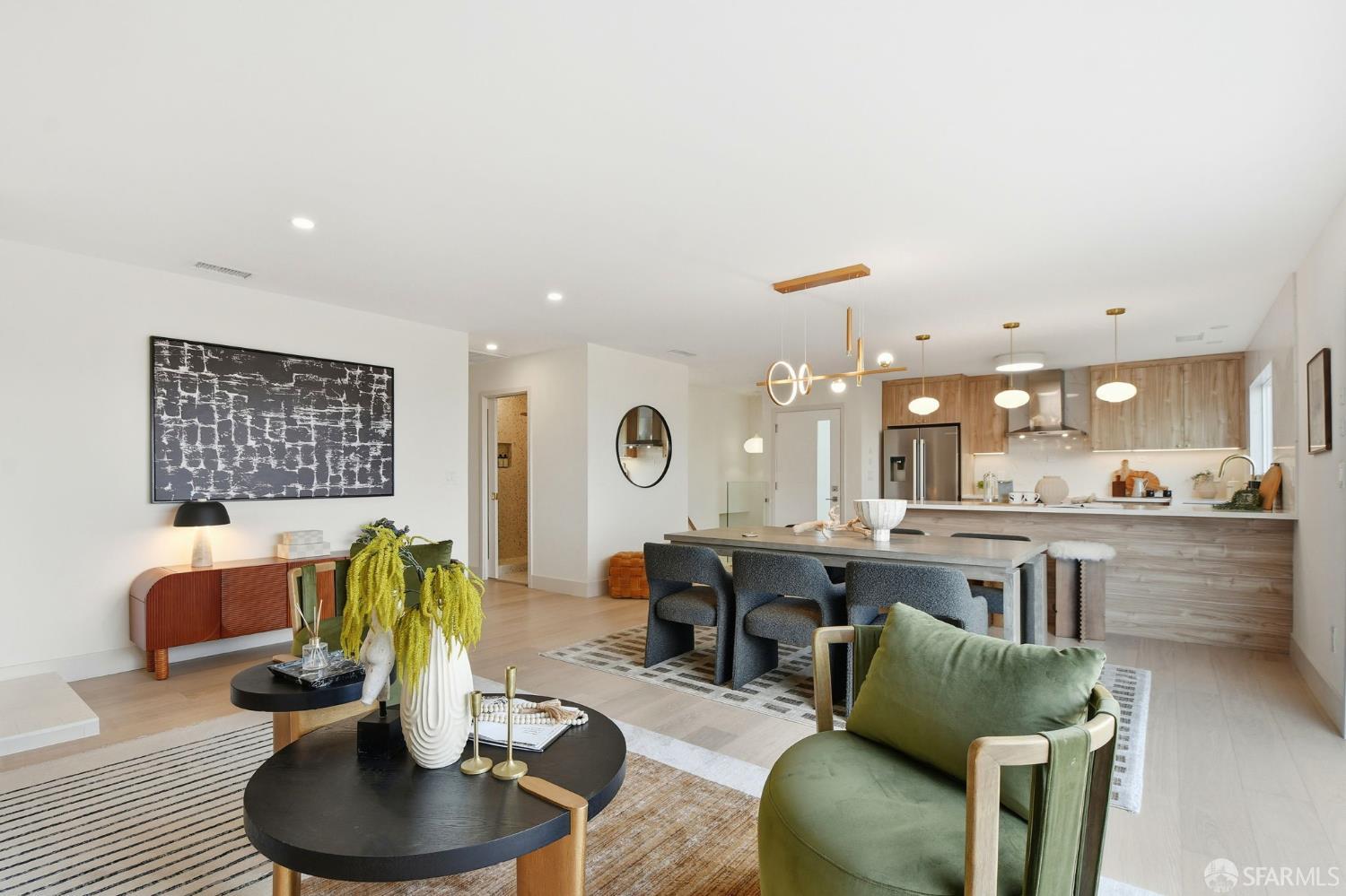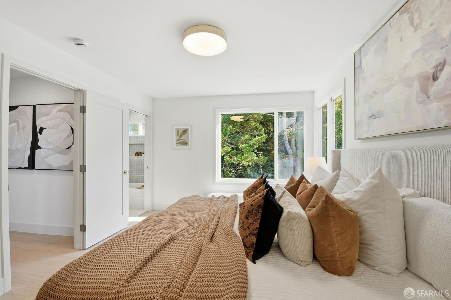 Fresh off a fully permitted, top-of-the-line renovation this fantastic, fully detached home has been brilliantly renovated to align with market demands. A great deal of craft went into designing the home’s structural plan to achieve a phenomenal open floor plan that creates an ideal communal space, anchored on one end by a cozy, tile-clad fireplace and framed by a dramatic 10-foot foldable glass wall that opens onto a walk-out deck with views of the Pacific Ocean. The stunning kitchen includes a beautiful stone waterfall island and full slab wall, custom cabinets with corner and waste bin drawers, designer lighting, and Bosch appliances. 3 full-sized bedrooms, including a large ensuite primary complement the main level of the home while downstairs hosts 2 additional bedrooms and a luxuriously-sized full bathroom. Wide plank white oak flooring runs throughout the home which has been completely rewired, and features a brand-new furnace and laundry area. Every detail has been carefully considered, from the designer tiles to the curated lighting. Set on one of the nicest blocks in Midtown Terrace this home has five bedrooms and two versatile flex rooms – perfect for in-laws, au pairs, an office, gym, hobby space, or playroom.