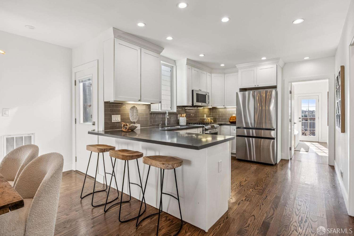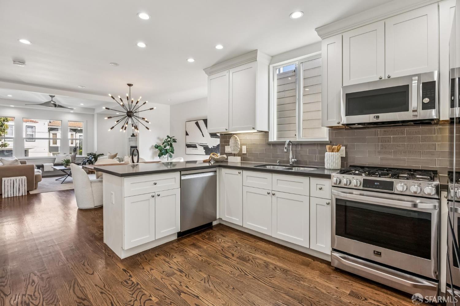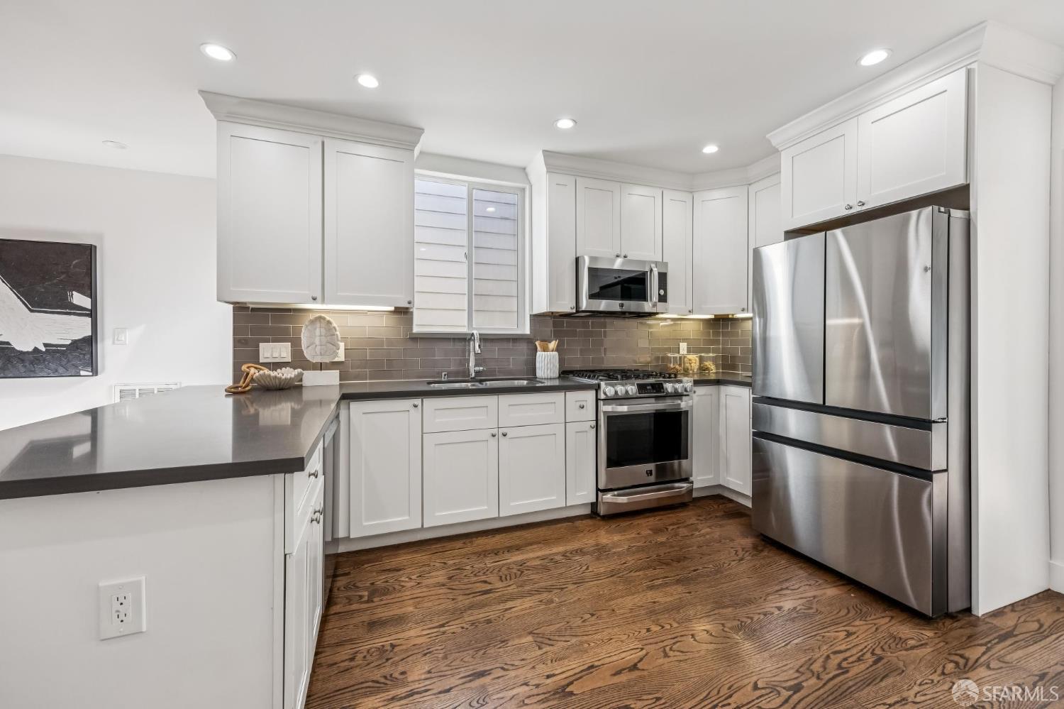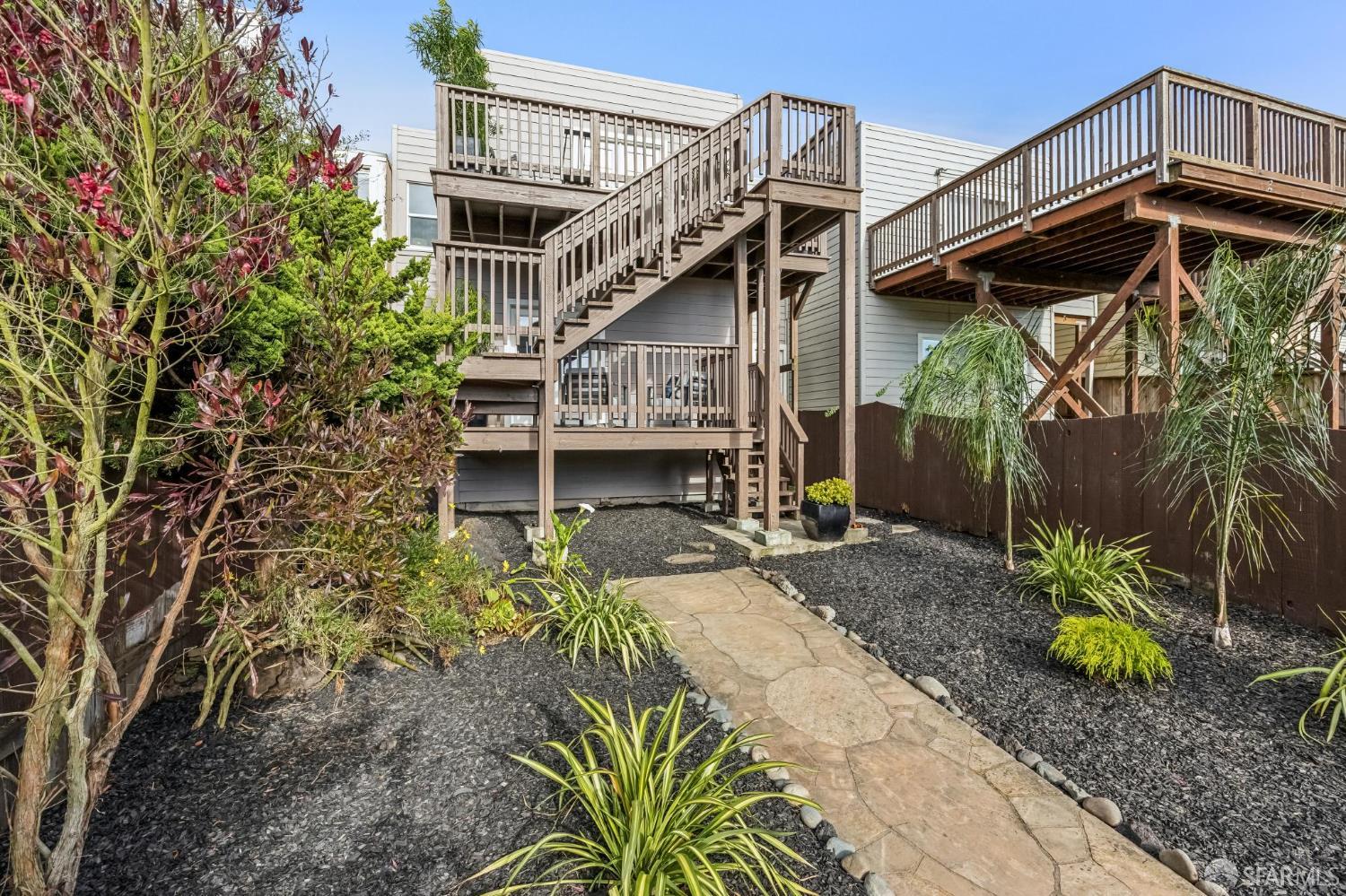 Modern 4BD/4BA home in the heart of San Francisco’s prized Outer Richmond where coastal calm meets city convenience. Dreamy location less than 1 block from Golden Gate Park and just 4 blocks from Ocean Beach. Live the ultimate California lifestyle of morning surf, sunset strolls, and miles of trails at your doorstep. The main level is designed for entertaining with an open flowing layout that basks in natural light and connects seamlessly to a wraparound deck. The kitchen features a gas range, quartz counters, breakfast bar, and plenty of prep space for home cooked meals. The primary suite sits quietly at the back of the home with direct deck access to soak in jaw dropping sunsets over the Pacific Ocean. A 2nd bedroom and full bath complete this level. Downstairs, a second family room anchors 2 ensuite bedrooms ideal for guests, in-laws, or flexible work-from-home setups. The two-story deck connects both levels to the backyard creating effortless indoor-outdoor living. The lower level also offers an optional separate entrance perfect for extended stays. California Closet systems & Grohe fixtures provide contemporary convenience throughout. 1 car garage with interior access includes Tesla EV charger, custom cabinetry, side-by-side laundry, and a myQ smart garage opener for convenience. Prime location just steps from public transit to Financial District, 2 blocks from grocery stores and Balboa Street’s restaurant row, and moments from Clement Street dining & shopping corridor, Golden Gate Park Golf Course, and so much more. The newly opened Sunset Dunes park provides a 2 mile stretch of car-free oceanfront the perfect place to walk, bike and connect along the Pacific coast like never before. Easy access to both the South and North Bay makes this home an exceptional blend of modern comfort and timeless San Francisco lifestyle.