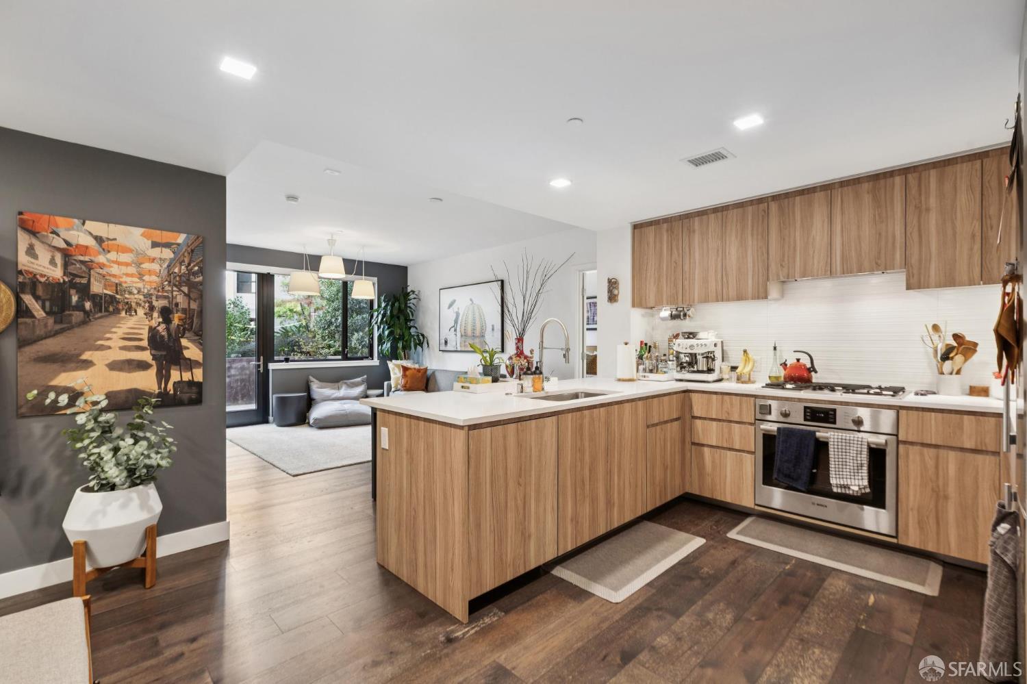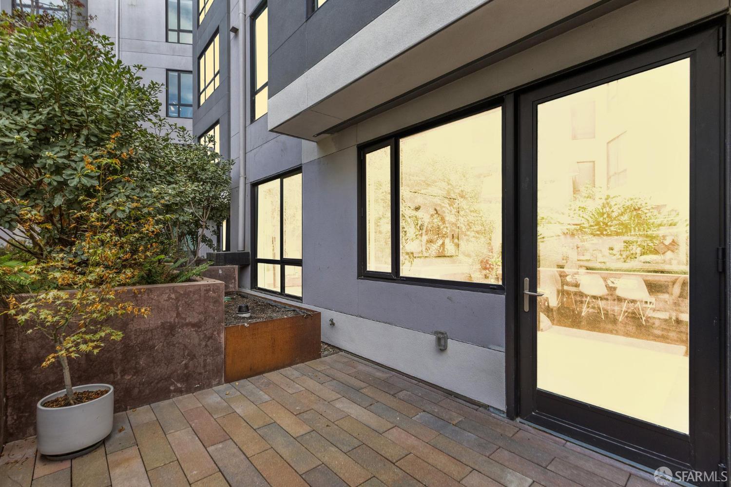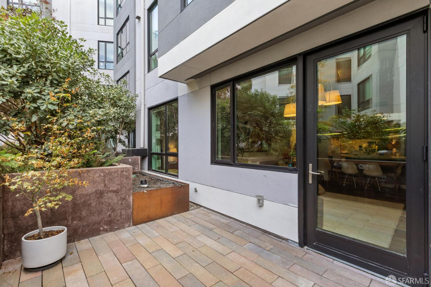 Discover the allure of Knox, and explore this first floor luxurious 2-bedroom 2-bath patio home. The community presents an organic-modern aesthetic, blending rustic charm with refined elegance, creating an inviting and comfortable living space. Inside, you’ll find beautiful wooden floors, upgraded carpet in the bedrooms, a spacious walk-in closet, white quartz countertops, and premium Domus & Domus cabinetry. The kitchen is equipped with state-of-the-art Bosch appliances and recessed lighting throughout.This unit also boasts a private patio with views of a sprawling 3,000 sq. ft. enclosed courtyard. Here you’ll enjoy an array of amenities, including a fitness center, an indoor media room, and a residents’ lounge featuring cozy fire pits and shared barbecue areas. On site parking and additional storage come with the unit as well as a charging port at the parking spot for convenience. Enjoy easy access to the vibrant shopping and dining scenes along the 22nd Street and 3rd Street corridors as well as the ever growing pier 70 redevelopment, putting a diverse array of options right outside your door. Ideally situated, Knox is just two blocks from the CalTrain Station and a short distance to Muni, offering unparalleled convenience for commuters.