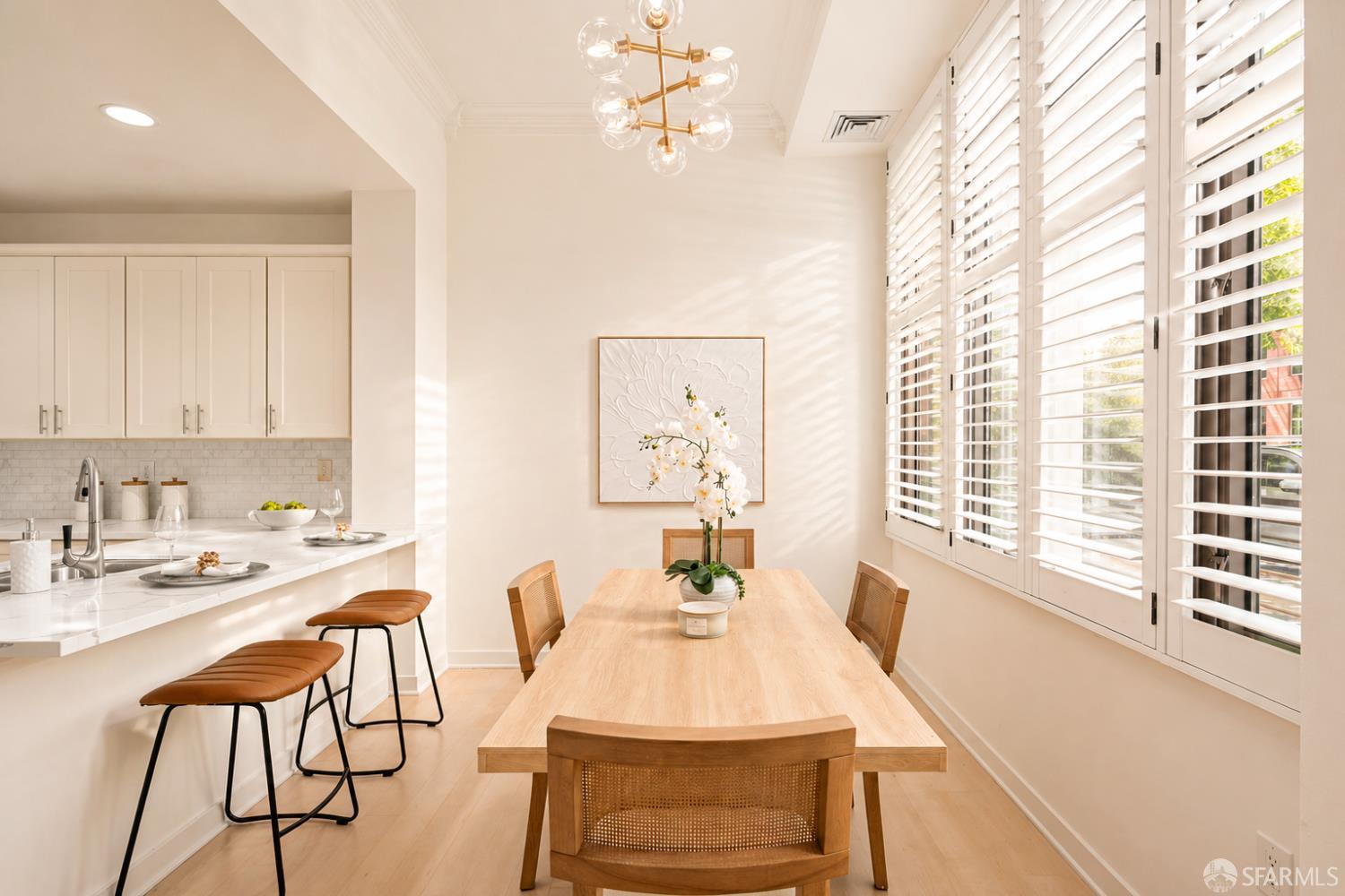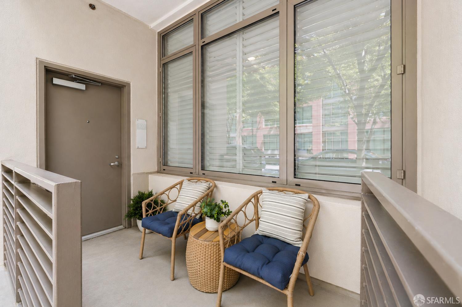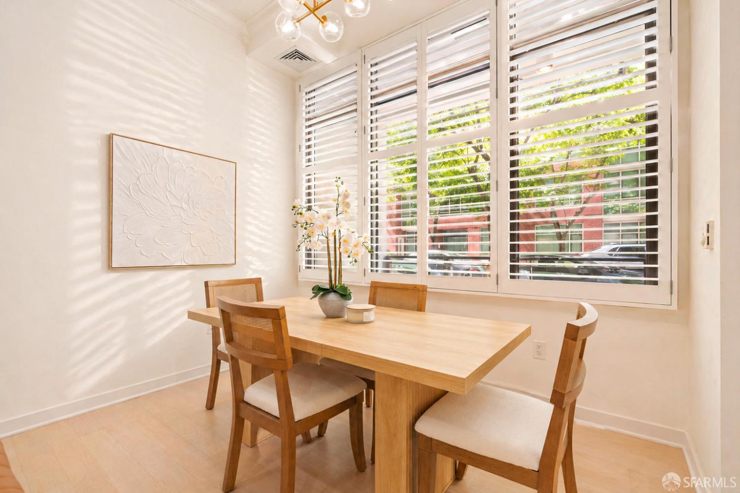 Rarely available, this sophisticated two story townhouse residence at 255 Berry Street offers the privacy and comfort of a single family home with the ease of full service city living, ideally set along the peaceful Mission Creek. Featuring its own gated street level entrance, the home delivers effortless daily living with a true sense of privacy and independence. Inside, soaring ceilings create a dramatic sense of volume and natural light, elevating the open living and dining spaces designed for both relaxed living and refined entertaining. The beautifully renovated kitchen showcases sleek quartz countertops, premium Thermador appliances, and modern cabinetry, reflecting approximately $70K in thoughtfully executed upgrades, including a comprehensive remodel completed in 2020. Upstairs, two spacious ensuite bedrooms are thoughtfully arranged for privacy, each offering tranquil, tree lined outlooks that create a calm retreat from the city. Refined details such as plantation shutters and custom finishes add warmth and sophistication throughout, while in unit Bosch laundry and additional storage enhance everyday comfort. A secure, private garage vestibule leads directly to your dedicated EV parking space, just steps from the home for added convenience. Residents enjoy the benefits of a secure, concierge building just moments from Mission Creek, Oracle Park, Chase Center, and neighborhood favorites including Philz Coffee. With easy access to Caltrain, Muni, and I 280, this residence offers a rare blend of privacy, design, and connectivity in one of San Francisco’s most dynamic waterfront neighborhoods