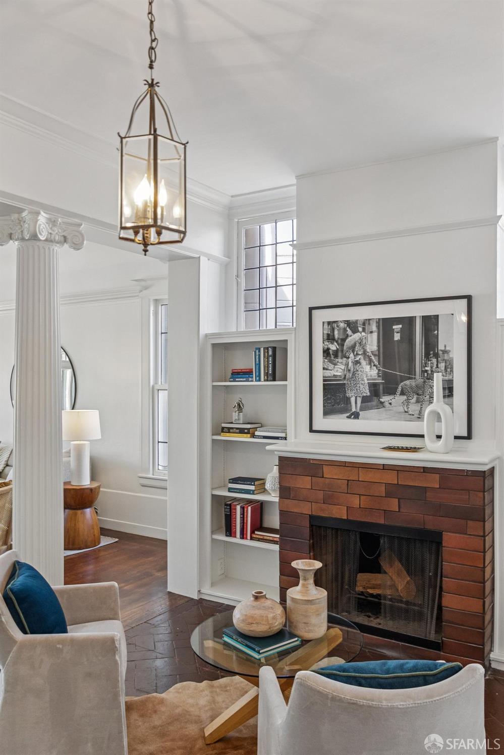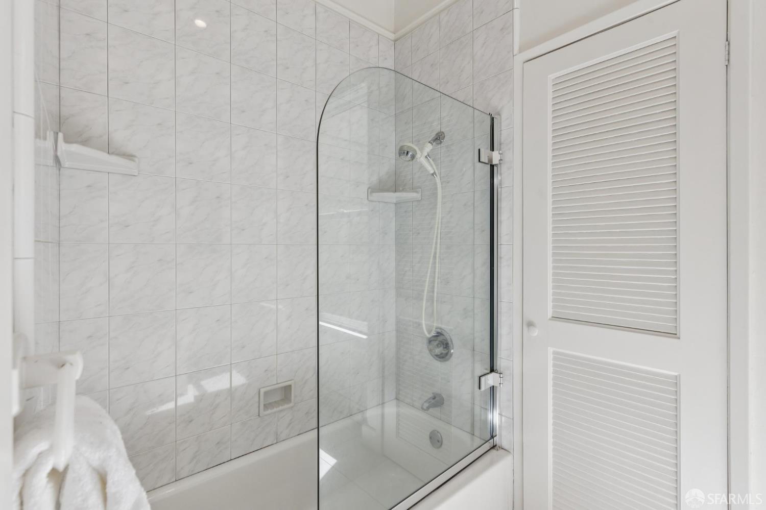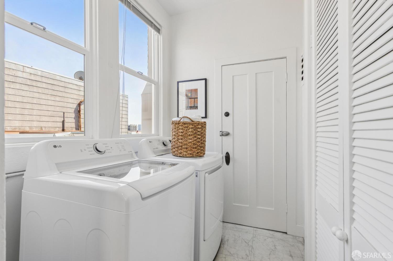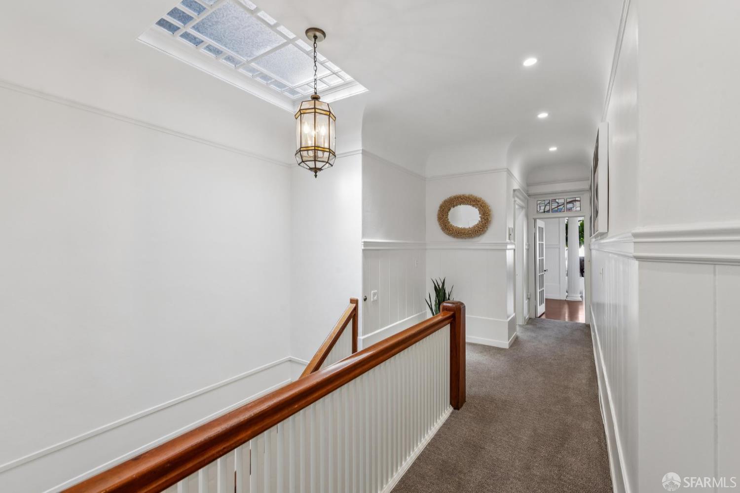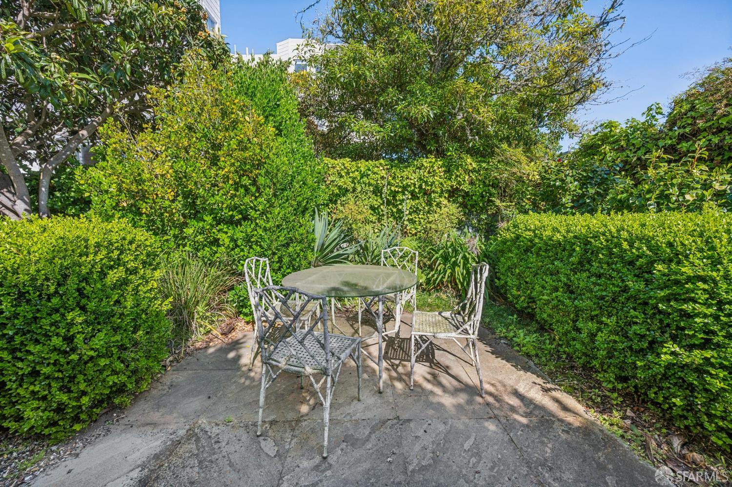 First time on the market since 1982! Unique opportunity to put your own stamp on this classic San Francisco home. Experience the quintessential San Francisco lifestyle in this grand top-floor residence situated in an elegant three-unit Edwardian building. Built in 1900, this full-floor condominium preserves the sophisticated scale and architectural integrity of the era while offering the expansive proportions of a modern home, accented by custom stained glass windows paying homage to the modern era of technology. Spanning 2,210 square feet, per tax records, the interior is defined by soaring ceilings and a versatile layout that includes three spacious Bedrooms, an Office with elegant skylight and closet, two Bathrooms (one split bath), Living Room with Bay window and built-in seating, formal Dining Room with period fireplace, wainscoting and built-ins, and Parlor perfect for gathering. Bathed in natural light, with hardwood flooring and beautiful period detail, the expansive formal living spaces are anchored by a classic fireplace in the parlor and framed by the beautiful craftsmanship expected of a turn-of-the-20th-century gem. A well-appointed Kitchen with eat-in area features a gas range, double oven, and dishwasher, all seamlessly blending period charm with functionality. Side-by-side washer and dryer are located in a generous laundry area that includes a pantry with additional in-unit storage. Two of the bedrooms feature gorgeous natural light and south-facing expansive City views that include Sutro Tower. This premier residence includes the convenience of a garage with two dedicated parking spots, additional large storage area, and a lovely shared garden, all accessible from the home through an interior back staircase. With a near-perfect Walk Score of 99/100, the property is conveniently positioned just steps from Alta Plaza Park and the world-class dining and boutiques of the Fillmore and Divisadero corridors, for the full Pacific Heights neighborhood experience.