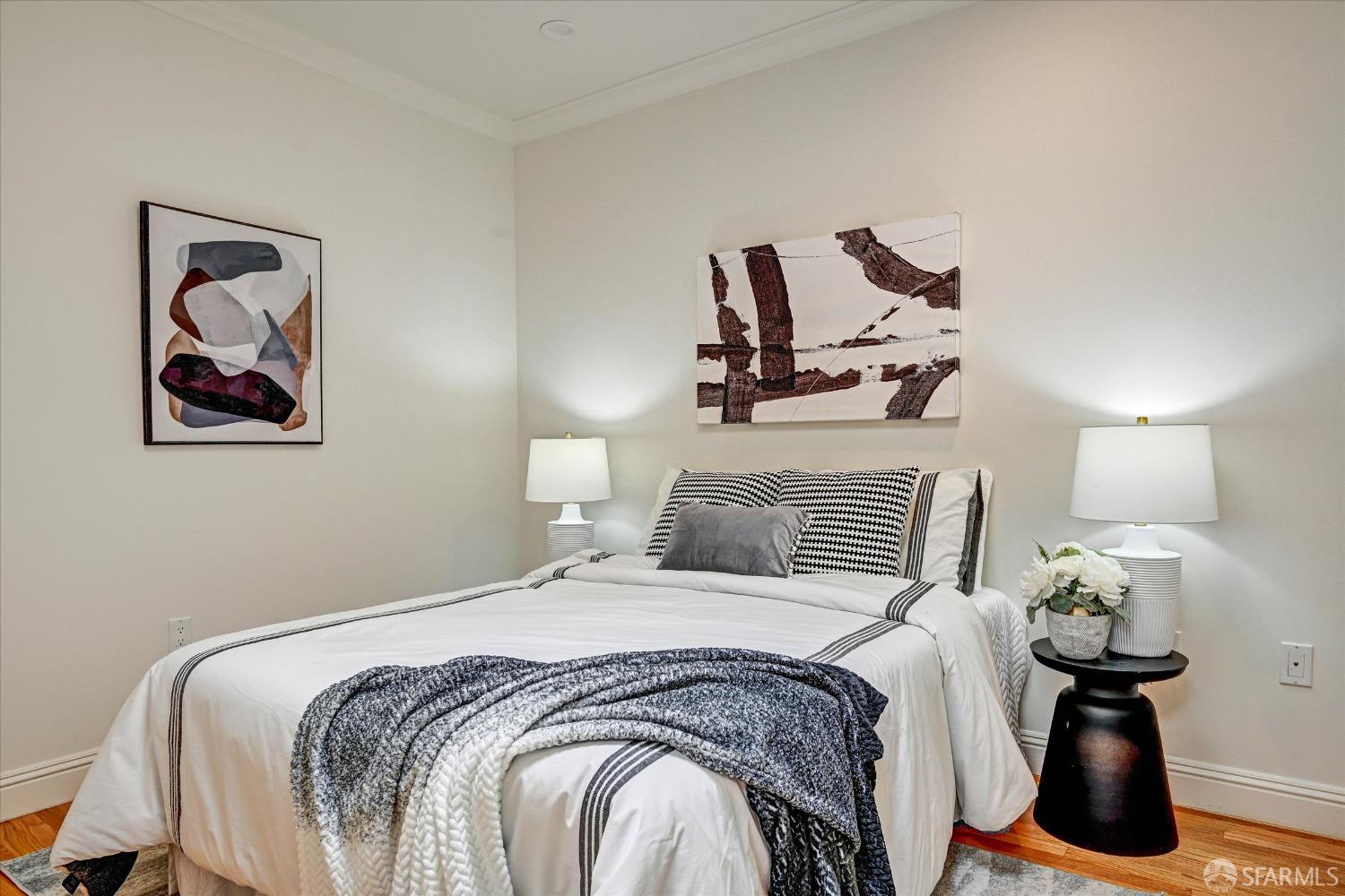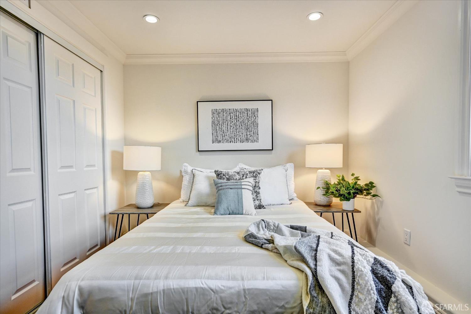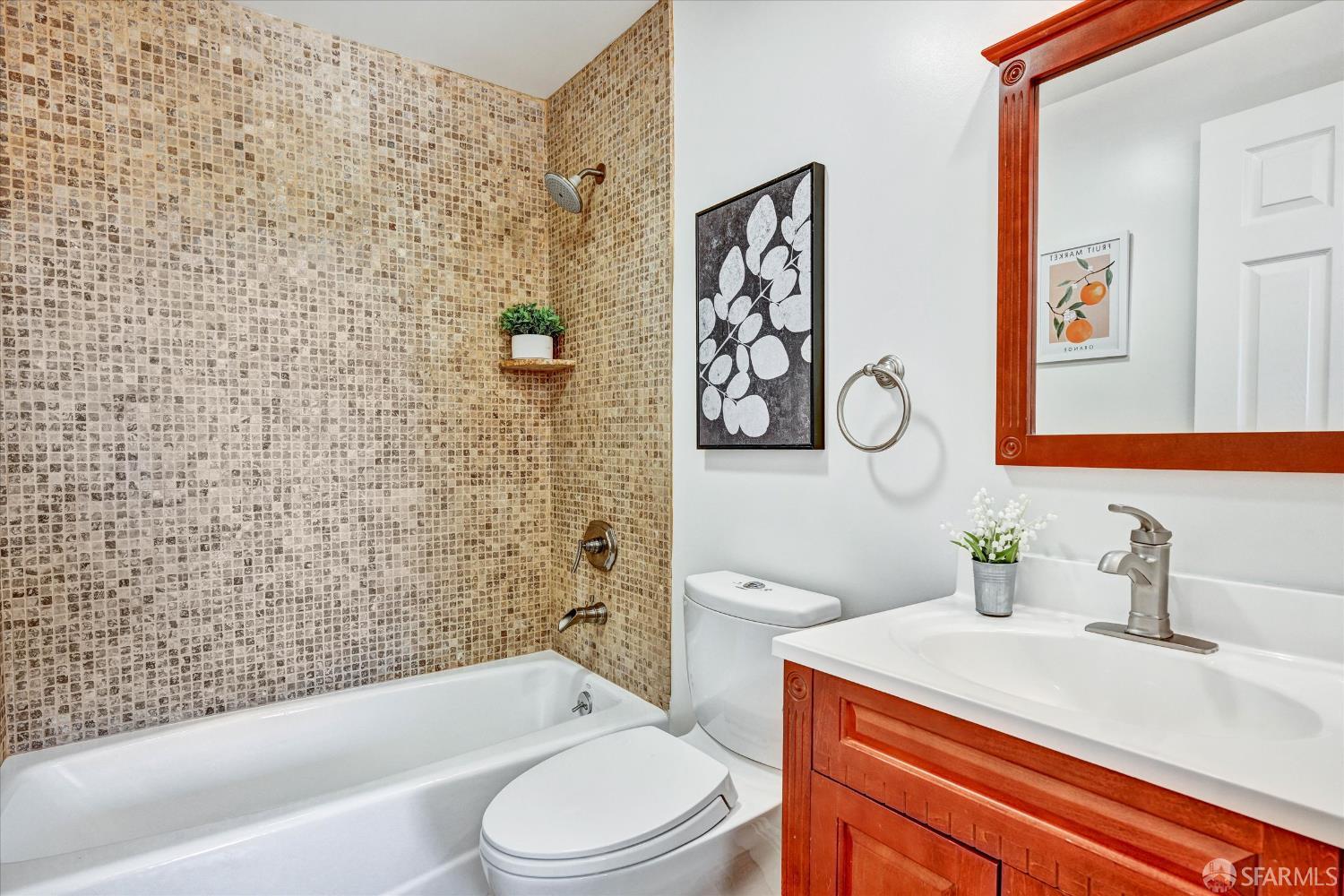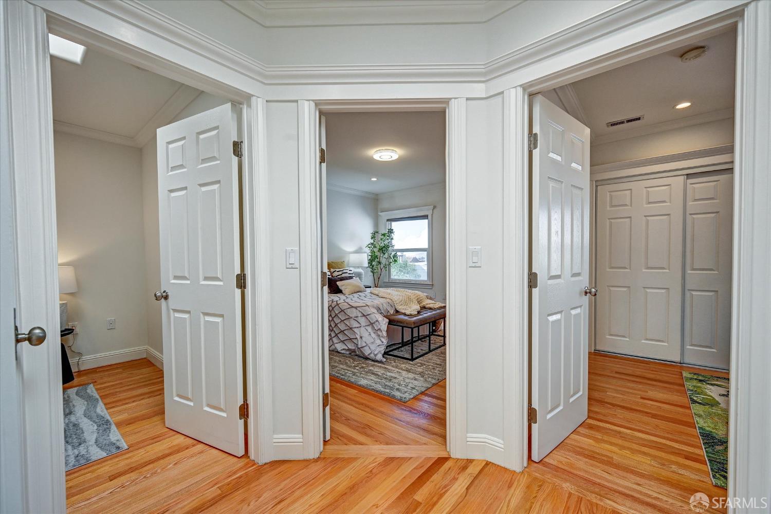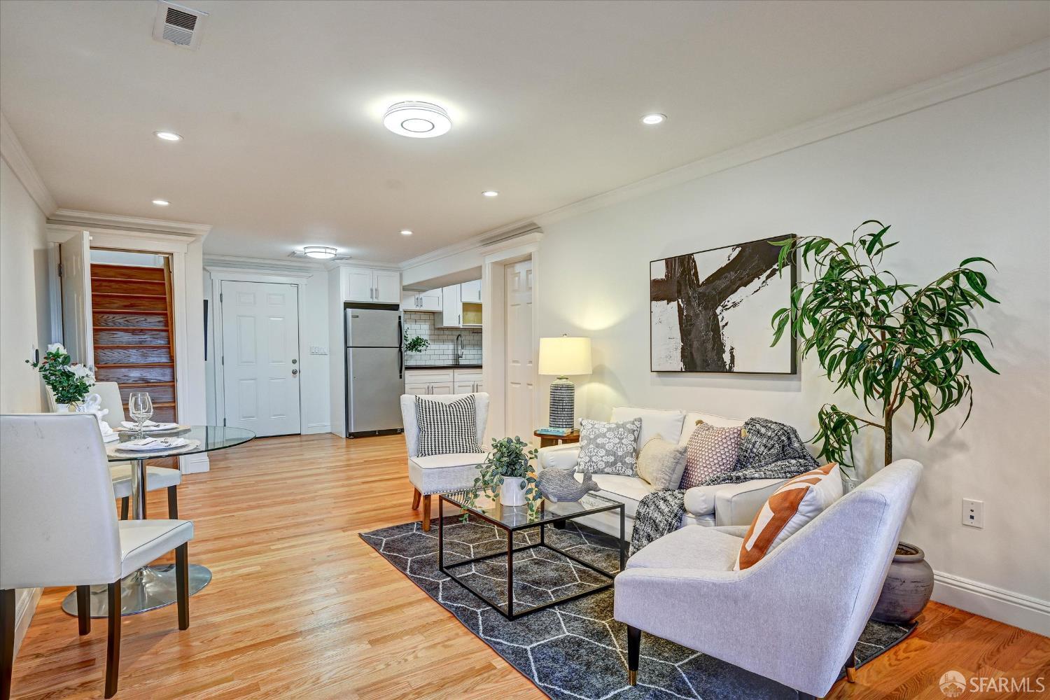 Beautifully updated Central Sunset Marina-style home showcasing partial ocean and Golden Gate Bridge views. Fully gutted and rebuilt in 2007, the residence features refined finishes and a thoughtfully designed layout that blends classic charm with modern comfort. The main level offers an open-concept floor plan with a spacious, south-facing barrel-front living room filled with natural light, seamlessly flowing into the dining area and contemporary kitchen – perfect for everyday living and entertaining. Beyond the main living space are two well-appointed bedrooms, including a comfortable primary suite, along with a dedicated office (staged as a third bedroom), a total of 2.5 baths, and laundry closet. An interior staircase leads to the lower level, which expands the living space with a legal family room, two additional bedrooms, and two full baths, including a second primary suite. This level also features a convenient wet bar, a second laundry closet, and interior access to a generous one-car garage with ample storage. A separate side entrance from the street provides flexibility for guest accommodations, extended family living, or potential Airbnb use. Completing the home is a flat, landscaped backyard ideal for outdoor enjoyment, making this property a rare and versatile find in a prime Sunset location.