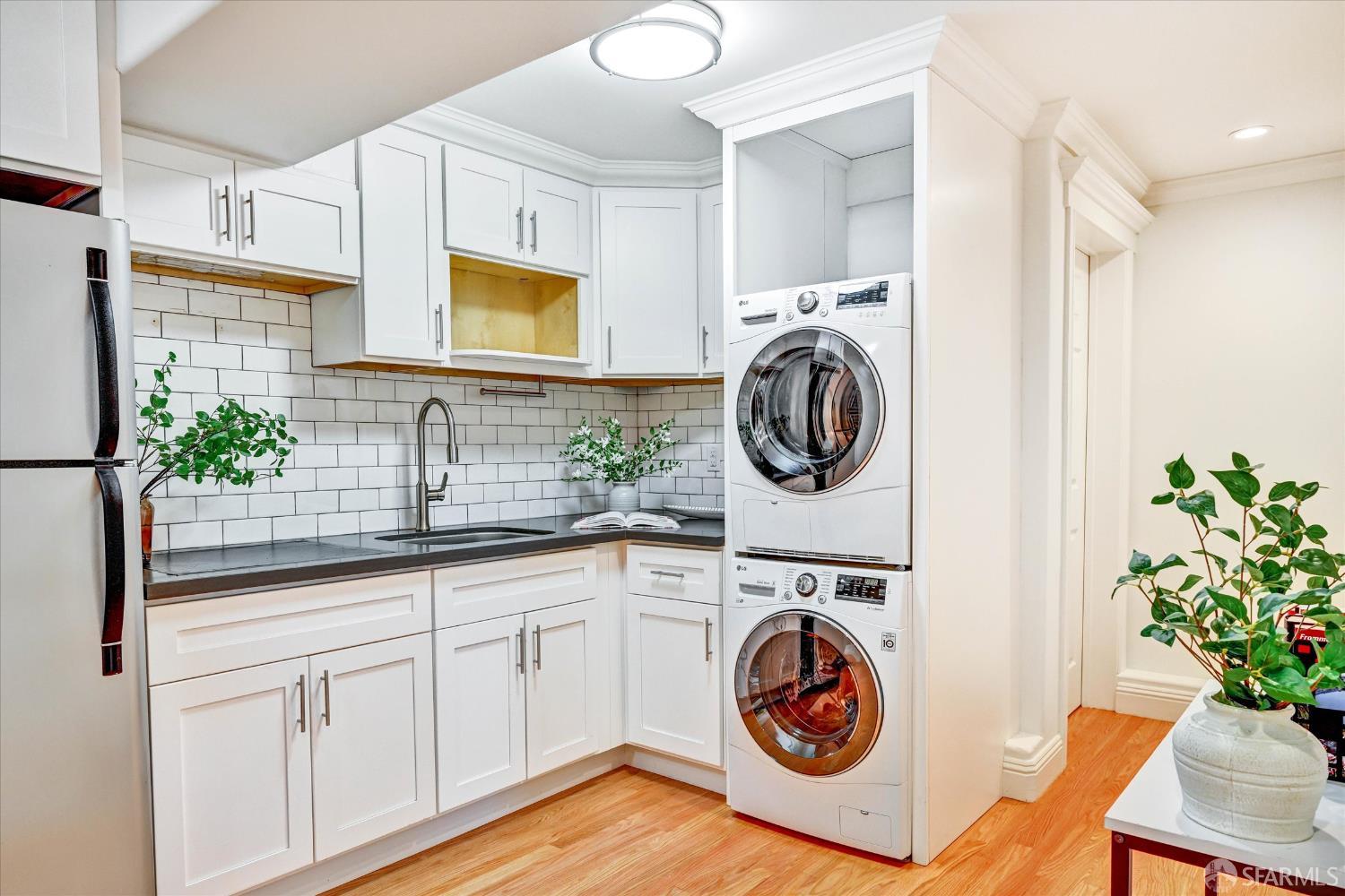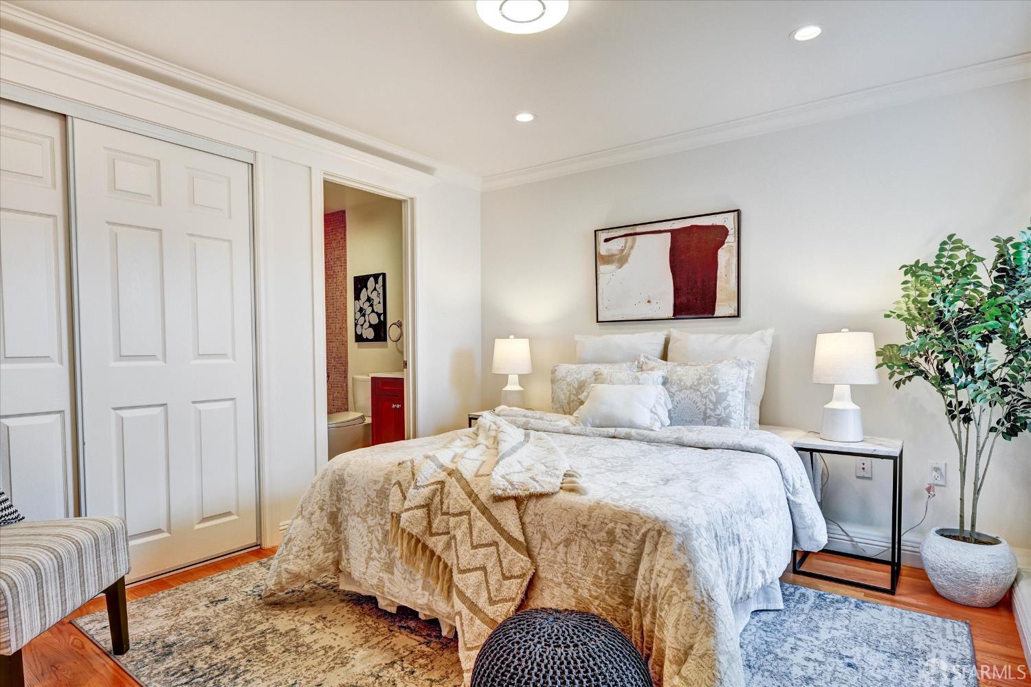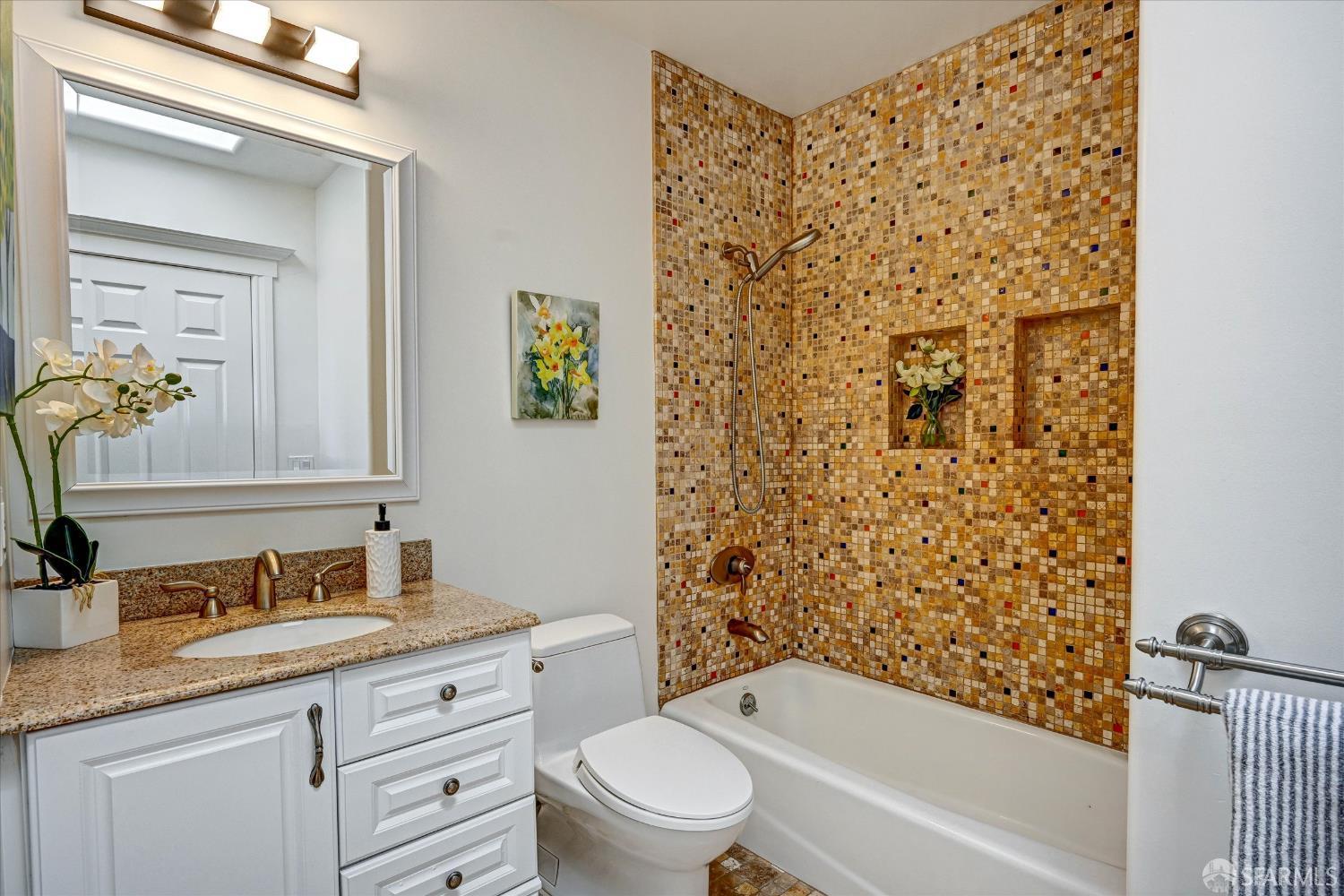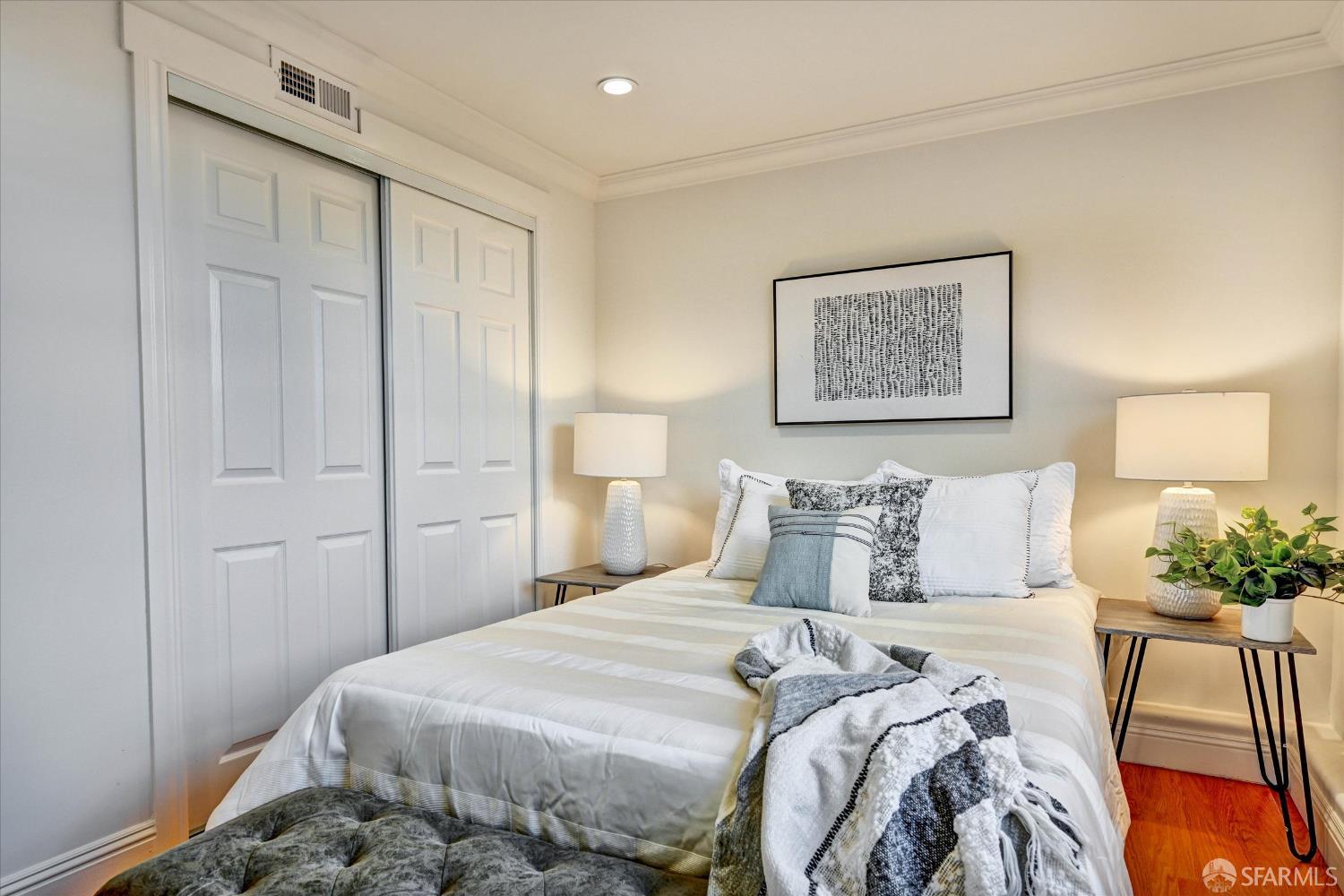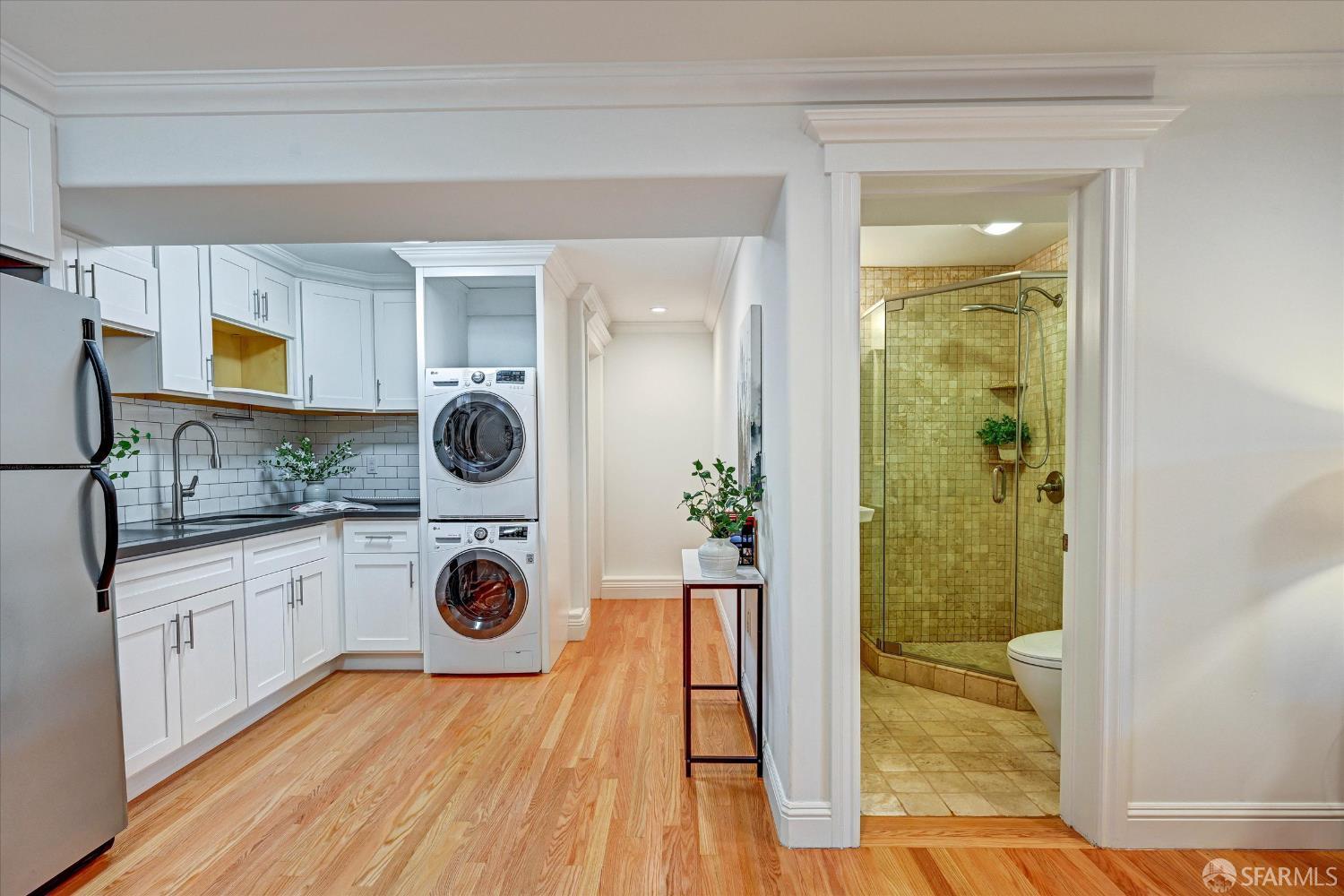 Beautifully updated Central Sunset Marina-style home showcasing partial ocean and Golden Gate Bridge views. Fully gutted and rebuilt in 2007, the residence features refined finishes and a thoughtfully designed layout that blends classic charm with modern comfort. The main level offers an open-concept floor plan with a spacious, south-facing barrel-front living room filled with natural light, seamlessly flowing into the dining area and contemporary kitchen – perfect for everyday living and entertaining. Beyond the main living space are two well-appointed bedrooms, including a comfortable primary suite, along with a dedicated office (staged as a third bedroom), a total of 2.5 baths, and laundry closet. An interior staircase leads to the lower level, which expands the living space with a legal family room, two additional bedrooms, and two full baths, including a second primary suite. This level also features a convenient wet bar, a second laundry closet, and interior access to a generous one-car garage with ample storage. A separate side entrance from the street provides flexibility for guest accommodations, extended family living, or potential Airbnb use. Completing the home is a flat, landscaped backyard ideal for outdoor enjoyment, making this property a rare and versatile find in a prime Sunset location.