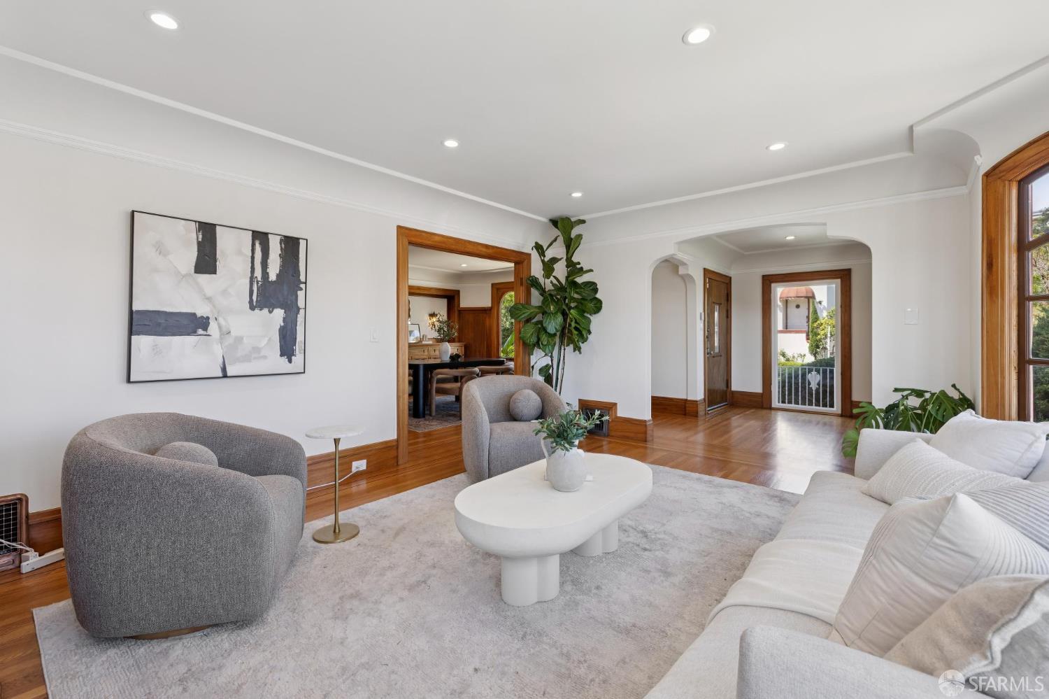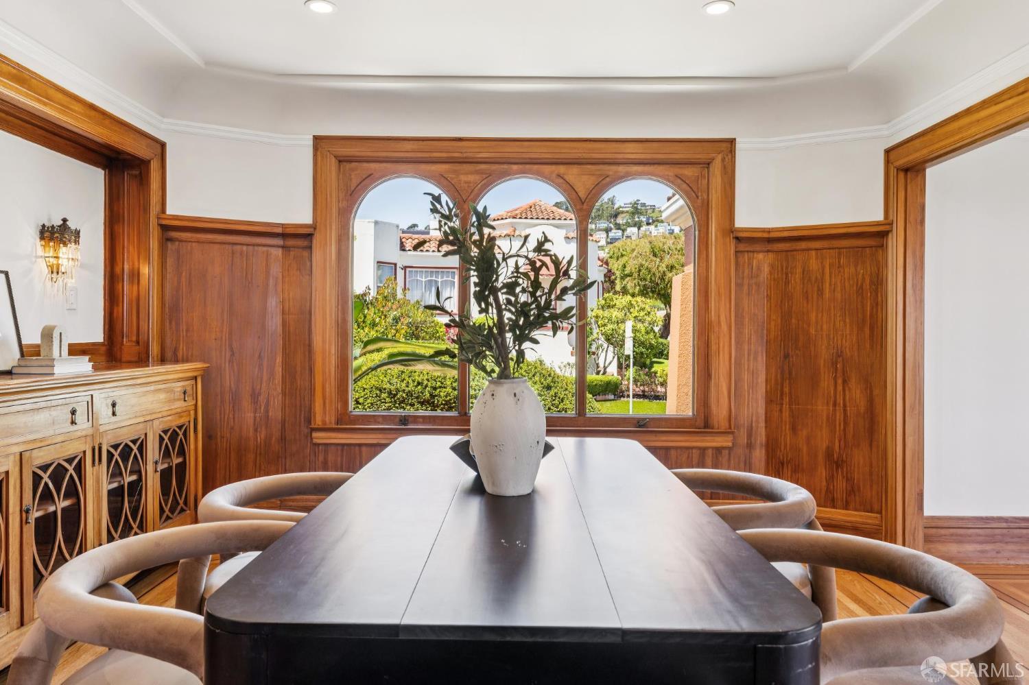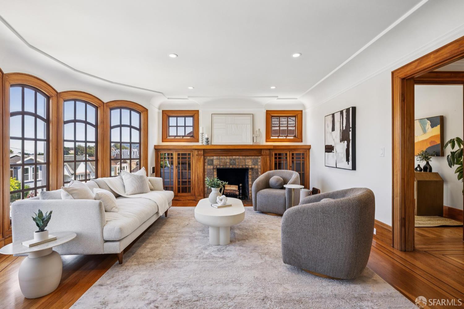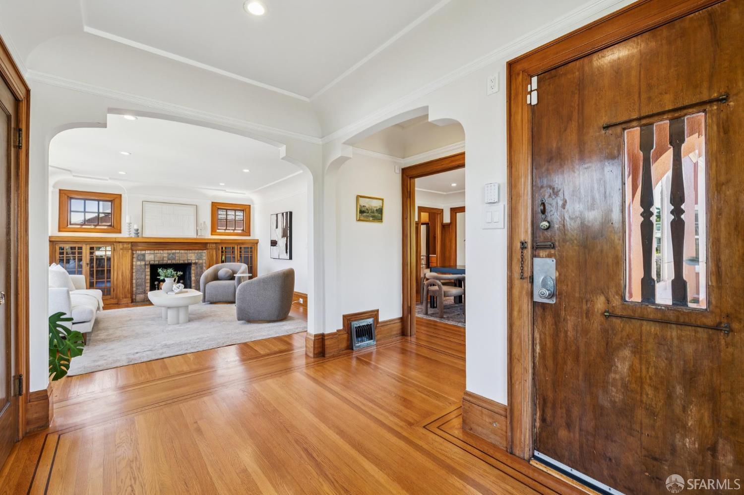 Located on a prominent corner lot in the heart of North side of Westwood Park, this beautifully preserved home blends timeless 1920s architecture with modern updates. From the moment you enter, you’re immediately greeted by the home’s warmth, natural light, and exceptional craftsmanship. The inviting living room, centered around a classic bay window and fireplace, flows seamlessly to the formal dining room, where rich gumwood wainscoting, a built-in buffet, crown moldings, and gleaming hardwood floors highlight the home’s original character. The dining room’s arched windows frame picturesque views that feel like a painting, adding to the home’s charm and sense of flow. The tastefully remodeled kitchen is both stylish and functional, featuring stainless steel appliances, including a high end six-burner Thermador range and dishwasher, along with ample cabinetry and workspace. Two sunlit, well-proportioned bedrooms and a full bath complete the main level, including a primary suite with its own en-suite half bath. Also a cozy office just off the kitchen provides an ideal space for work or study. The expansive lower level offers remarkable versatility, with two additional bedrooms overlooking the garden, a fully remodeled bathroom, a stylish full kitchen and a spacious family room – perfect for entertaining, guests, or extended living. An exercise/yoga room complete this level. Outside, landscaped front gardens and a sunny, spacious backyard create an inviting setting for outdoor dining, relaxing, and gatherings. The spacious garage offers an EV Charging Station as well as ample storage. A rare combination of charm, flow, and functionality in one of the city’s most beloved neighborhoods.