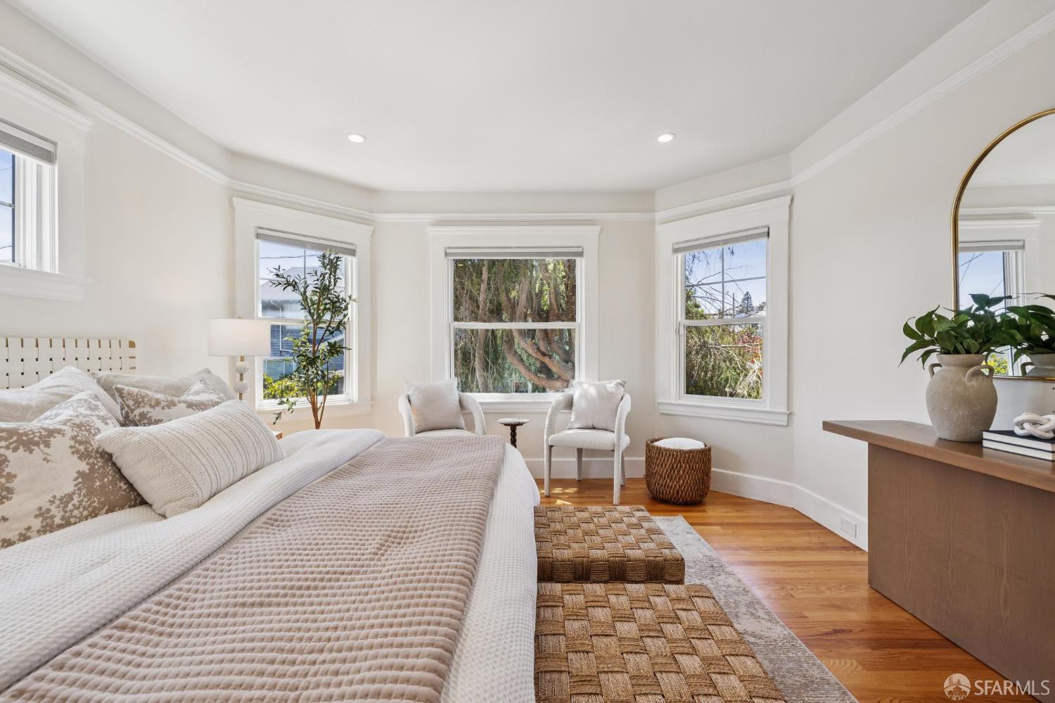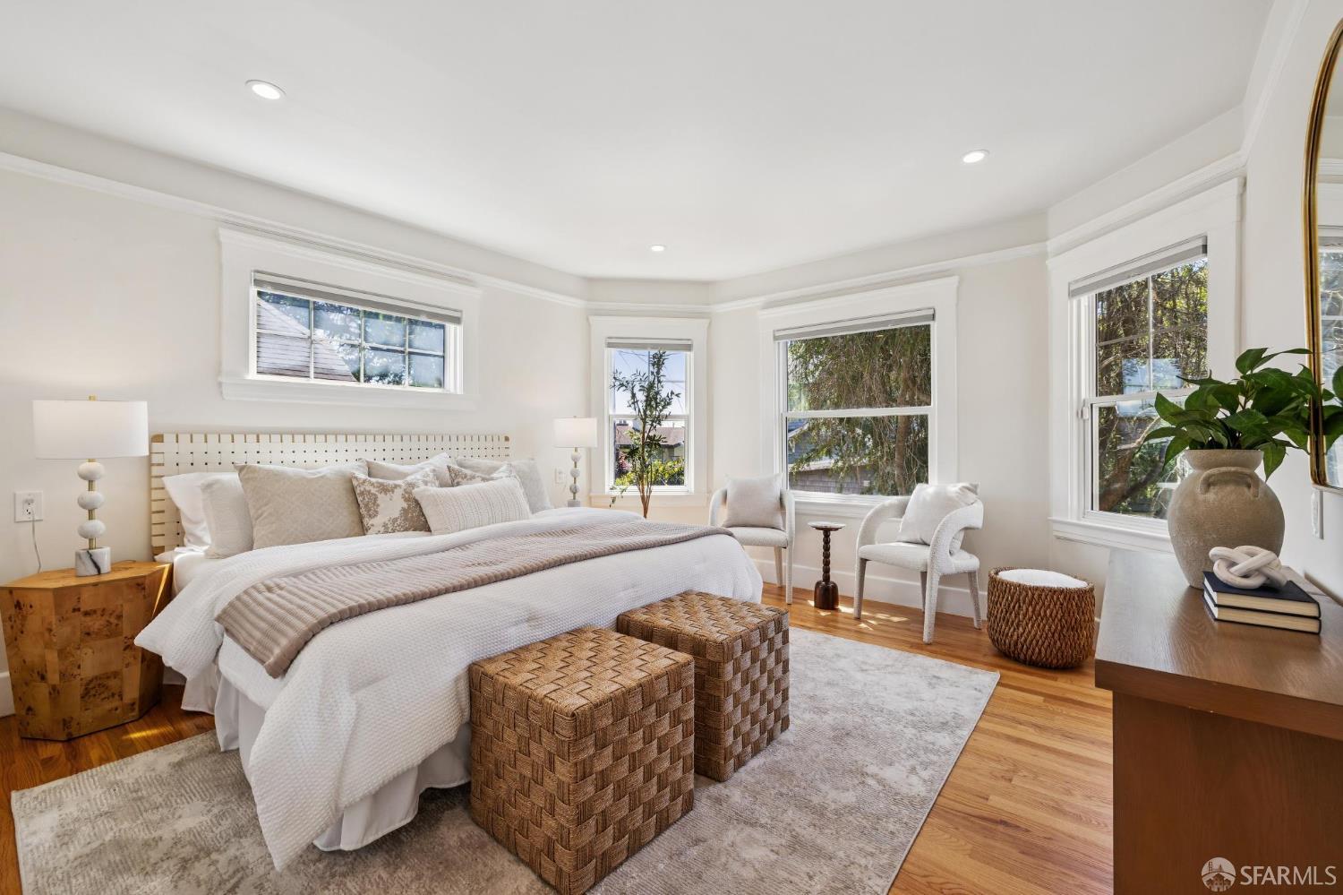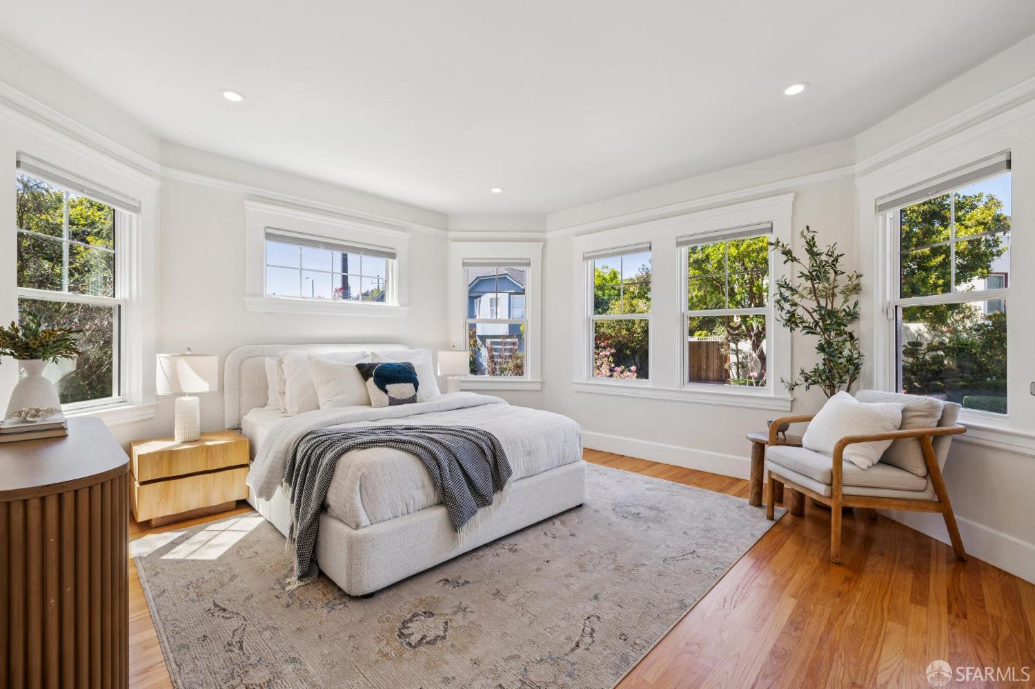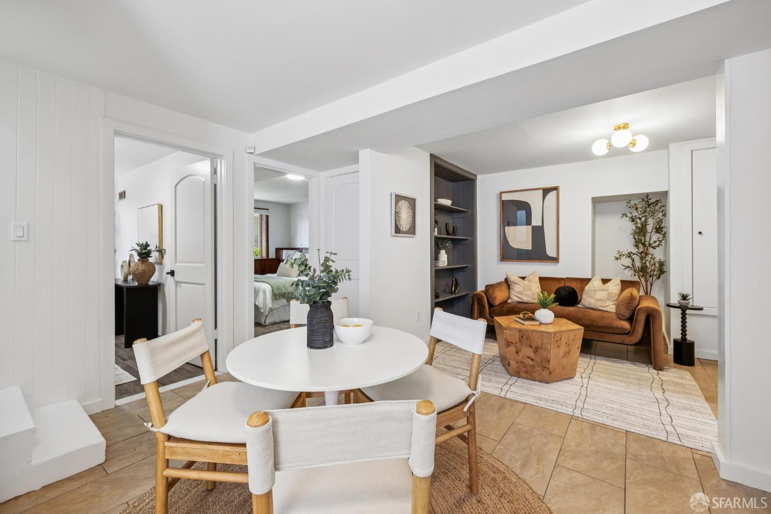 Located on a prominent corner lot in the heart of North side of Westwood Park, this beautifully preserved home blends timeless 1920s architecture with modern updates. From the moment you enter, you’re immediately greeted by the home’s warmth, natural light, and exceptional craftsmanship. The inviting living room, centered around a classic bay window and fireplace, flows seamlessly to the formal dining room, where rich gumwood wainscoting, a built-in buffet, crown moldings, and gleaming hardwood floors highlight the home’s original character. The dining room’s arched windows frame picturesque views that feel like a painting, adding to the home’s charm and sense of flow. The tastefully remodeled kitchen is both stylish and functional, featuring stainless steel appliances, including a high end six-burner Thermador range and dishwasher, along with ample cabinetry and workspace. Two sunlit, well-proportioned bedrooms and a full bath complete the main level, including a primary suite with its own en-suite half bath. Also a cozy office just off the kitchen provides an ideal space for work or study. The expansive lower level offers remarkable versatility, with two additional bedrooms overlooking the garden, a fully remodeled bathroom, a stylish full kitchen and a spacious family room – perfect for entertaining, guests, or extended living. An exercise/yoga room complete this level. Outside, landscaped front gardens and a sunny, spacious backyard create an inviting setting for outdoor dining, relaxing, and gatherings. The spacious garage offers an EV Charging Station as well as ample storage. A rare combination of charm, flow, and functionality in one of the city’s most beloved neighborhoods.