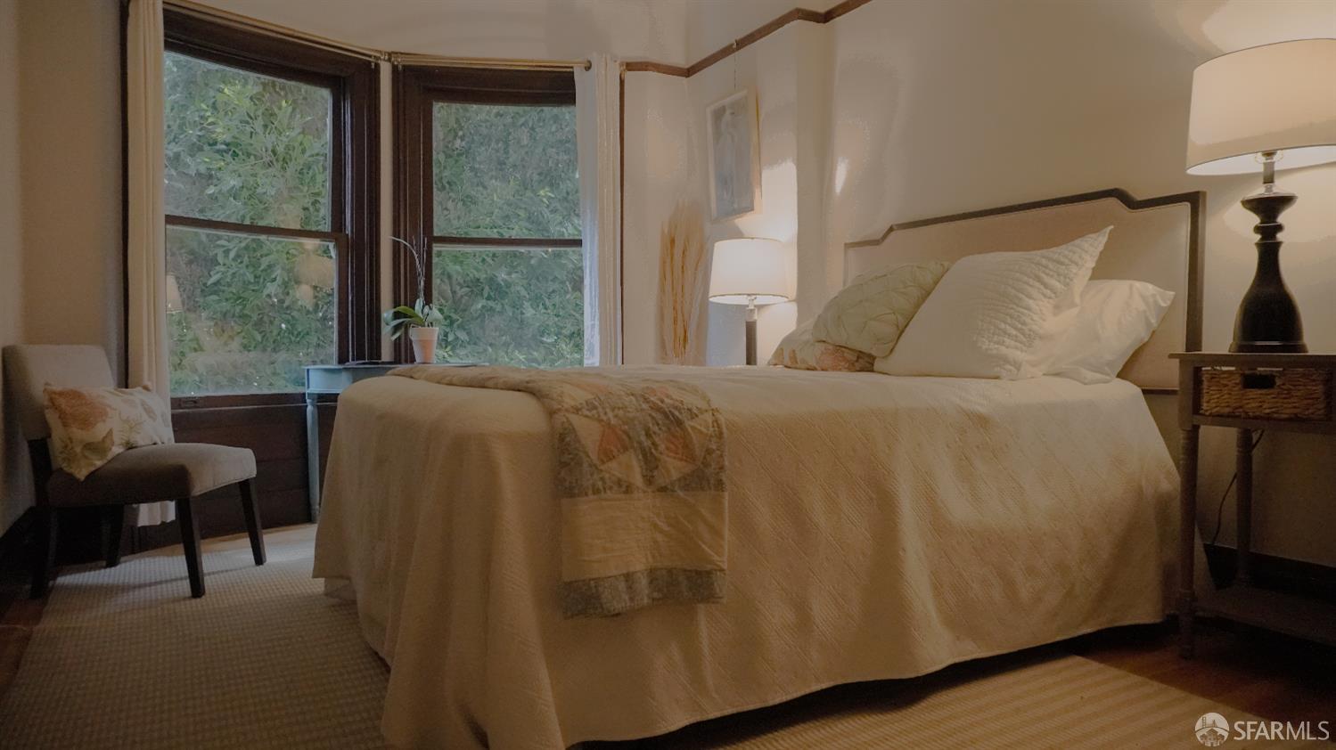 Quality-built Edwardian penthouse condo offers the perfect combination of vintage charm, modern updates, and a luminous, functional layout on a tree lined street. The top-floor residence in a boutique 3-unit building features large bedrooms, numerous closets, convenient split bath, and abundant natural light throughout its beautifully proportioned interiors. Features include upgraded hardwood floors, French doors, curved glass Bay windows, quartz counter, stainless appliances, dishwasher, laundry room, S-x-S garage leased parking option, shared garden with Redwood tree, 2006 Condo Conversion, SB326 complete, fresh interior and exterior paint, newly refinished wood floors, low HOA dues of $250/mo., large ground floor deeded storage room overlooking a serene garden. Exceptional Location in Valencia Corridor, Dolores Heights with nearby Dolores Park, shops, services and restaurants for a vibrant city lifestyle.
